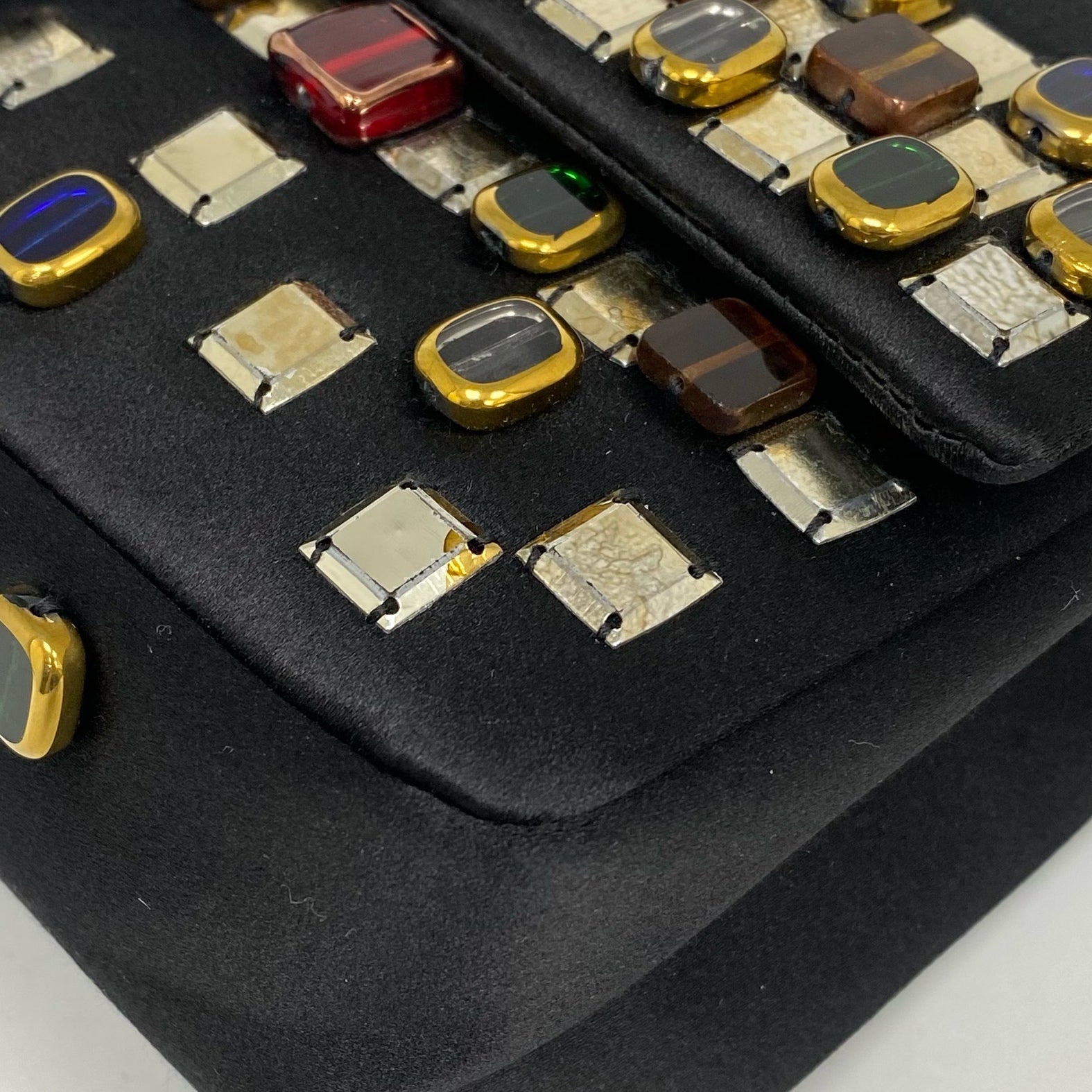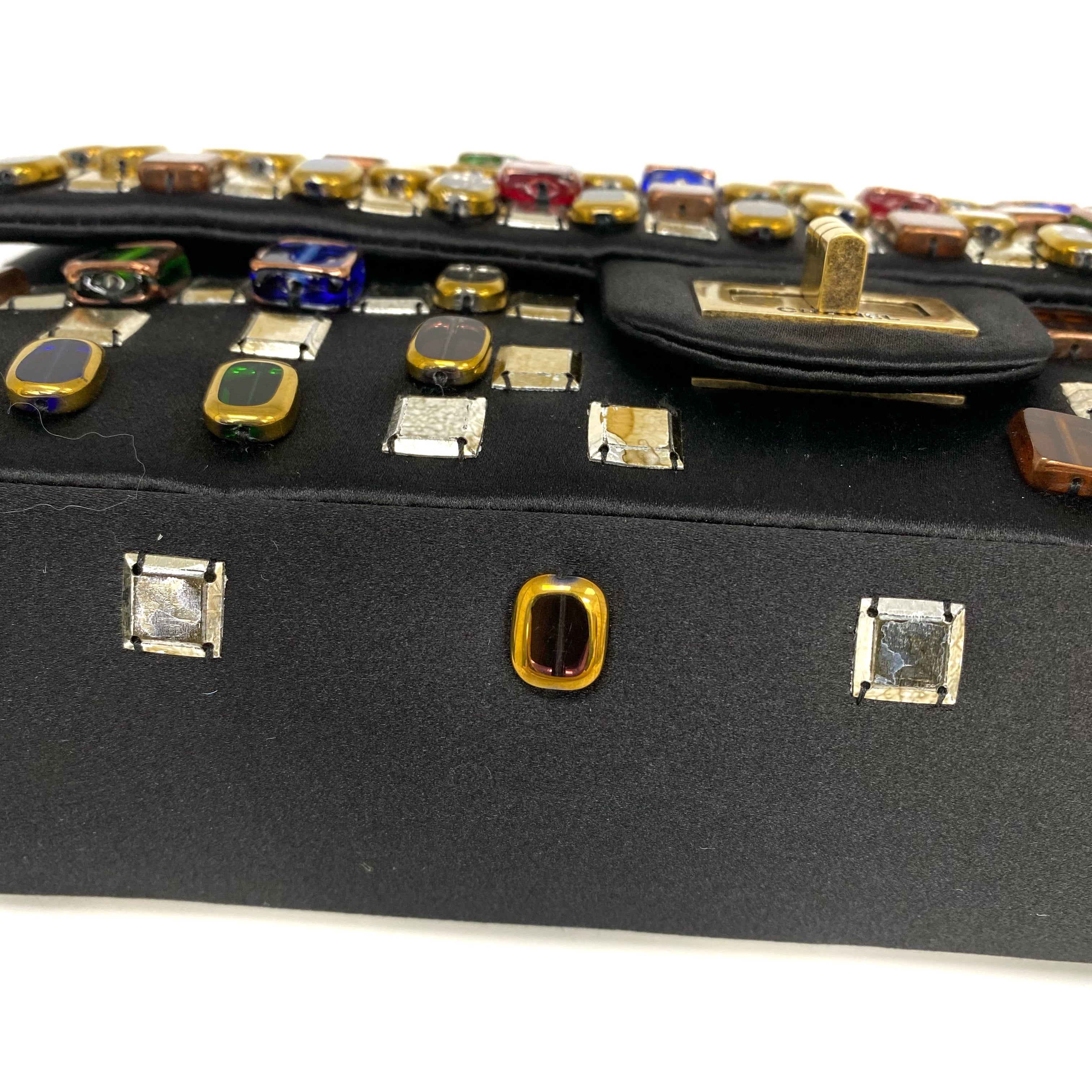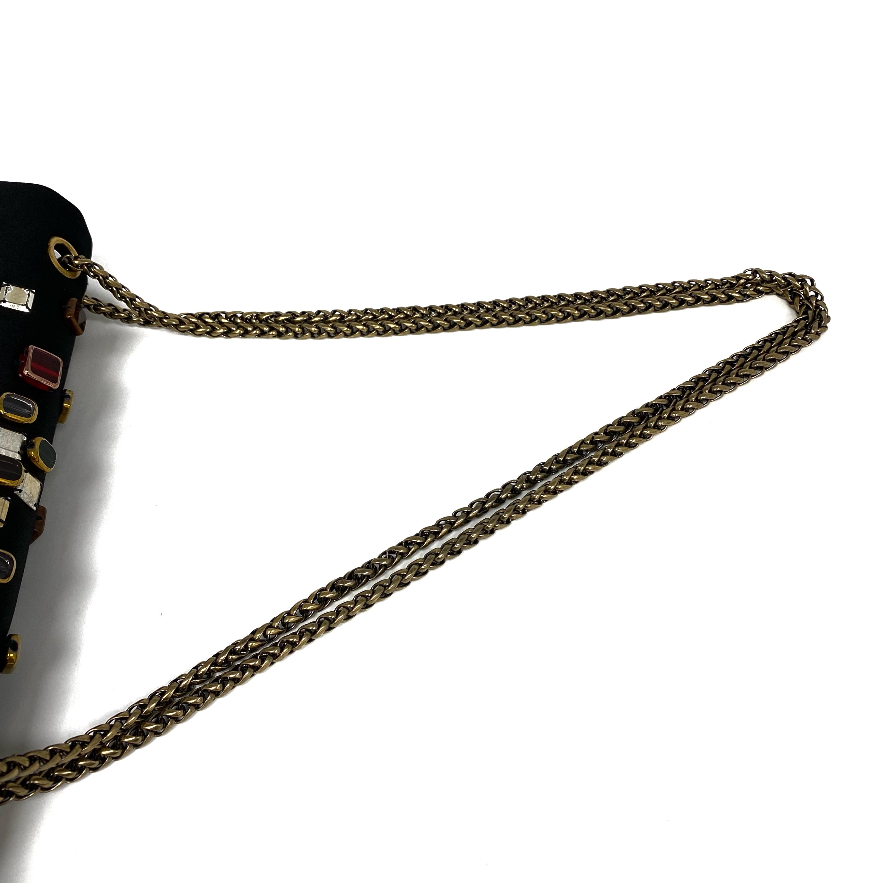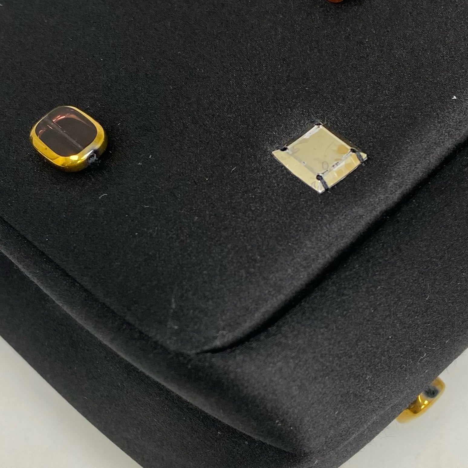 △ Chanel 香奈兒 2.55 Black Satin Beads Gold Tone Metal Chain Shoulder Bag No.14 黑色緞面飾珠金色金屬鏈 條肩背袋 No.14 -257017202