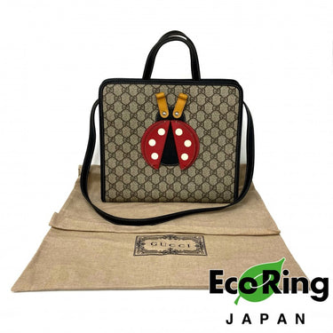 ☆ Gucci 古馳 Black Brown Coated Canvas Ladybug Kid's GG Monogram Tote Bag 黑色啡色塗層帆布甲蟲GG經典花紋托特袋 - 257018676
