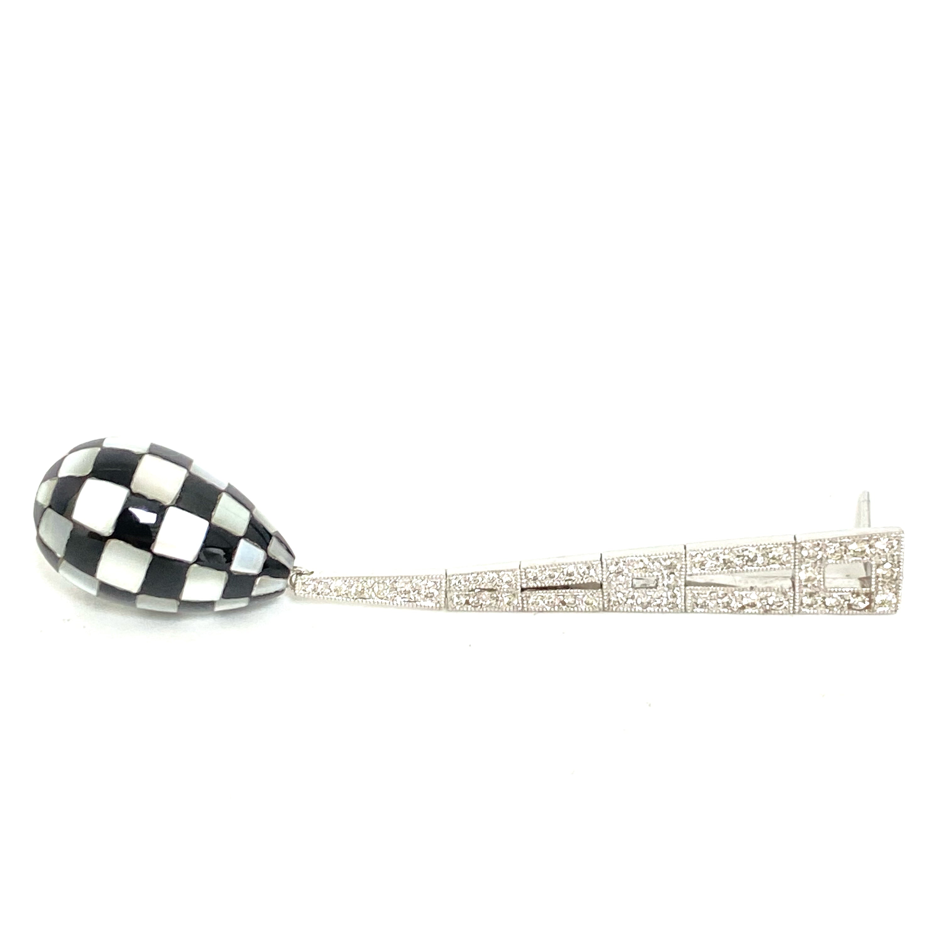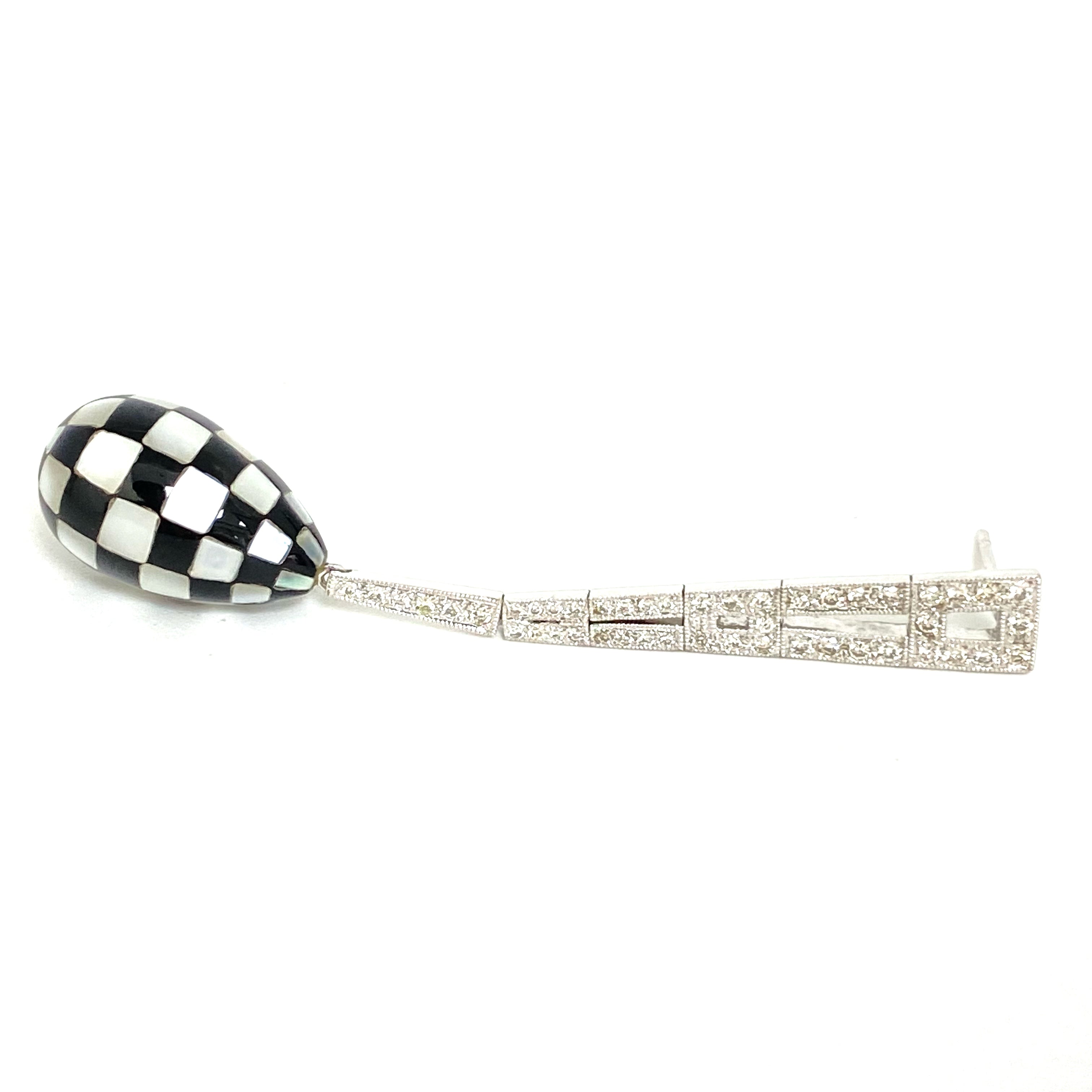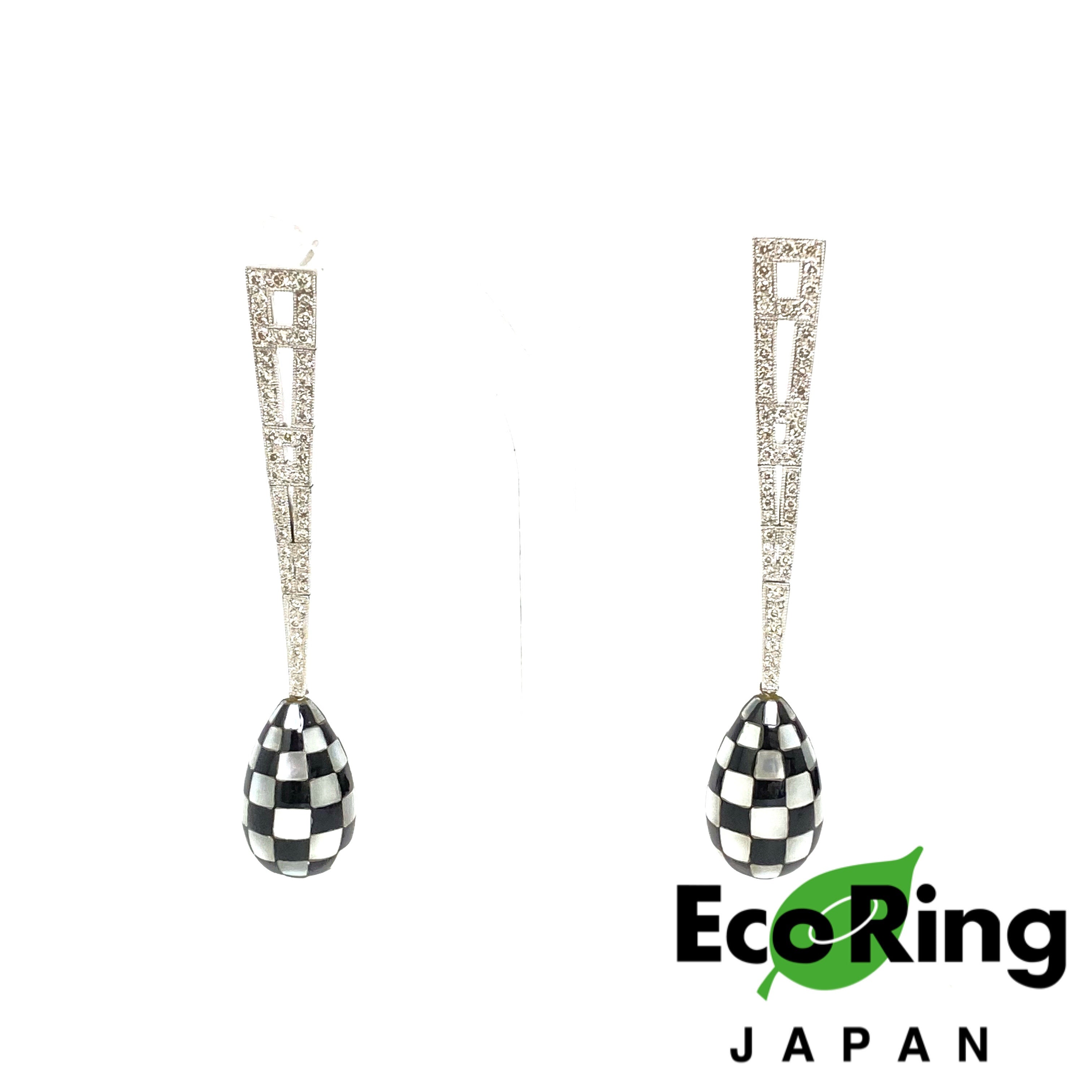 △ 18K White Gold Diamond Mother of Pearl Checkered Earrings 11.12g 18K白金鑽石珍珠貝母棋盤格紋耳環 11.12g - 257021701