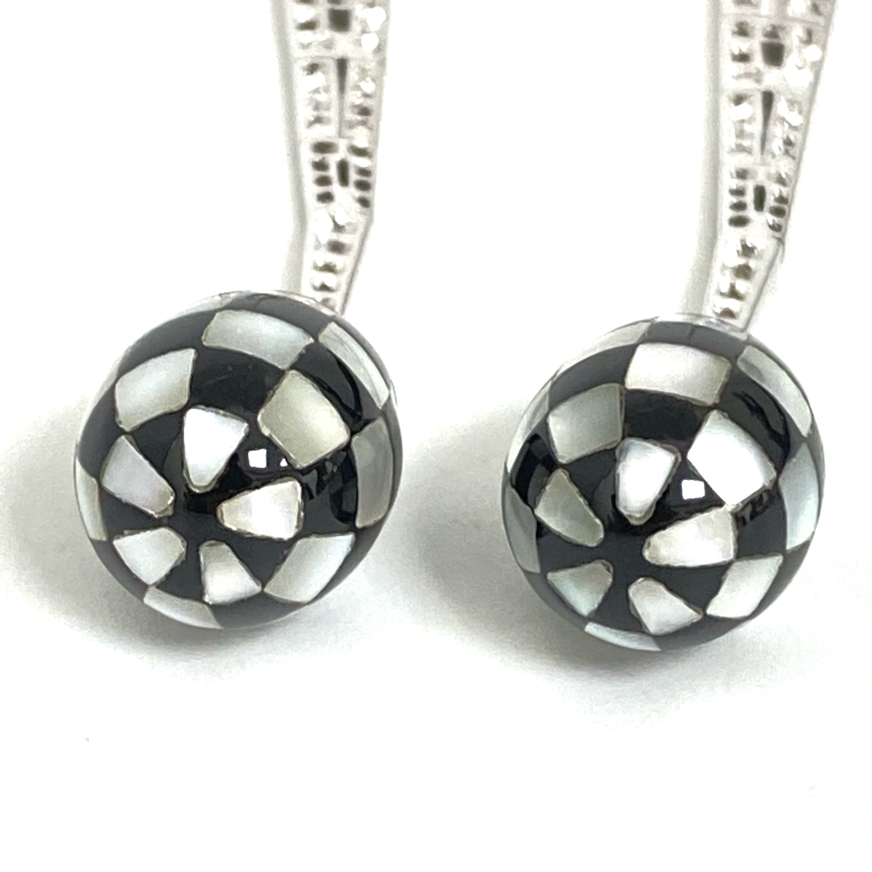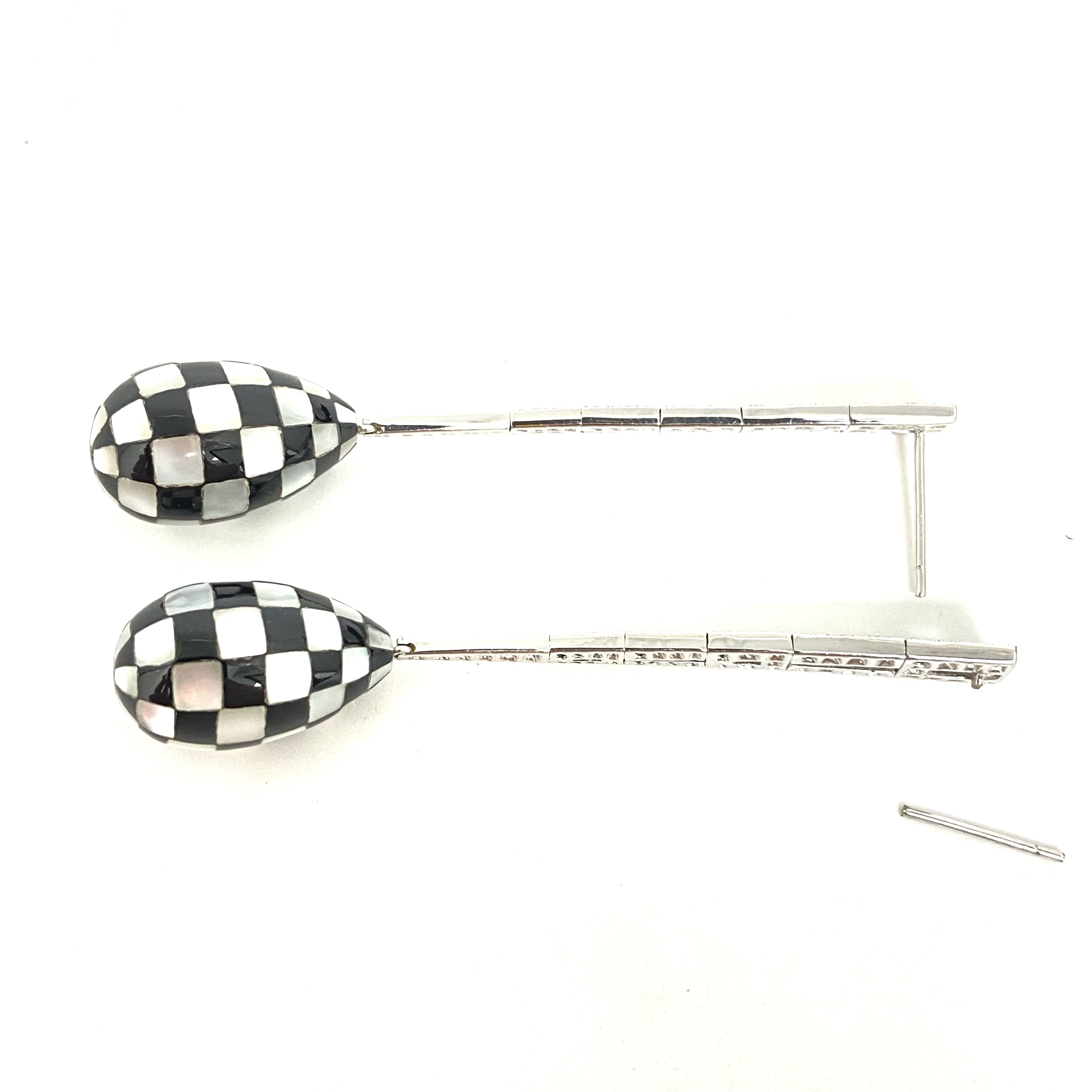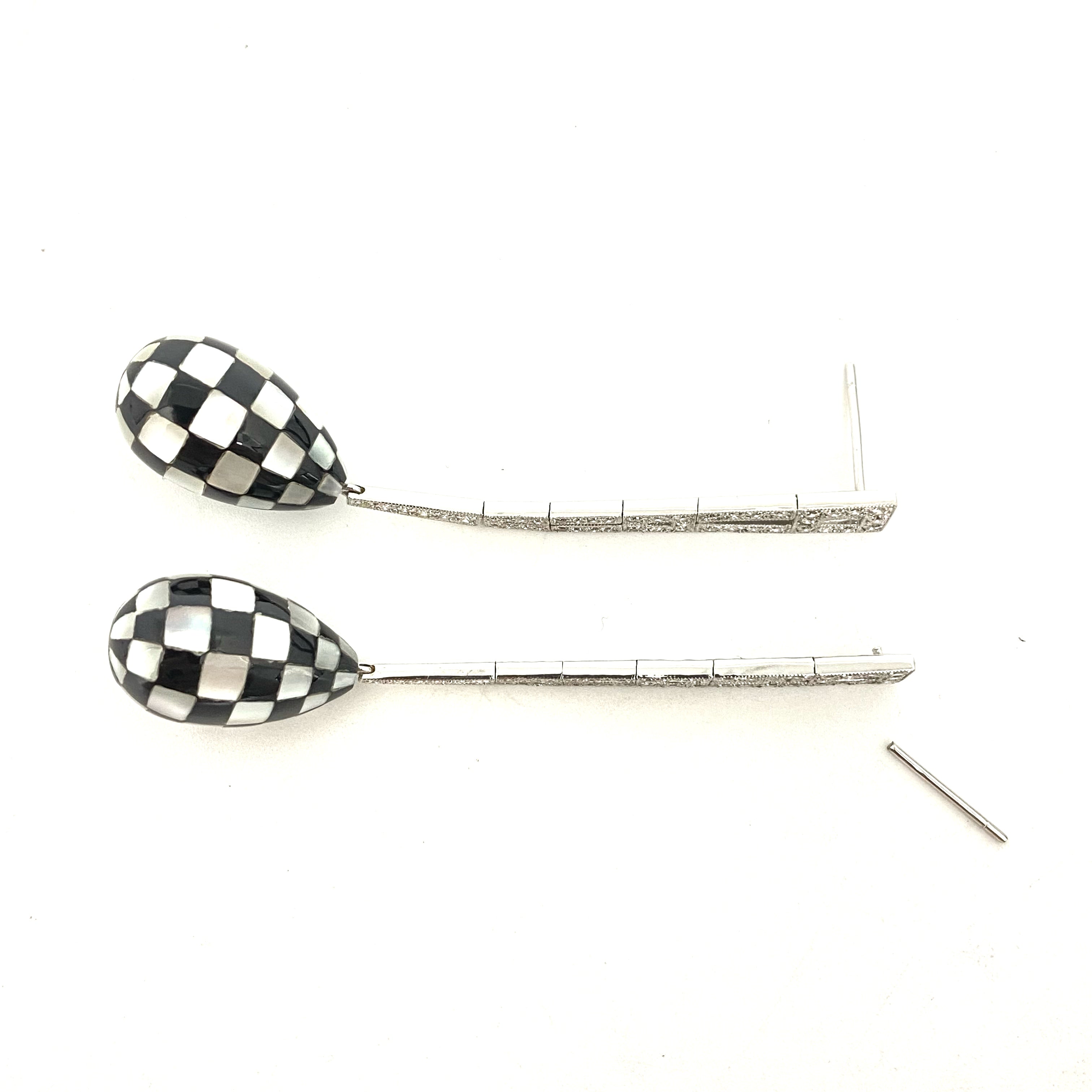 △ 18K White Gold Diamond Mother of Pearl Checkered Earrings 11.12g 18K白金鑽石珍珠貝母棋盤格紋耳環 11.12g - 257021701