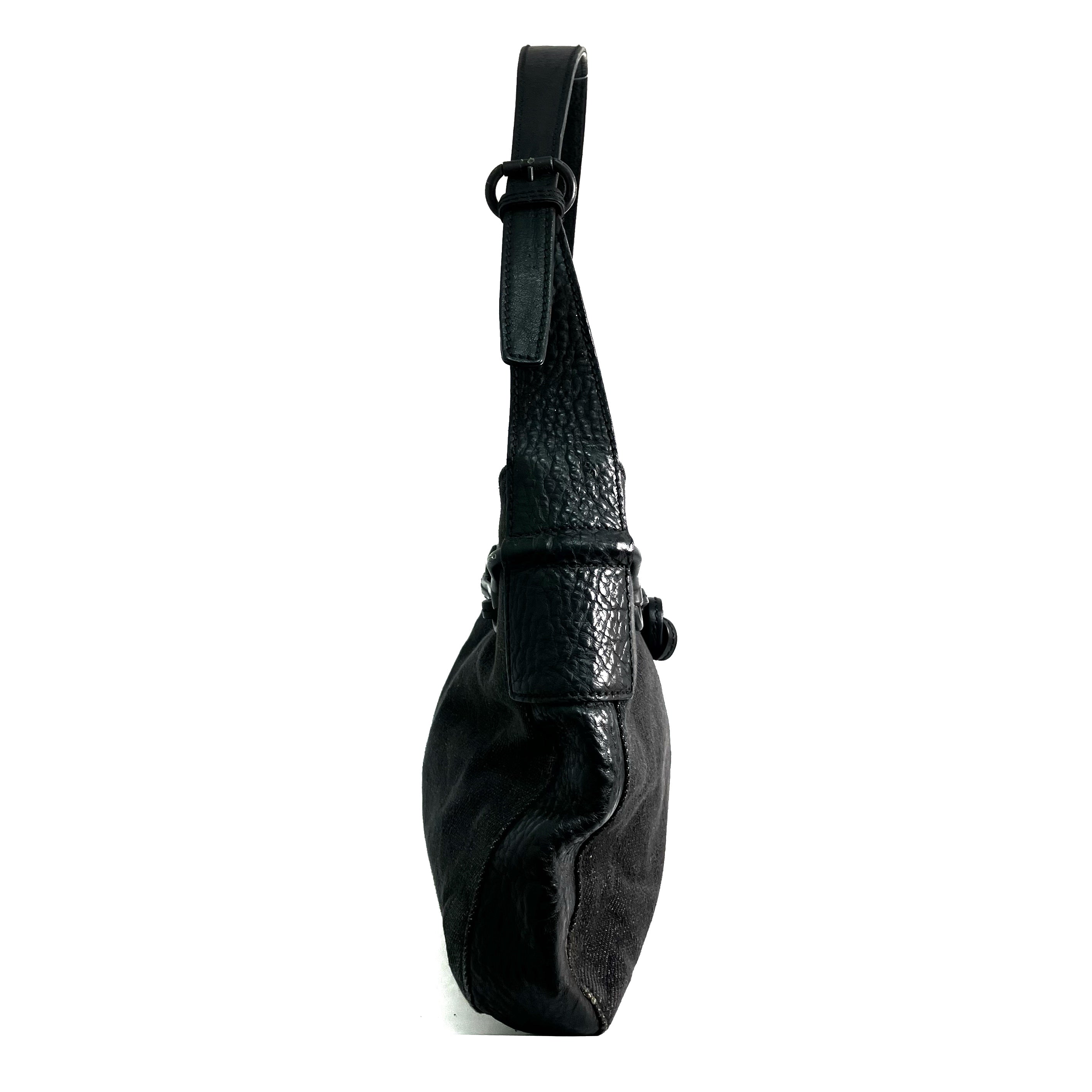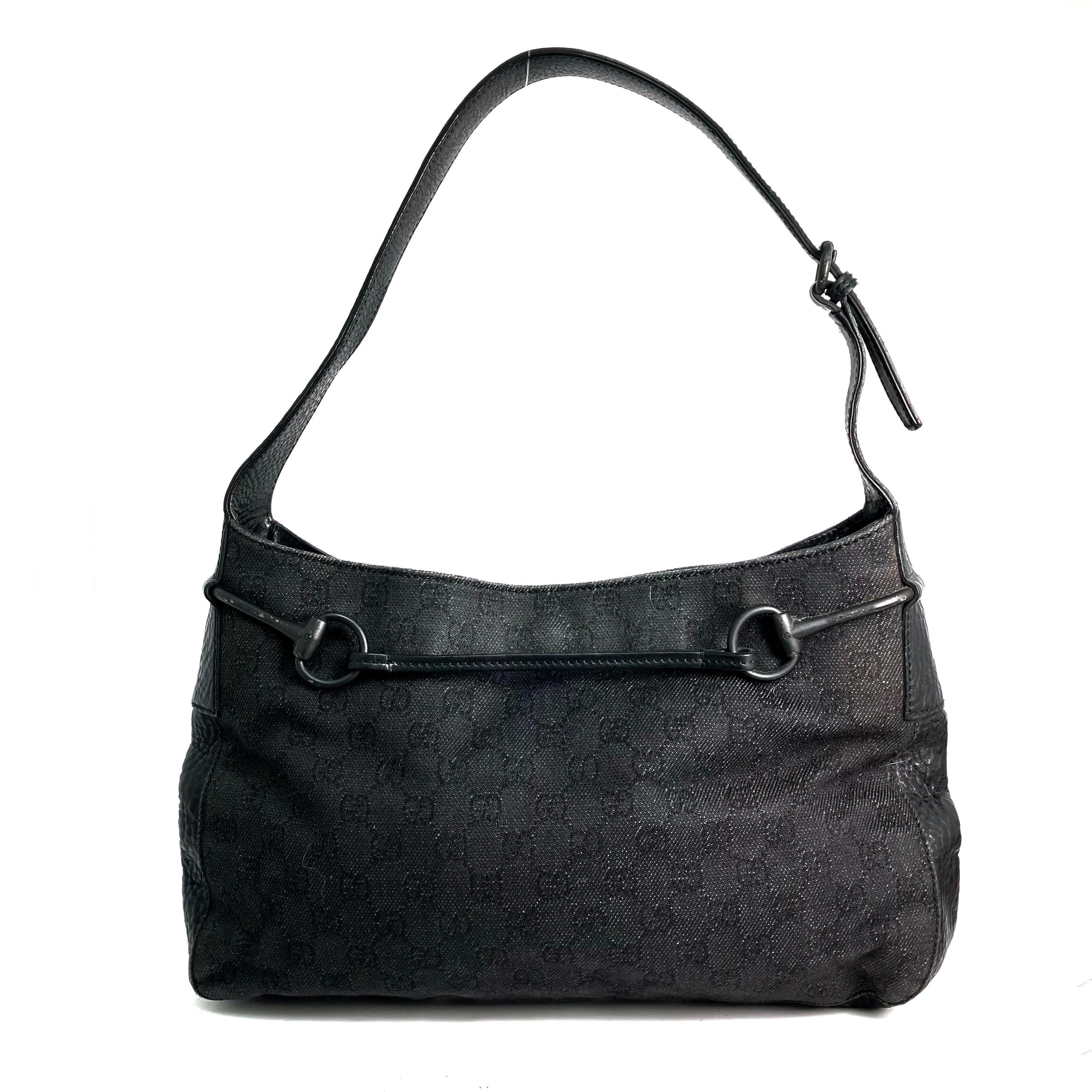 ☆ Gucci 古馳 Black Canvas Monogram Shoulder Bag 101975 黑色帆布經典花紋肩背袋 - 257022106