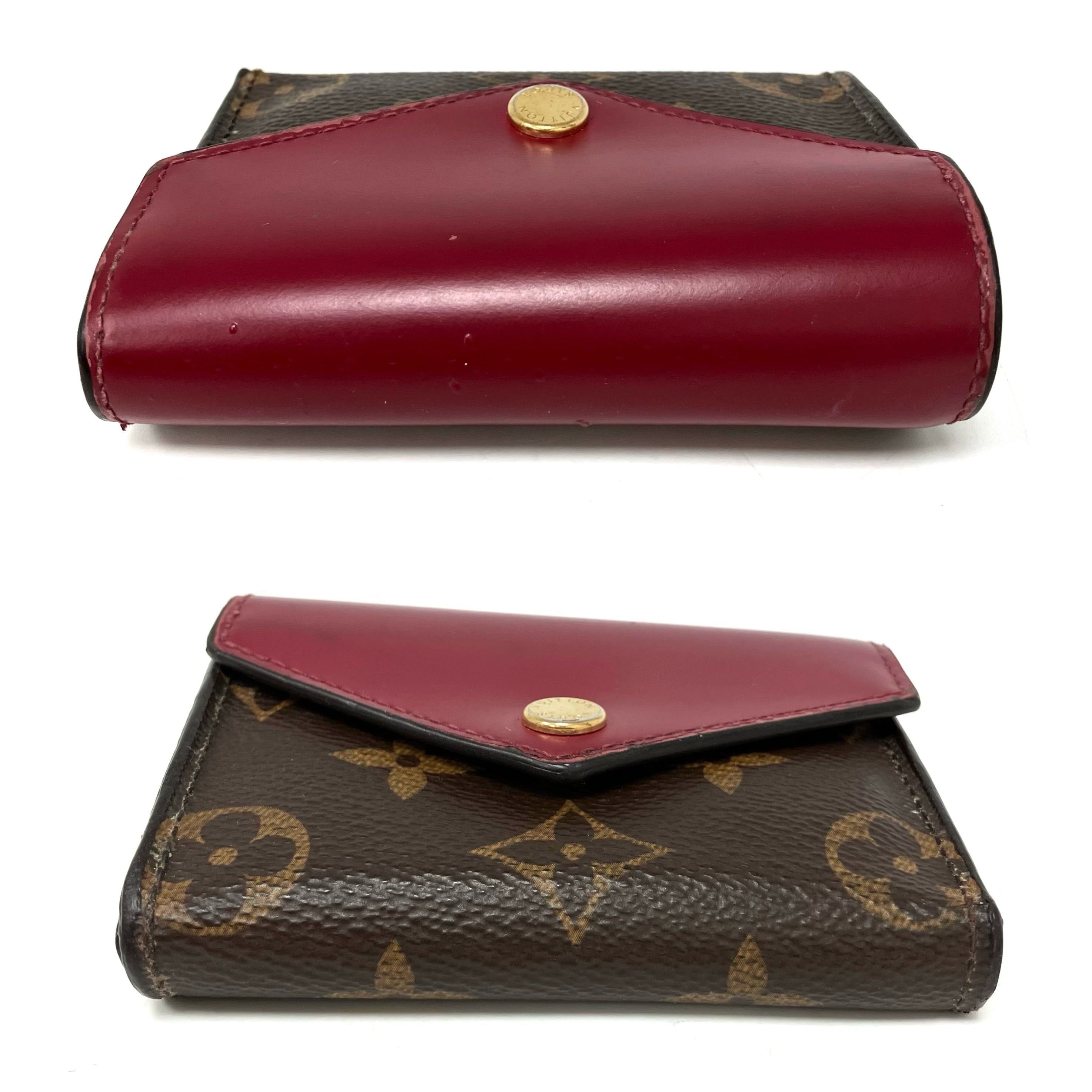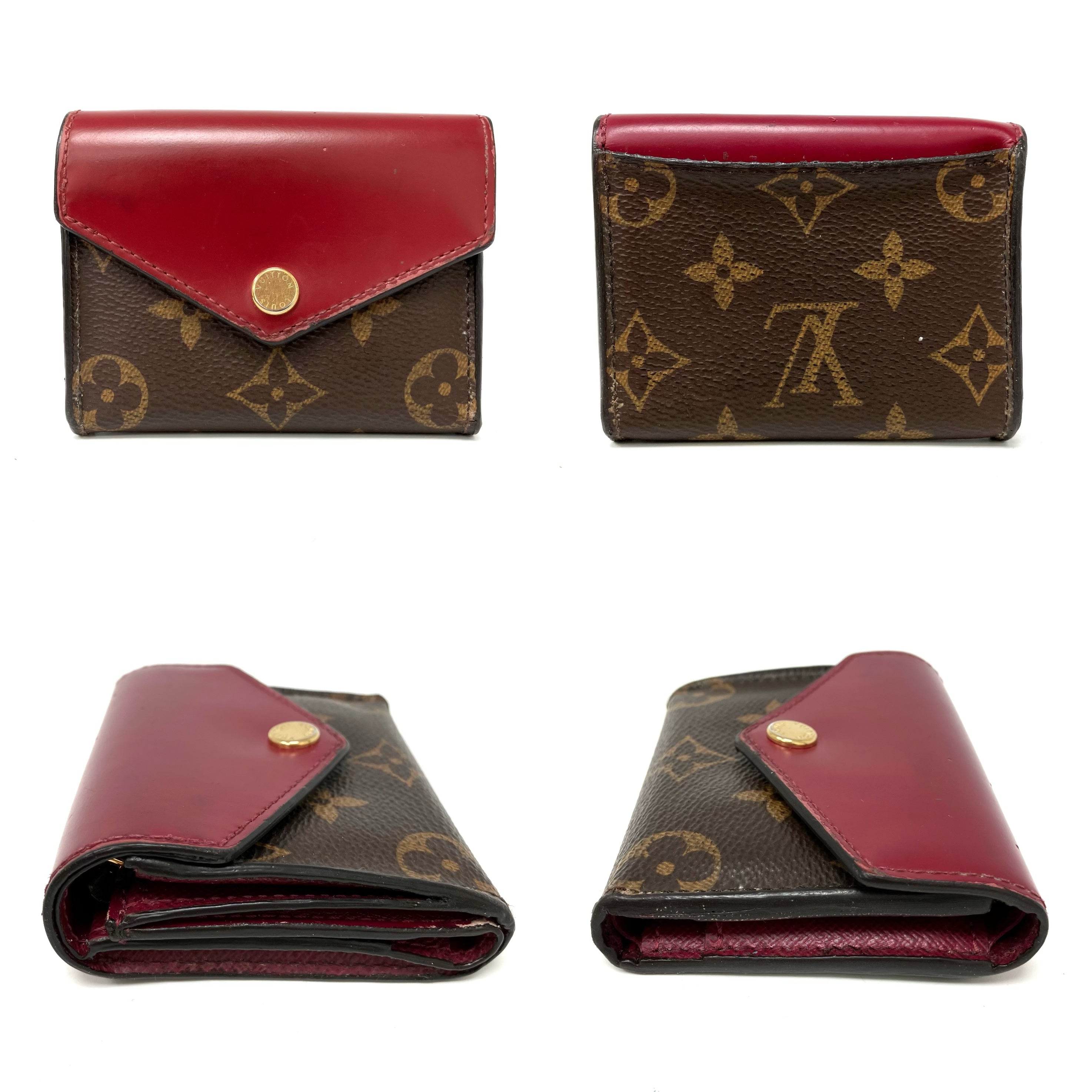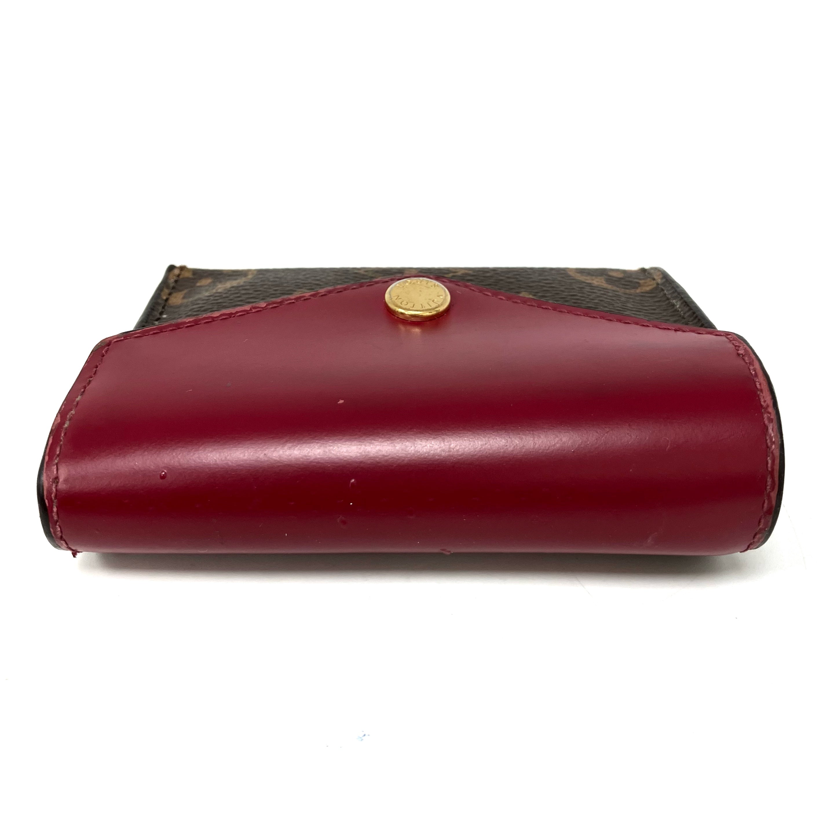 ☆ Louis Vuitton 路易威登 Brown & Red Coated Canvas & Calfskin Monogram Zoe Short Wallet 啡色和紅色塗層帆布和小牛皮短銀包 - 257022225
