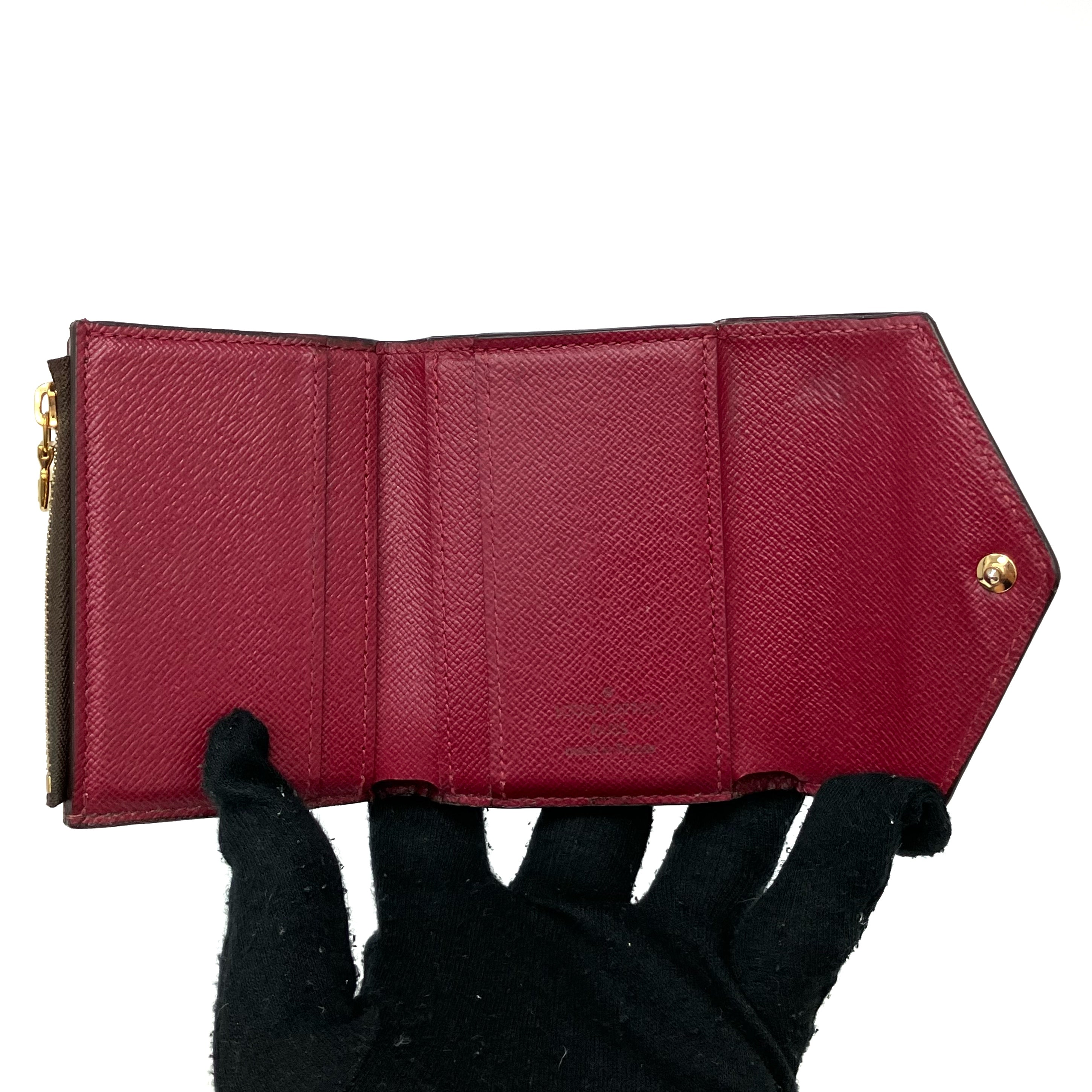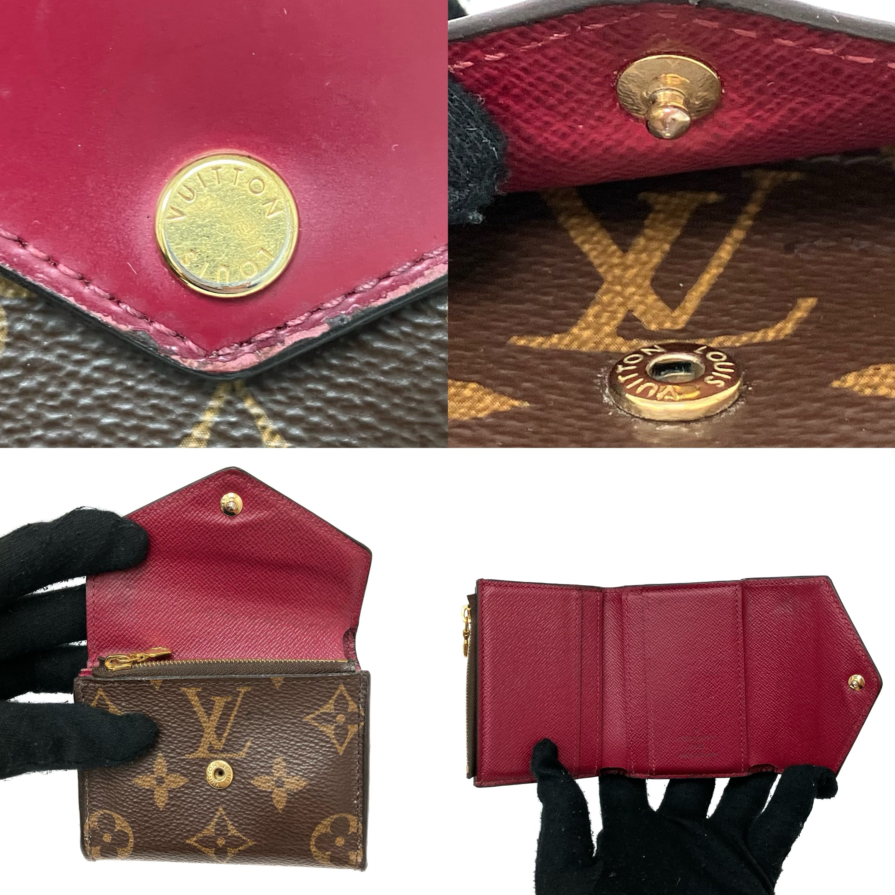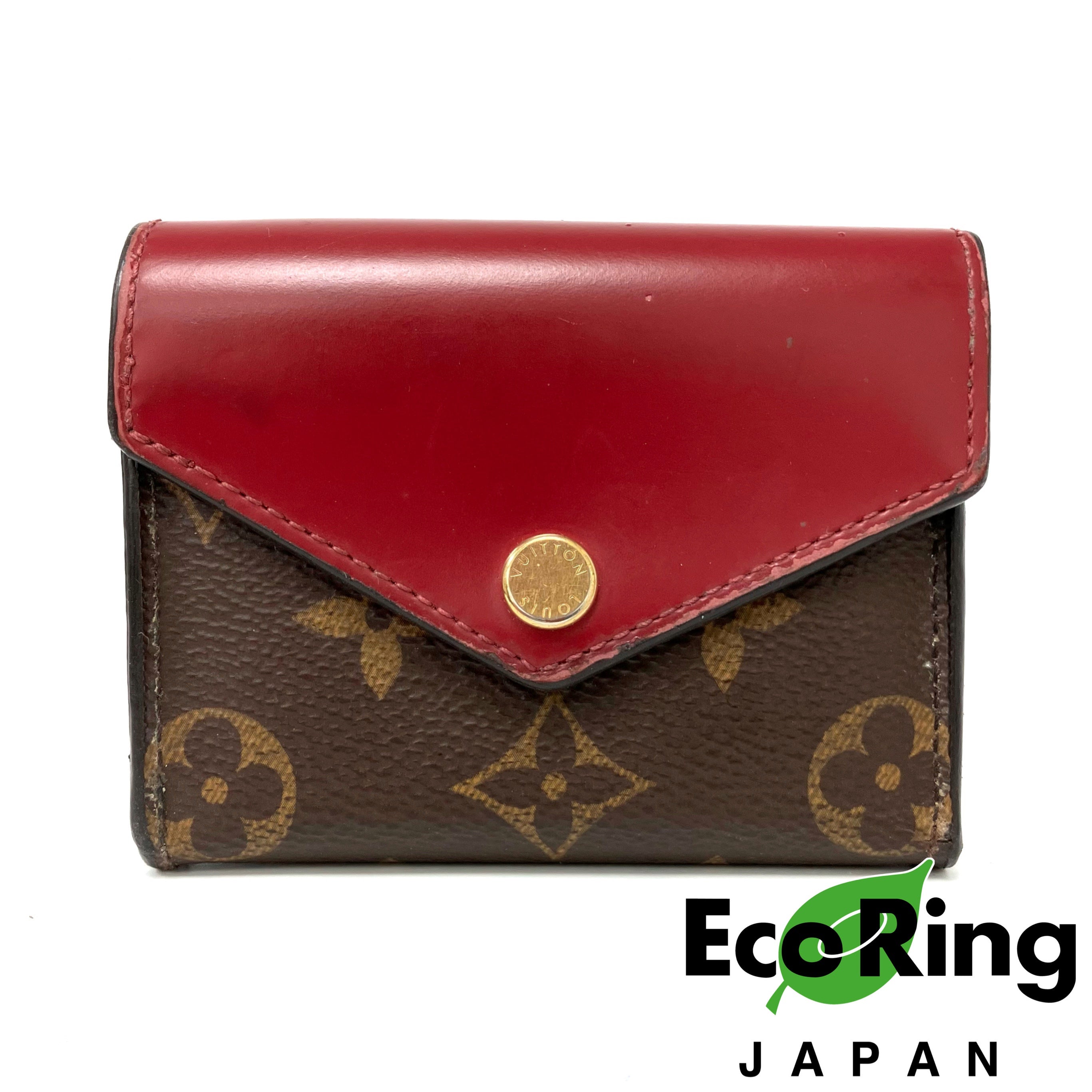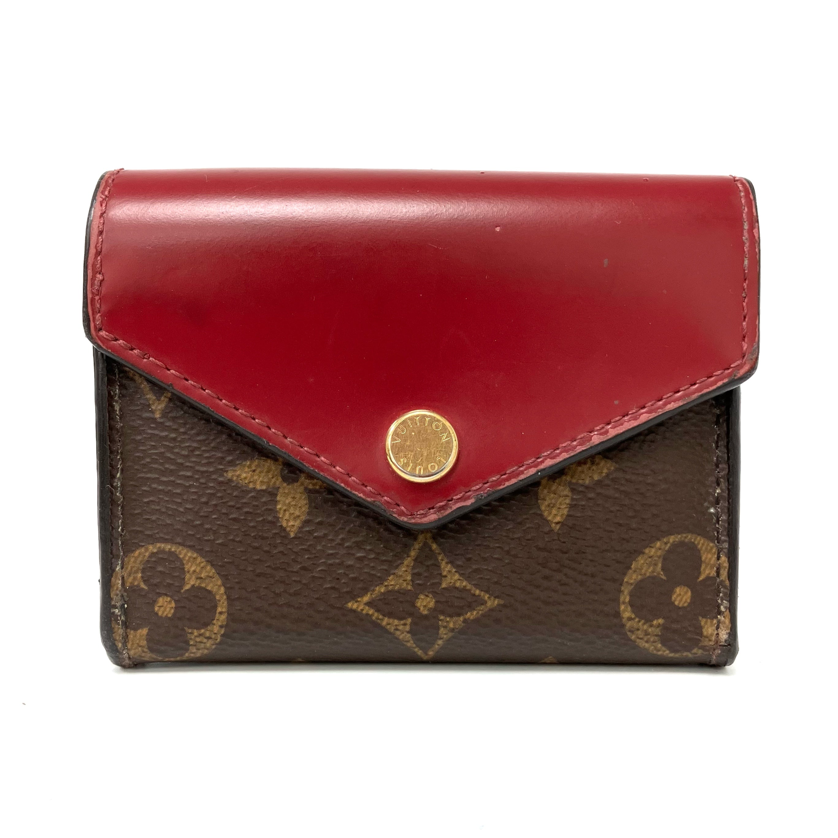 ☆ Louis Vuitton 路易威登 Brown & Red Coated Canvas & Calfskin Monogram Zoe Short Wallet 啡色和紅色塗層帆布和小牛皮短銀包 - 257022225