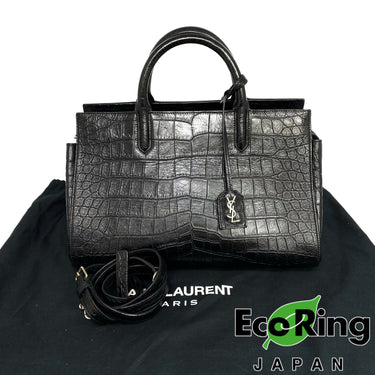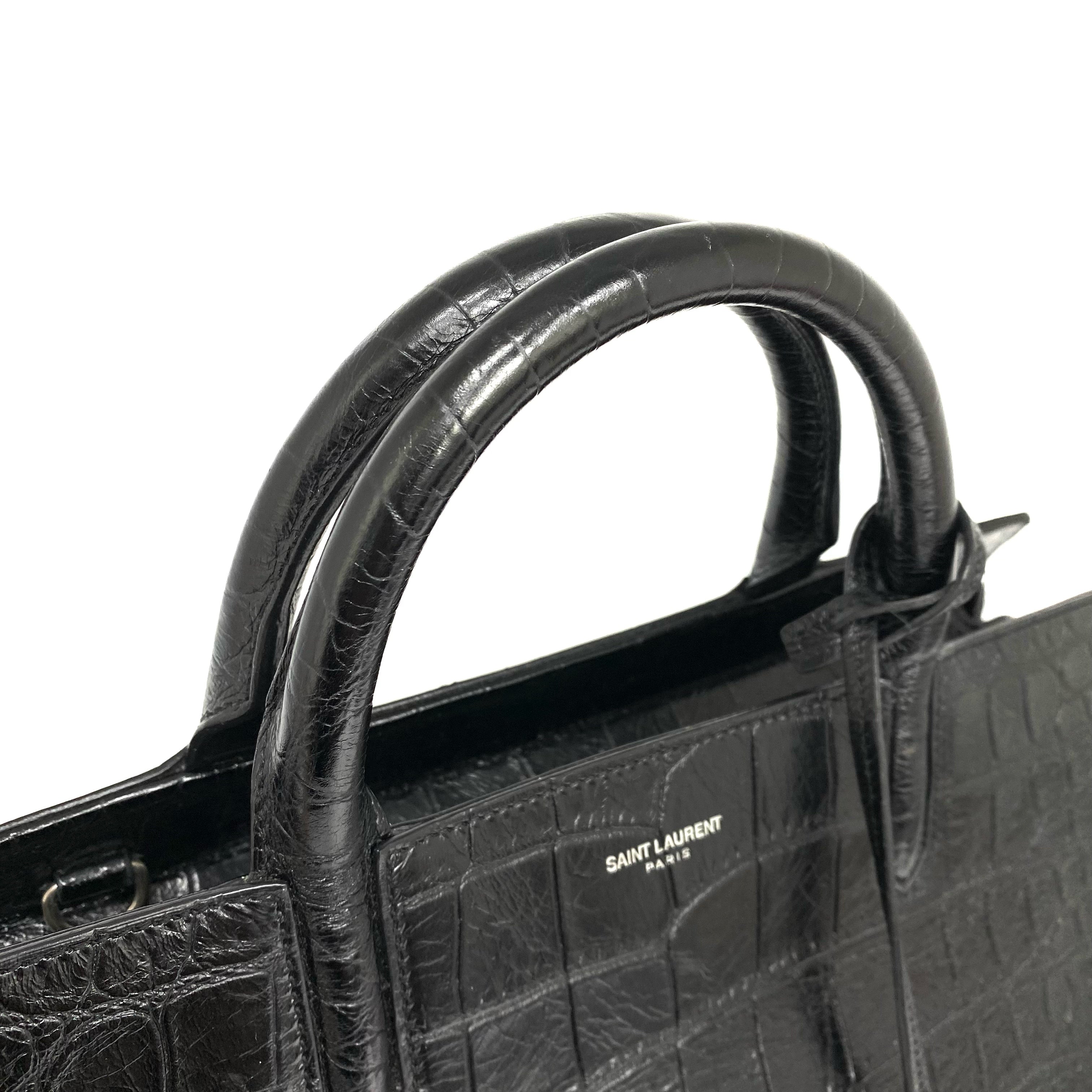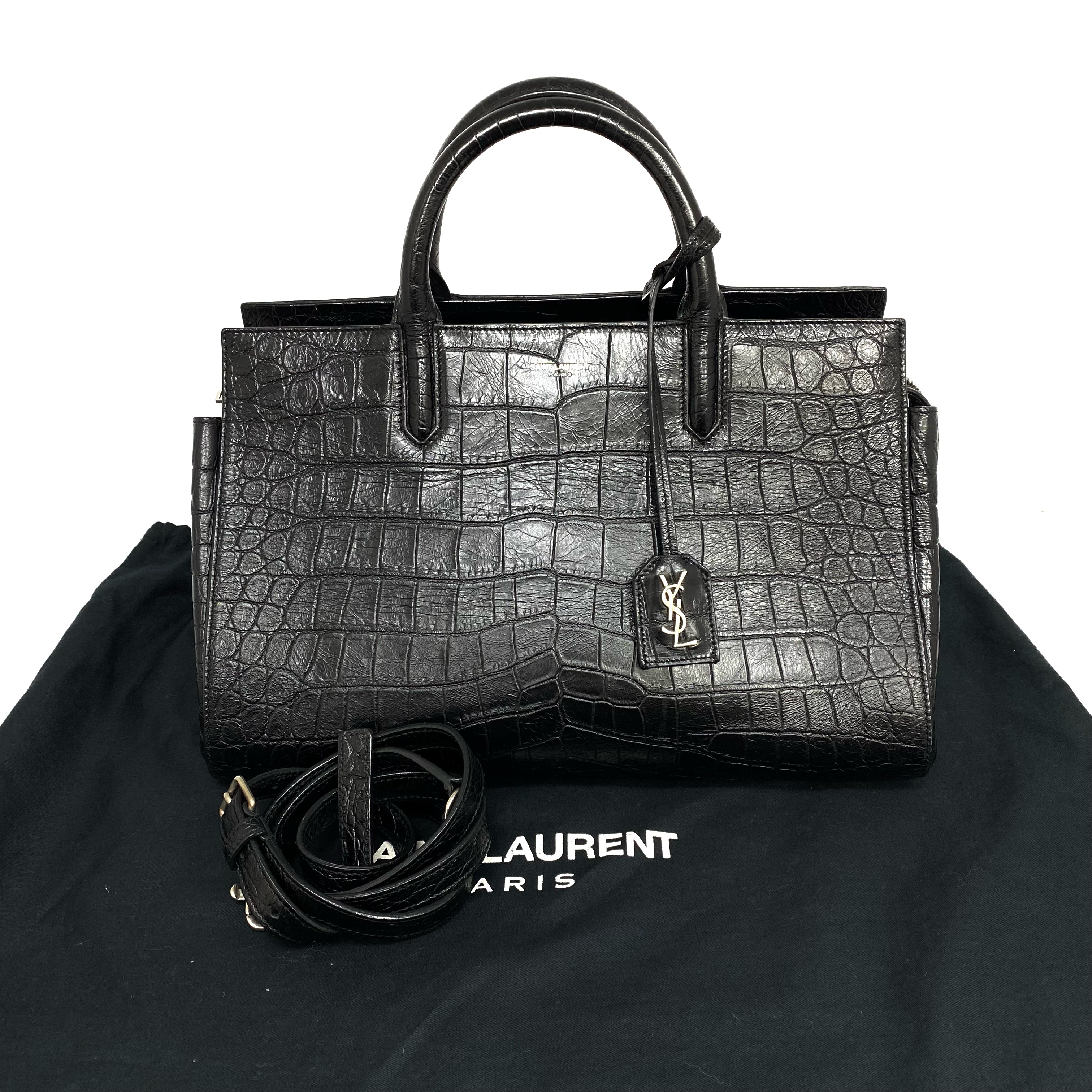 ☆ Saint Laurent 聖羅蘭 Black Crocodile Embossed Calfskin 2 Way Bag 黑色鱷魚壓紋牛皮兩用袋 - 257022423
