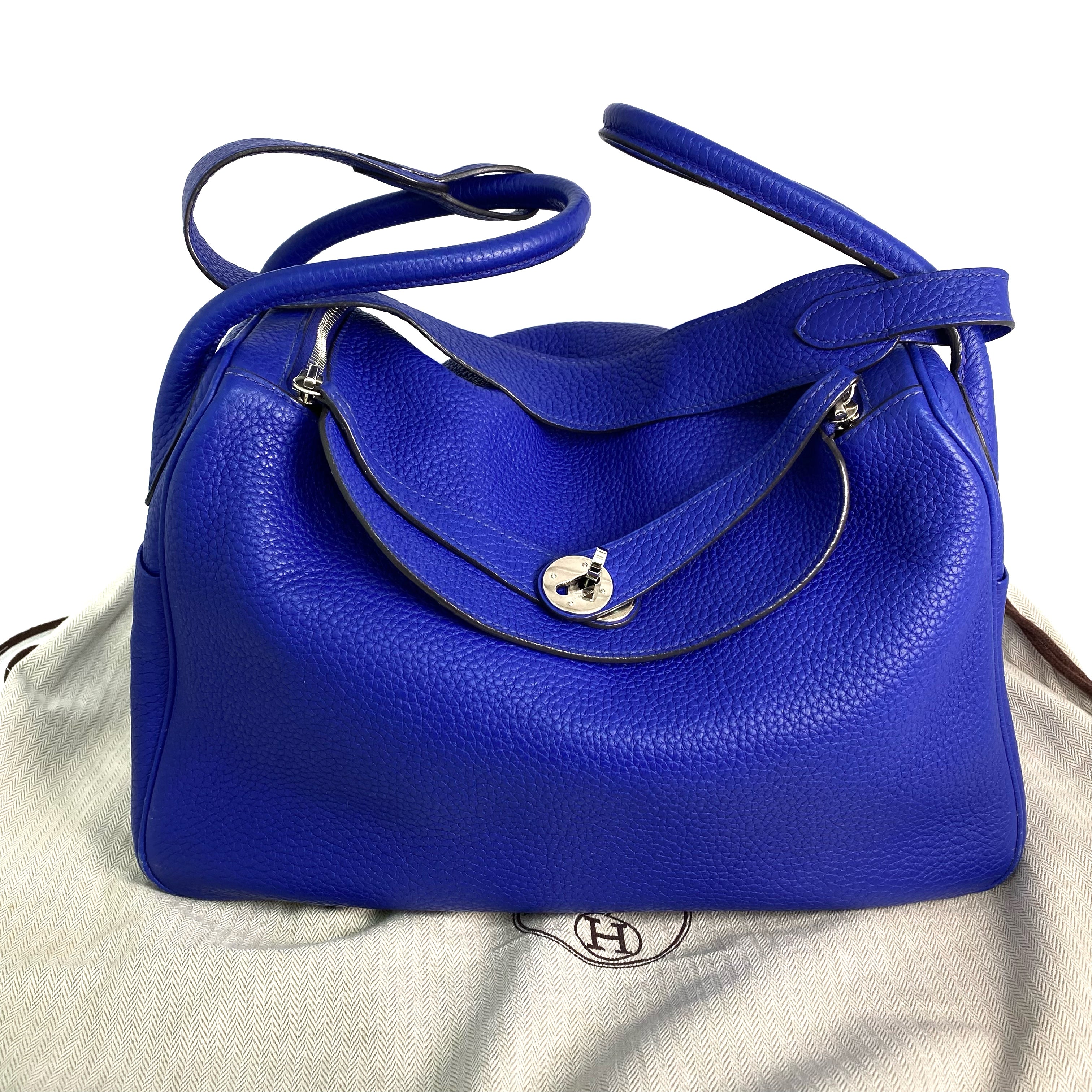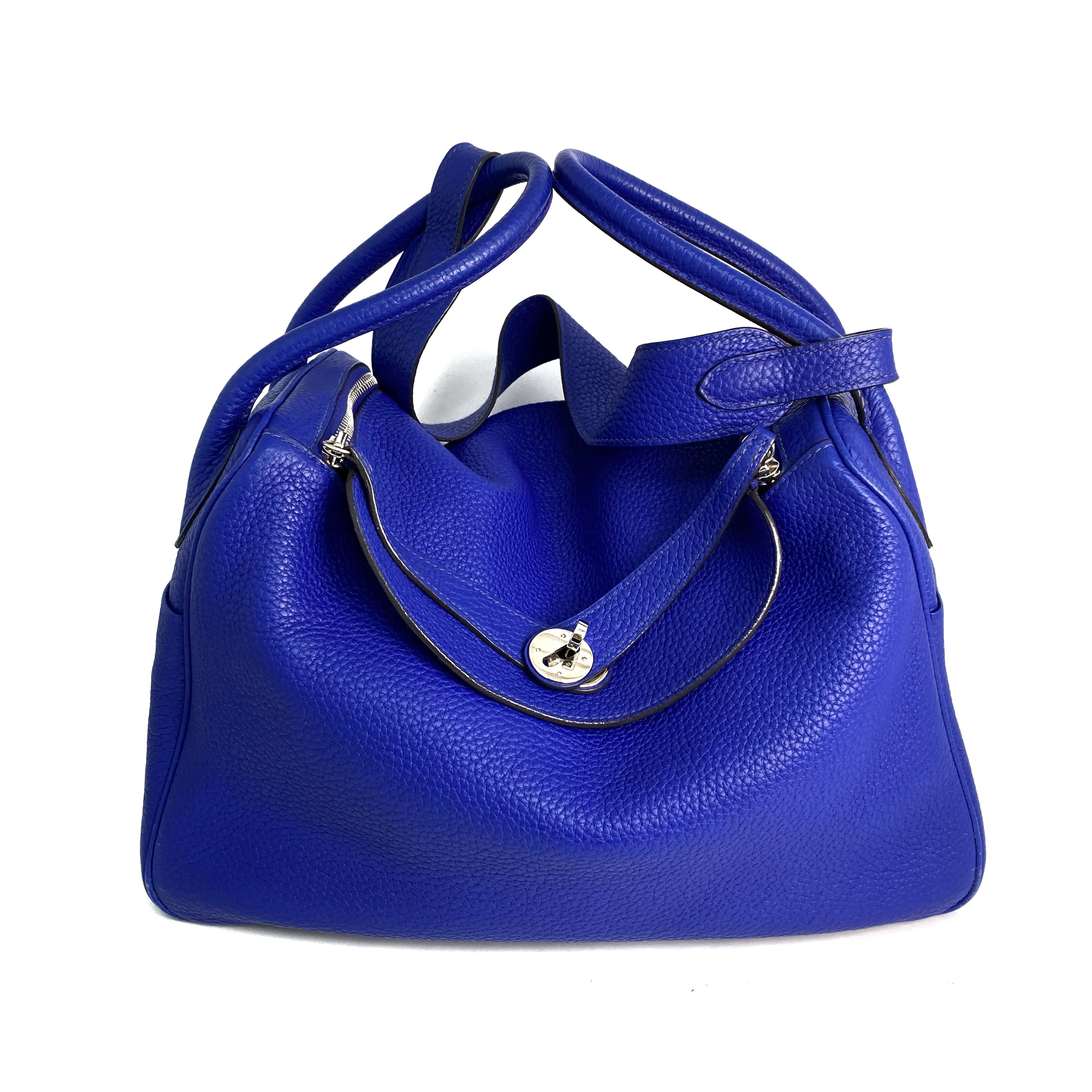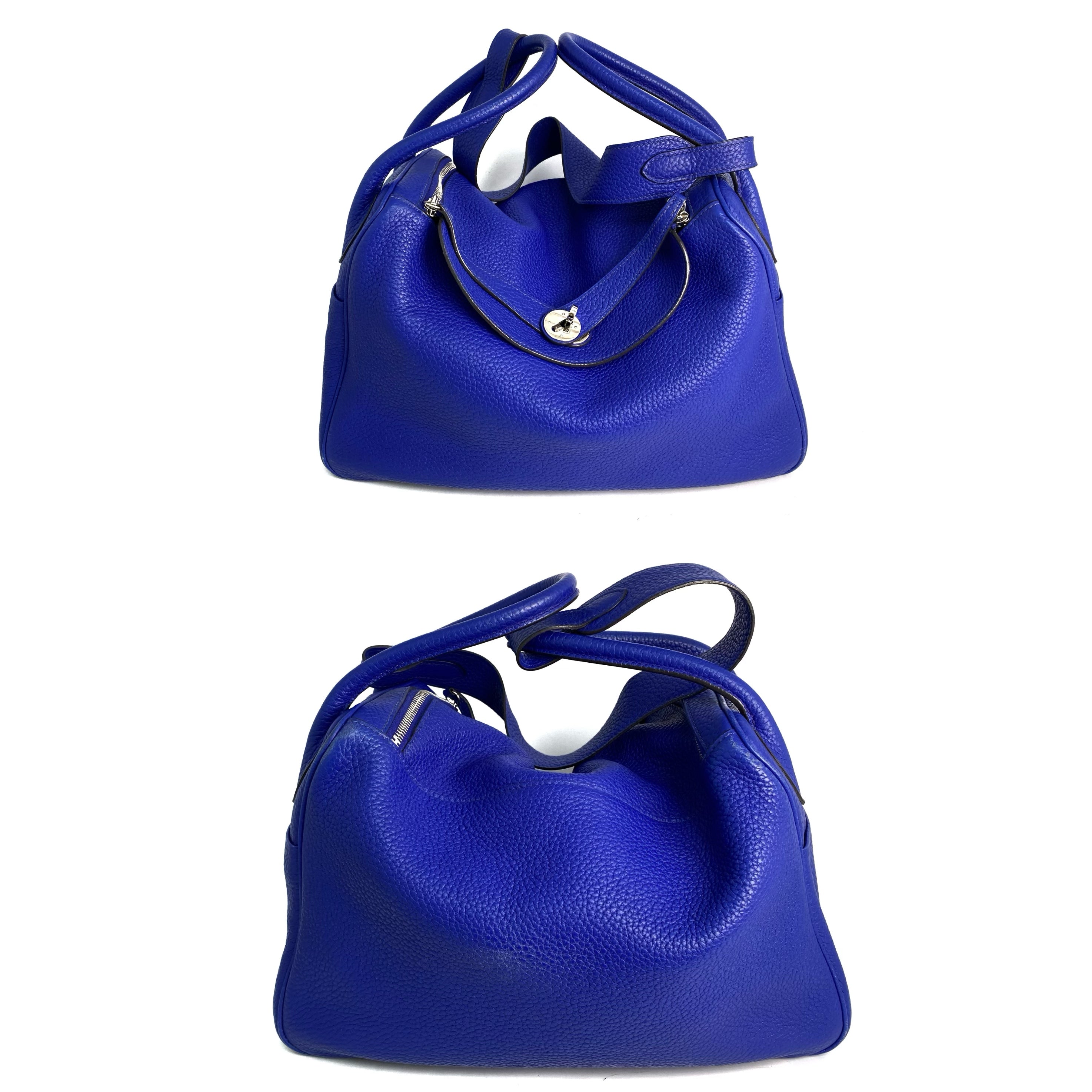 △ Hermes 愛馬仕 Electric Blue Clemence Calfskin Palladium Plated Metal Lindy 34 2 Way Bag Stamp [P] 藍色粒紋小牛皮鍍鈀金屬兩用袋[P]刻 - 257022469
