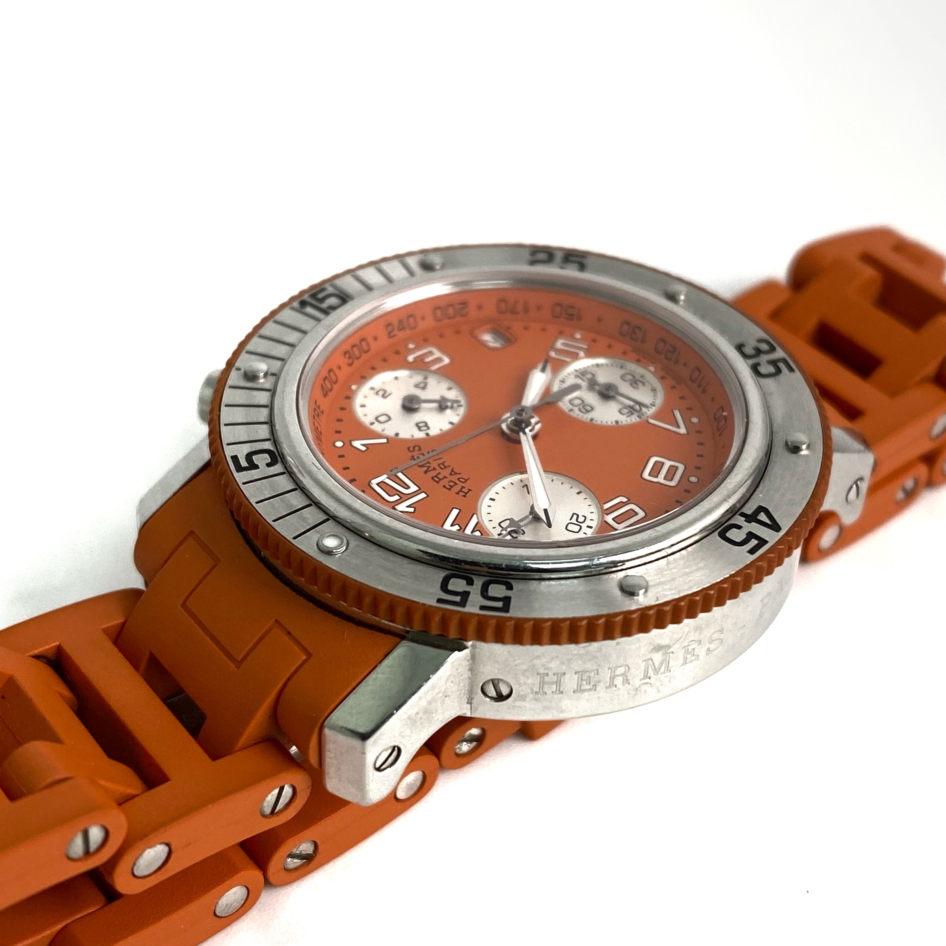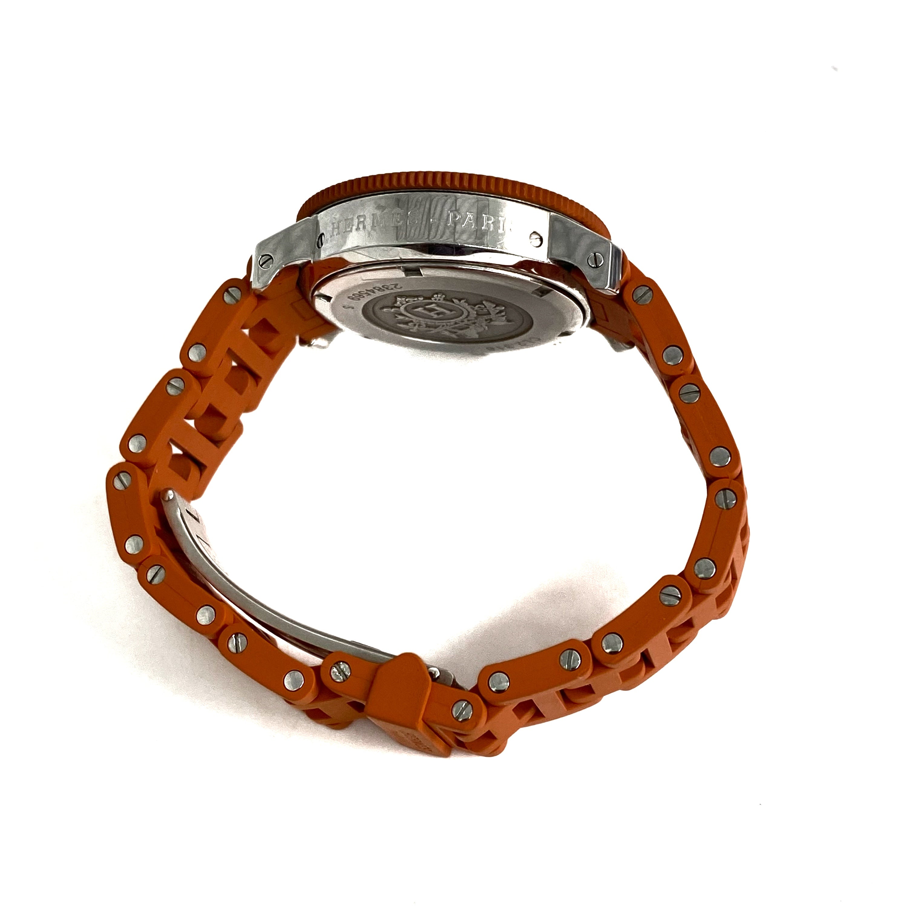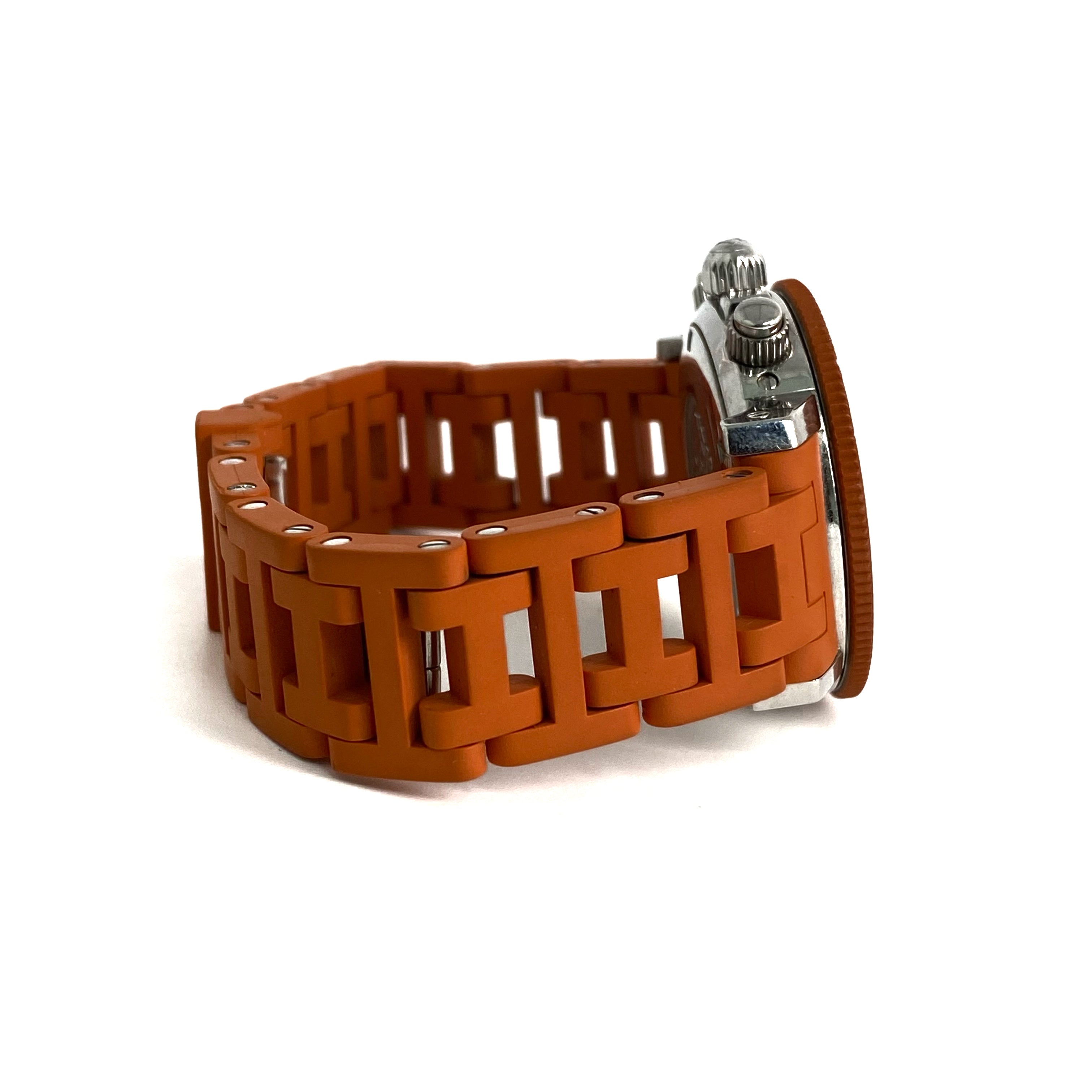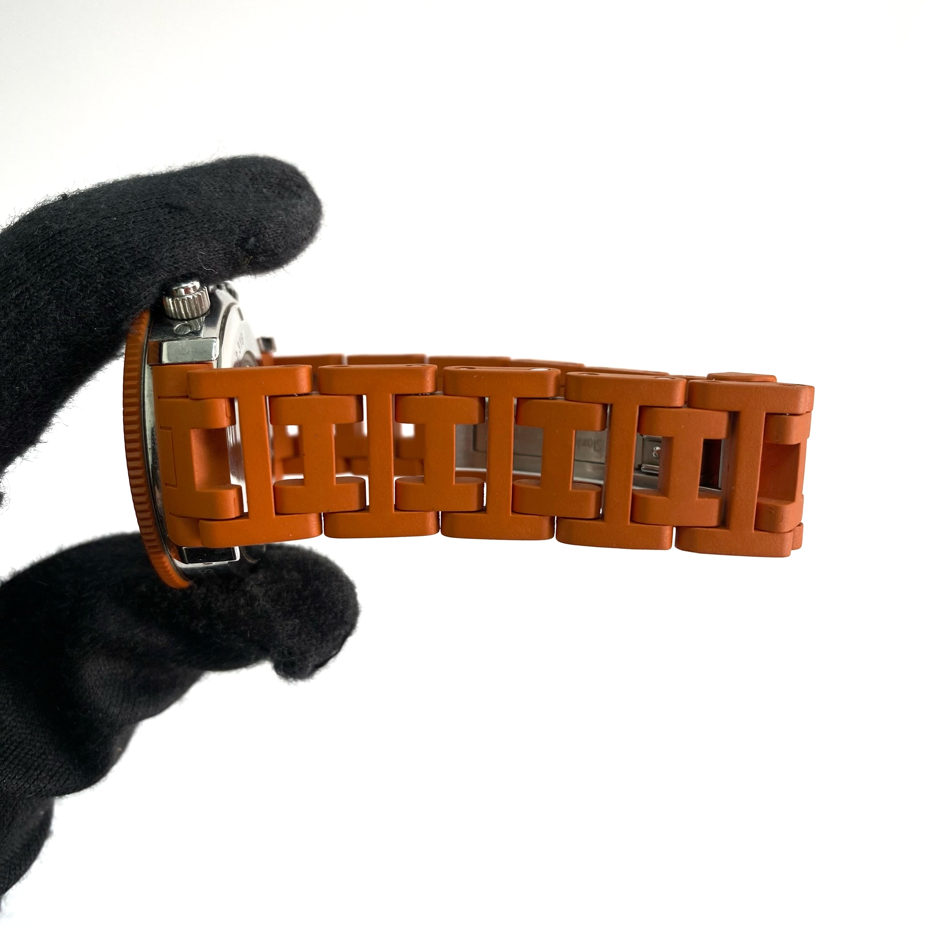 ☆ Hermes 愛馬仕 Orange Rubber Silver Stainless Steel Quartz Watch 橙色橡膠銀色不銹鋼石英錶 - 257022544