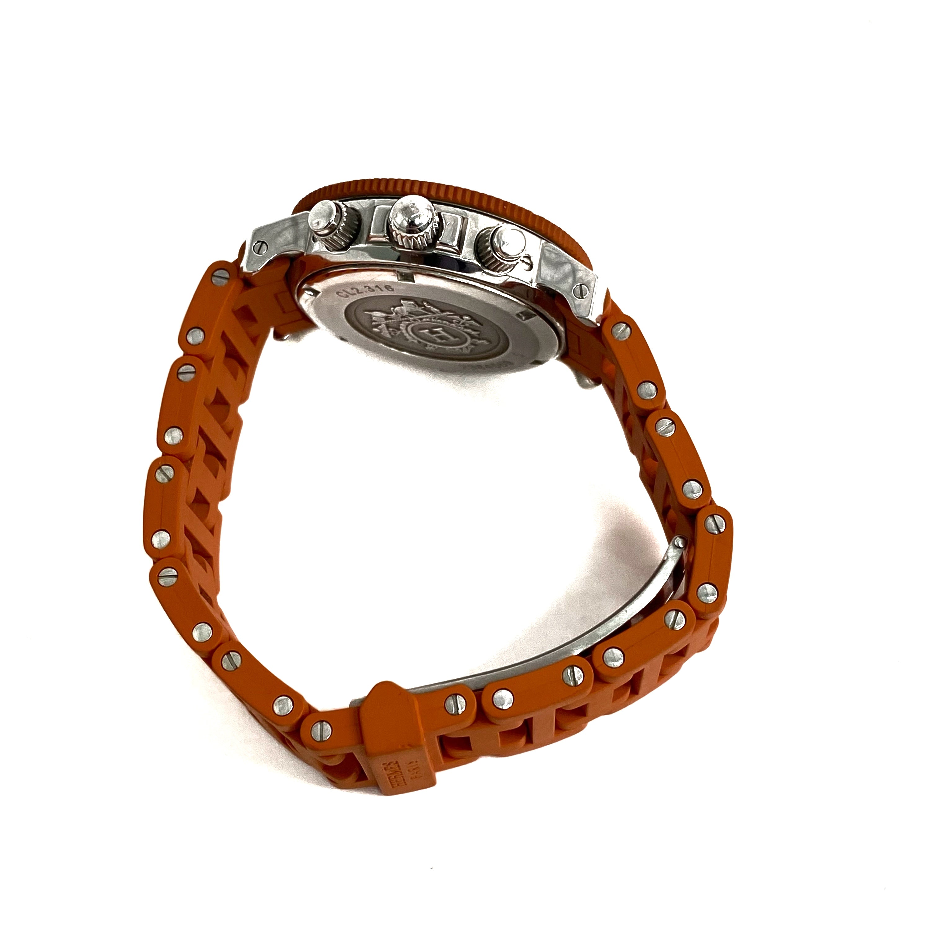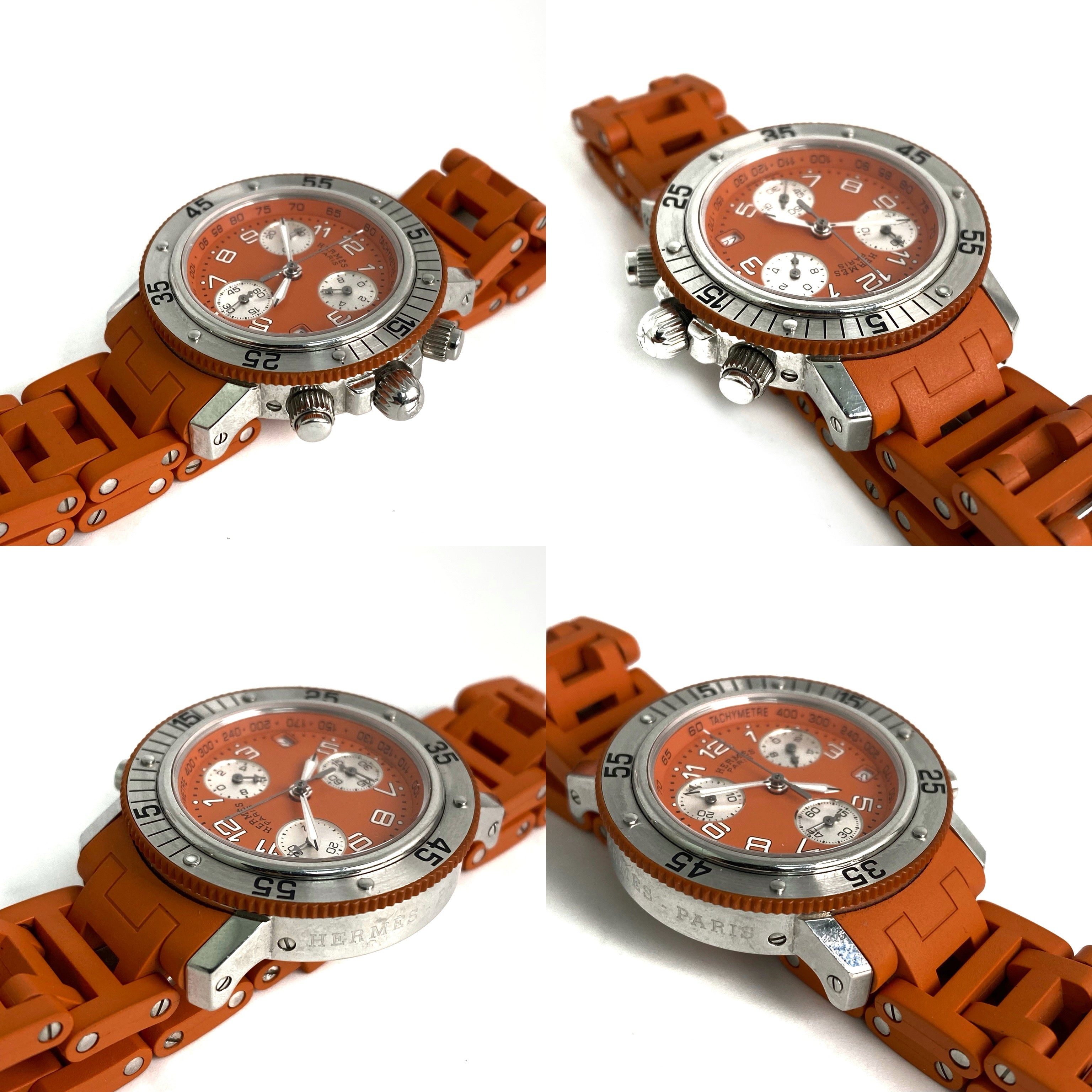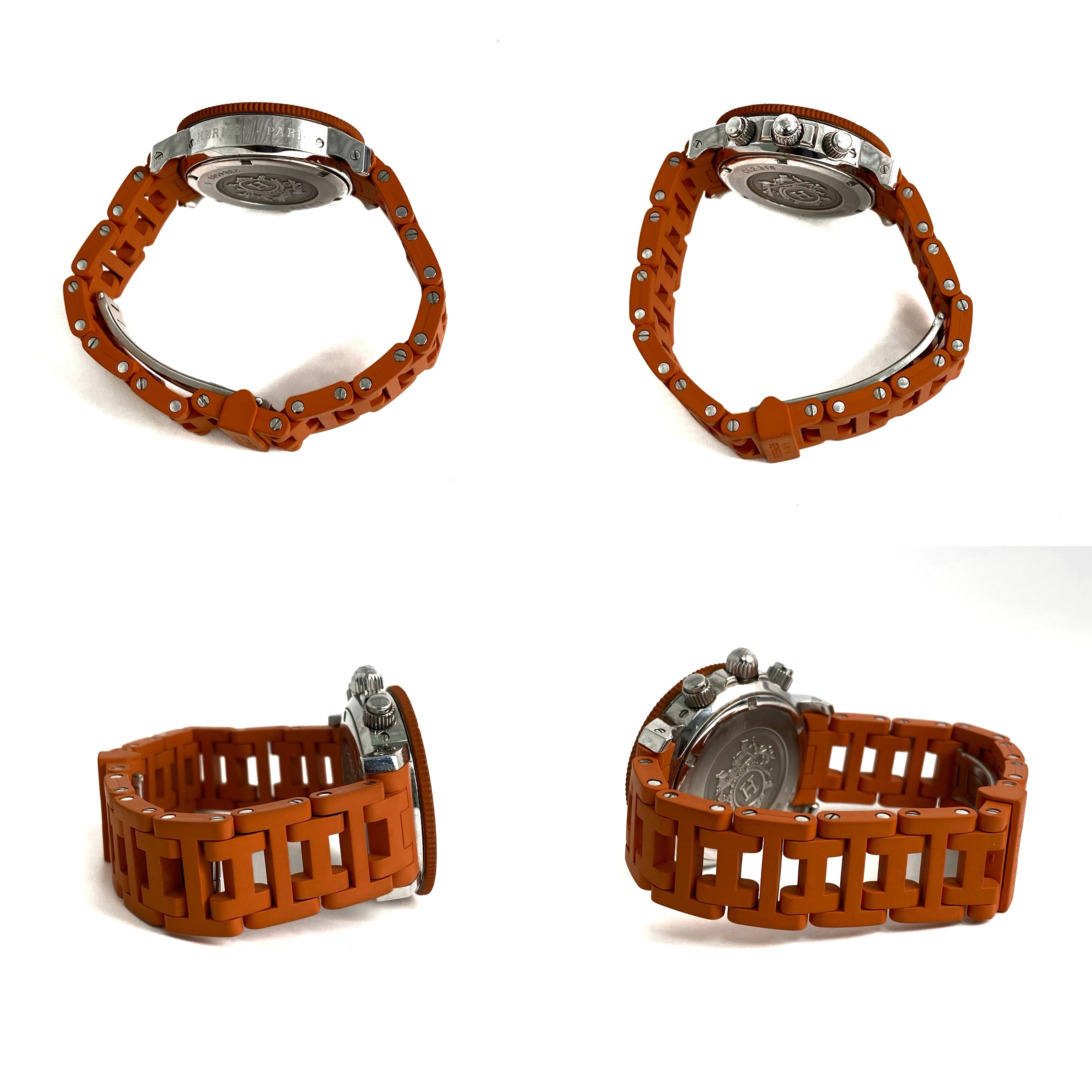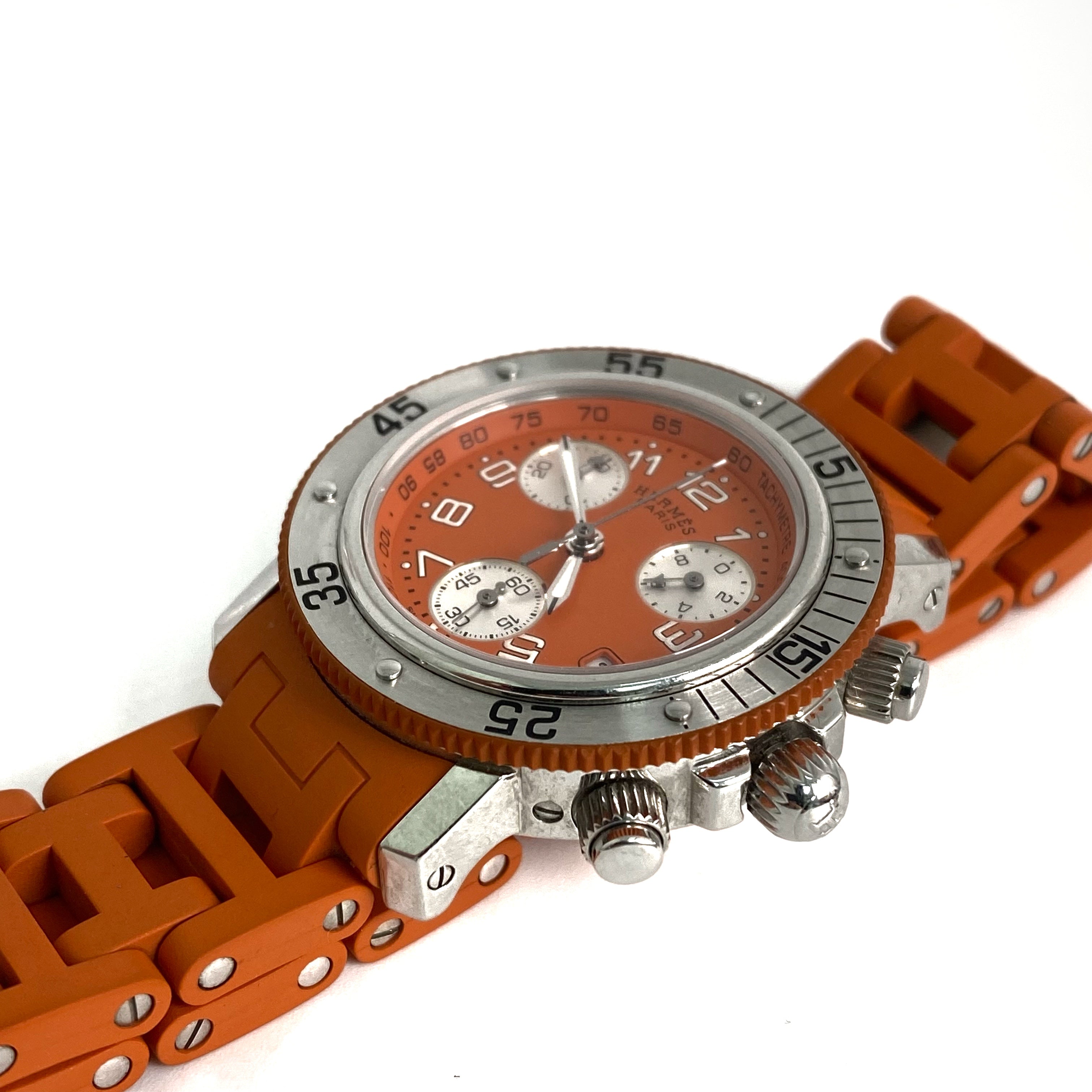 ☆ Hermes 愛馬仕 Orange Rubber Silver Stainless Steel Quartz Watch 橙色橡膠銀色不銹鋼石英錶 - 257022544