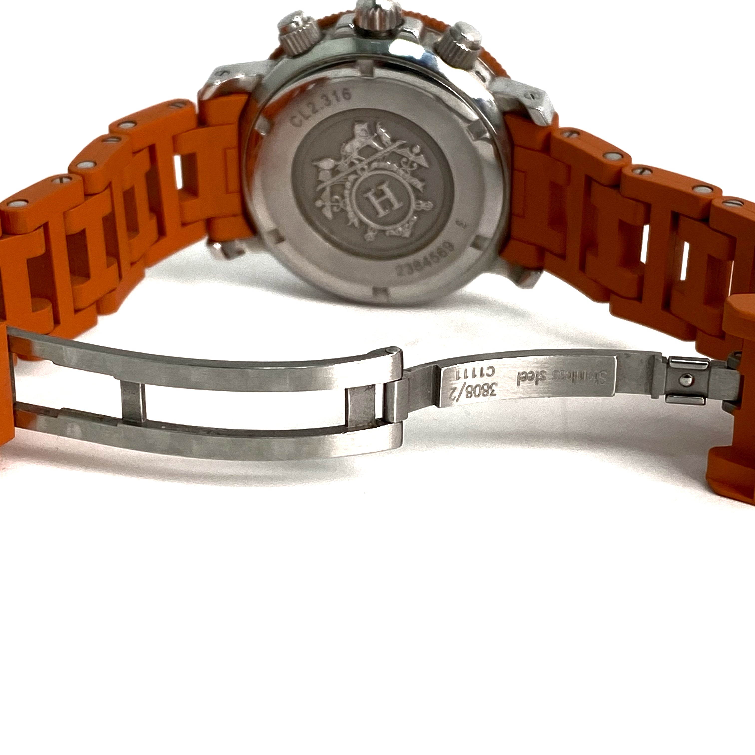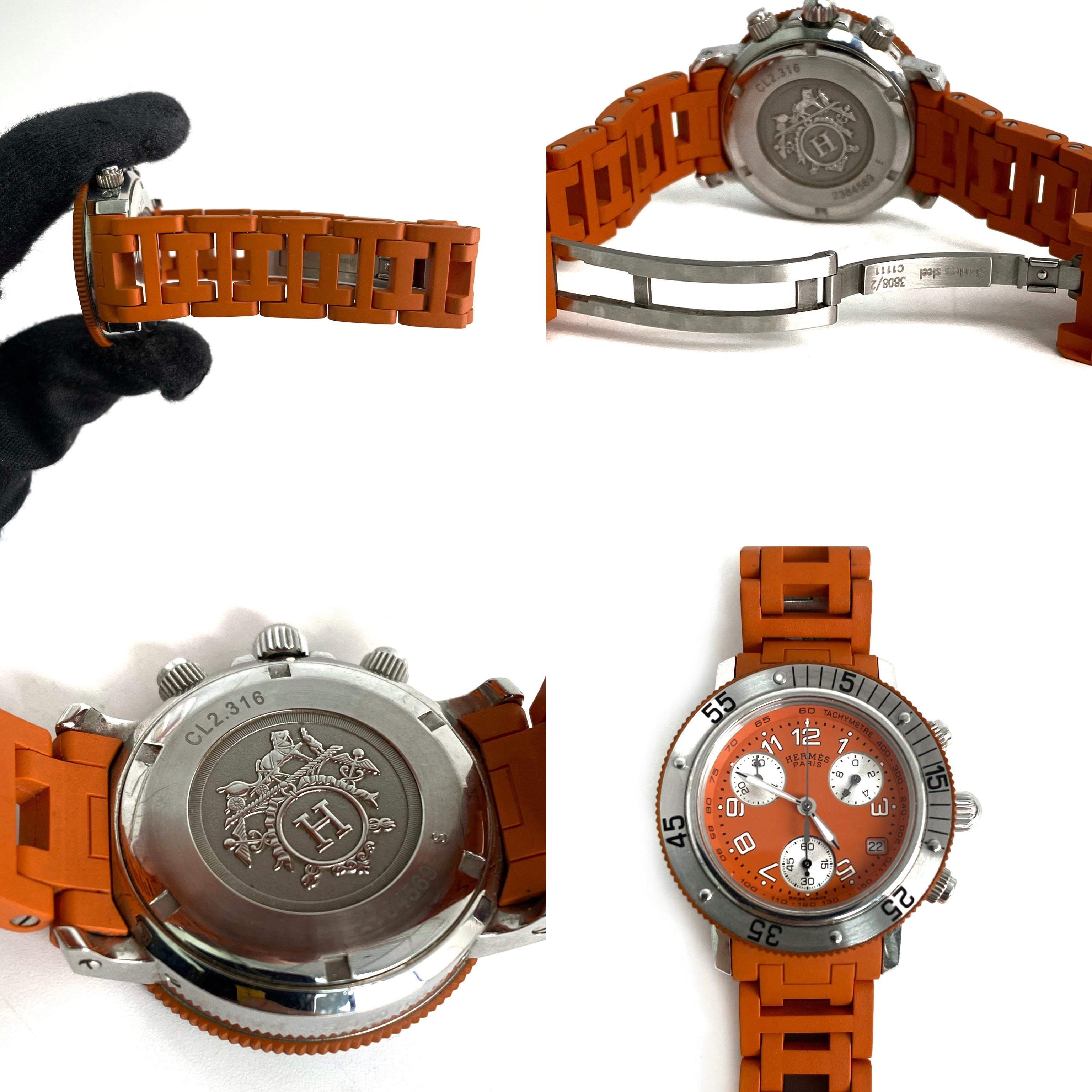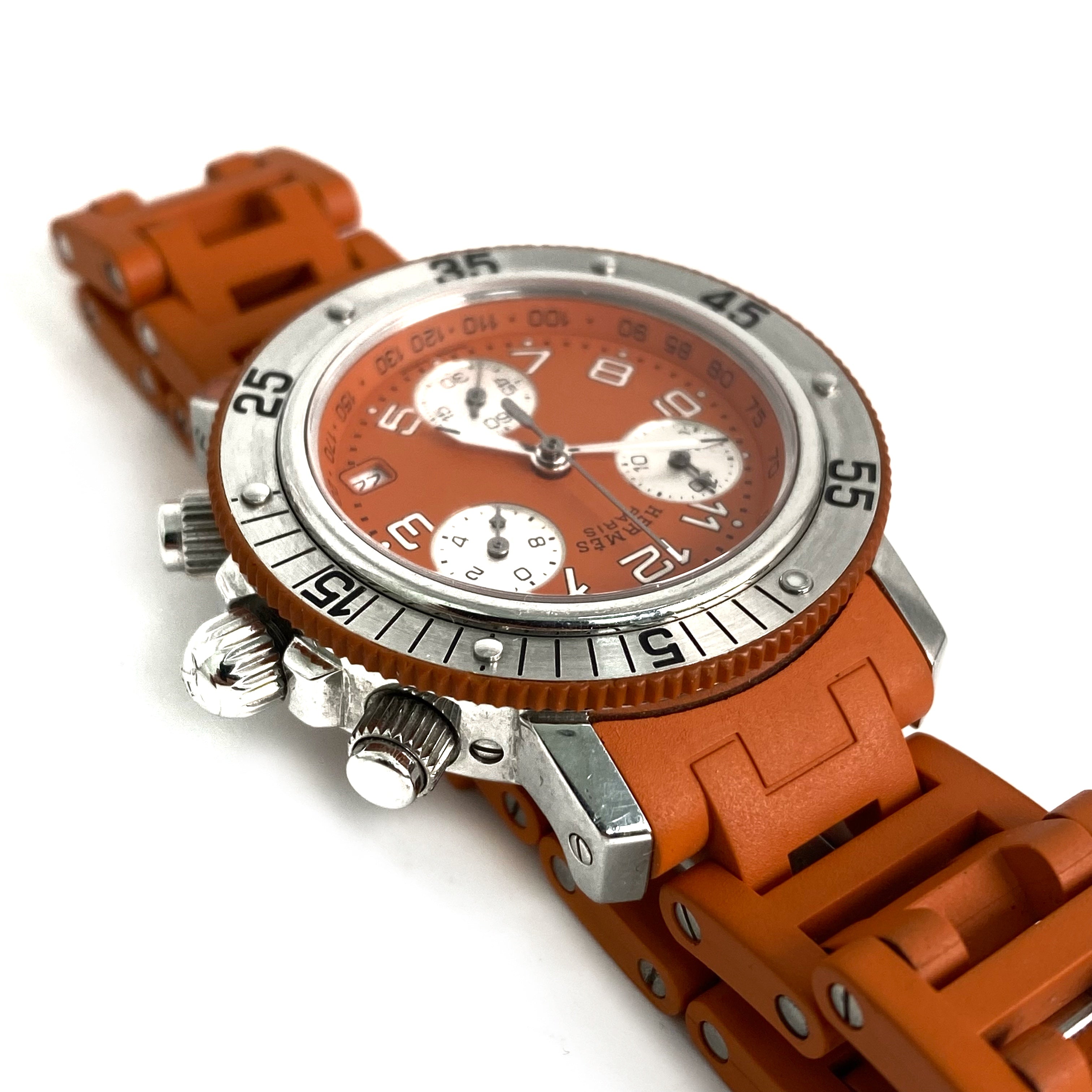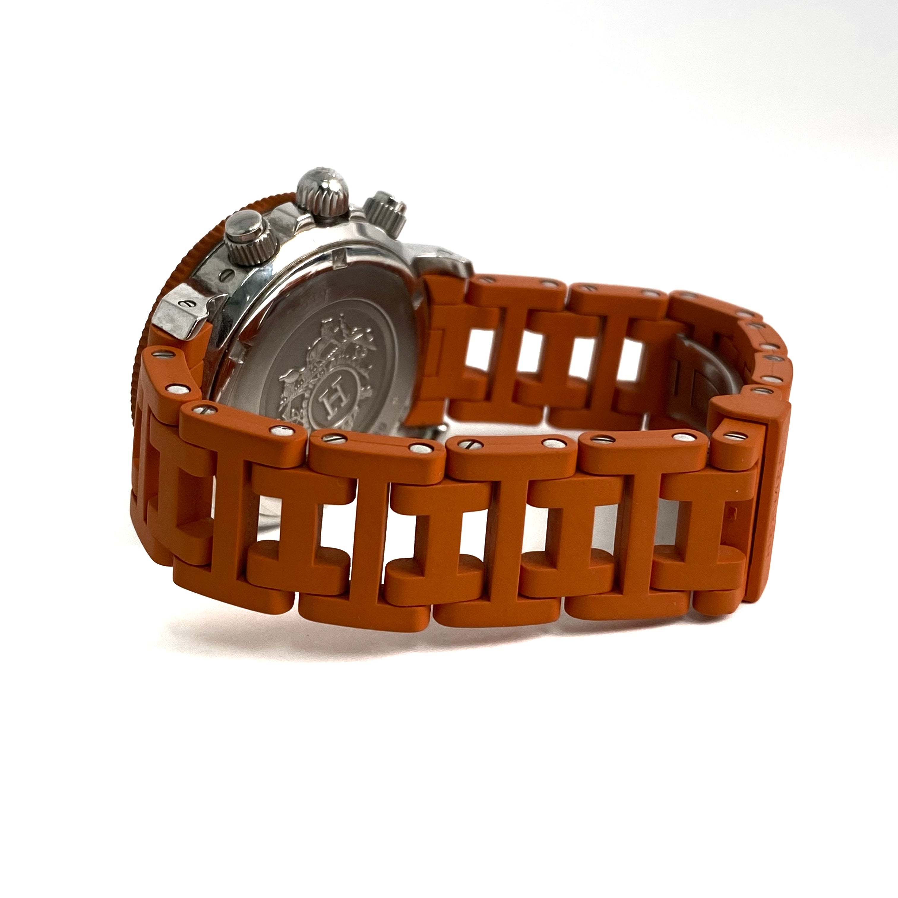 ☆ Hermes 愛馬仕 Orange Rubber Silver Stainless Steel Quartz Watch 橙色橡膠銀色不銹鋼石英錶 - 257022544