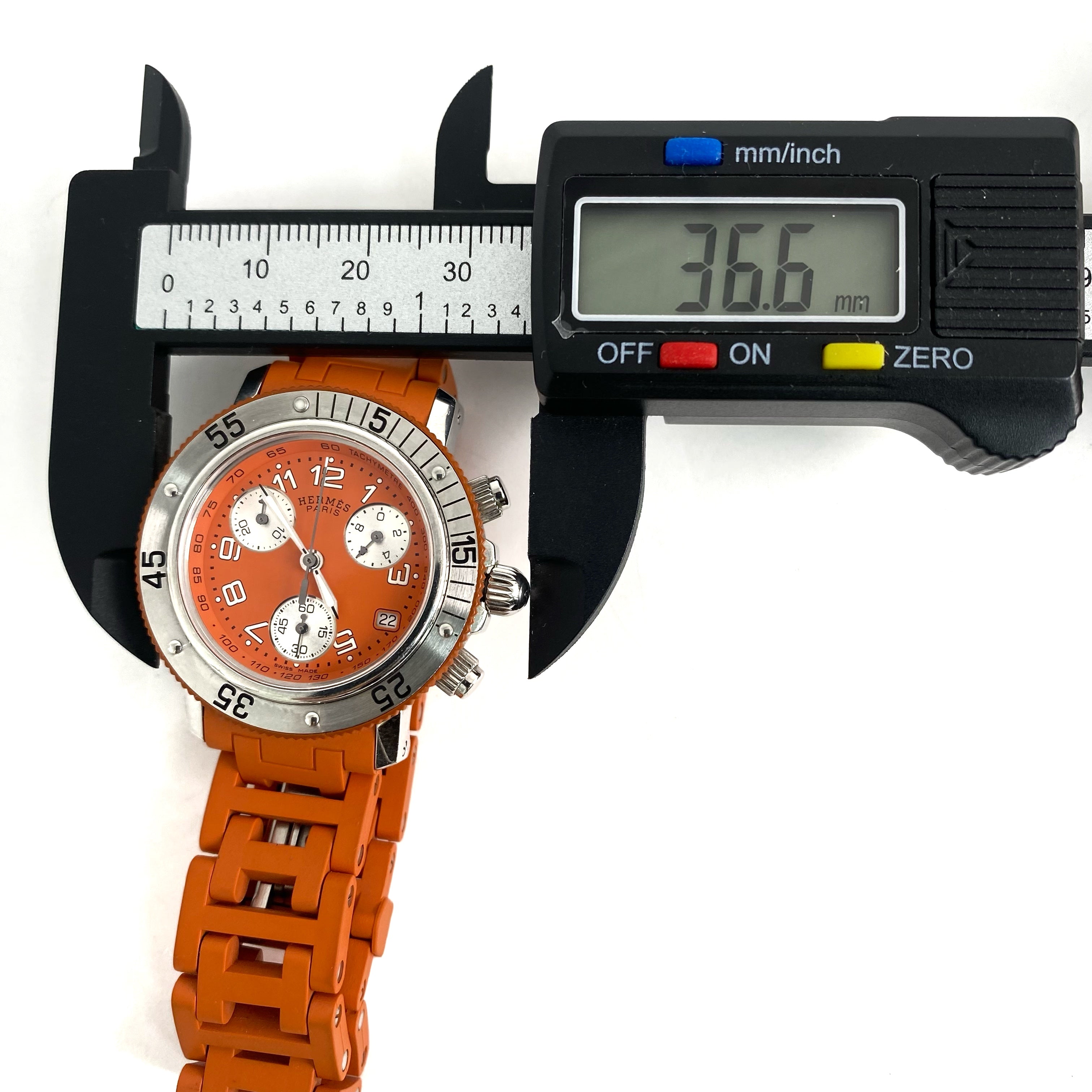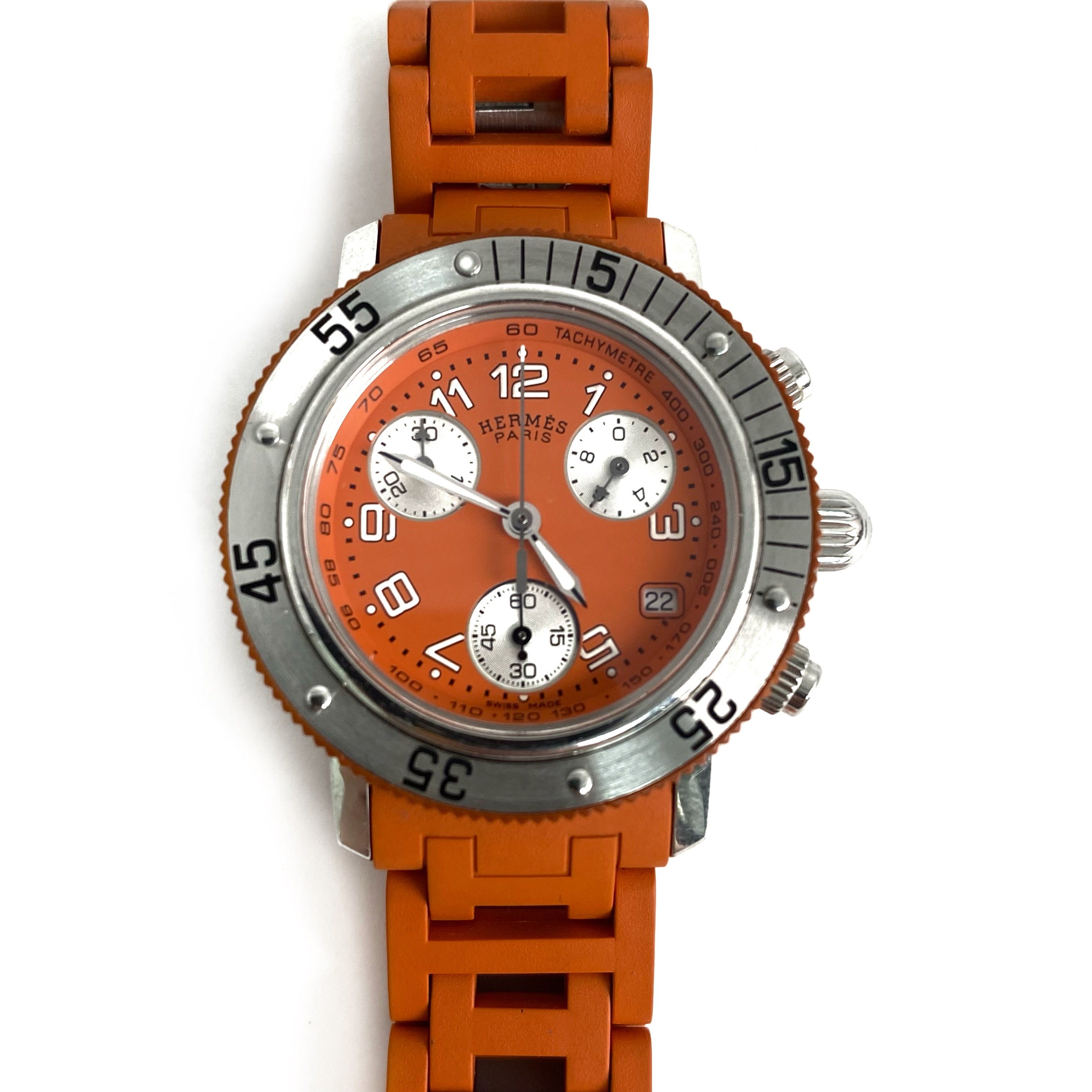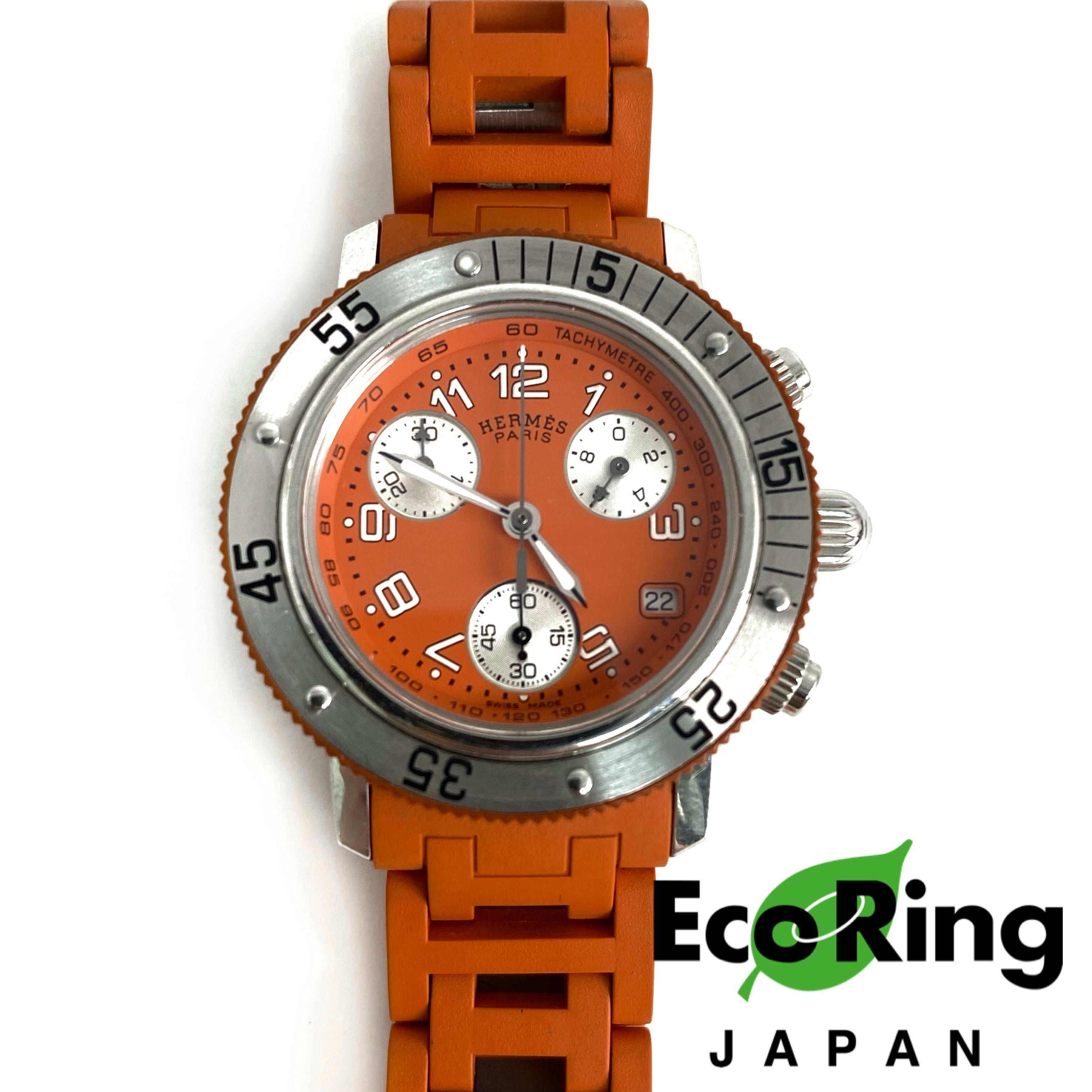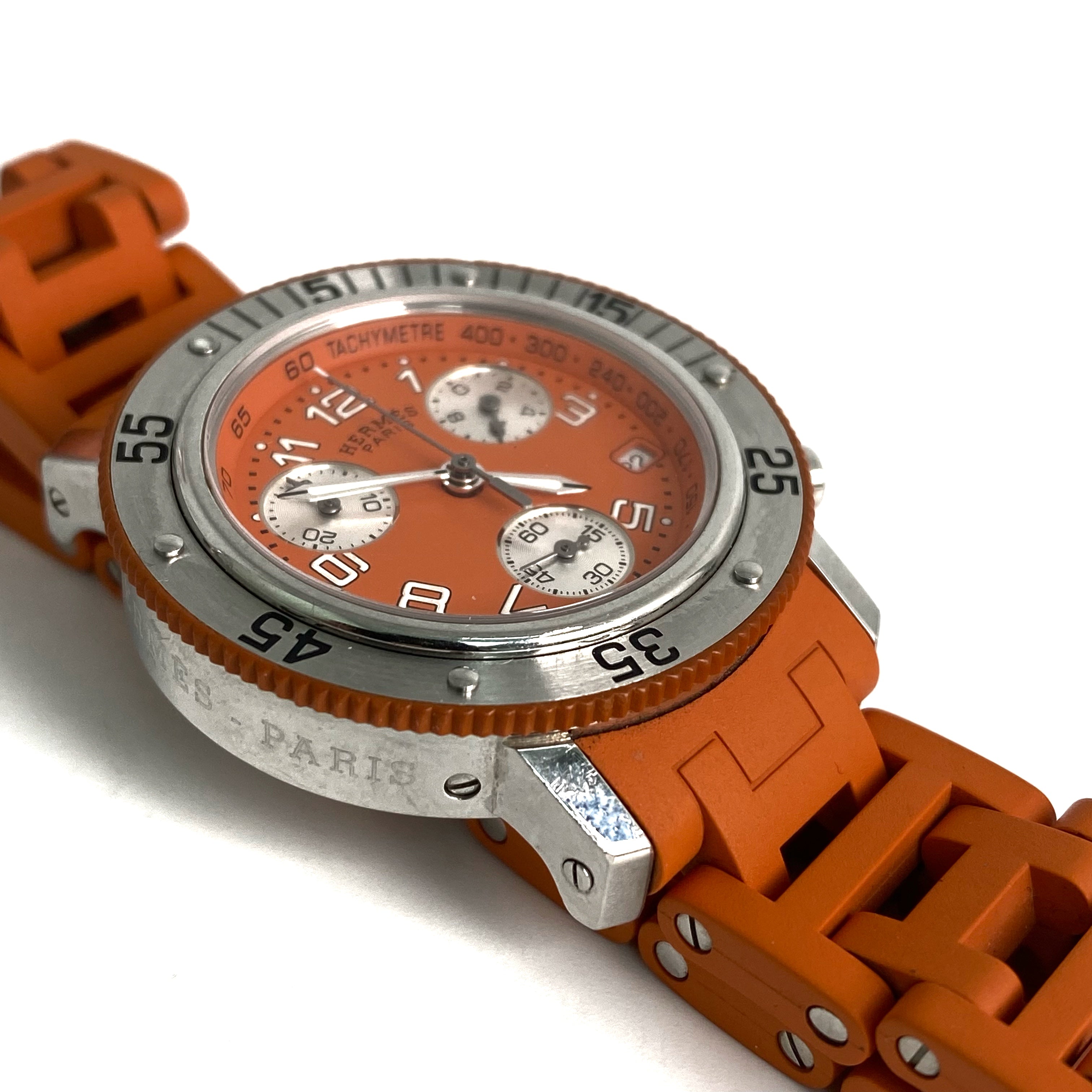 ☆ Hermes 愛馬仕 Orange Rubber Silver Stainless Steel Quartz Watch 橙色橡膠銀色不銹鋼石英錶 - 257022544