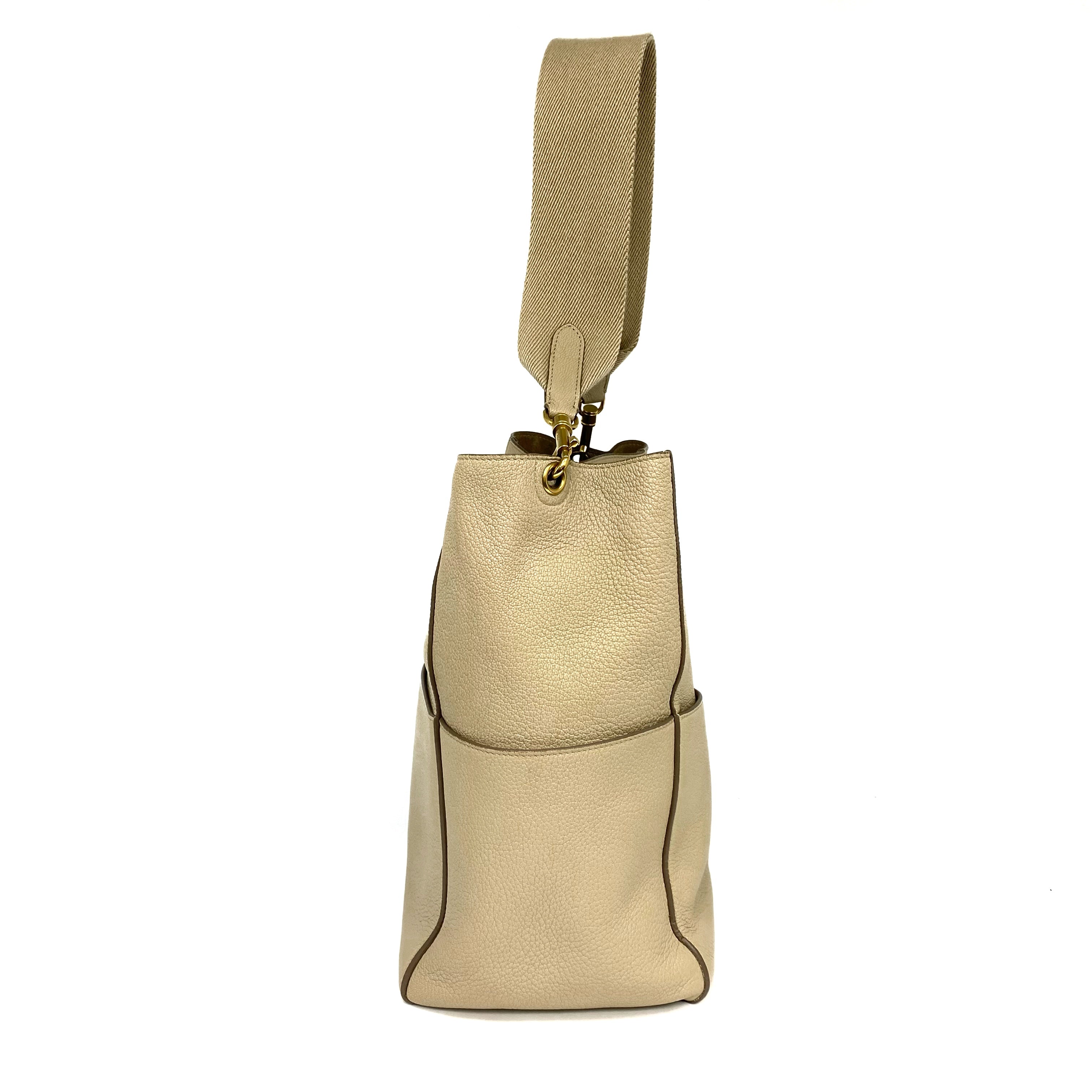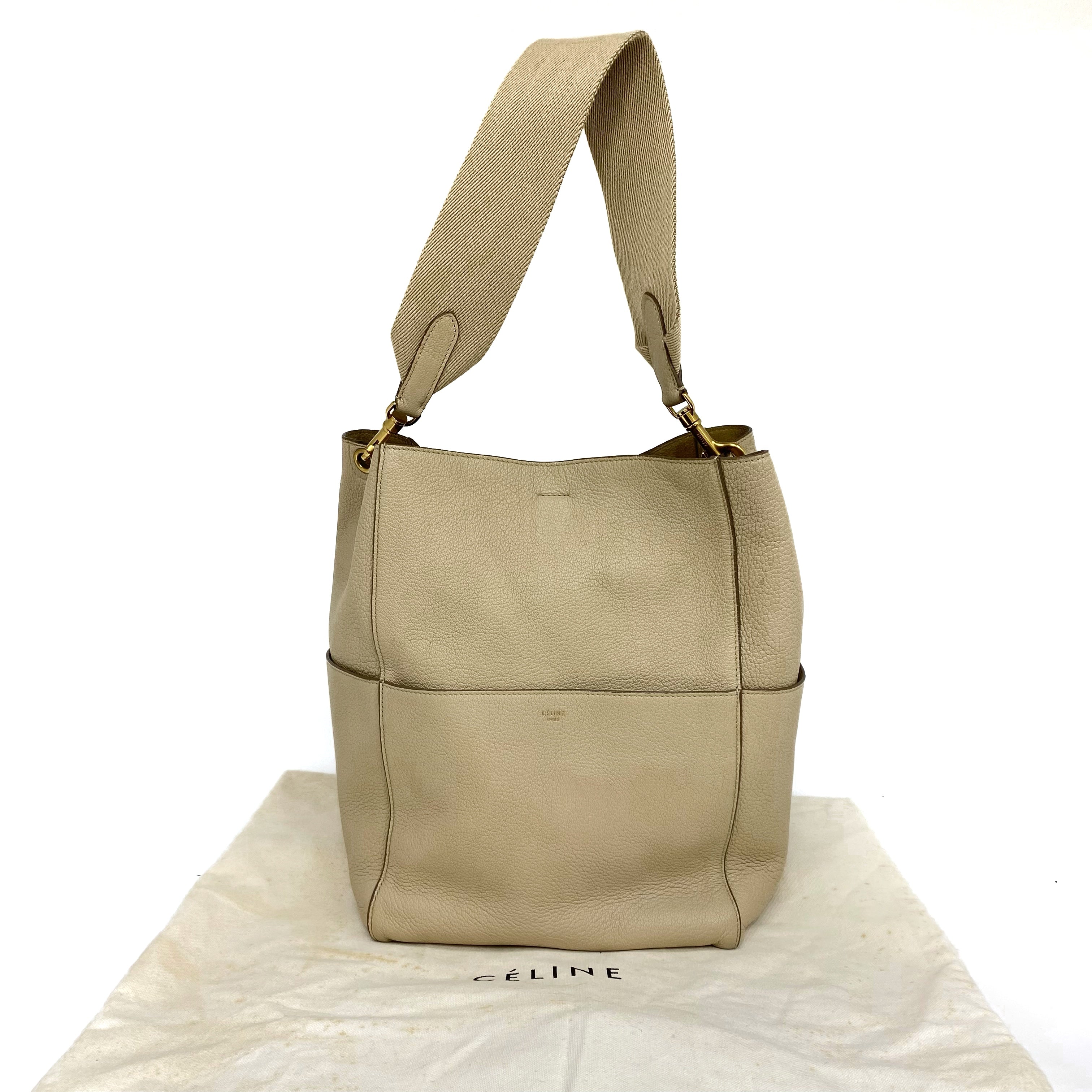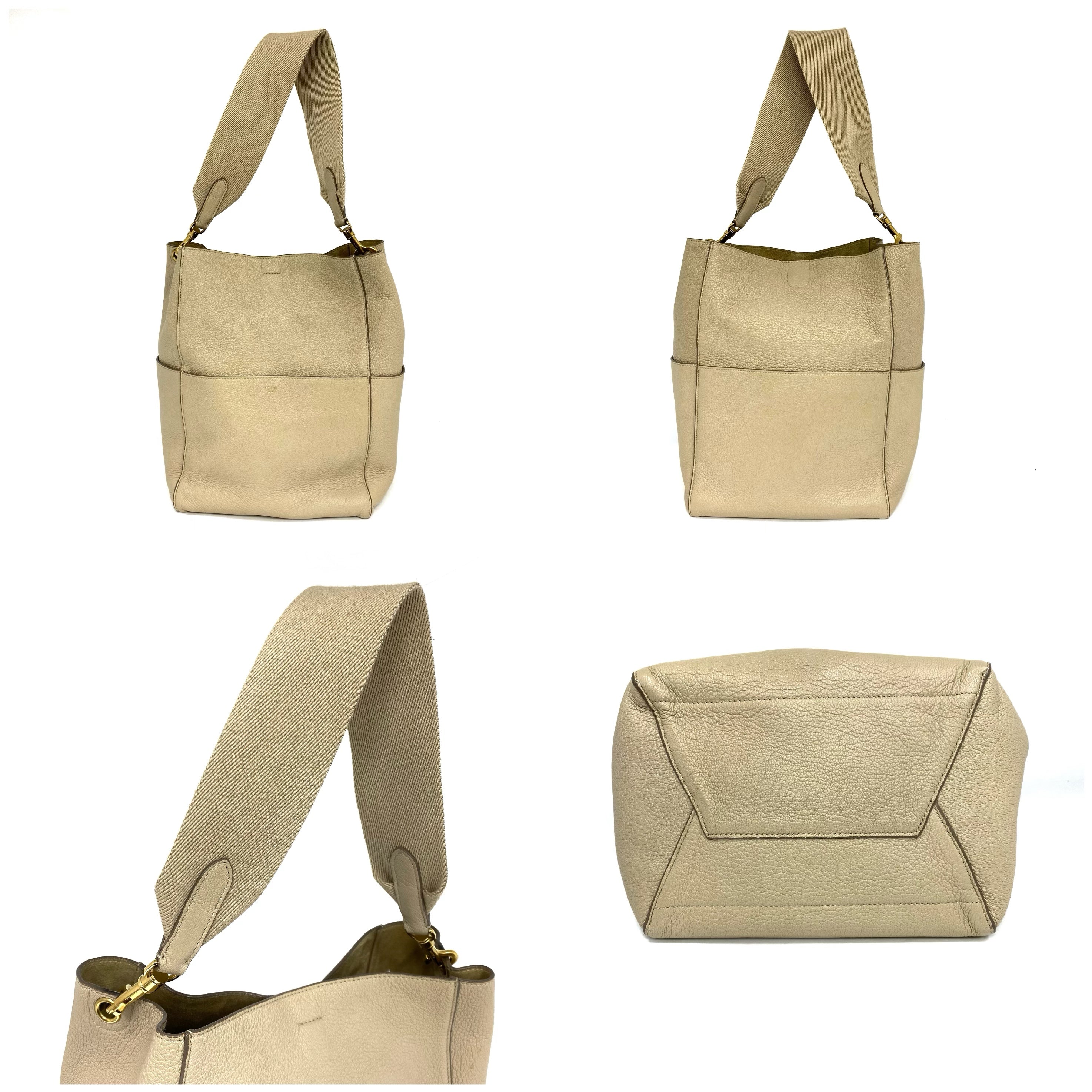 ☆ Celine 思琳 Beige Calfskin Sangle Shoulder Bag 米色小牛皮肩背袋 - 257022560