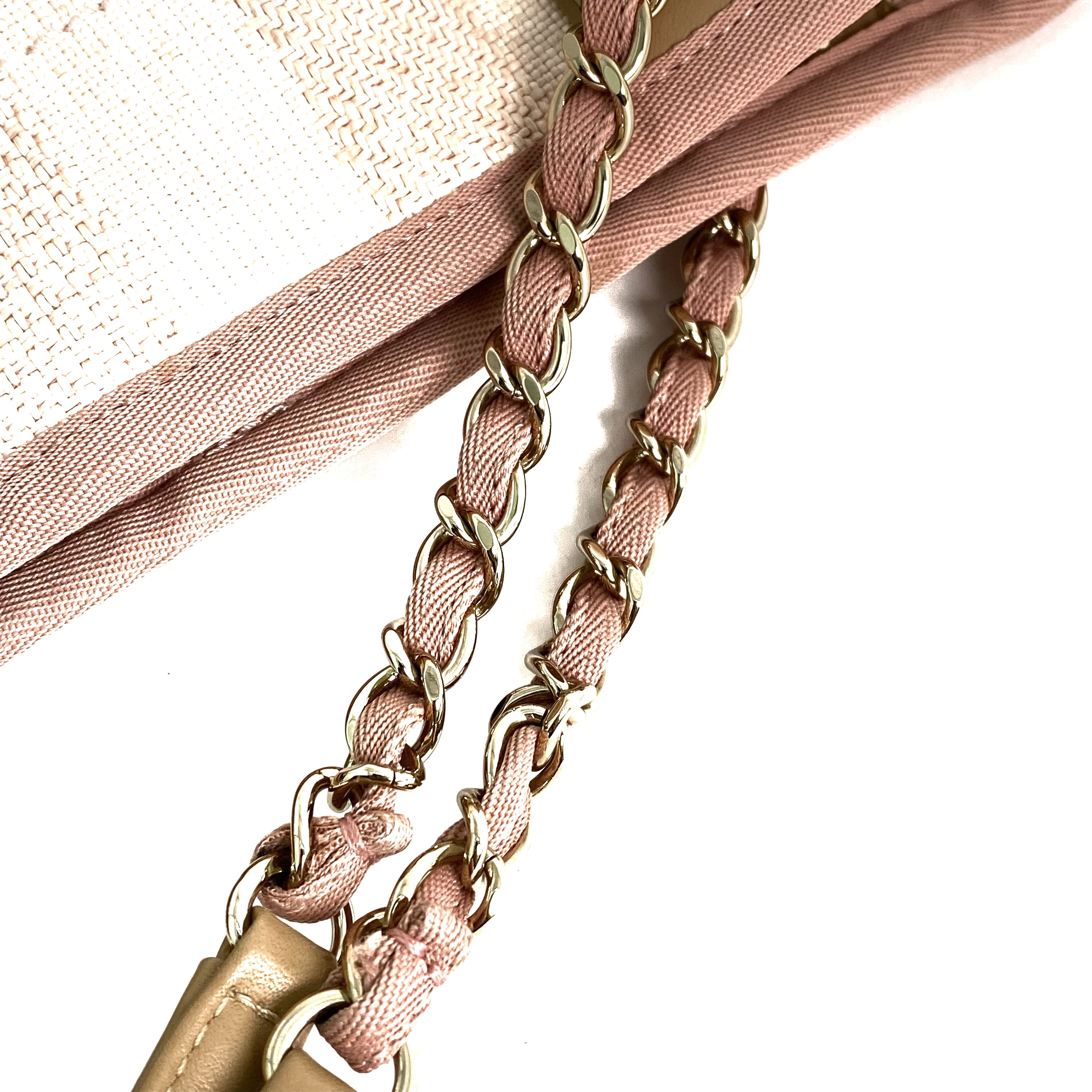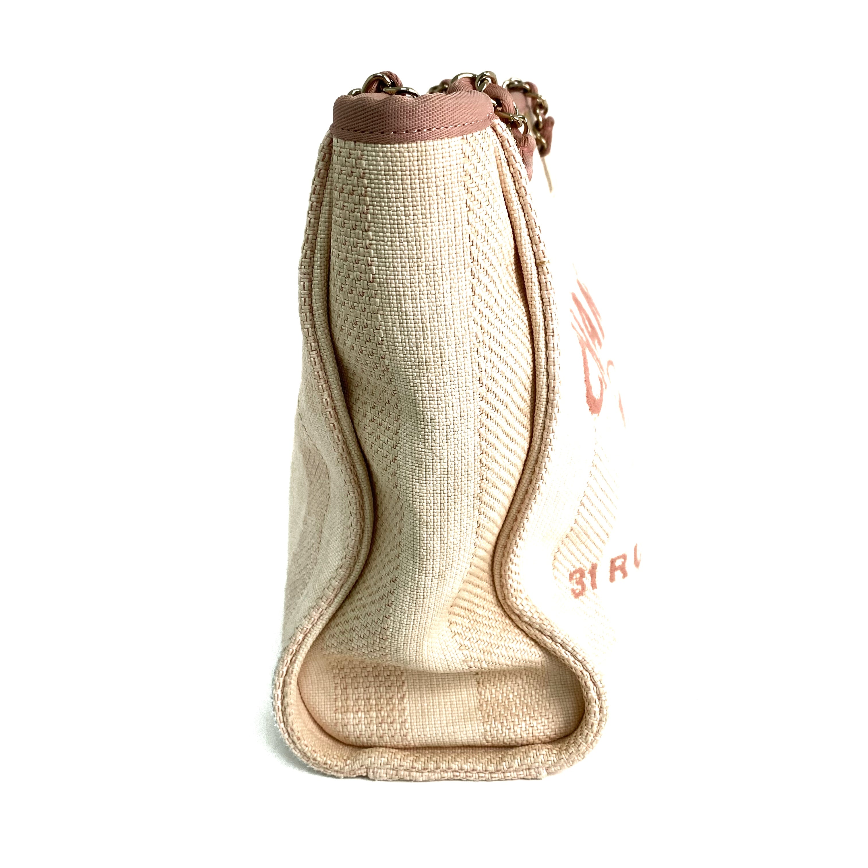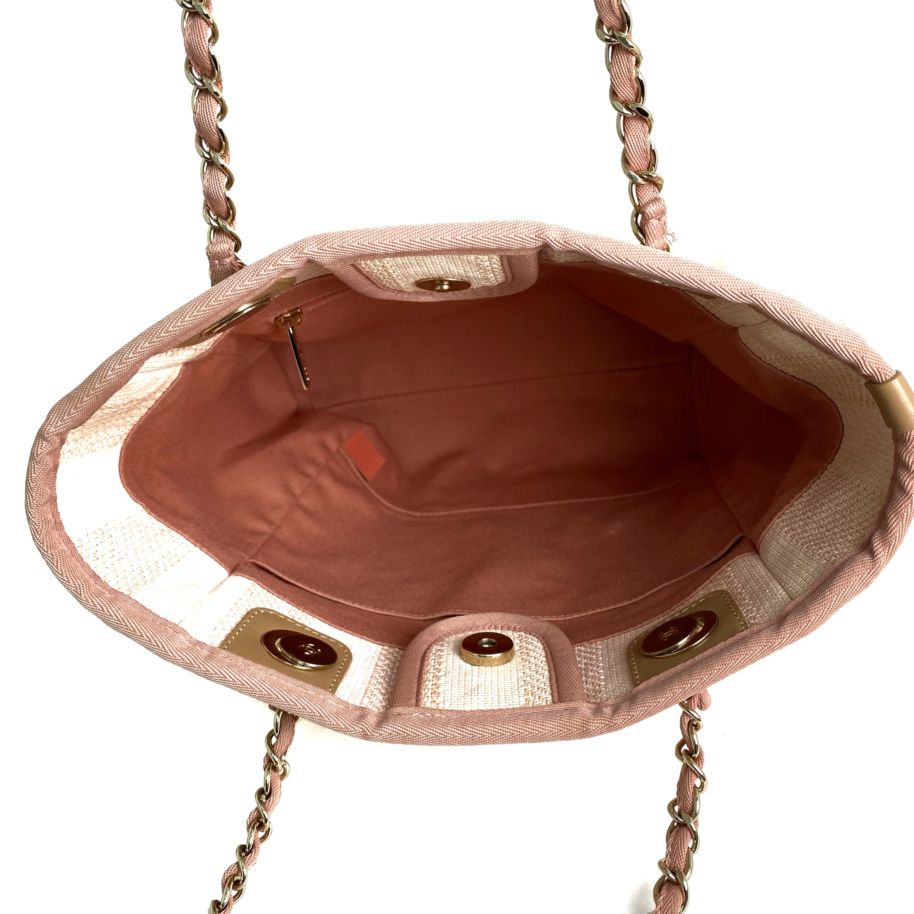 △ Chanel 香奈兒 Pink Canvas Gold Tone Metal Deauville Chain Tote Bag #S No.29 粉紅色帆布金色金屬鎖鏈托特袋No.29 - 257022782