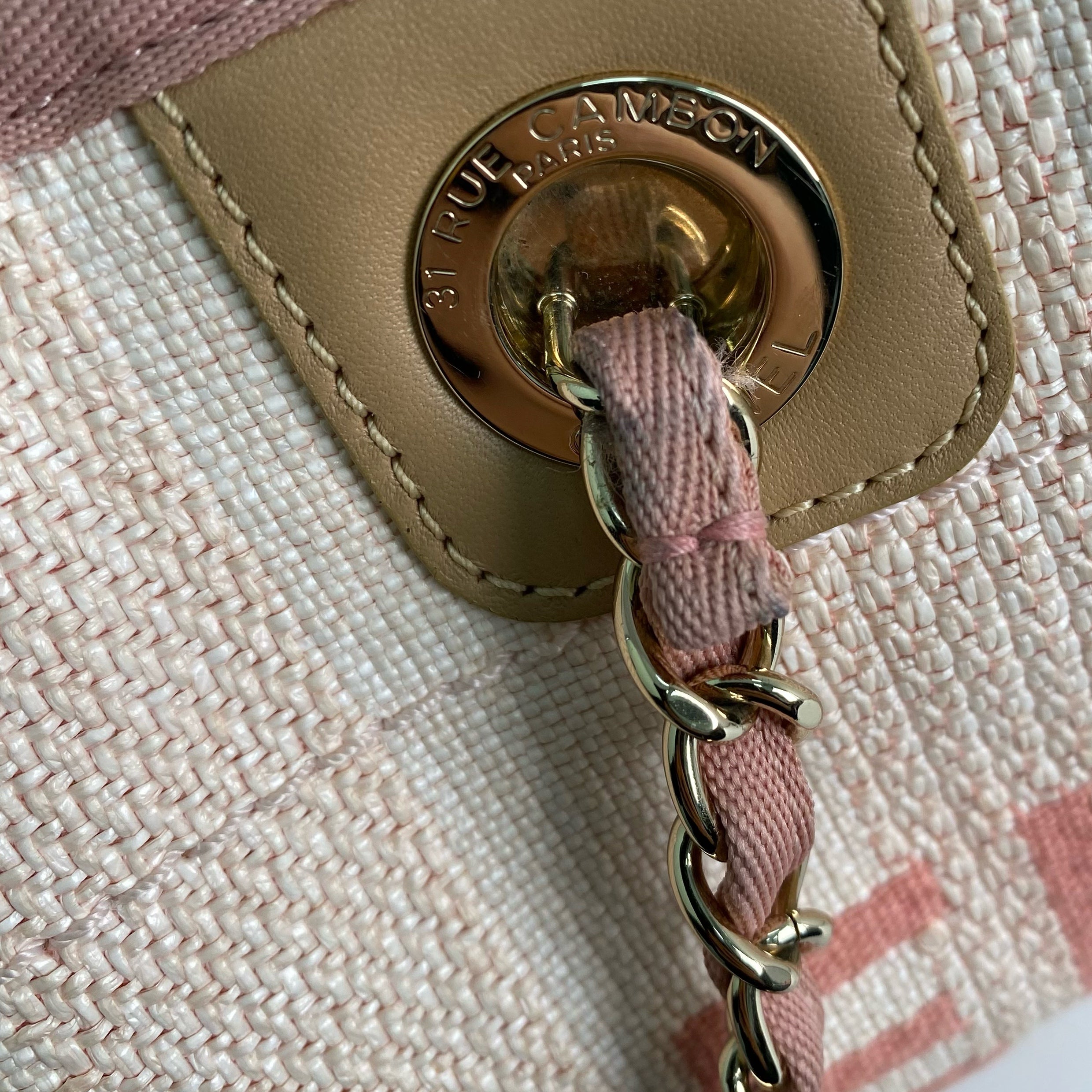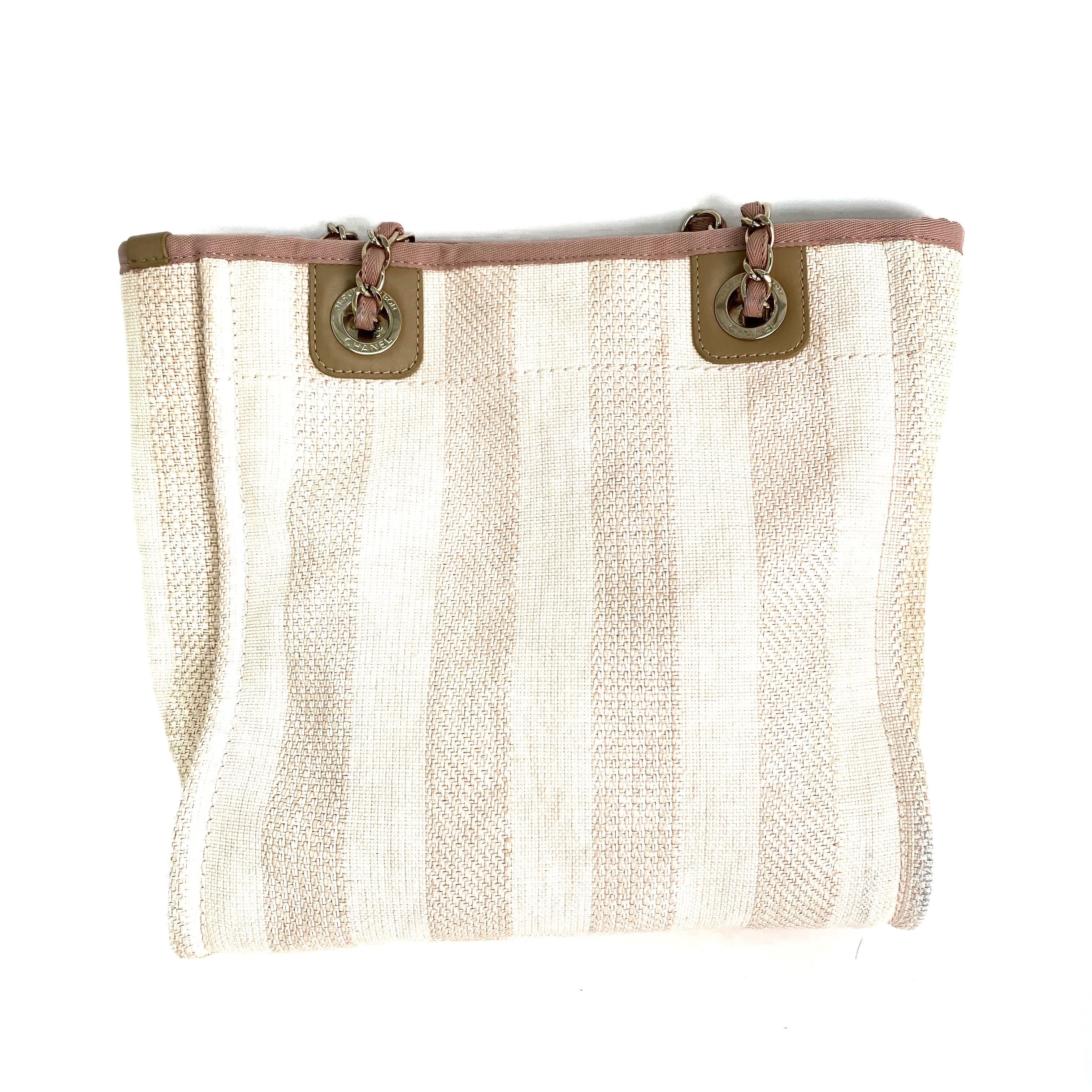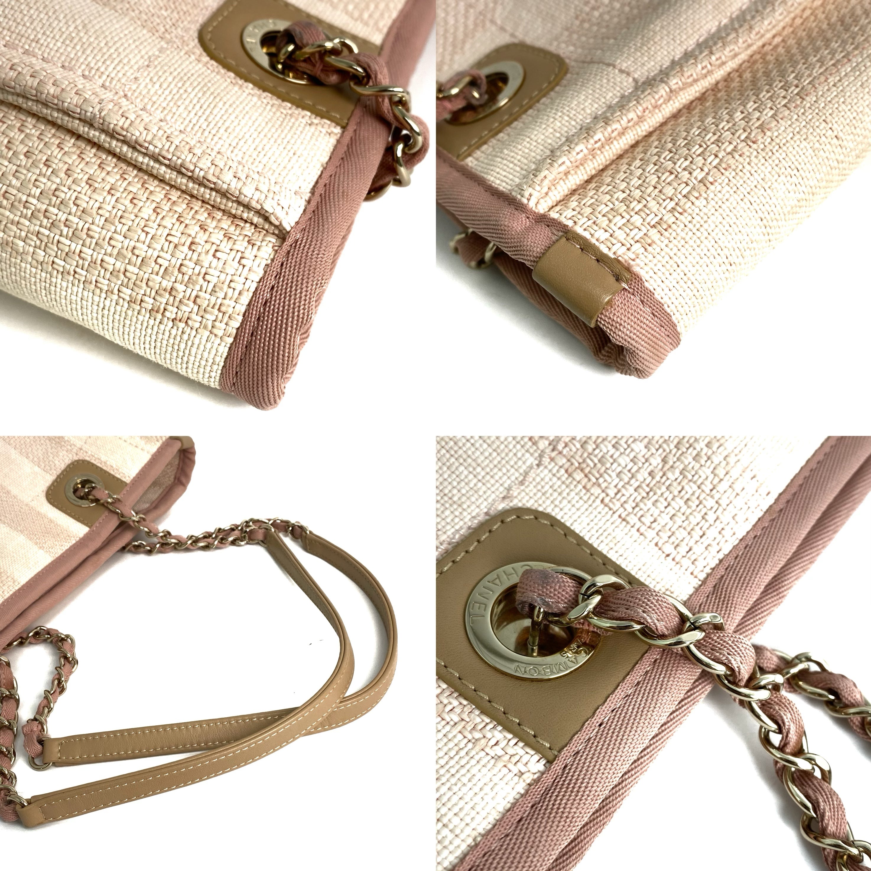△ Chanel 香奈兒 Pink Canvas Gold Tone Metal Deauville Chain Tote Bag #S No.29 粉紅色帆布金色金屬鎖鏈托特袋No.29 - 257022782