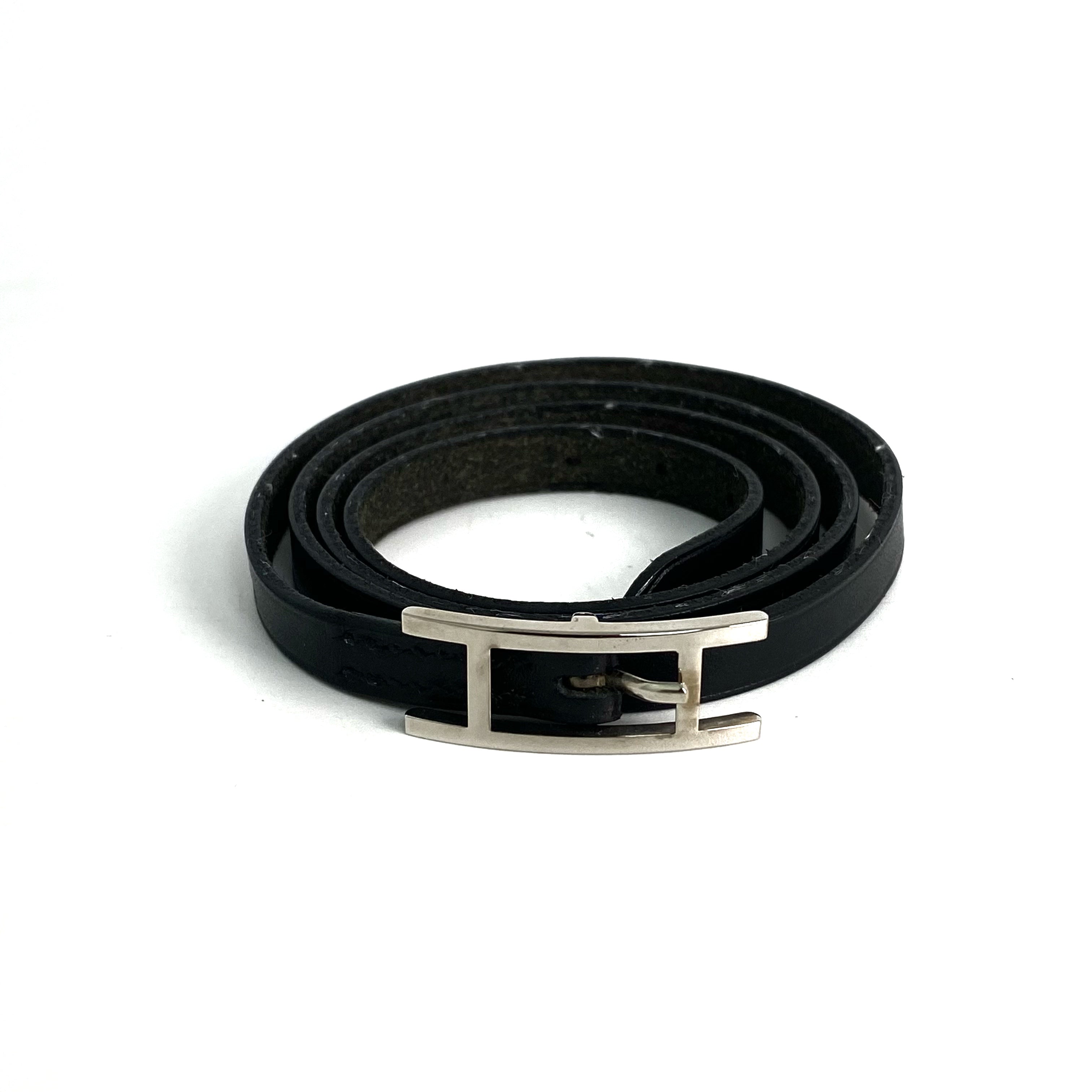 ☆Hermes愛馬仕 Behapi Black Calfskin Double Tour Bracelet 黑色小牛皮雙圈手帶 -257023748