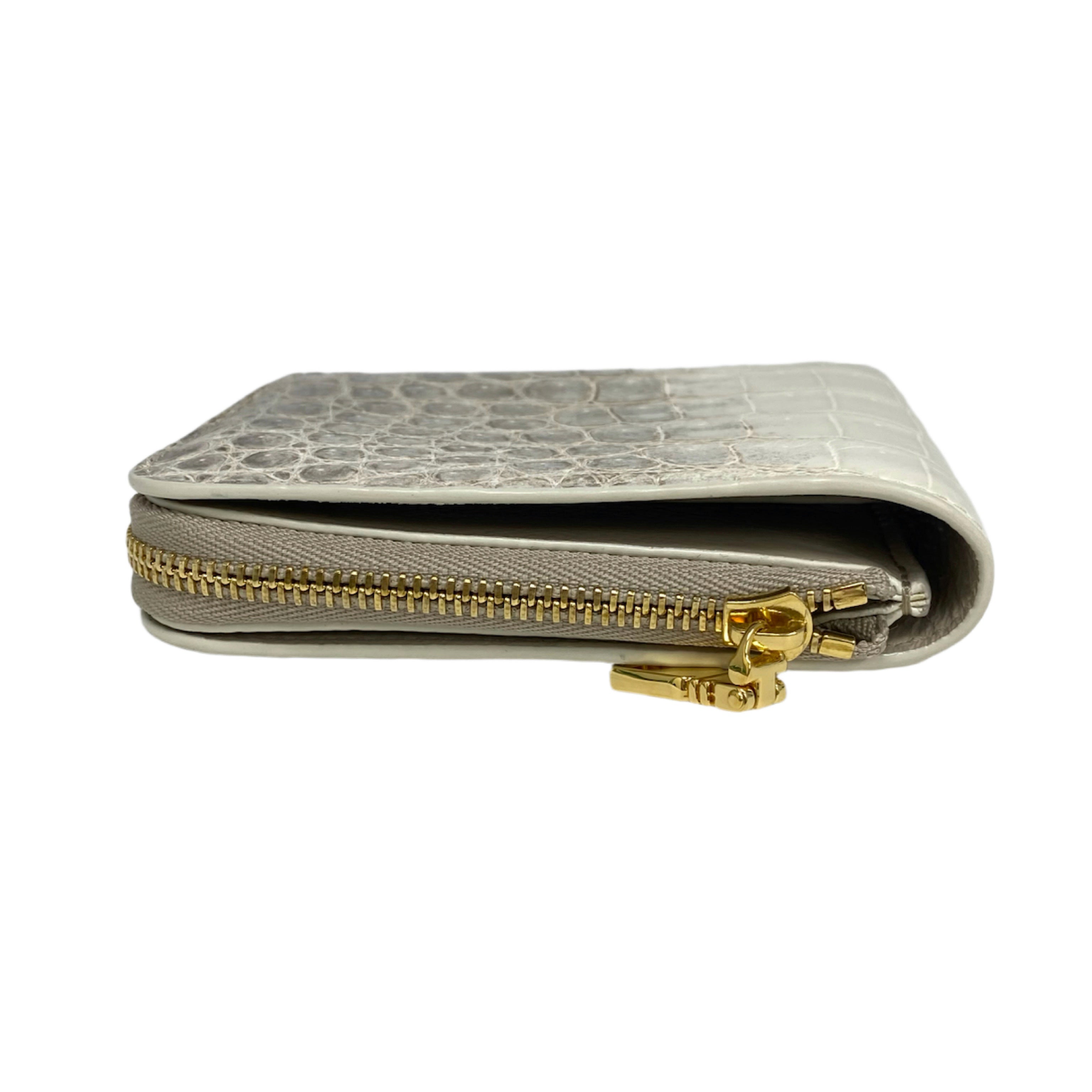 ☆【只寄香港 Ship to HK Only】Kwanpen White & Beige Crocodile Skin Short Wallet 白色 淺褐色鱷魚皮短銀包- 257027560