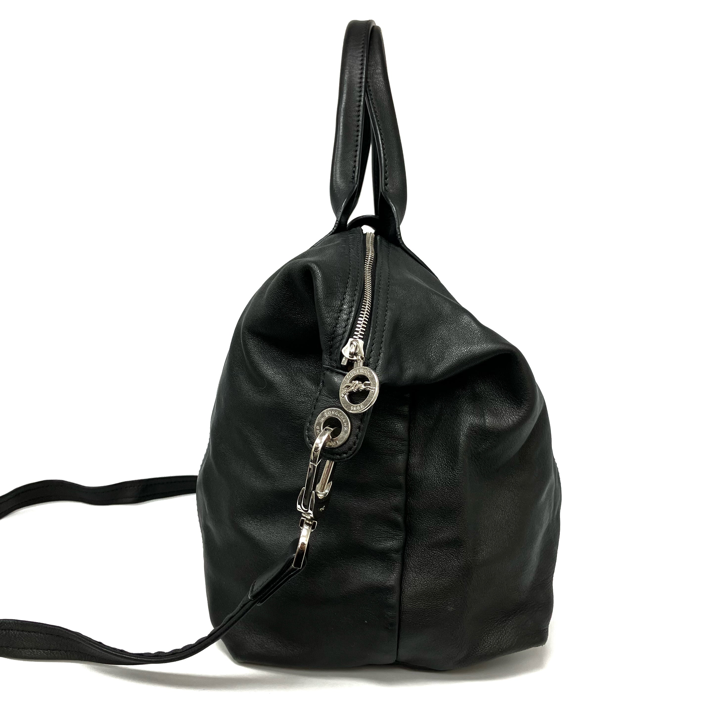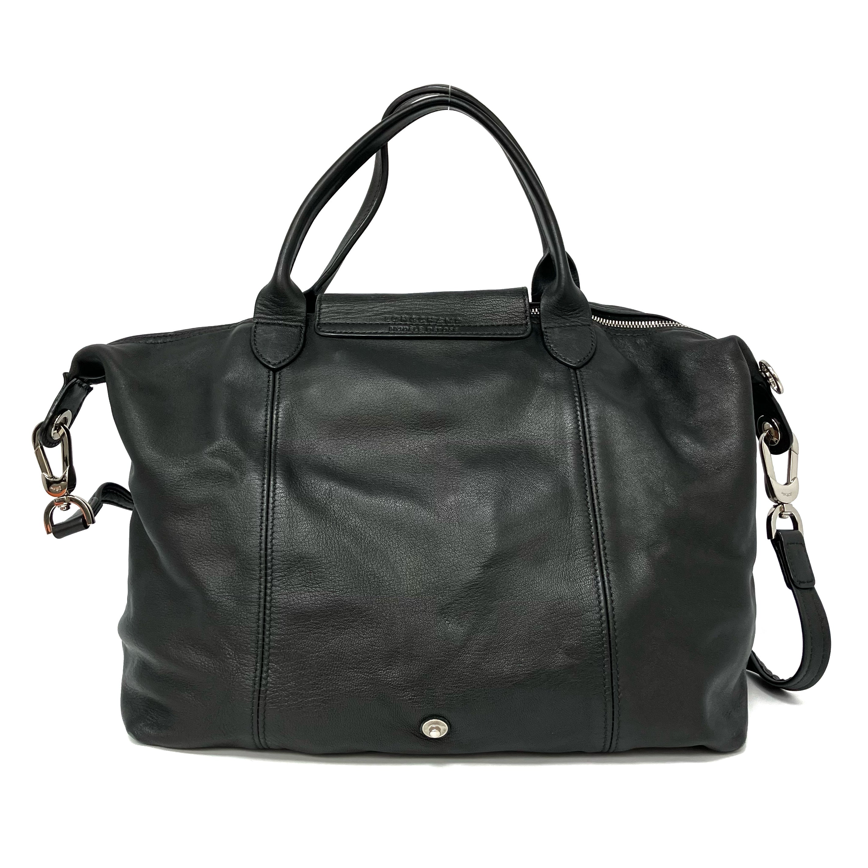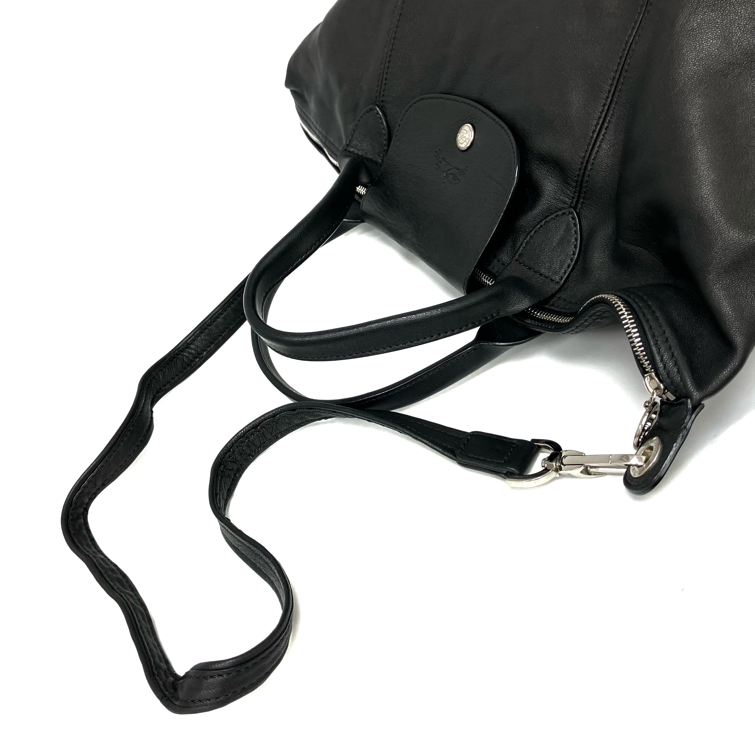 ☆ Longchamp 瓏驤 Black Calfskin 2 Way Bag 黑色小牛皮兩用袋 - 267001344