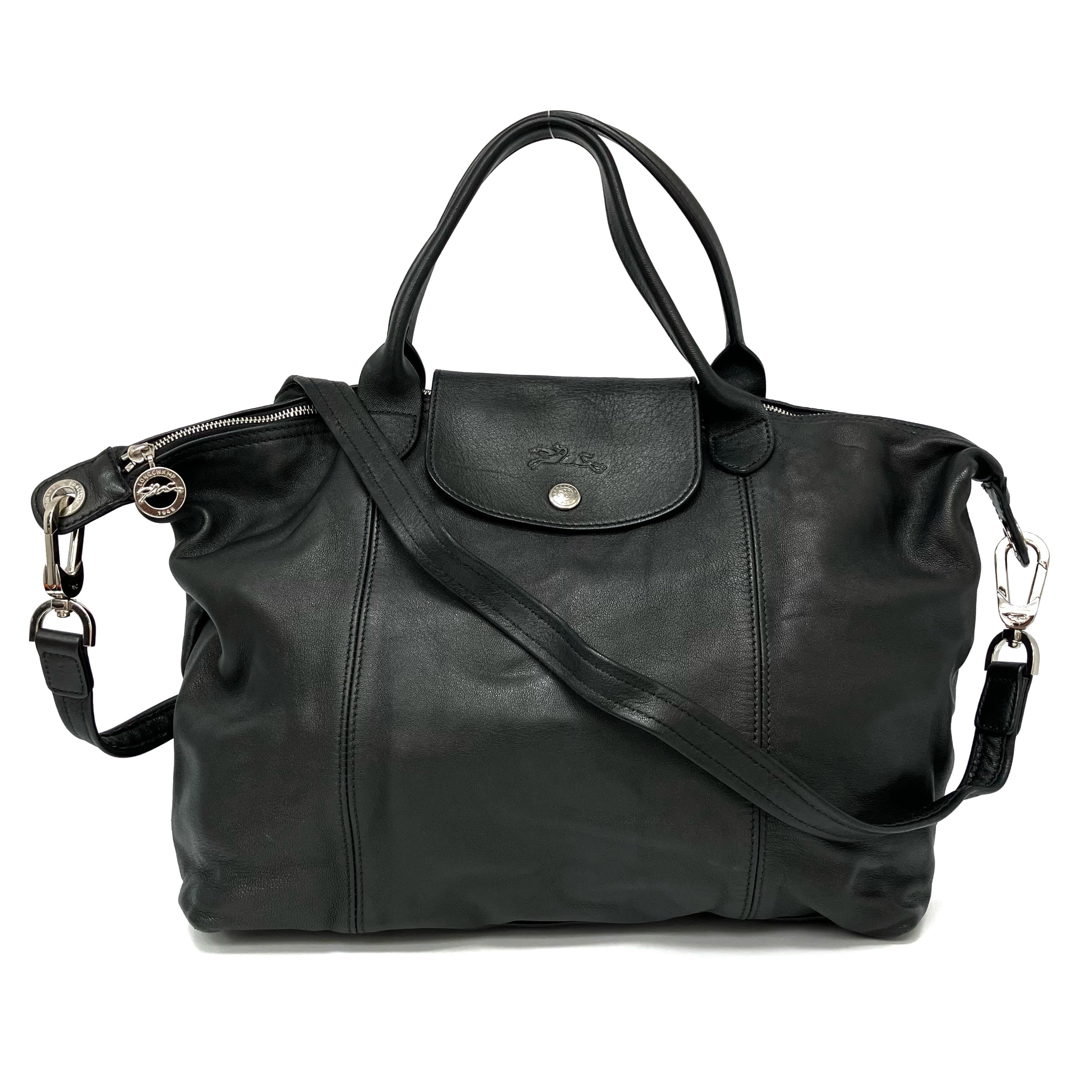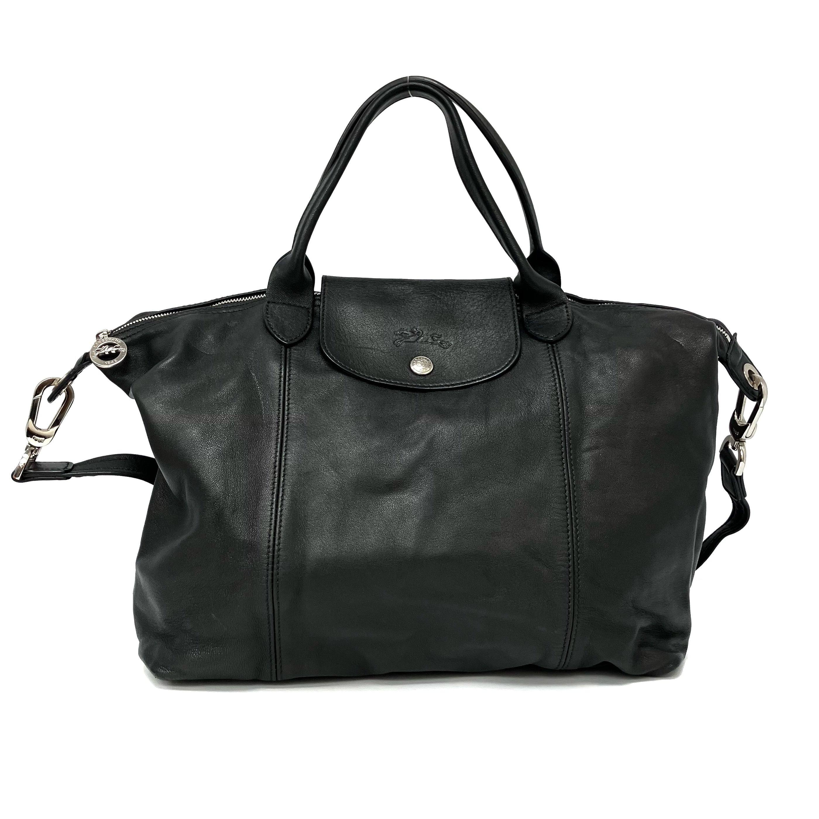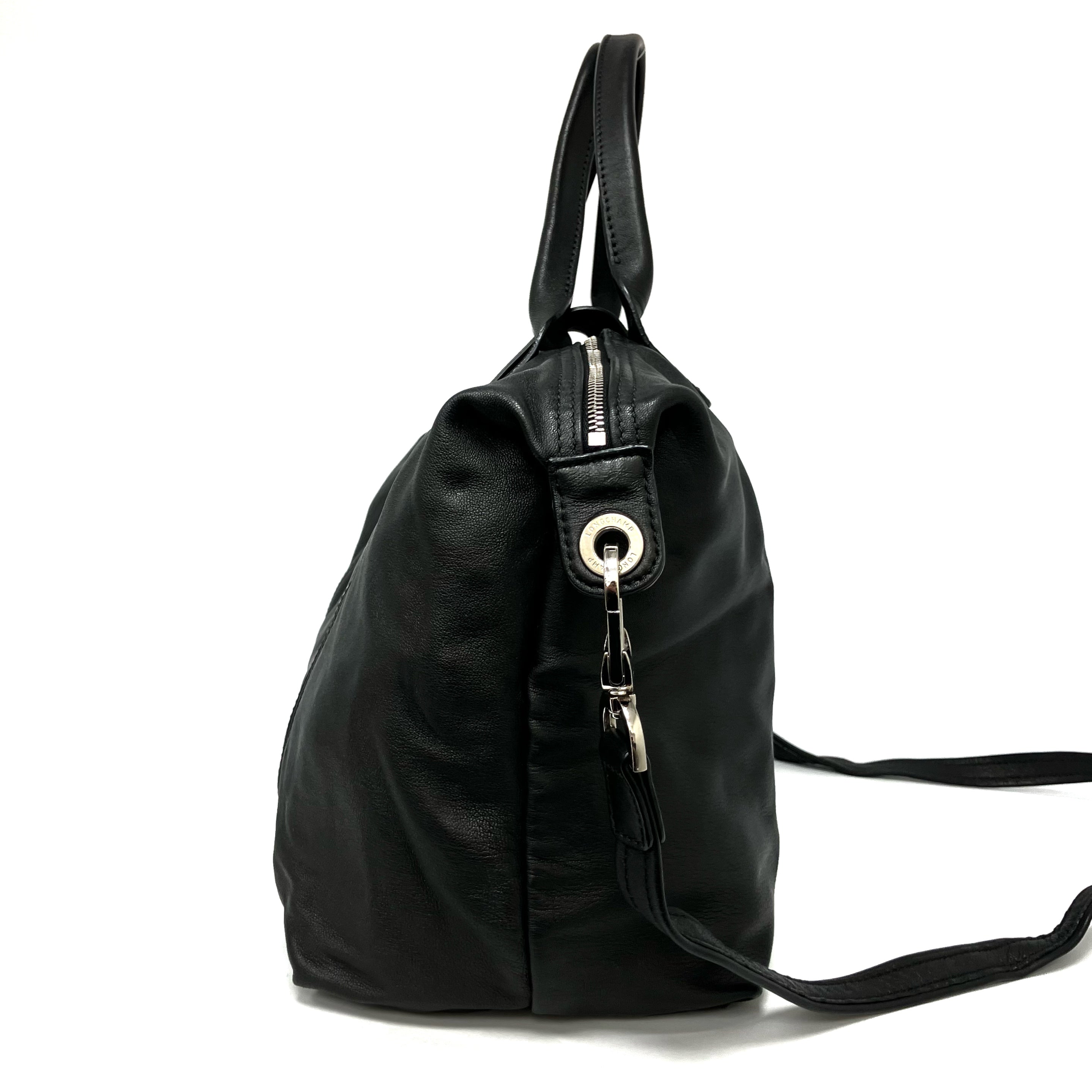 ☆ Longchamp 瓏驤 Black Calfskin 2 Way Bag 黑色小牛皮兩用袋 - 267001344