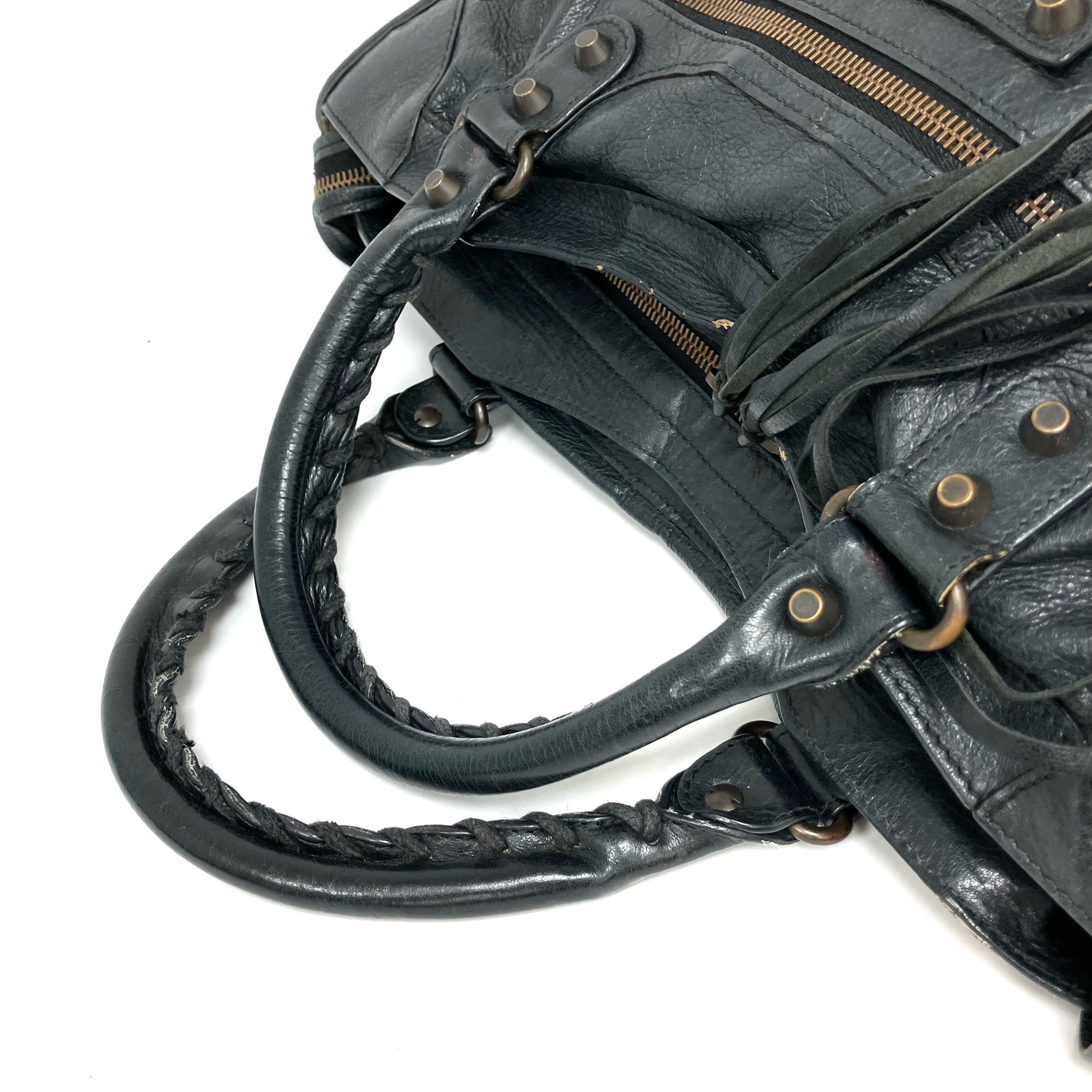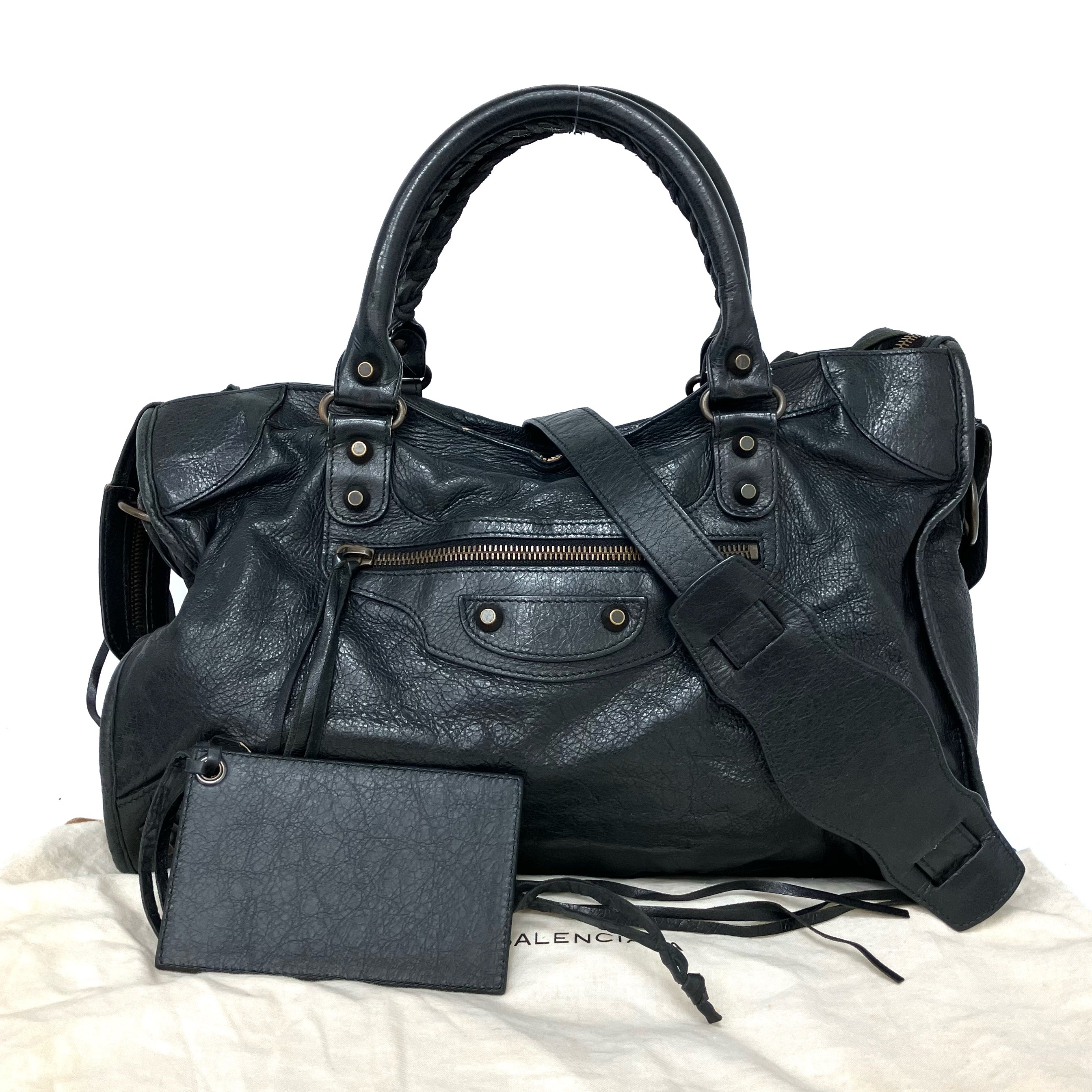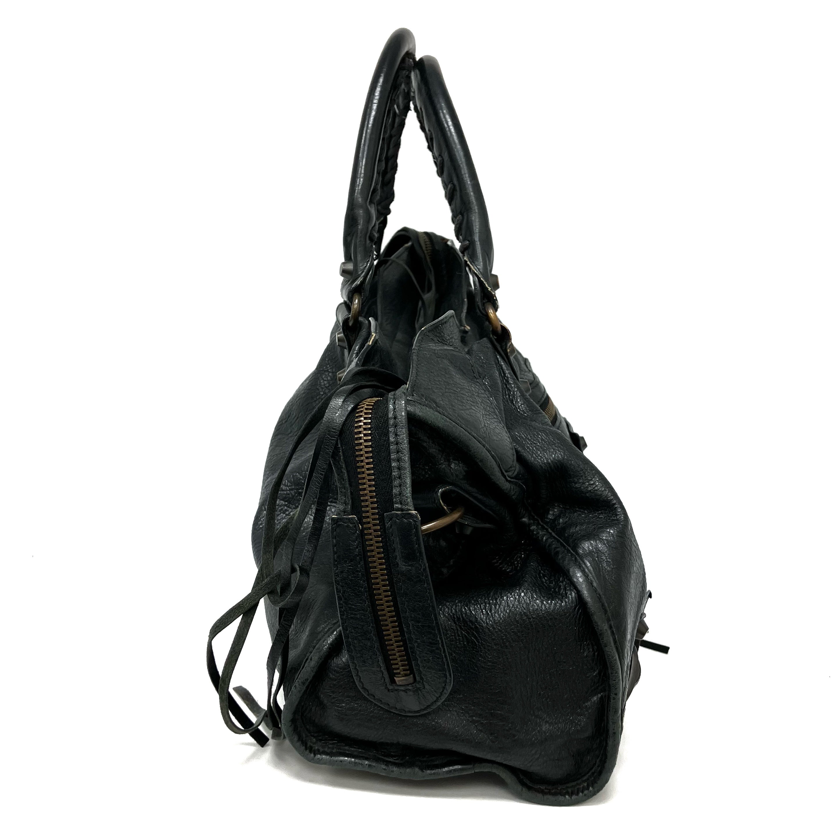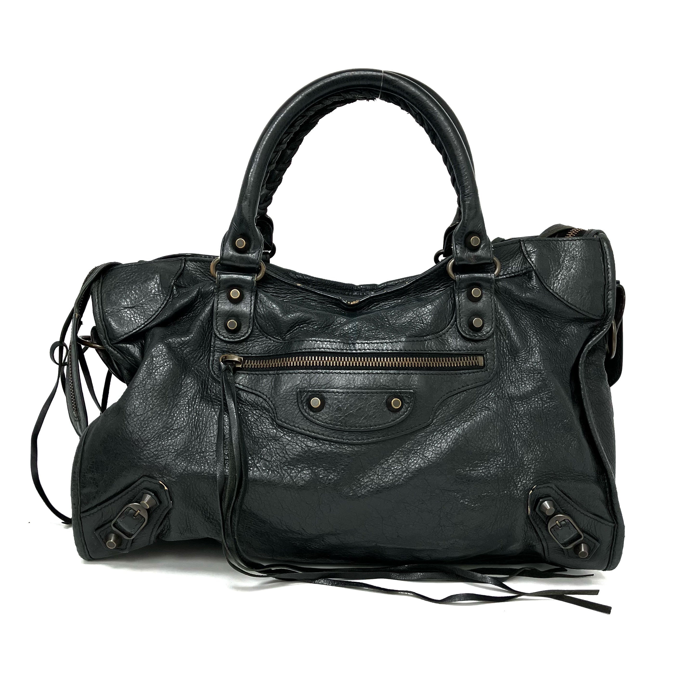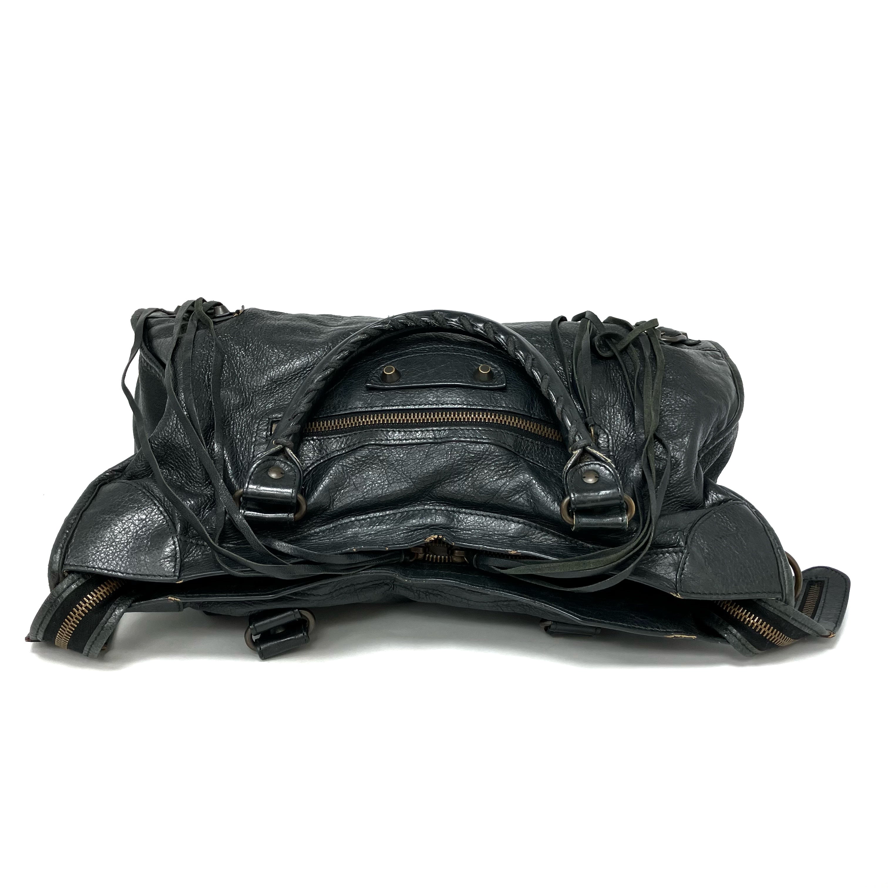 ☆ Balenciaga 巴黎世家 Black Goatskin City 2Way Bag 黑色山羊皮兩用袋 - 267002406