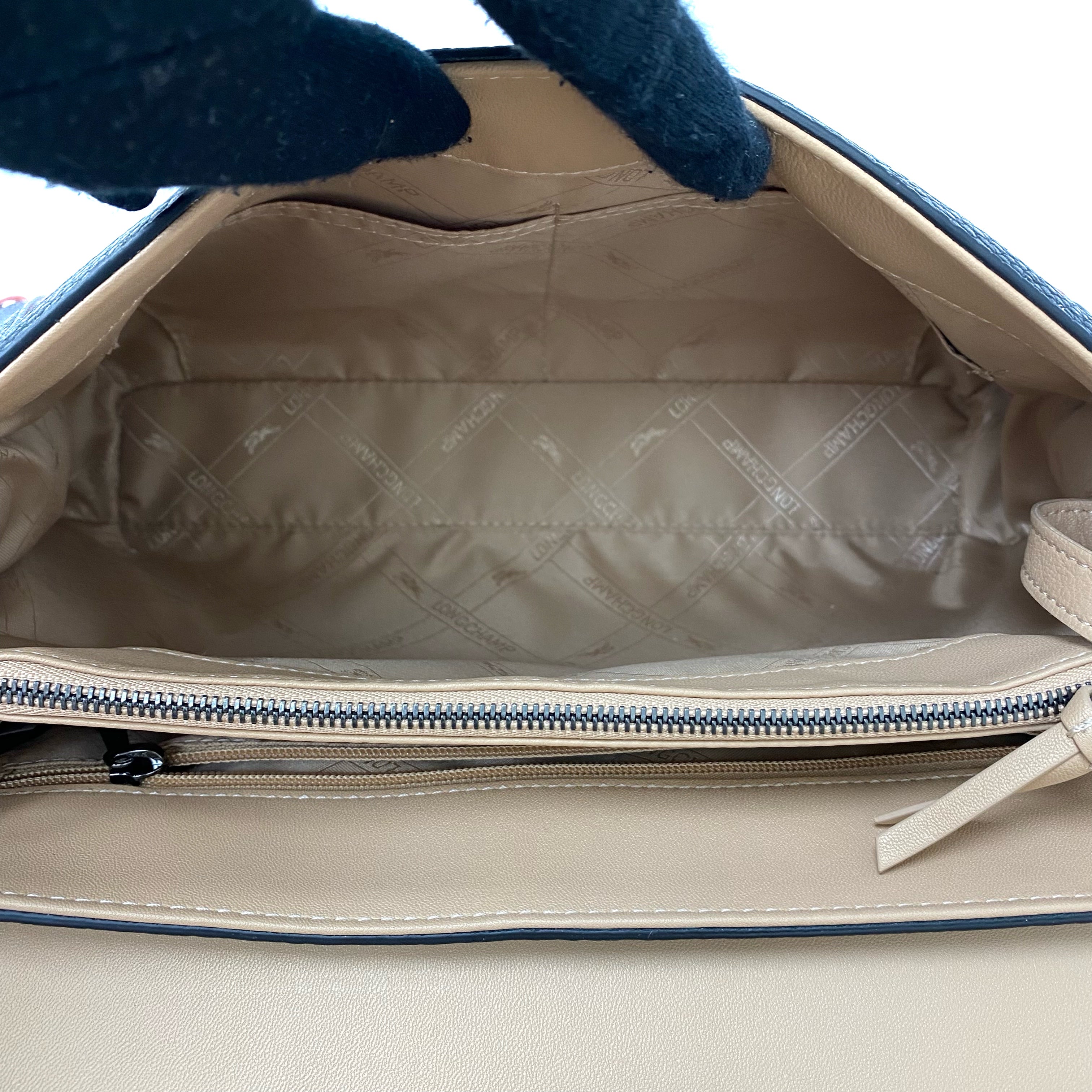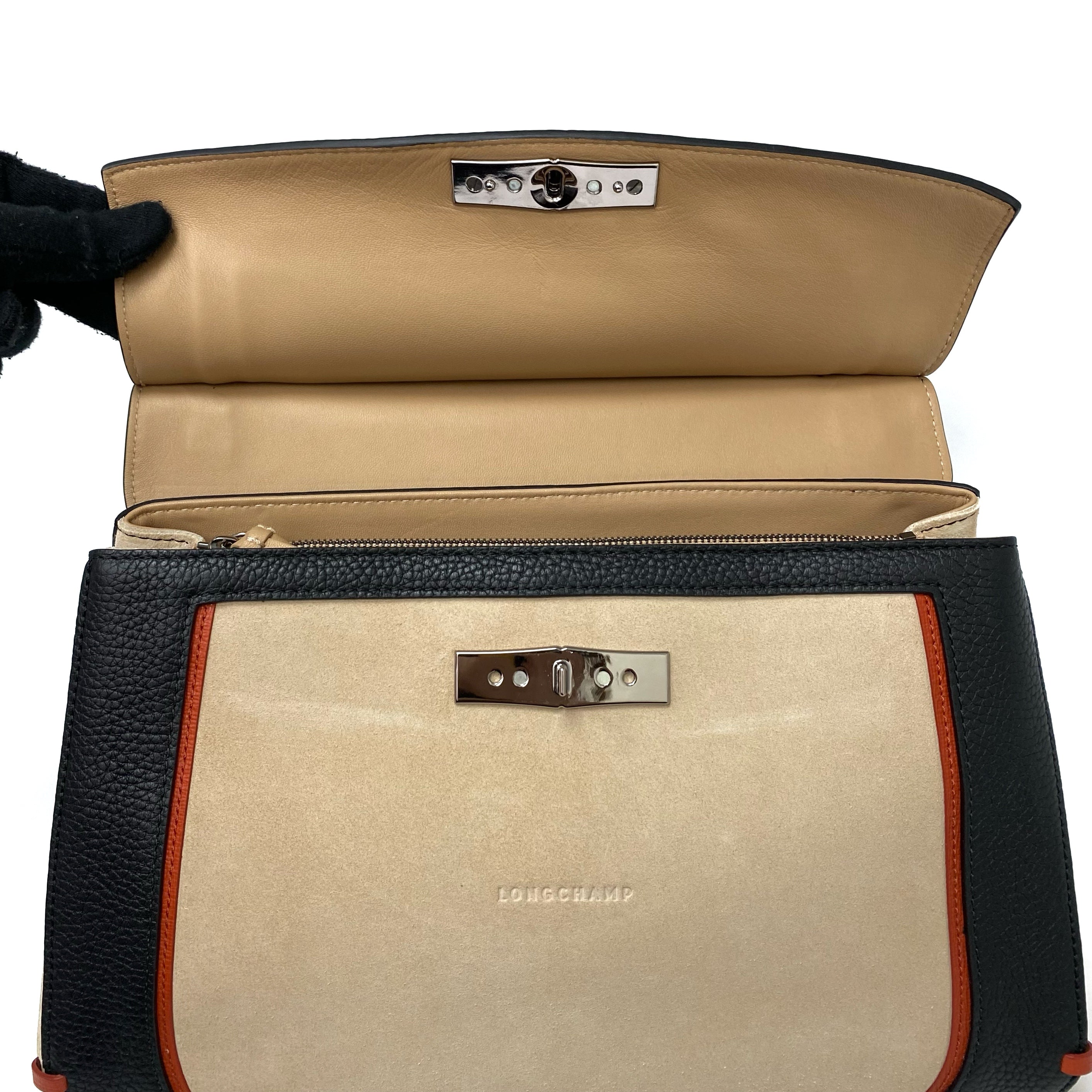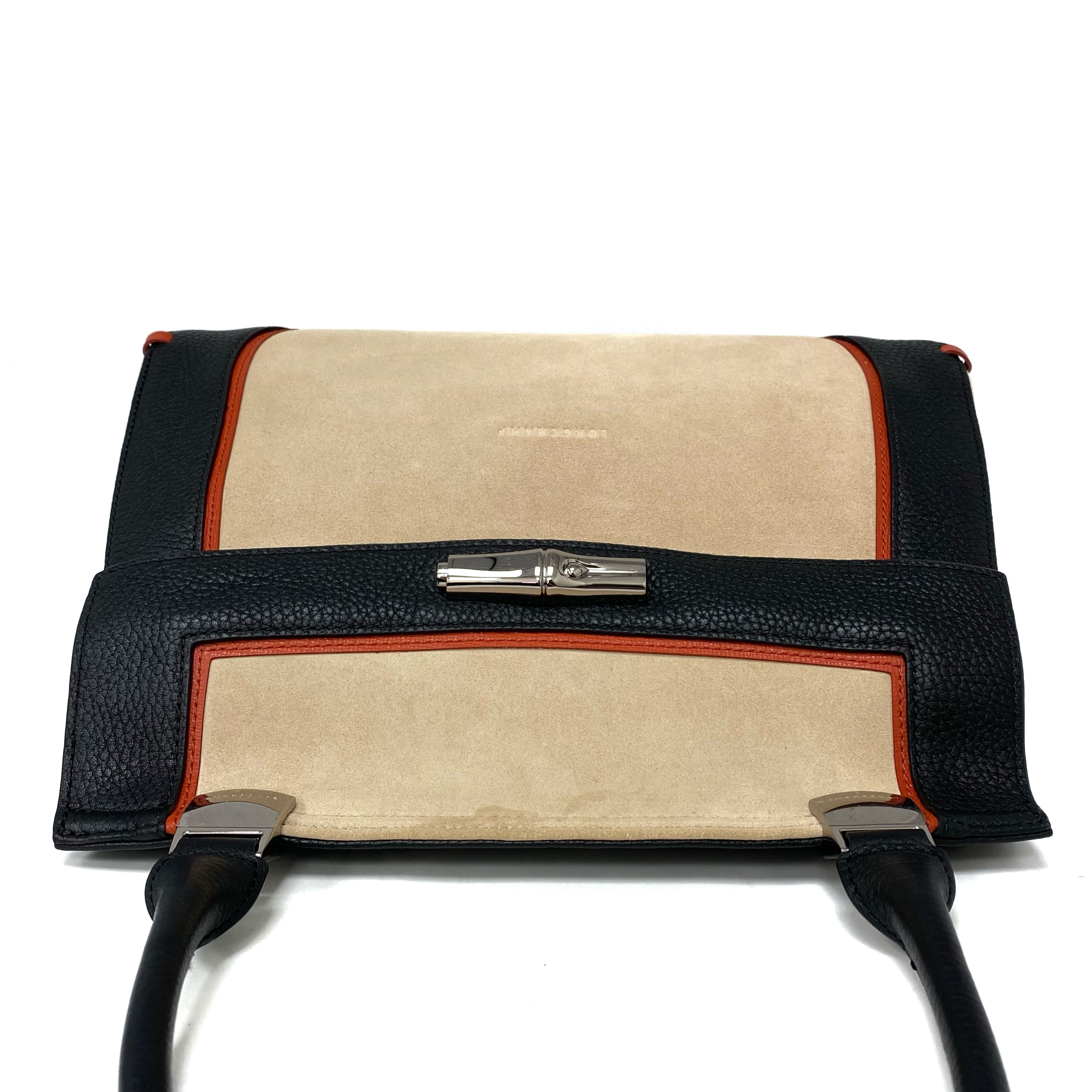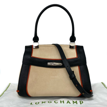 ☆ Longchamp 瓏驤 Beige Black Suede Calfskin 2 Way Bag 米色黑色麂皮小牛皮兩用袋 - 267003473