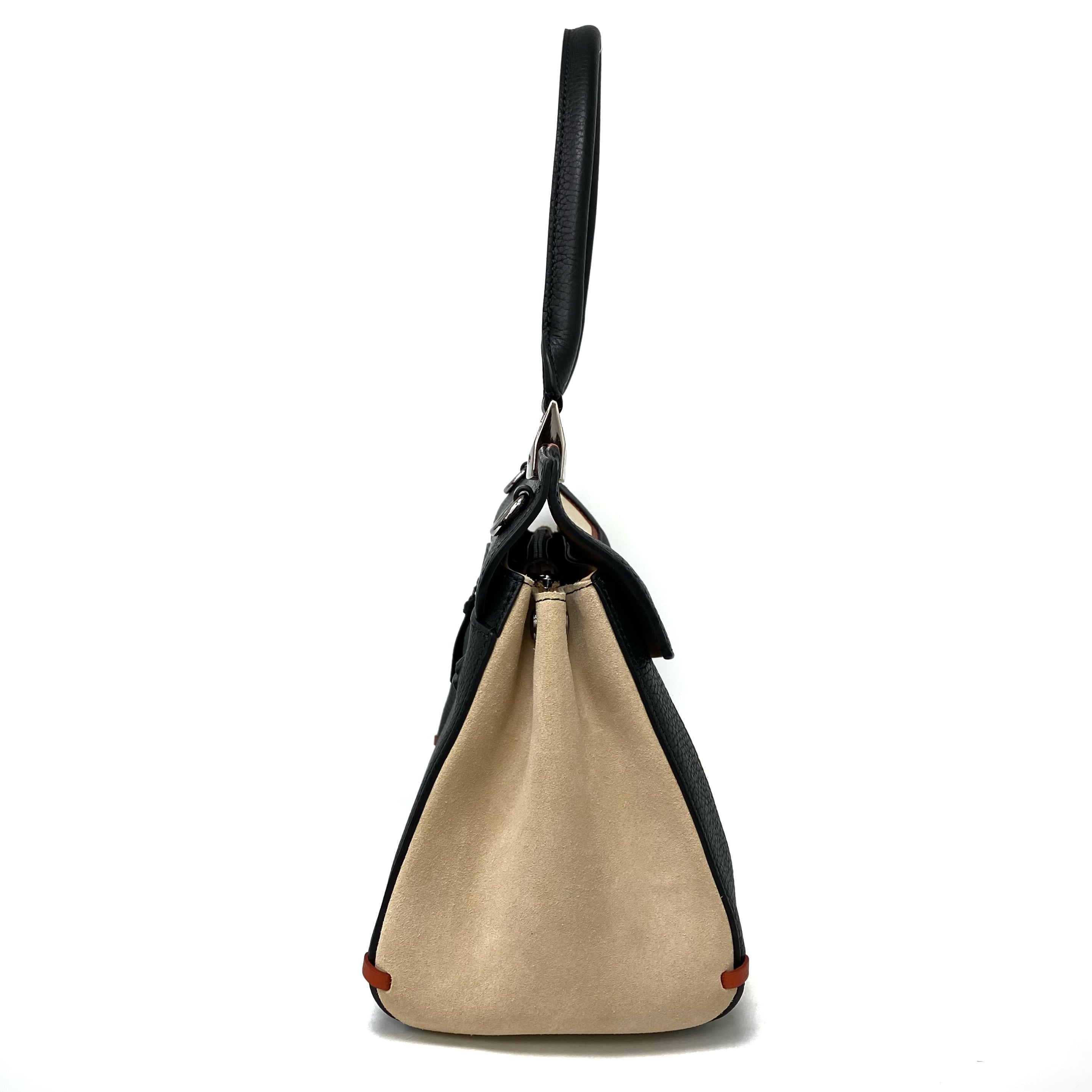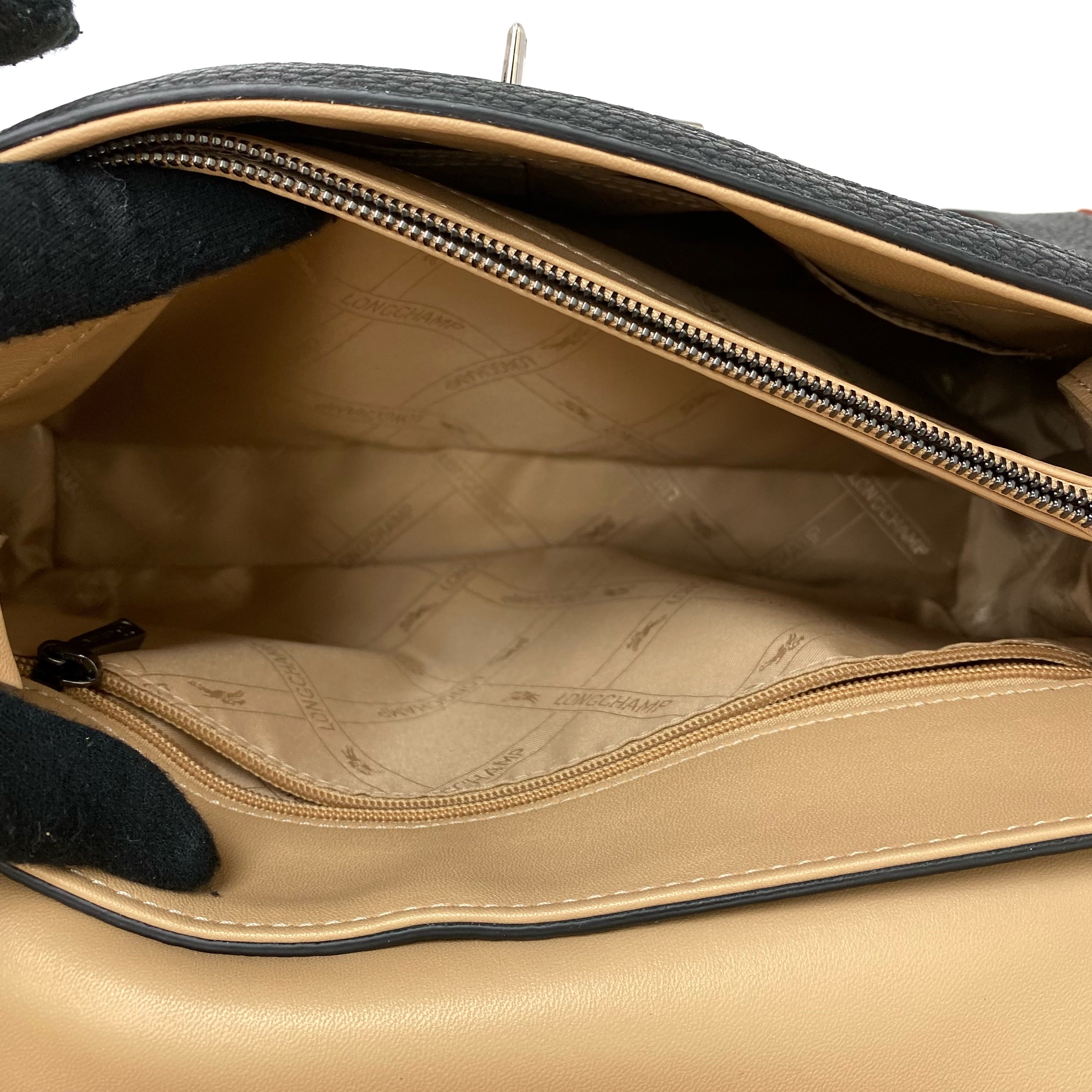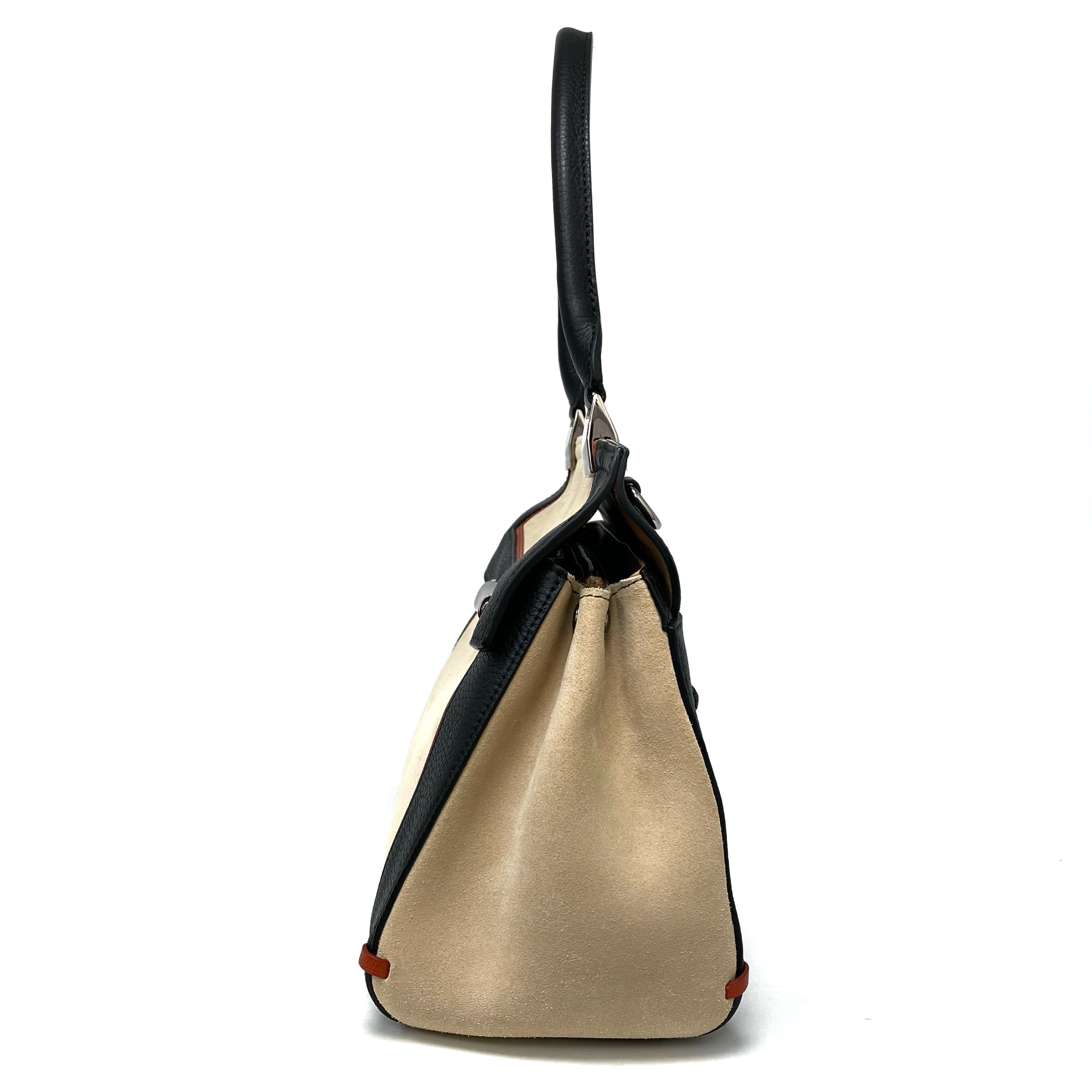 ☆ Longchamp 瓏驤 Beige Black Suede Calfskin 2 Way Bag 米色黑色麂皮小牛皮兩用袋 - 267003473