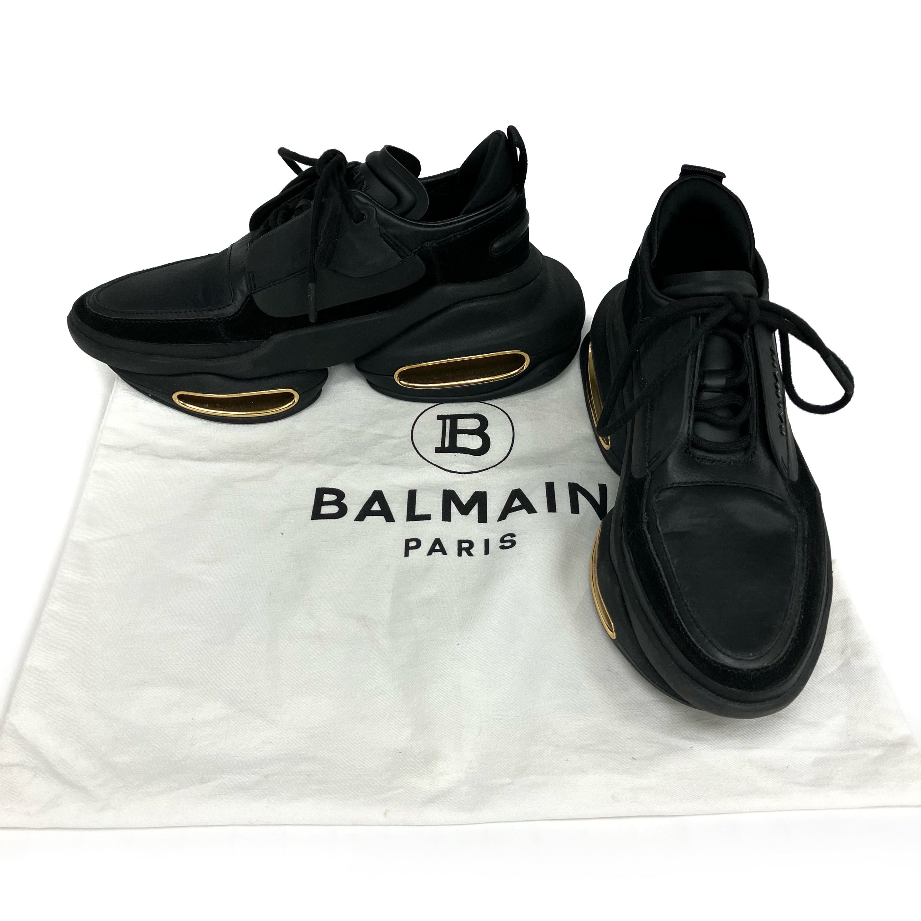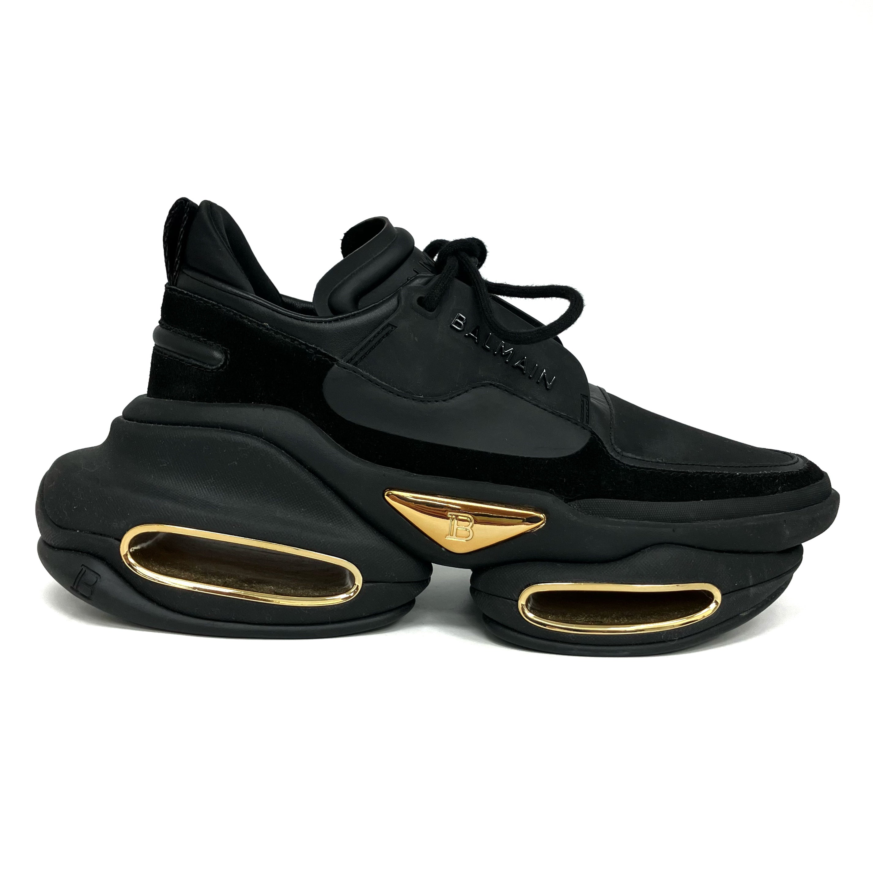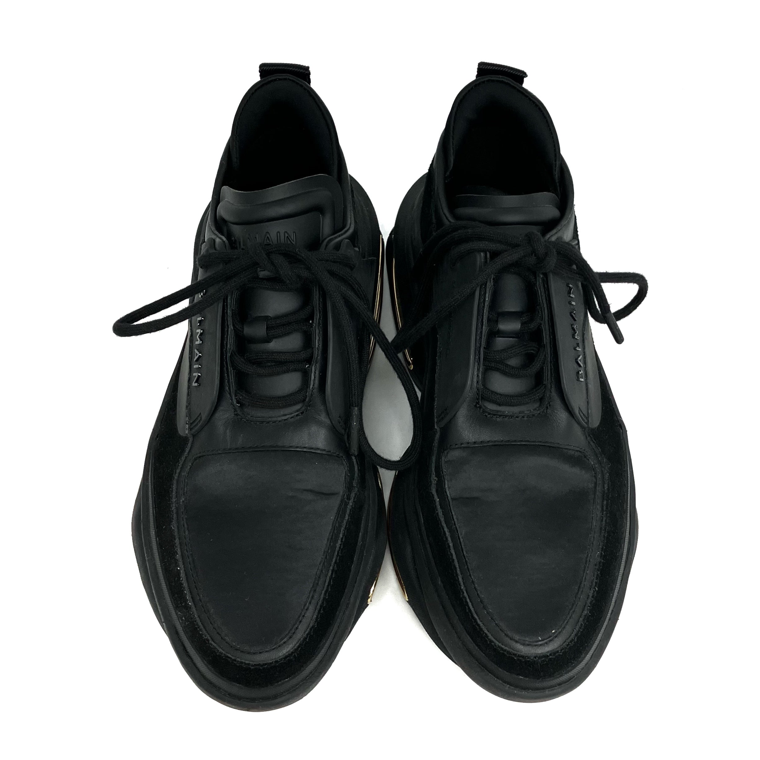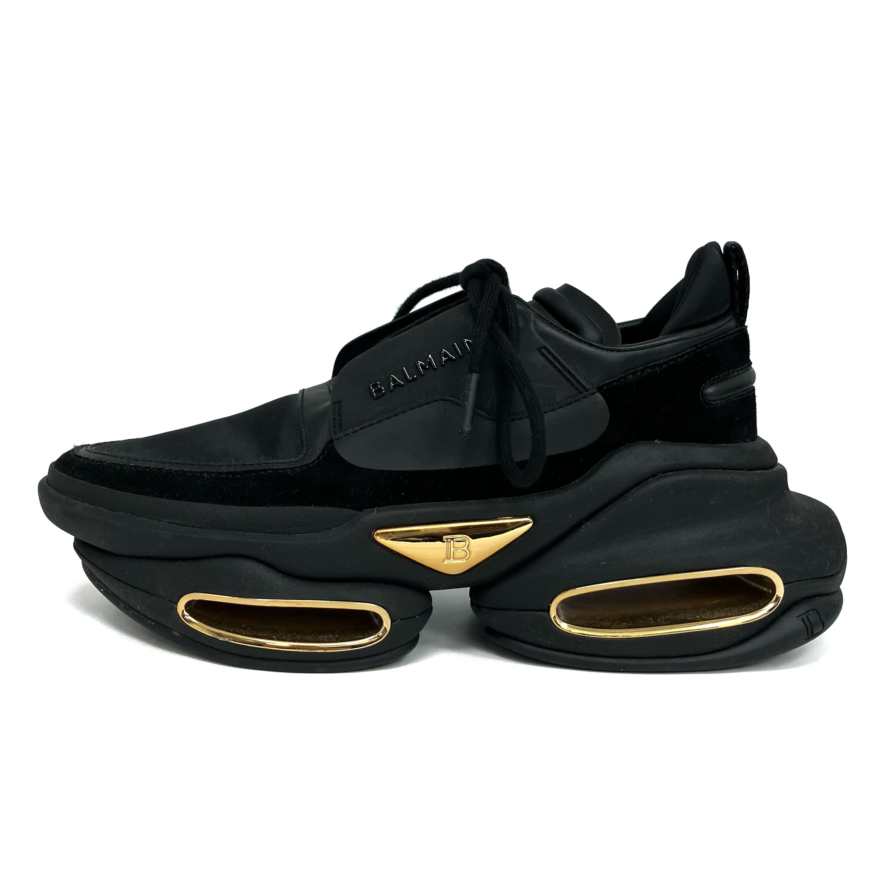 ☆ Balmain 寶曼 Black Gold Suede Rubber Sneakers #37 黑色金色麂皮橡膠運動鞋 37碼 - 257017066