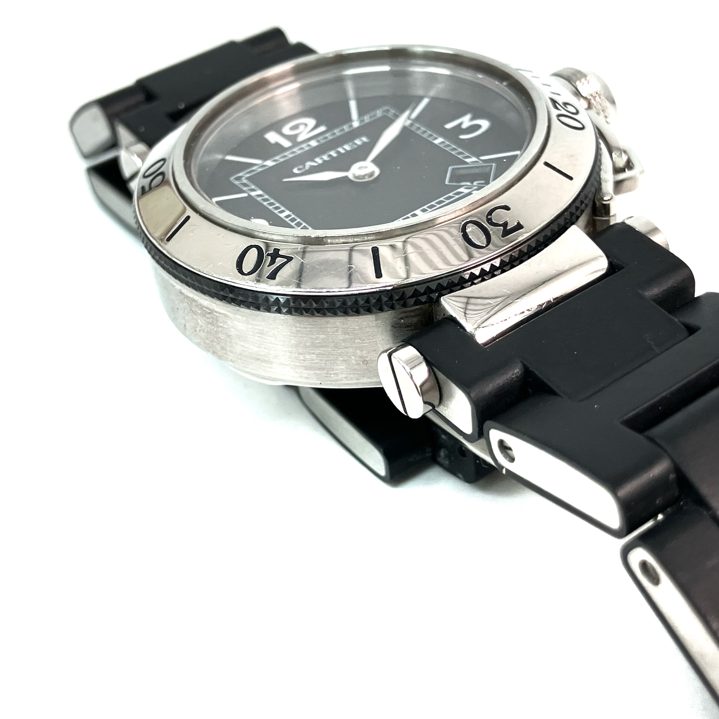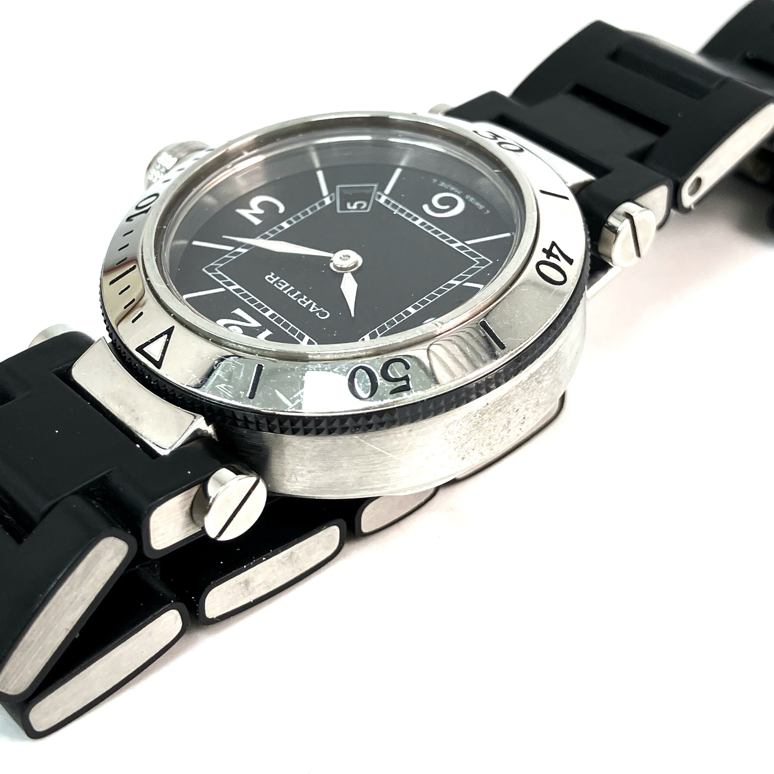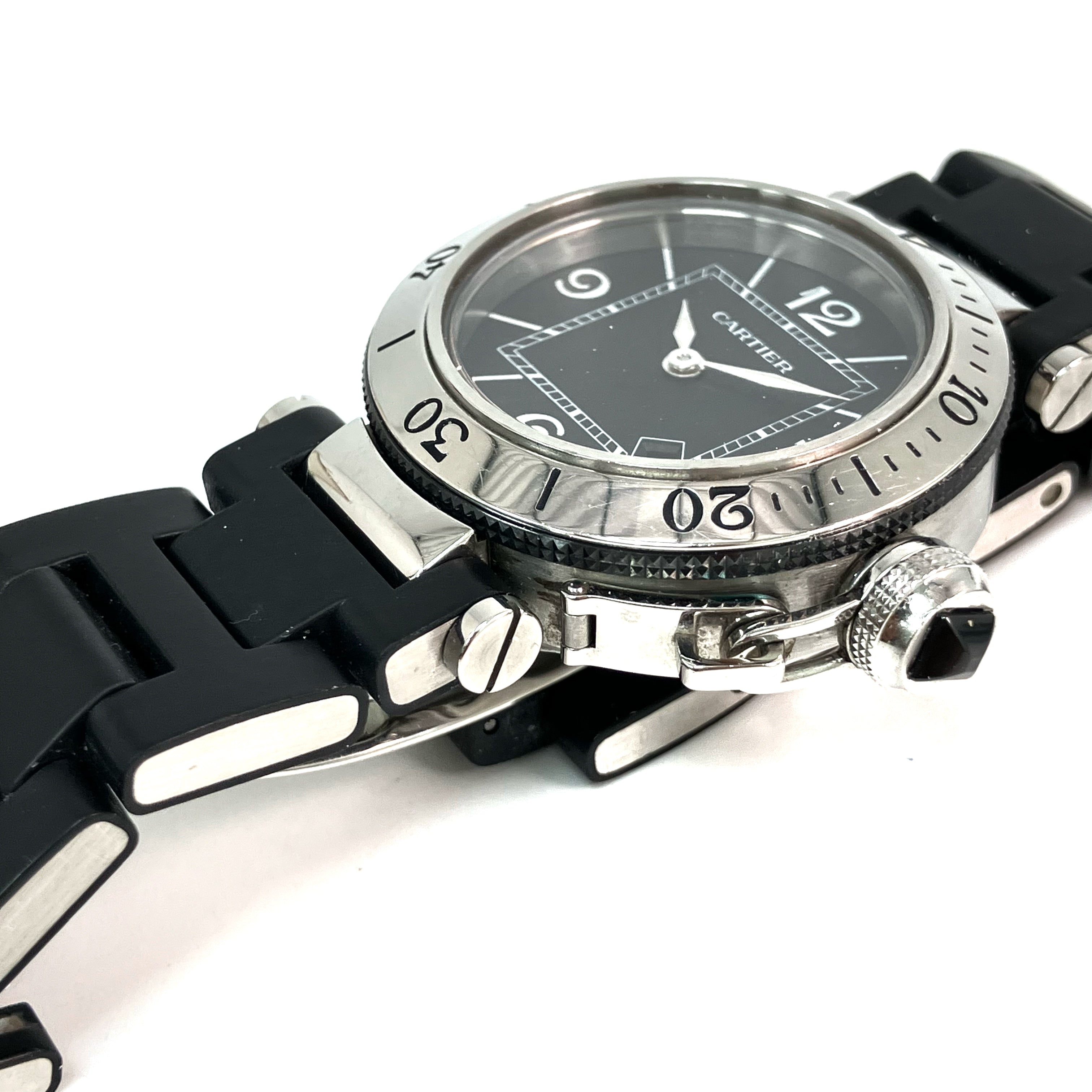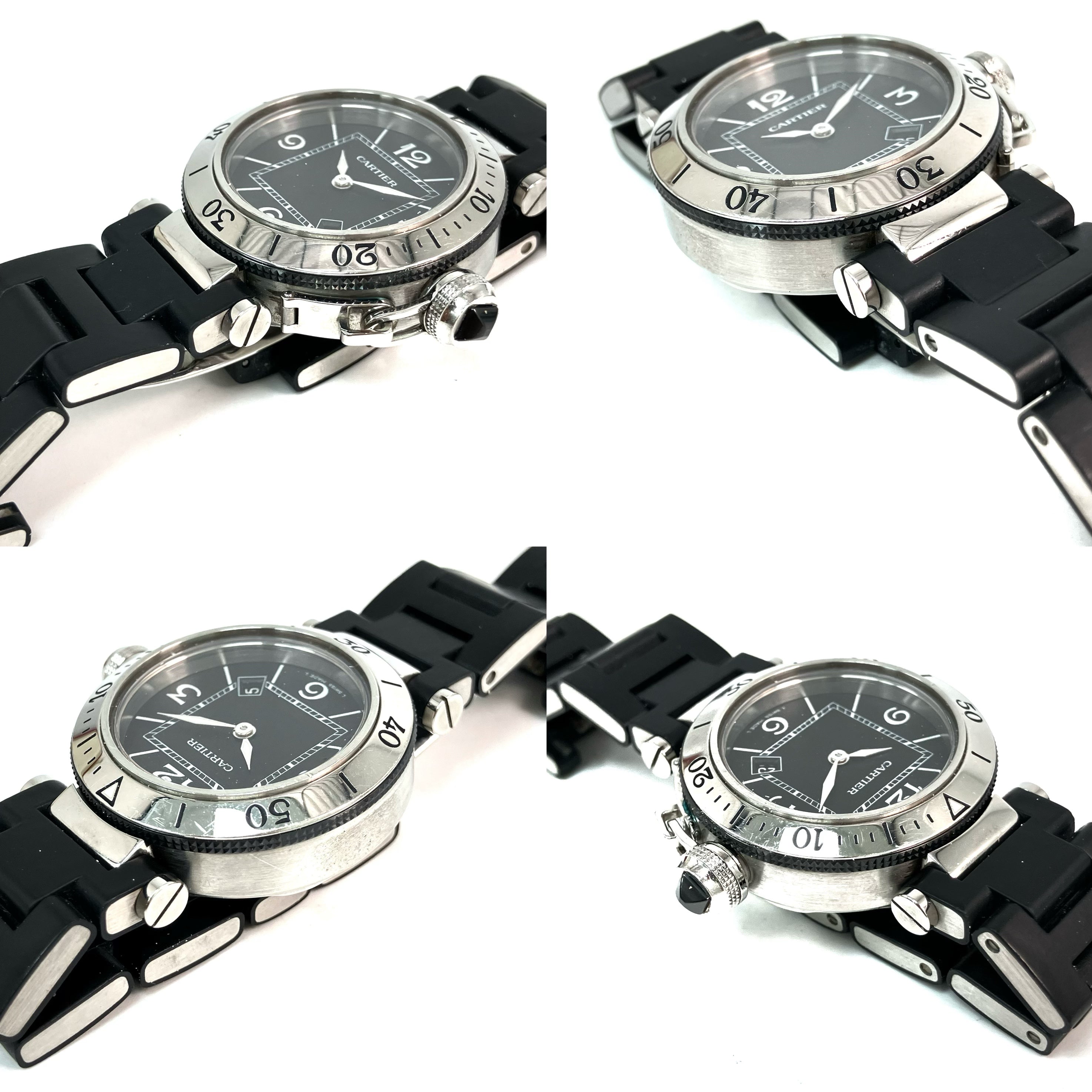 △ Cartier 卡地亞 Black Stainless Steel Pasha Seatimer Quartz Watch 3025 黑色不鏽鋼石英手錶 - 257024354