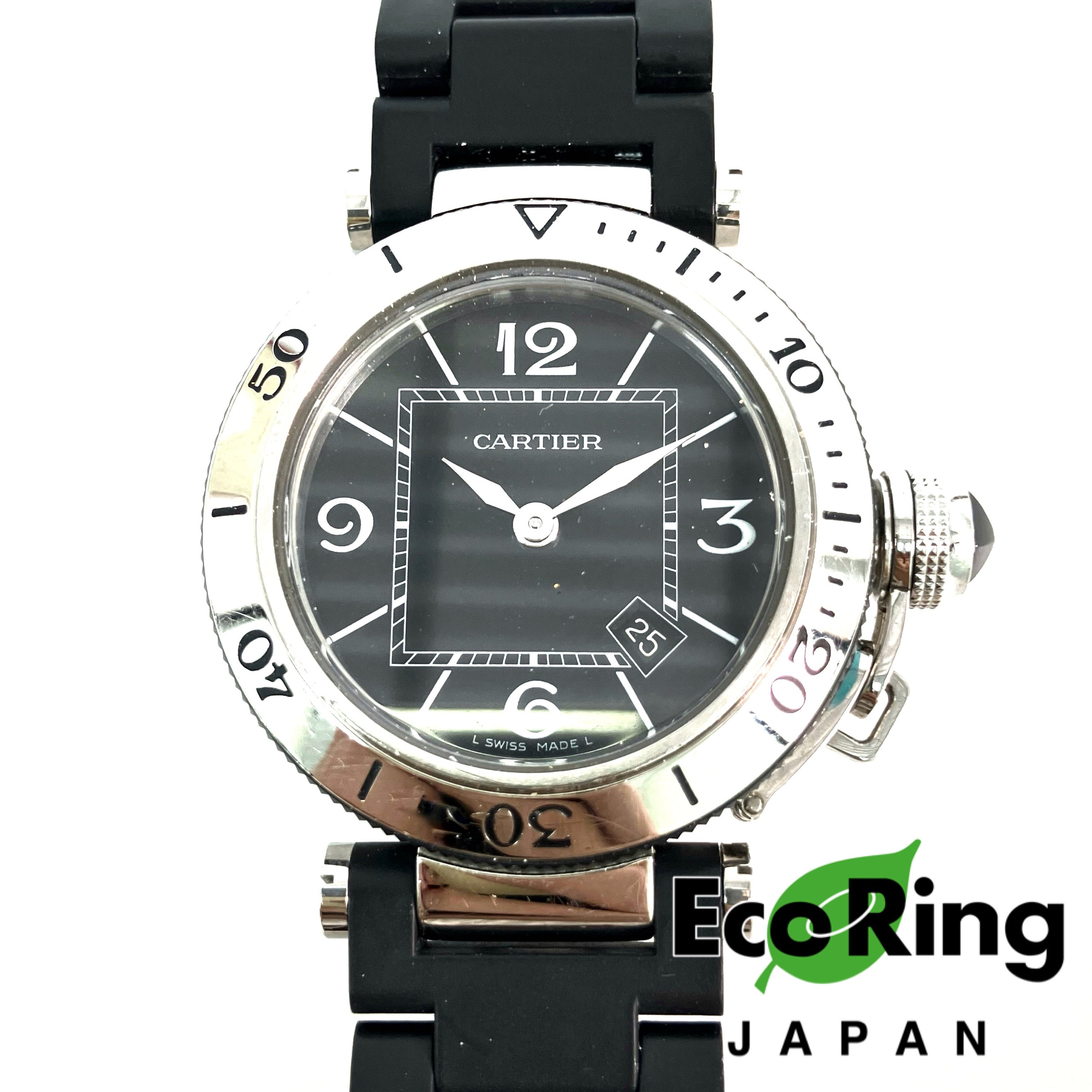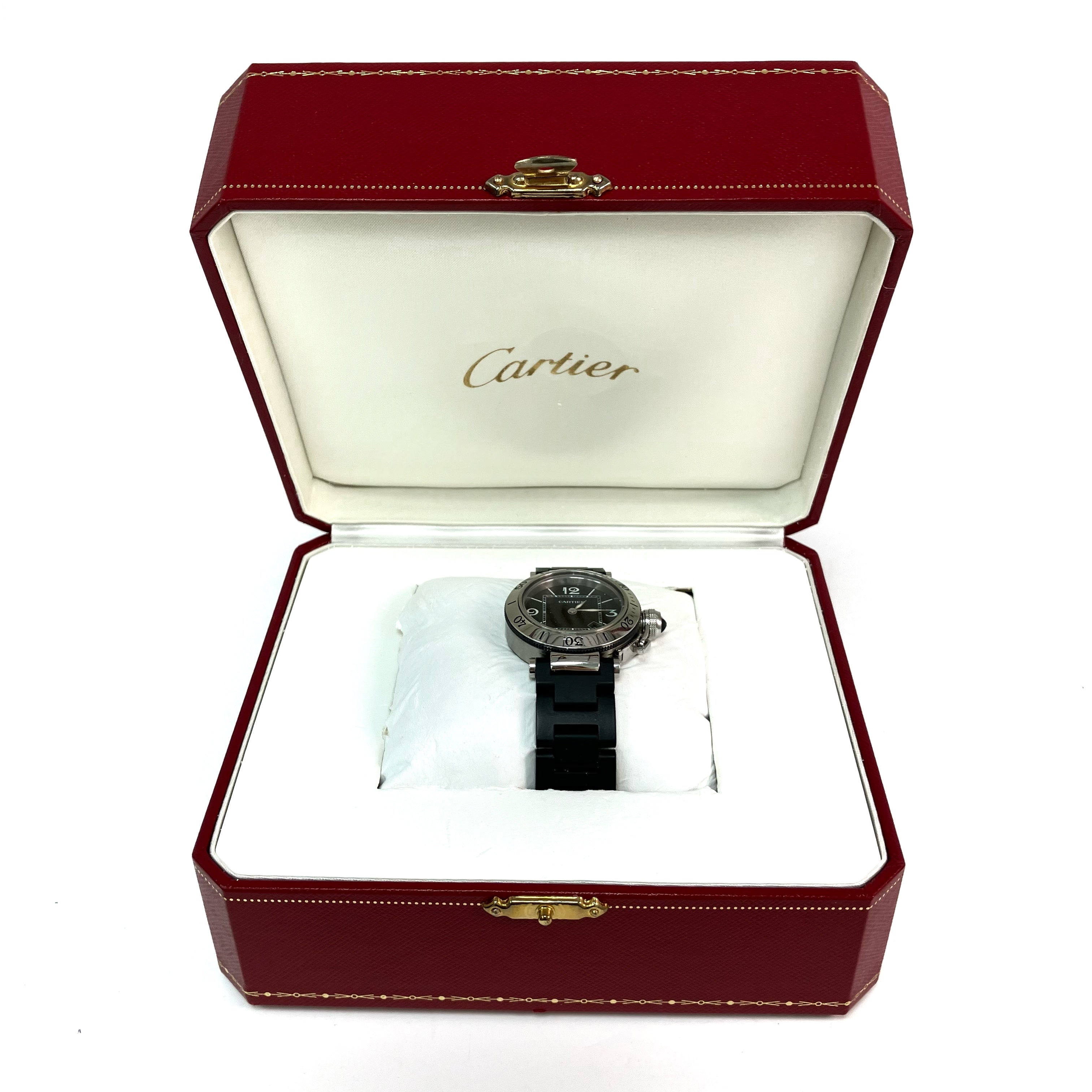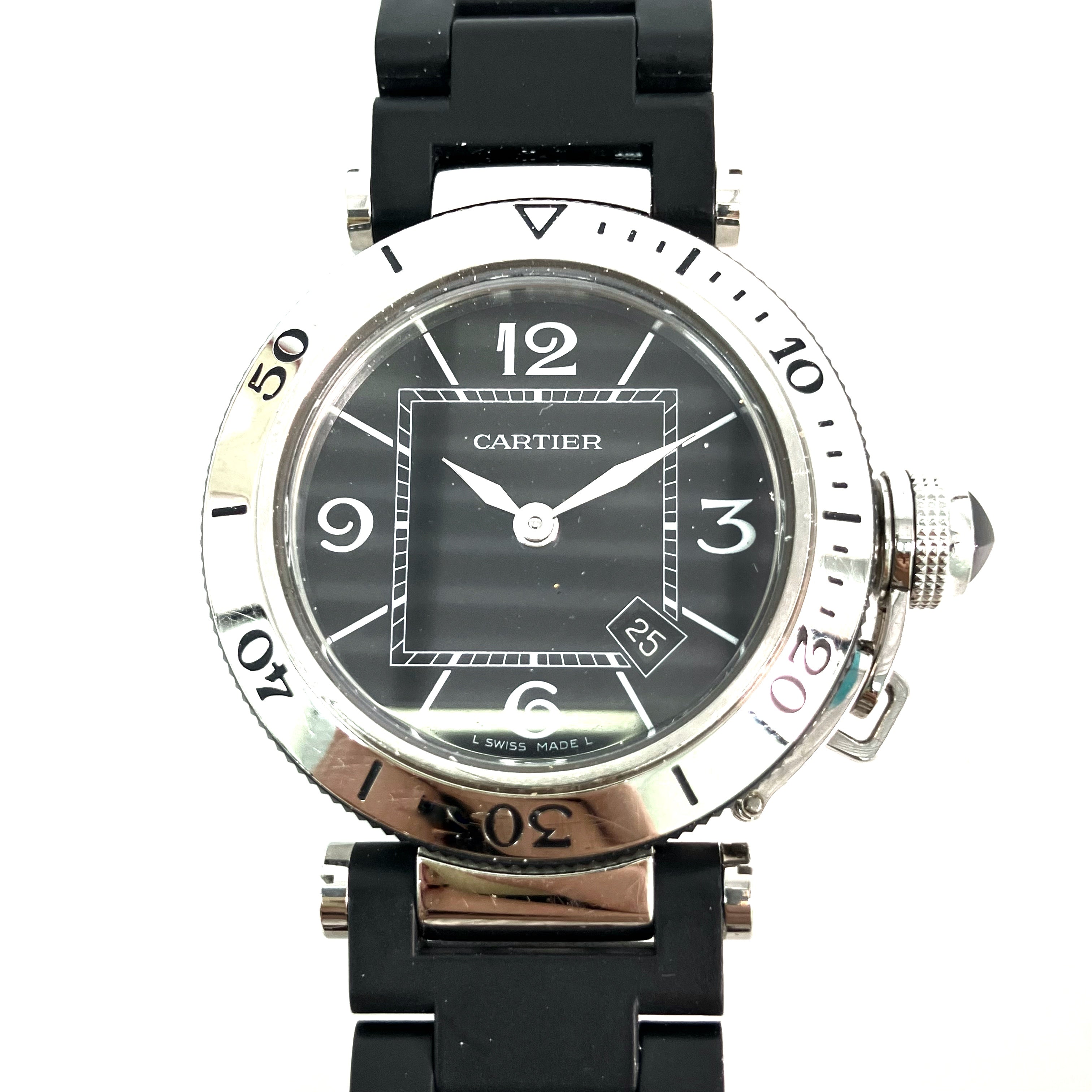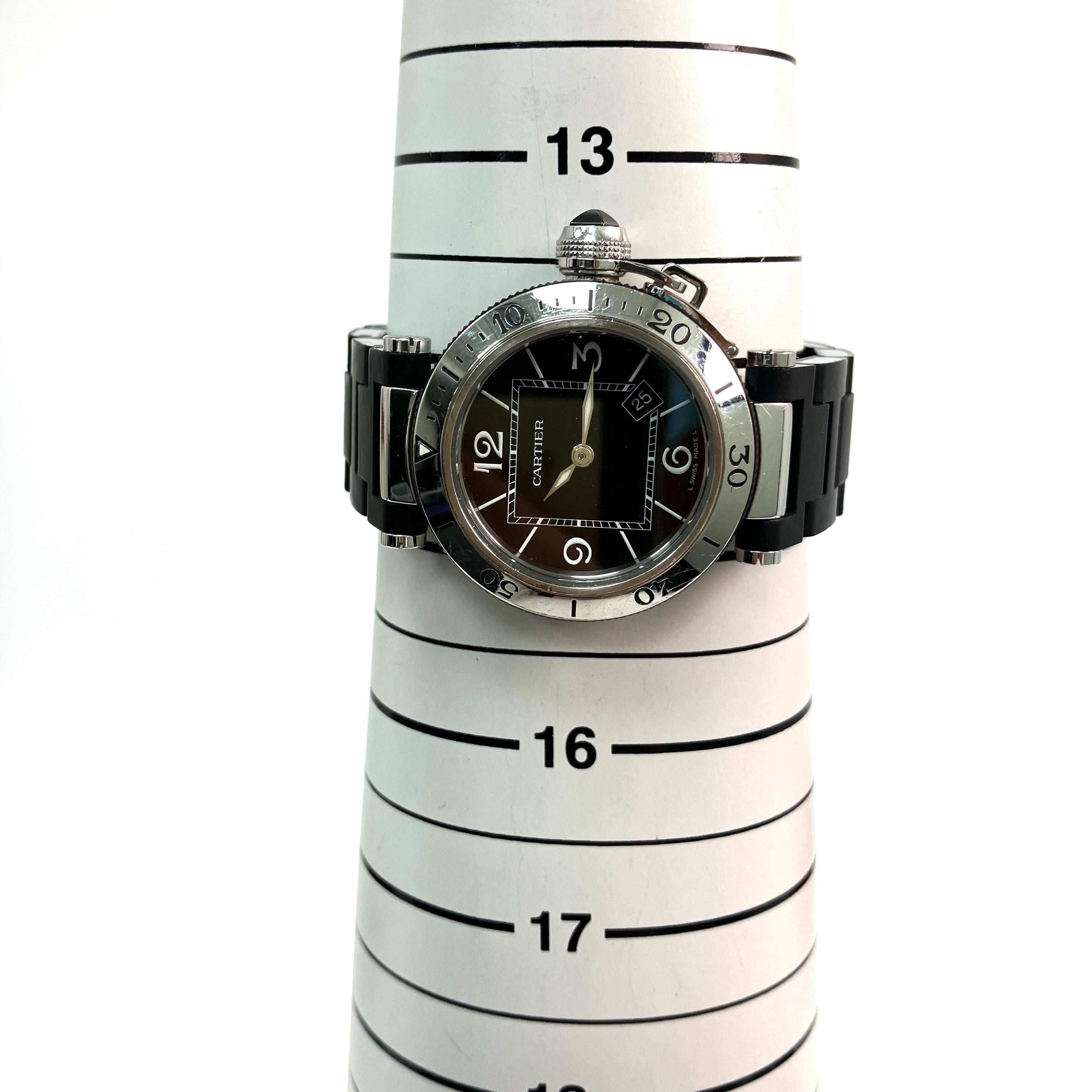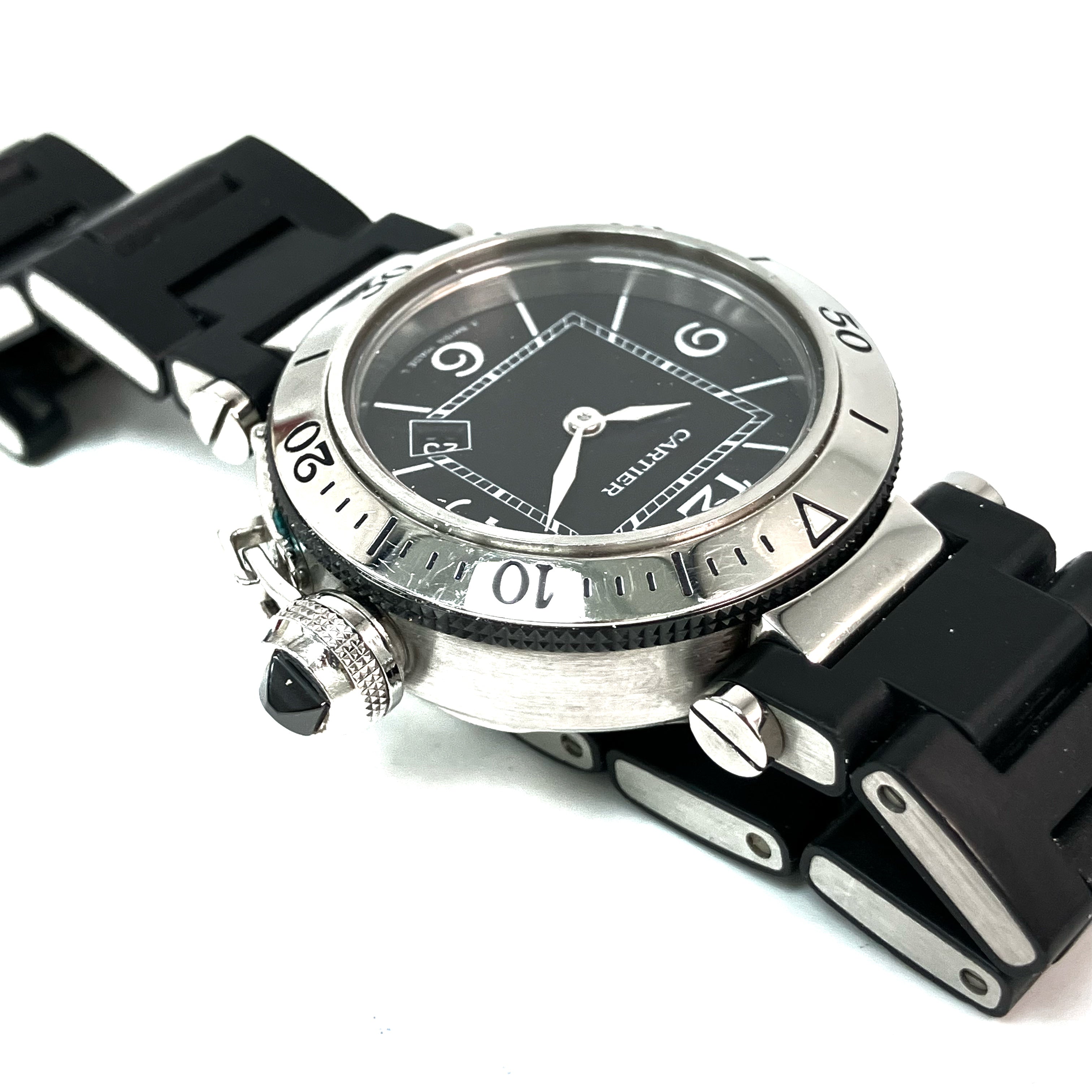 △ Cartier 卡地亞 Black Stainless Steel Pasha Seatimer Quartz Watch 3025 黑色不鏽鋼石英手錶 - 257024354