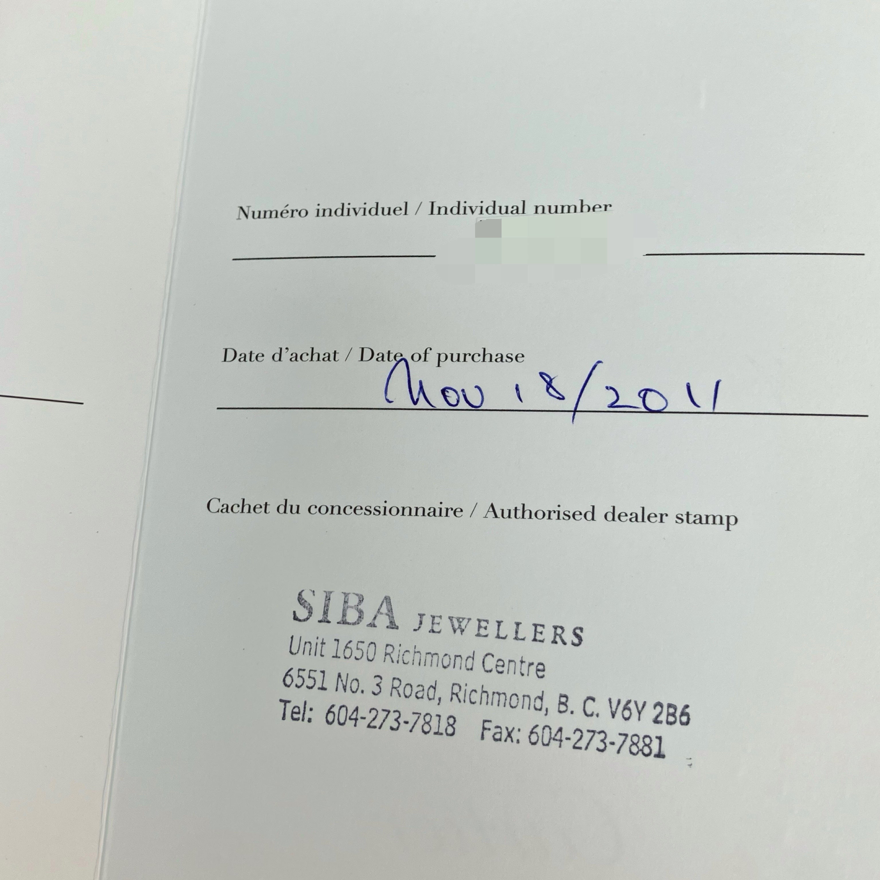 | 附件 Accessory | (不會列出欠缺的原裝配件 Missing original accessories will not be listed )只有 盒, 證書(11/2011), 額外錶格x2, 光碟 Box, certificate(11/2011), extra links x2, CD only |