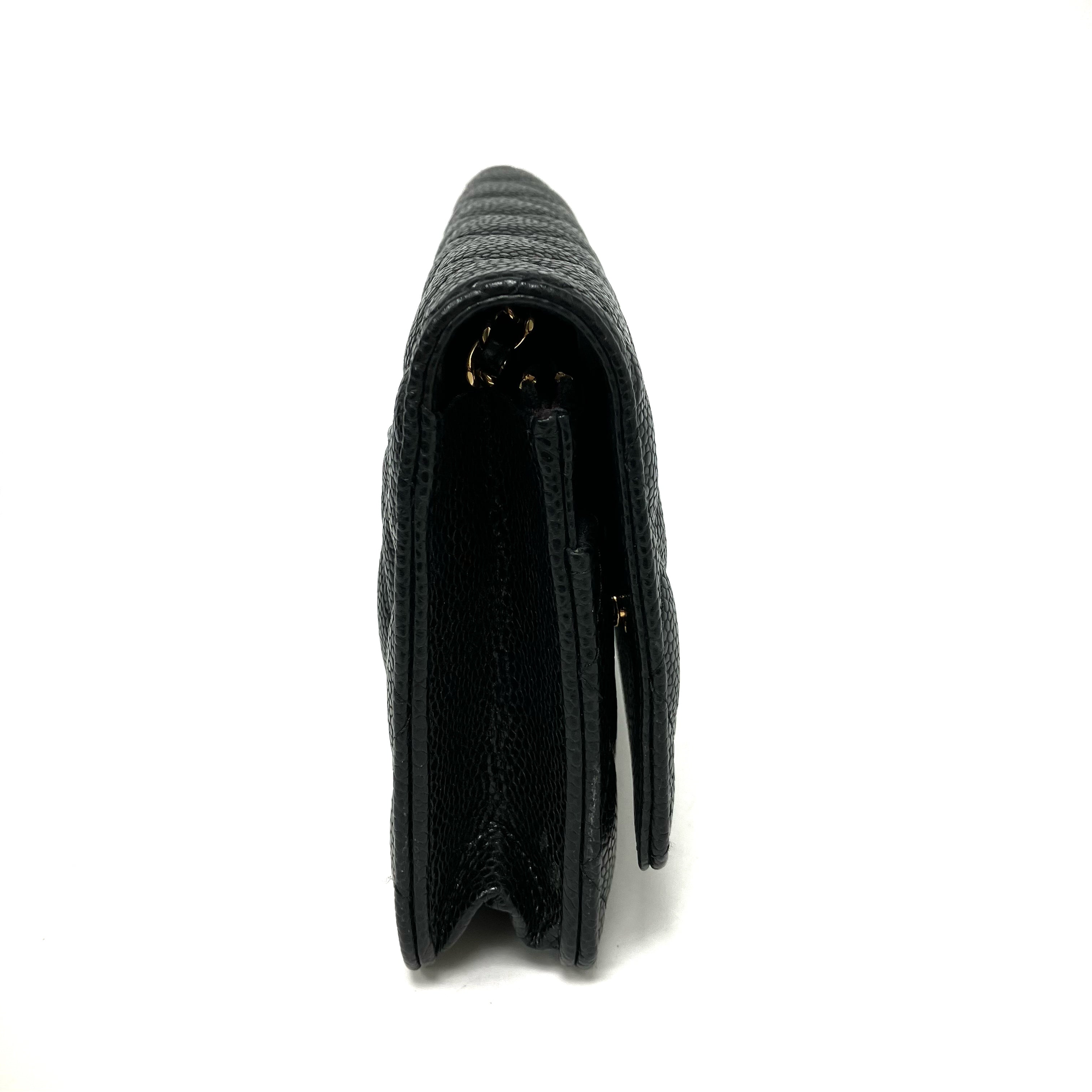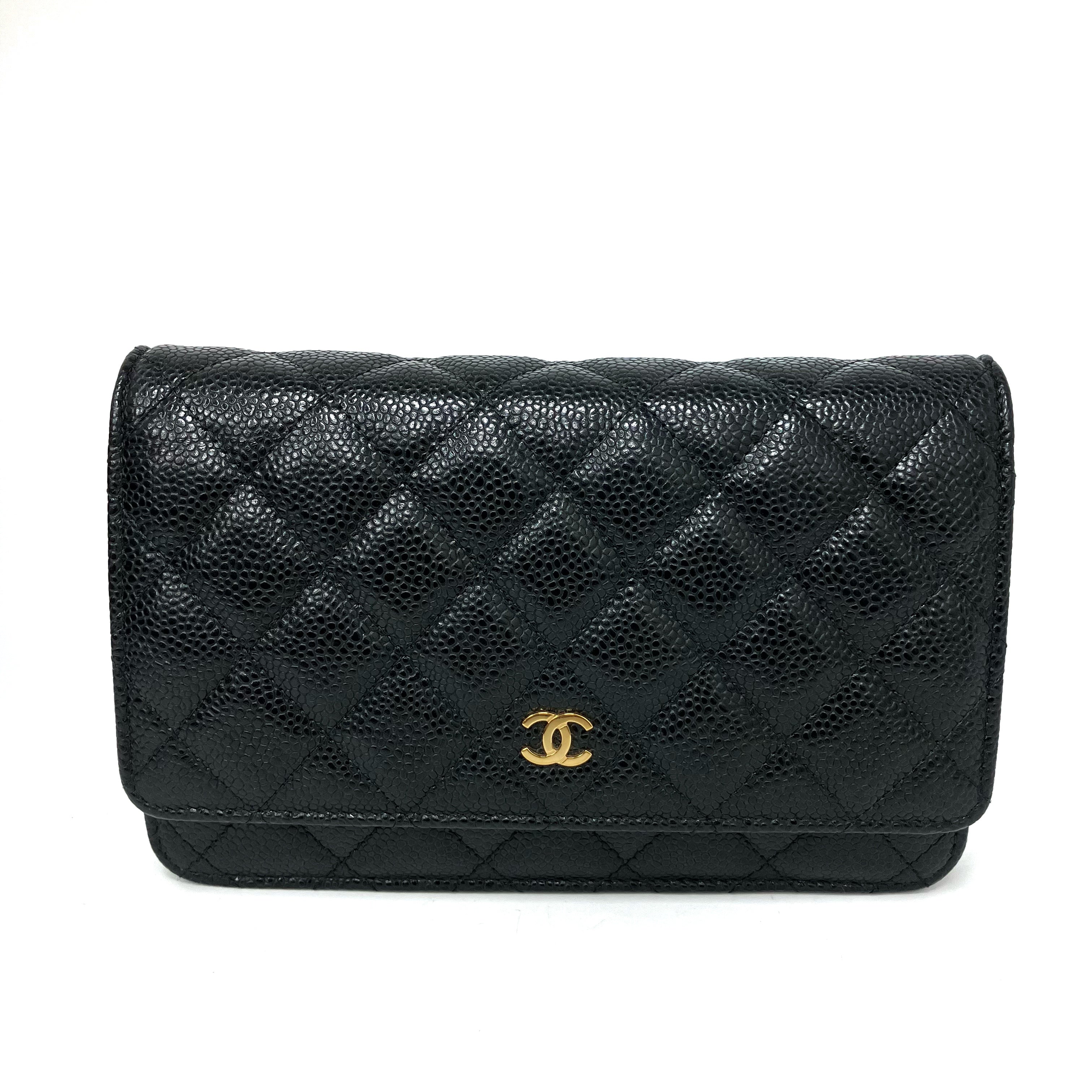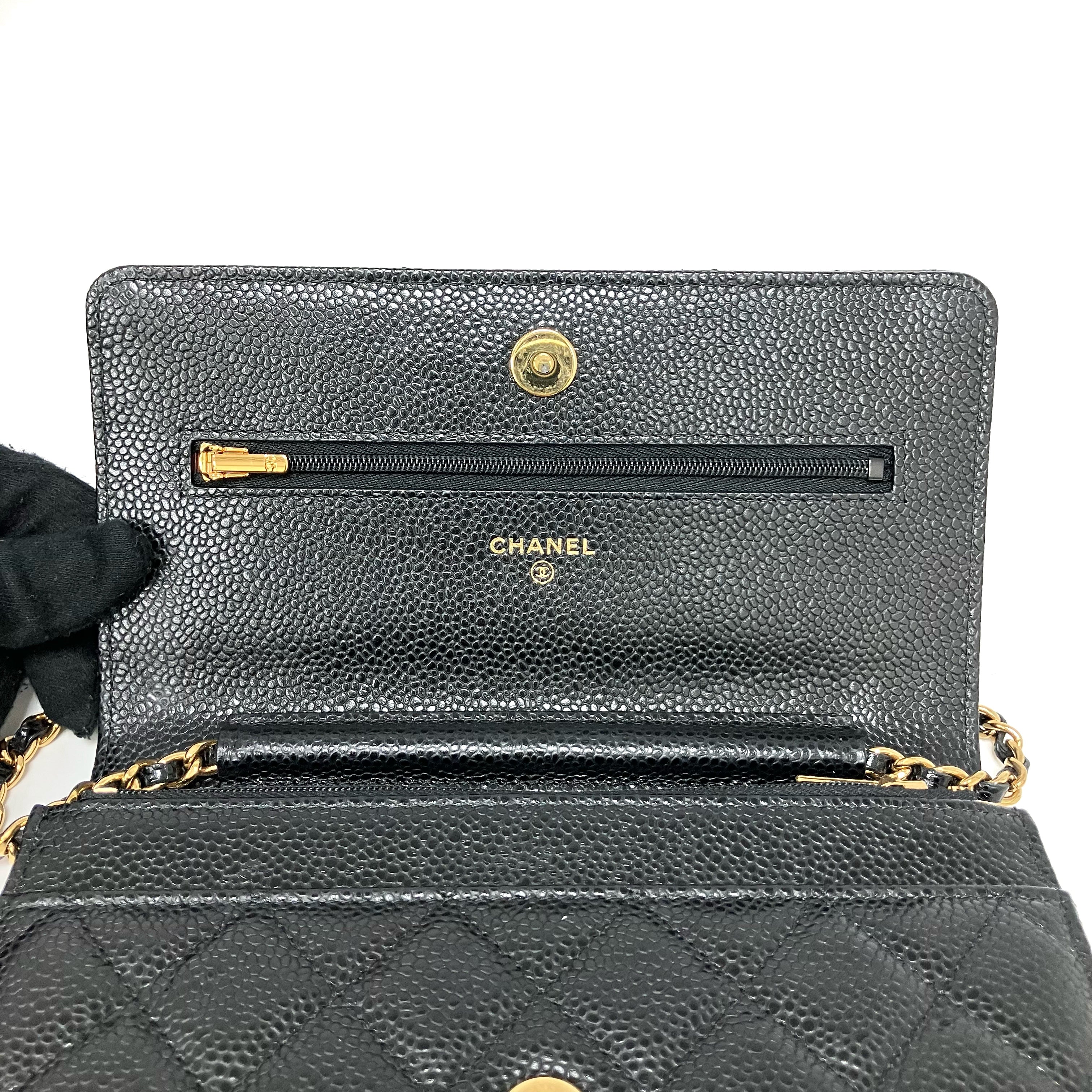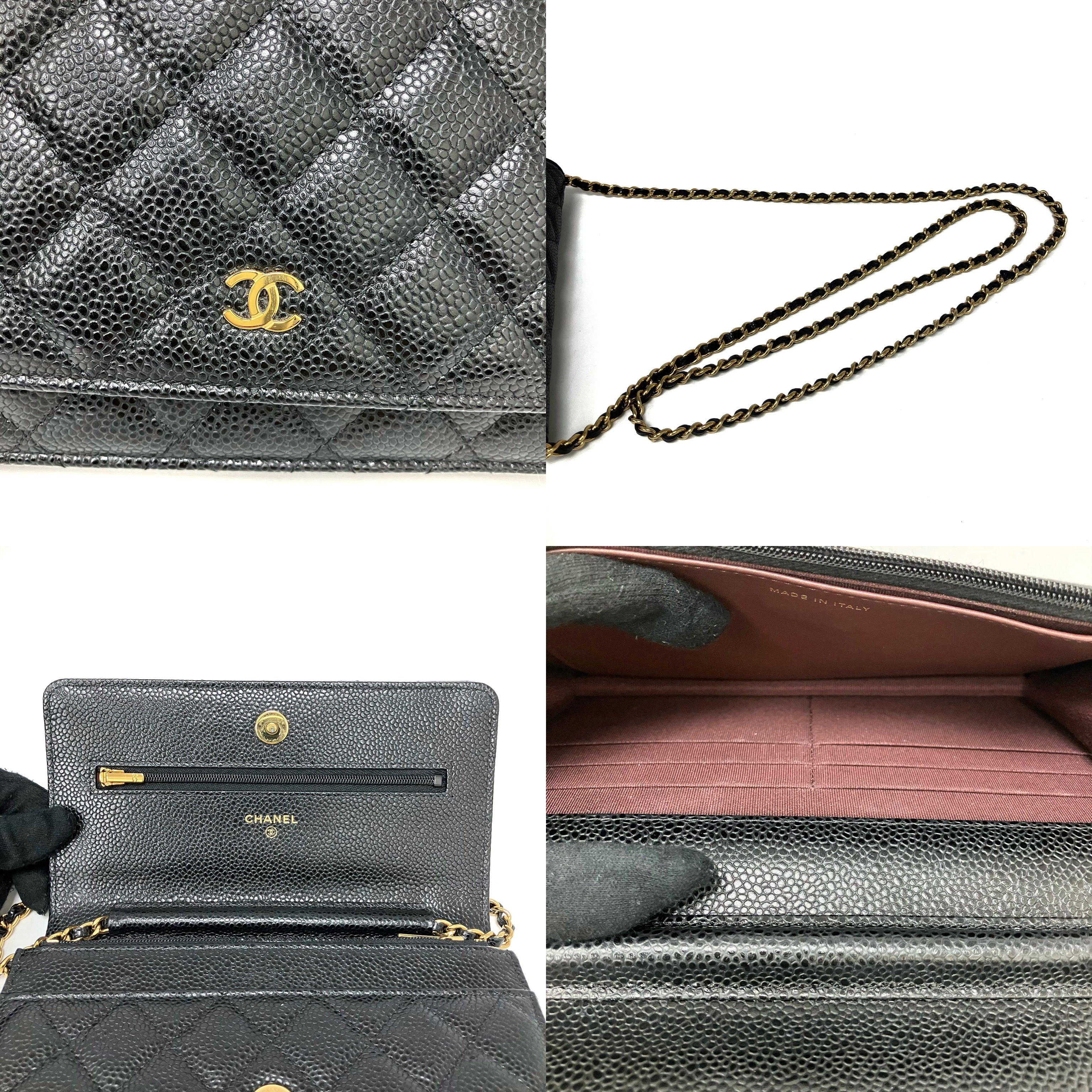 △ Chanel 香奈兒 Black Caviar Skin Gold Tone Metal Wallet On Chain AP0250 黑色粒紋小牛皮金色金屬鏈條銀包 AP0250 -257024832