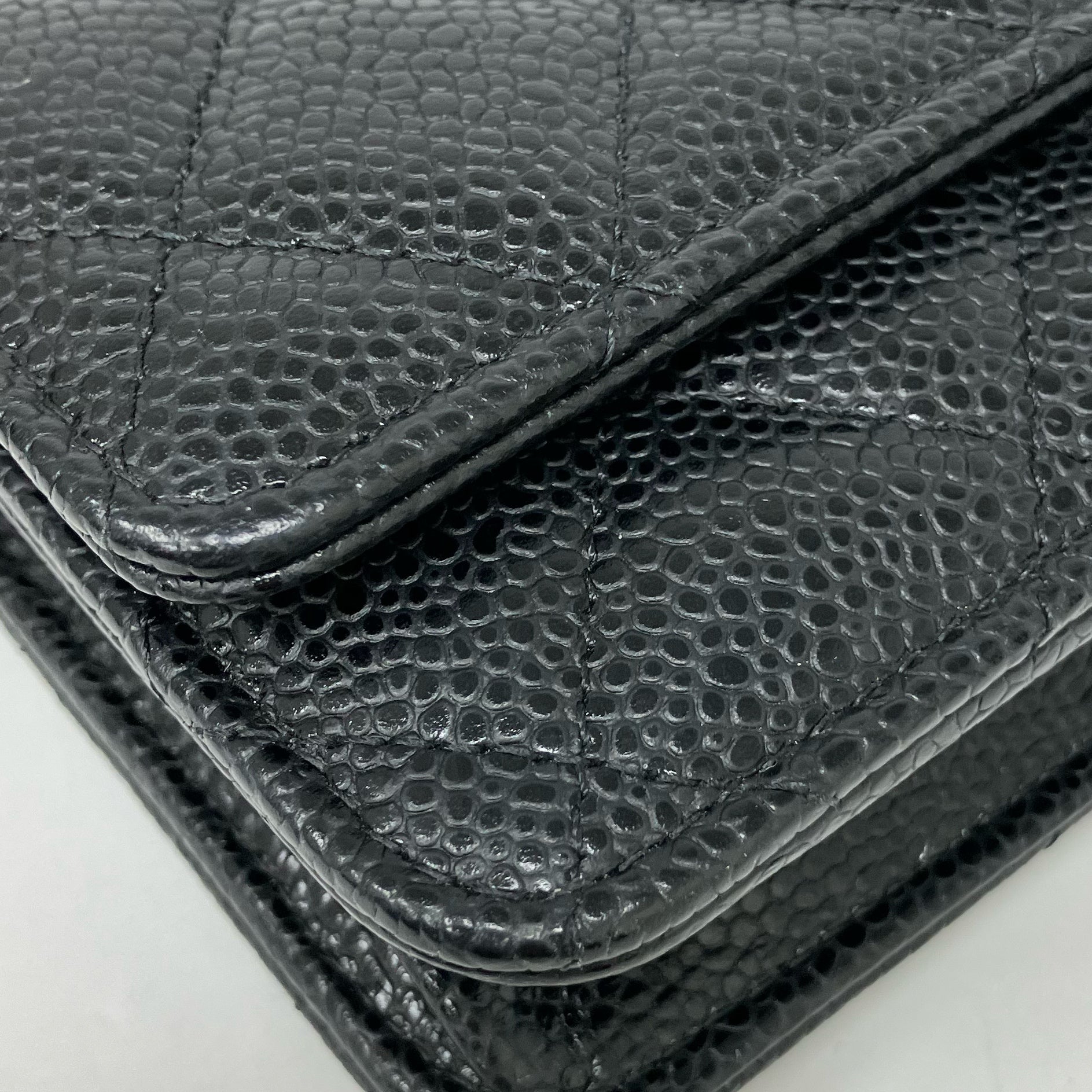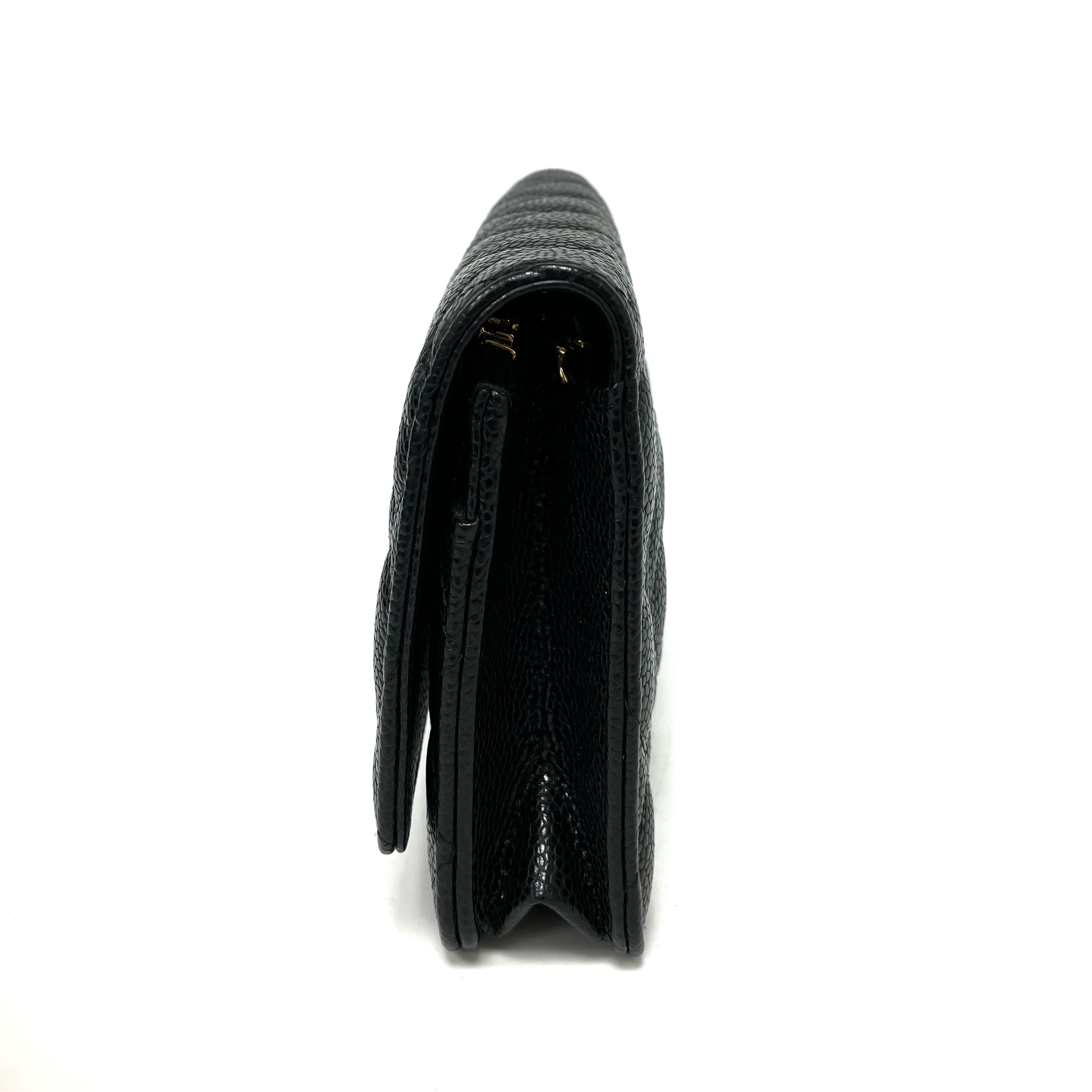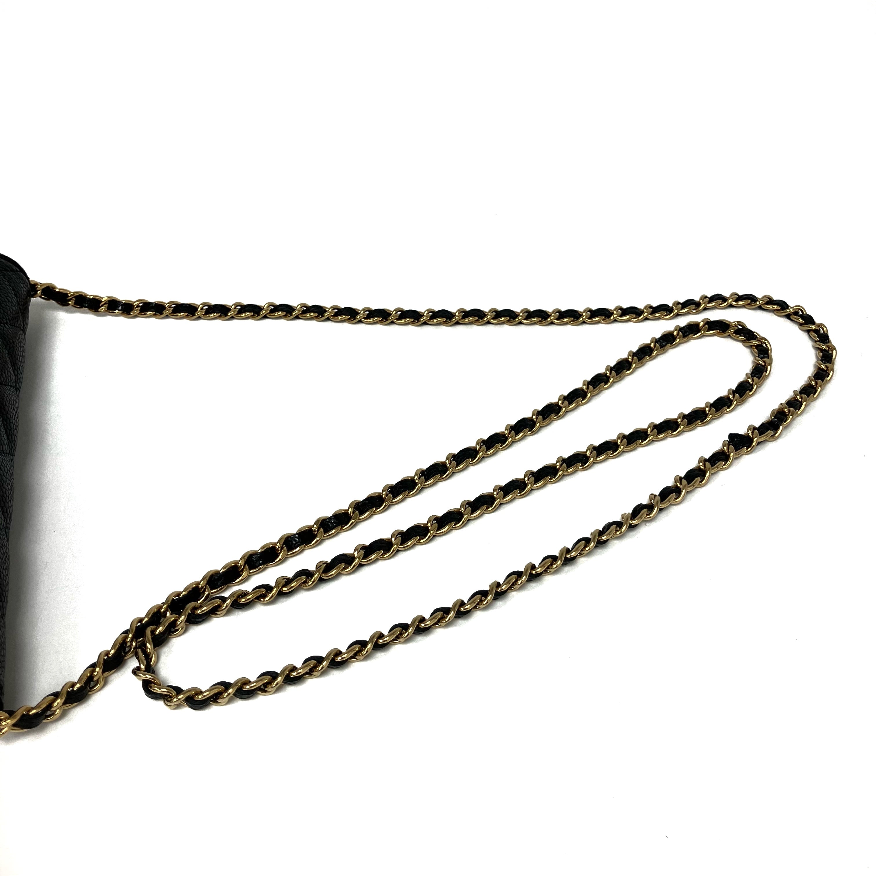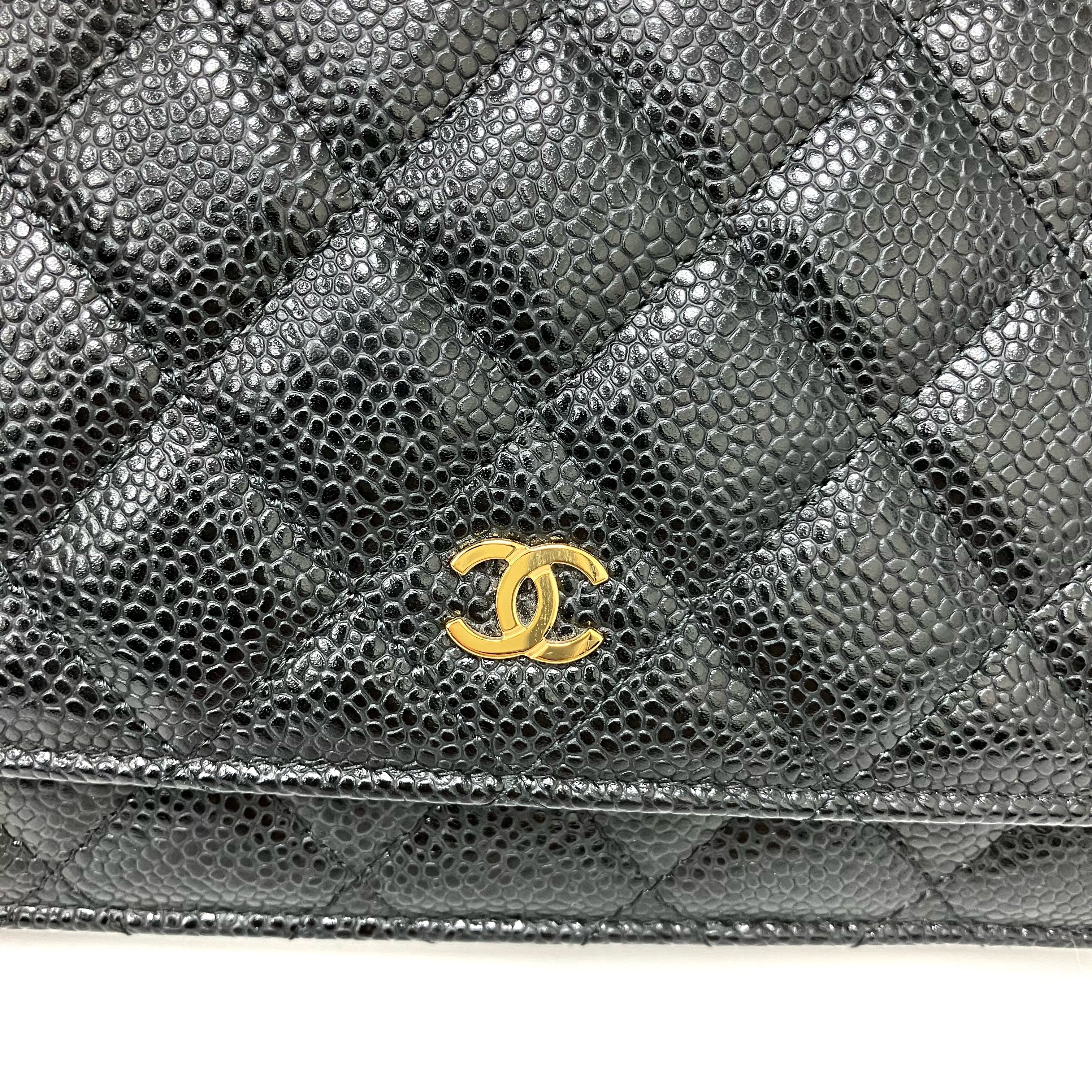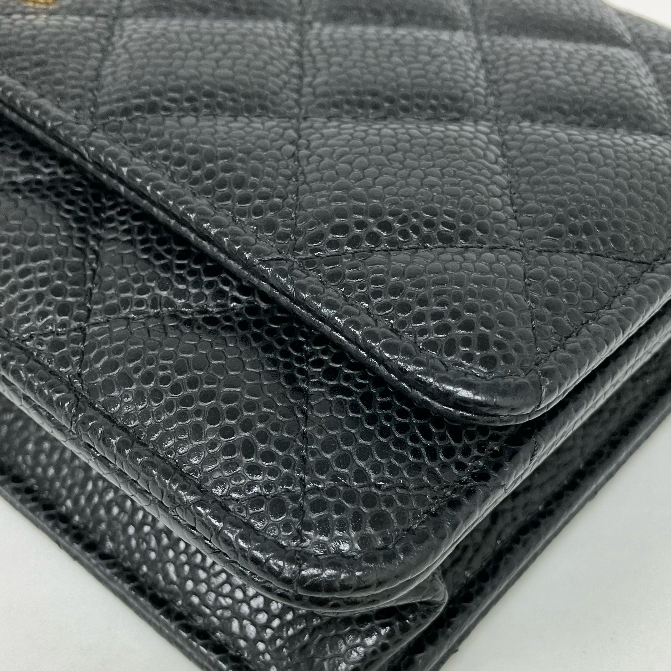 △ Chanel 香奈兒 Black Caviar Skin Gold Tone Metal Wallet On Chain AP0250 黑色粒紋小牛皮金色金屬鏈條銀包 AP0250 -257024832