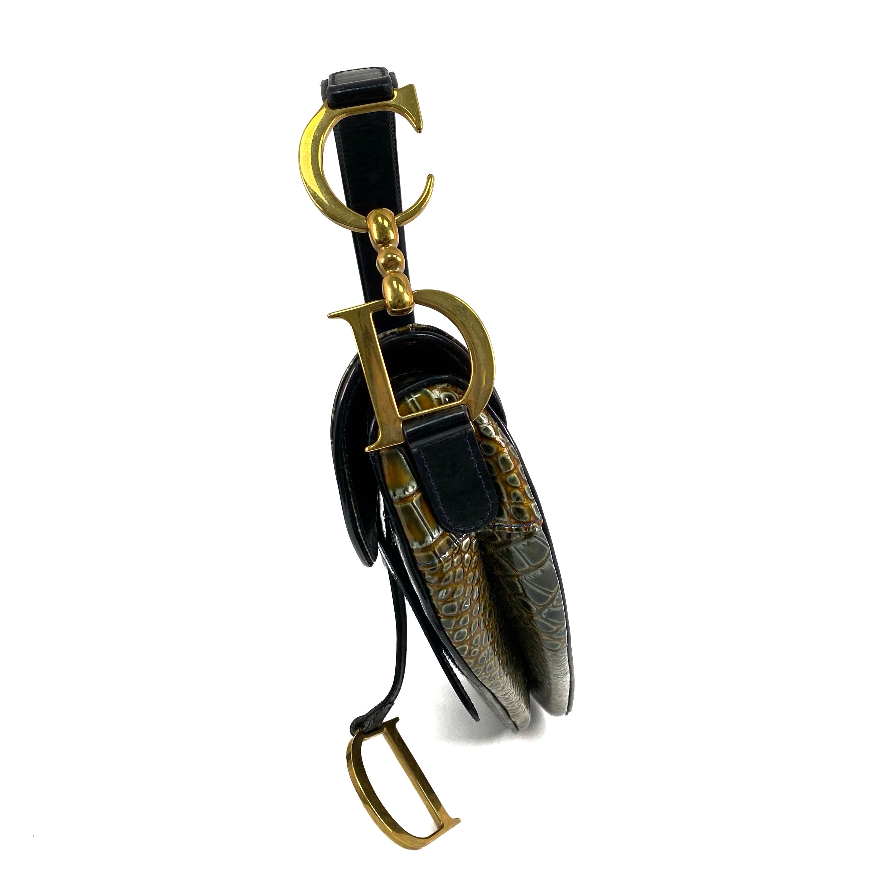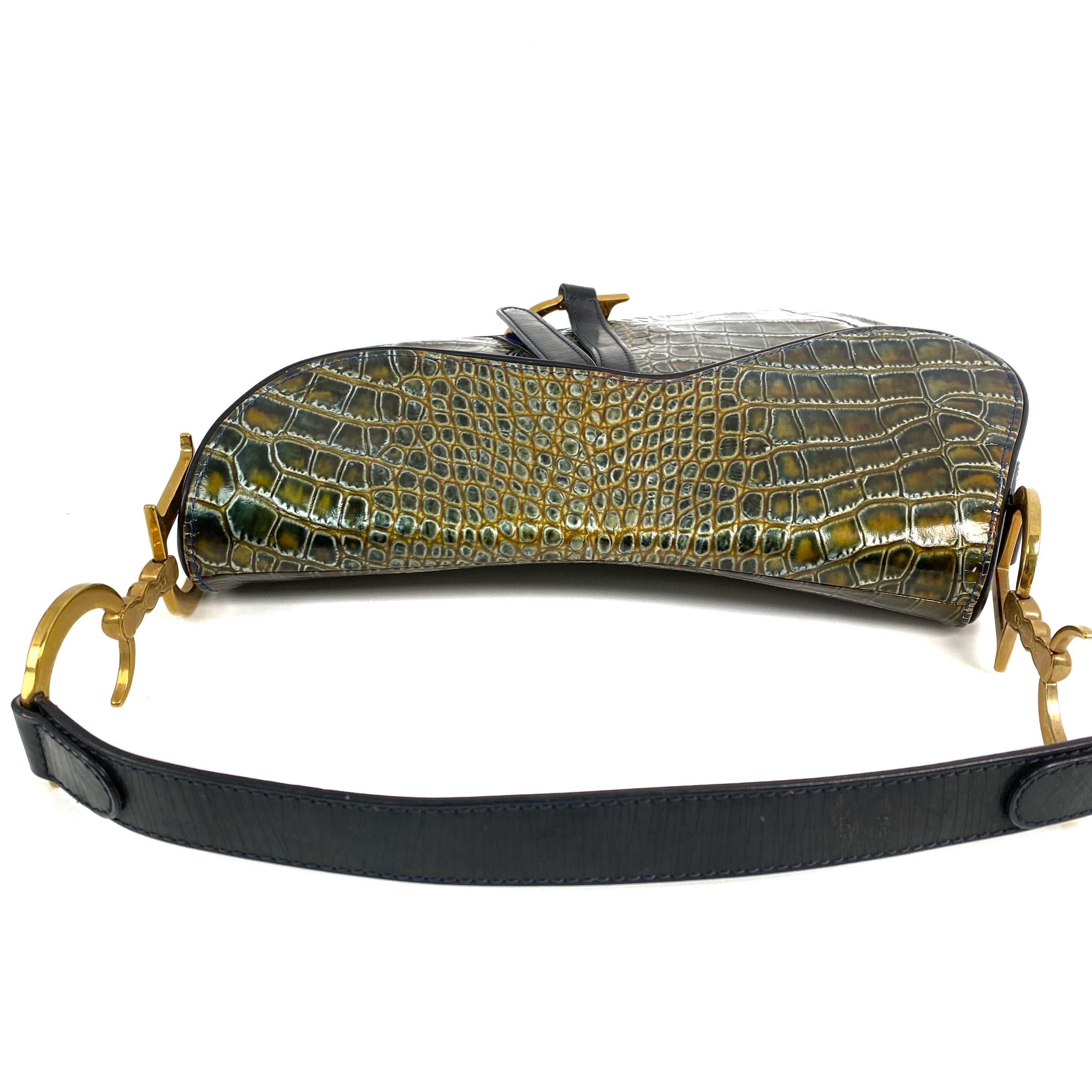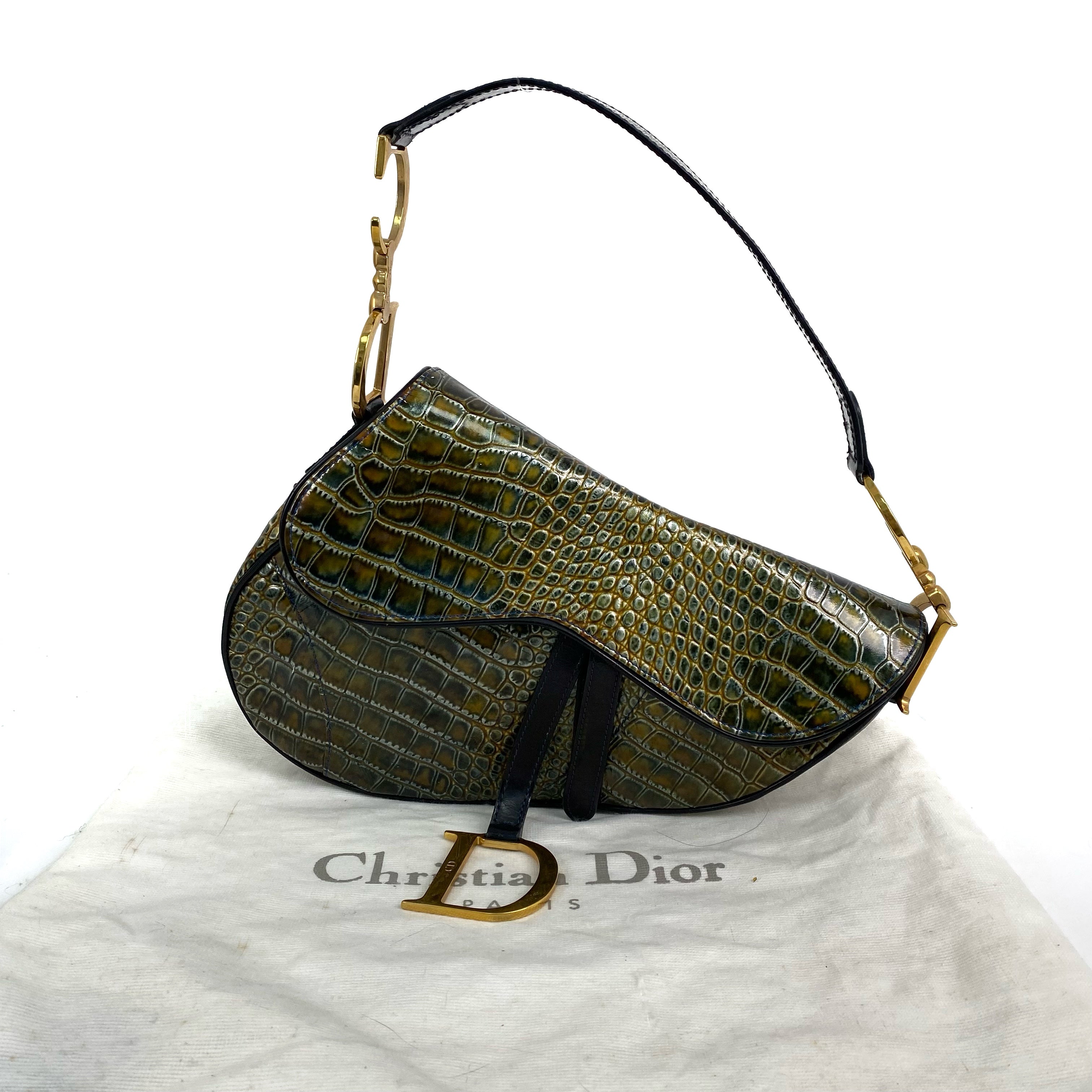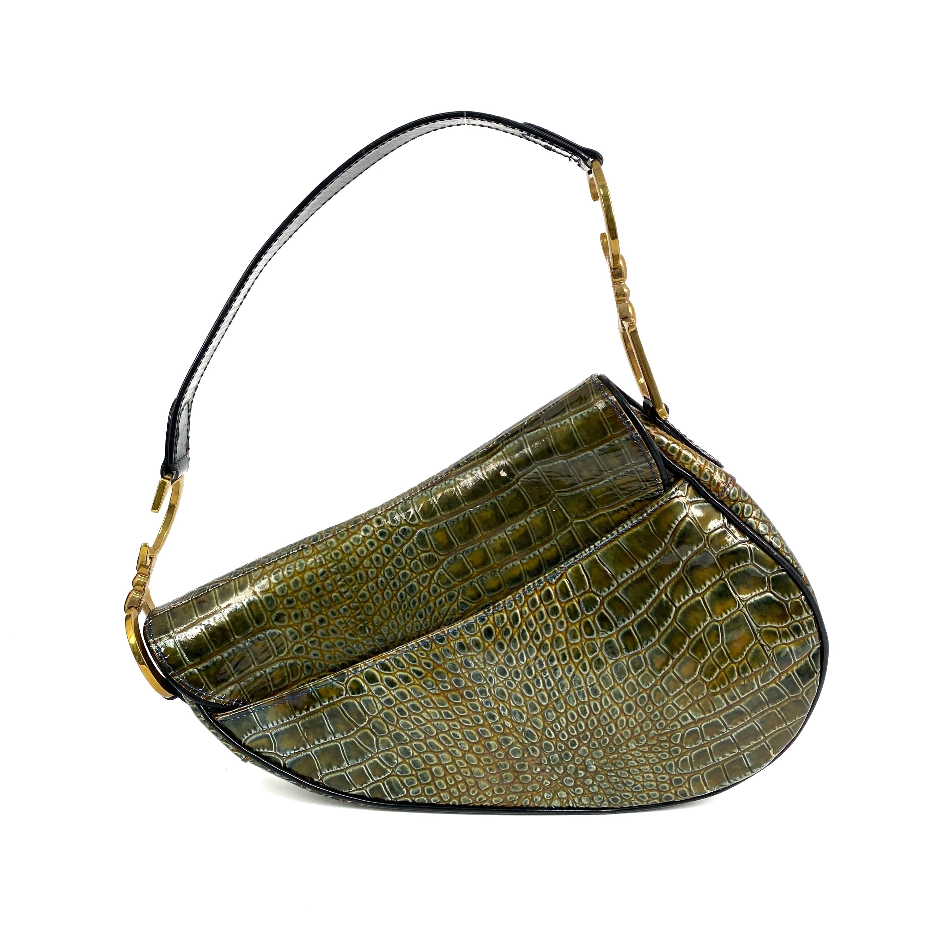 △ Dior 迪奧 Green Crocodile Embossed Calfskin Saddle Shoulder Bag 綠色鰐魚壓紋小牛皮肩背袋 - 267000409