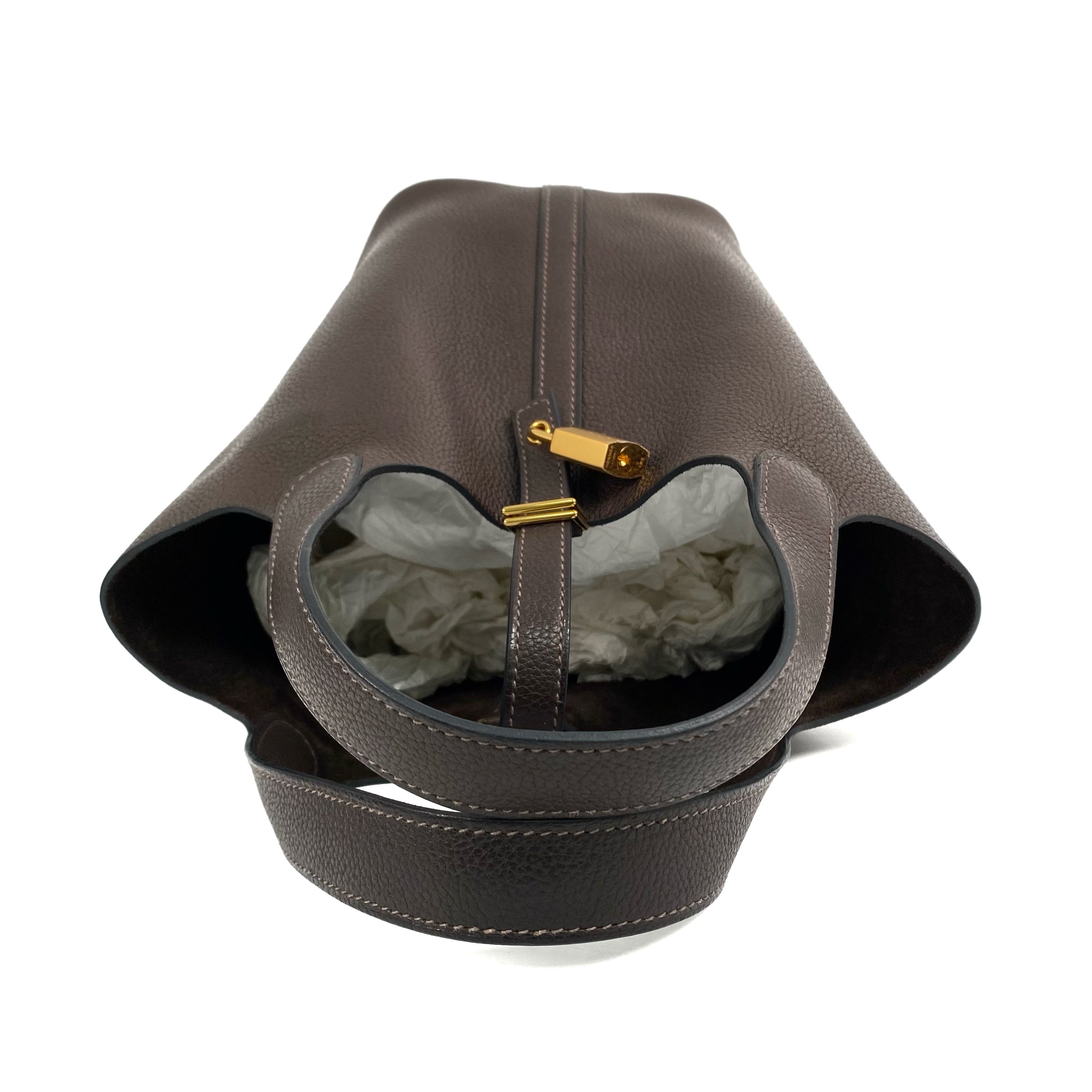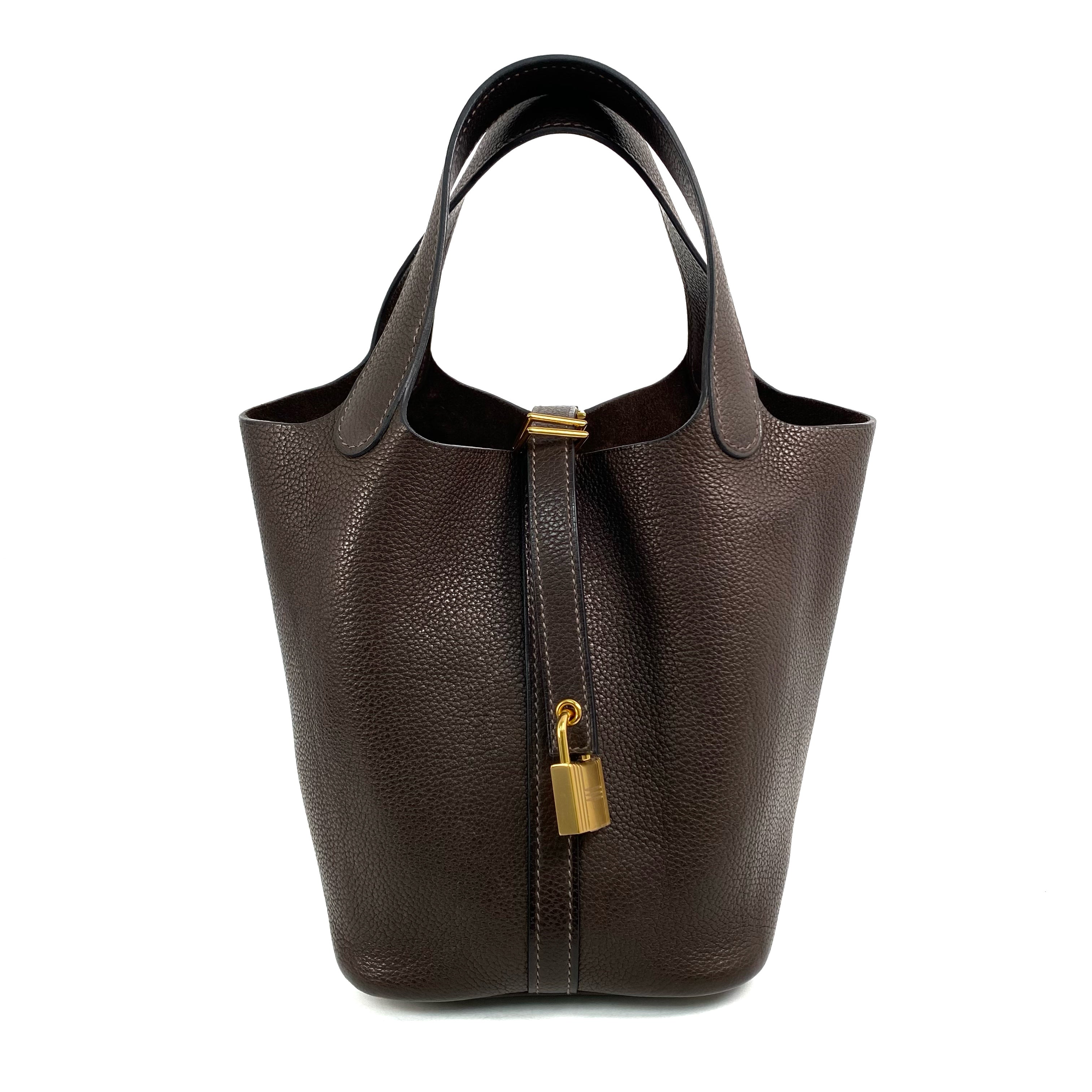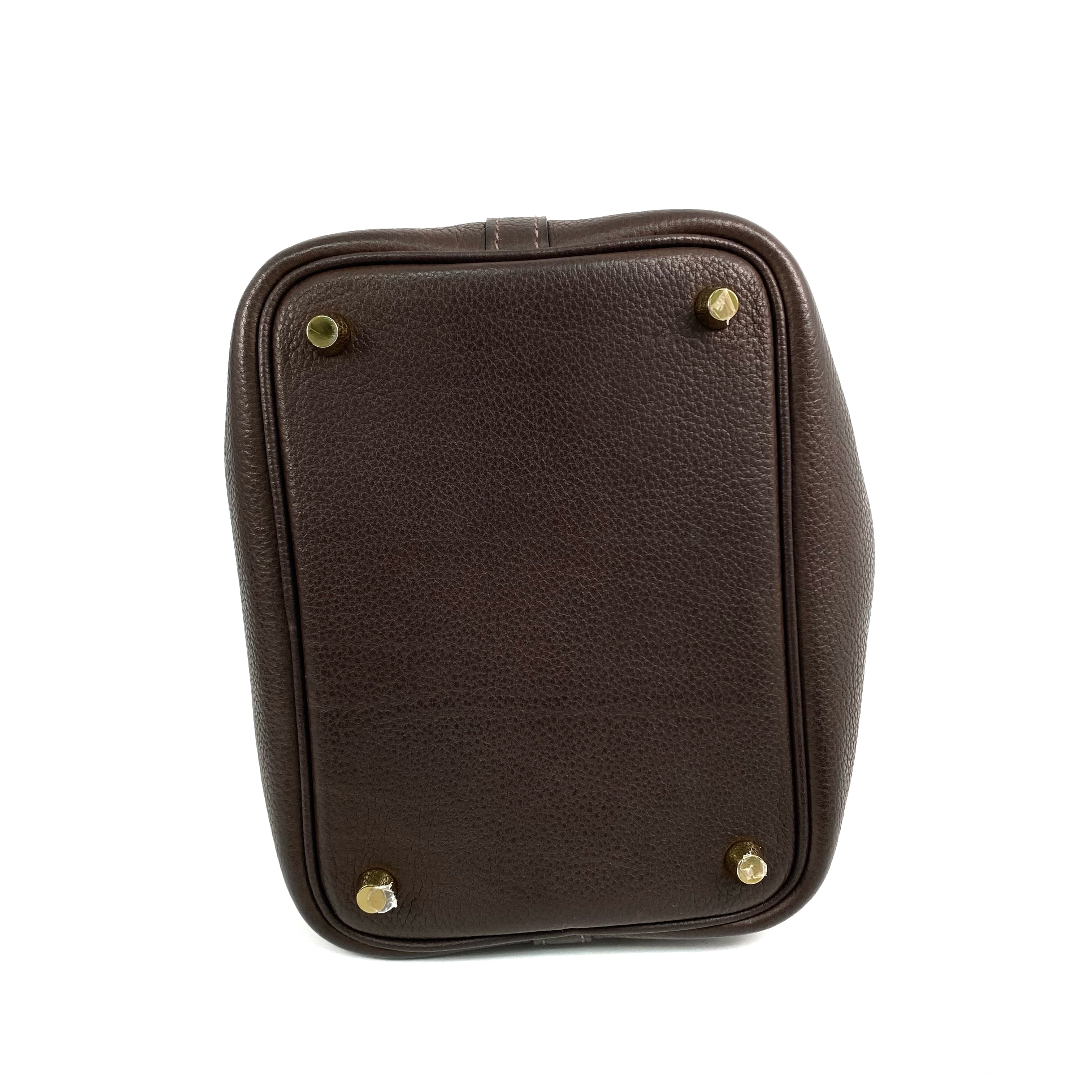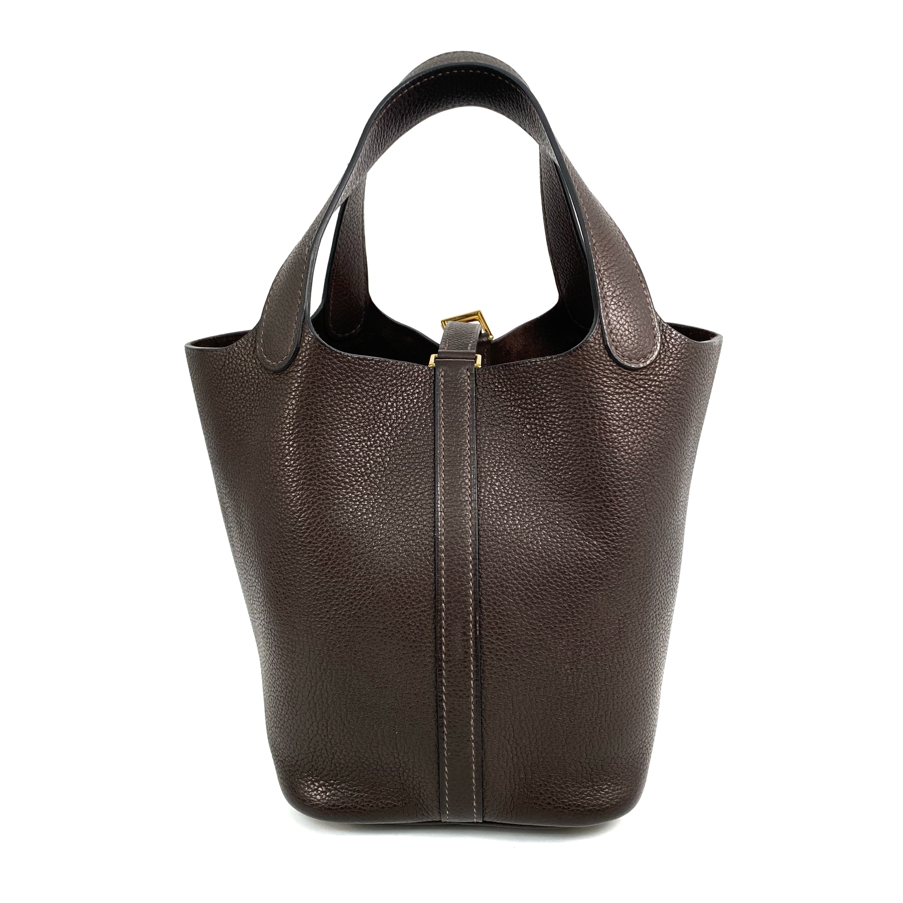 △ Hermes 愛馬仕 46 Ebene Clemence Calfskin Gold Plated Metal Picotin 18 Hand Bag Stamp Z 46烏木色粒紋小牛皮鍍金金屬手袋Z刻 - 267003841