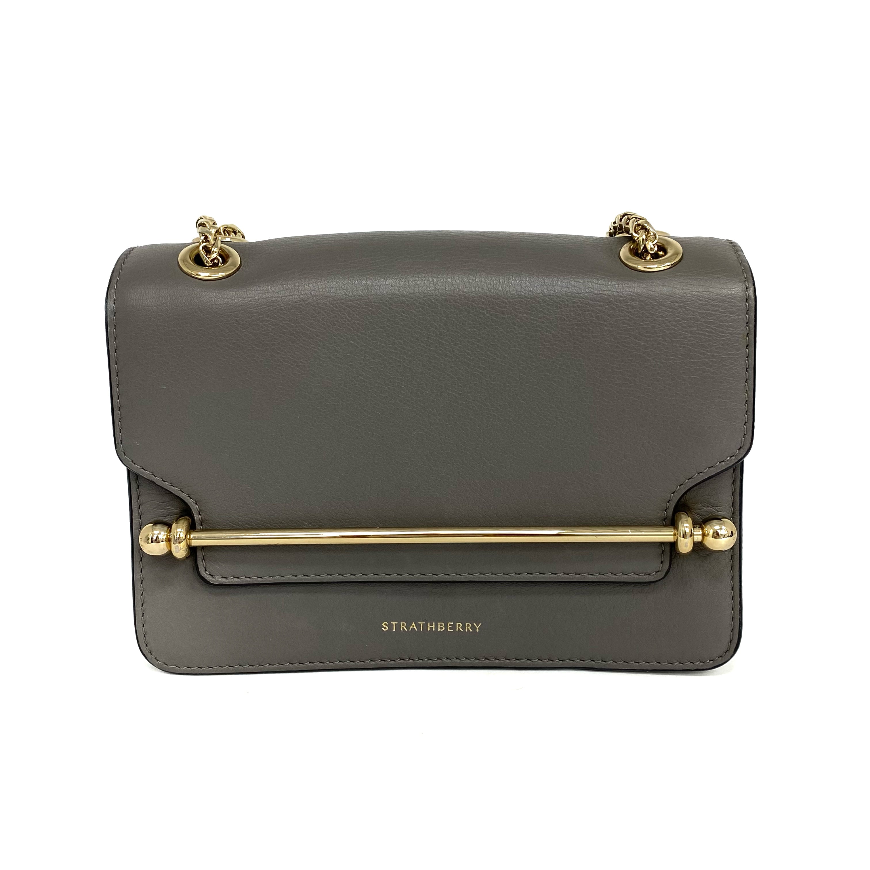 ☆ Strathberry Grey Calfskin East West Mini Chain Shoulder Bag 灰色小牛皮鎖鏈肩背袋 - 267003906