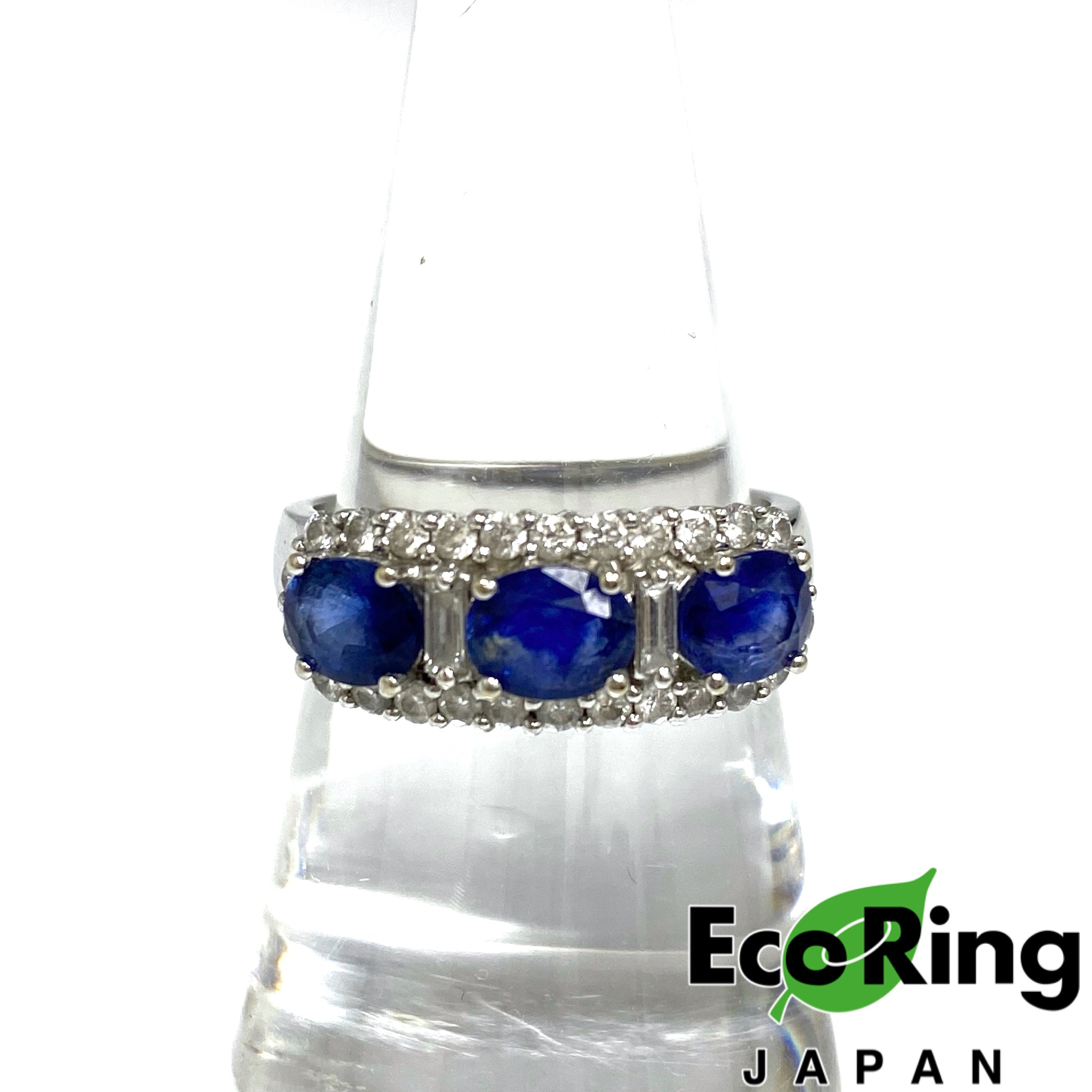 18K 白金鑽石藍寶石戒指 5.86g