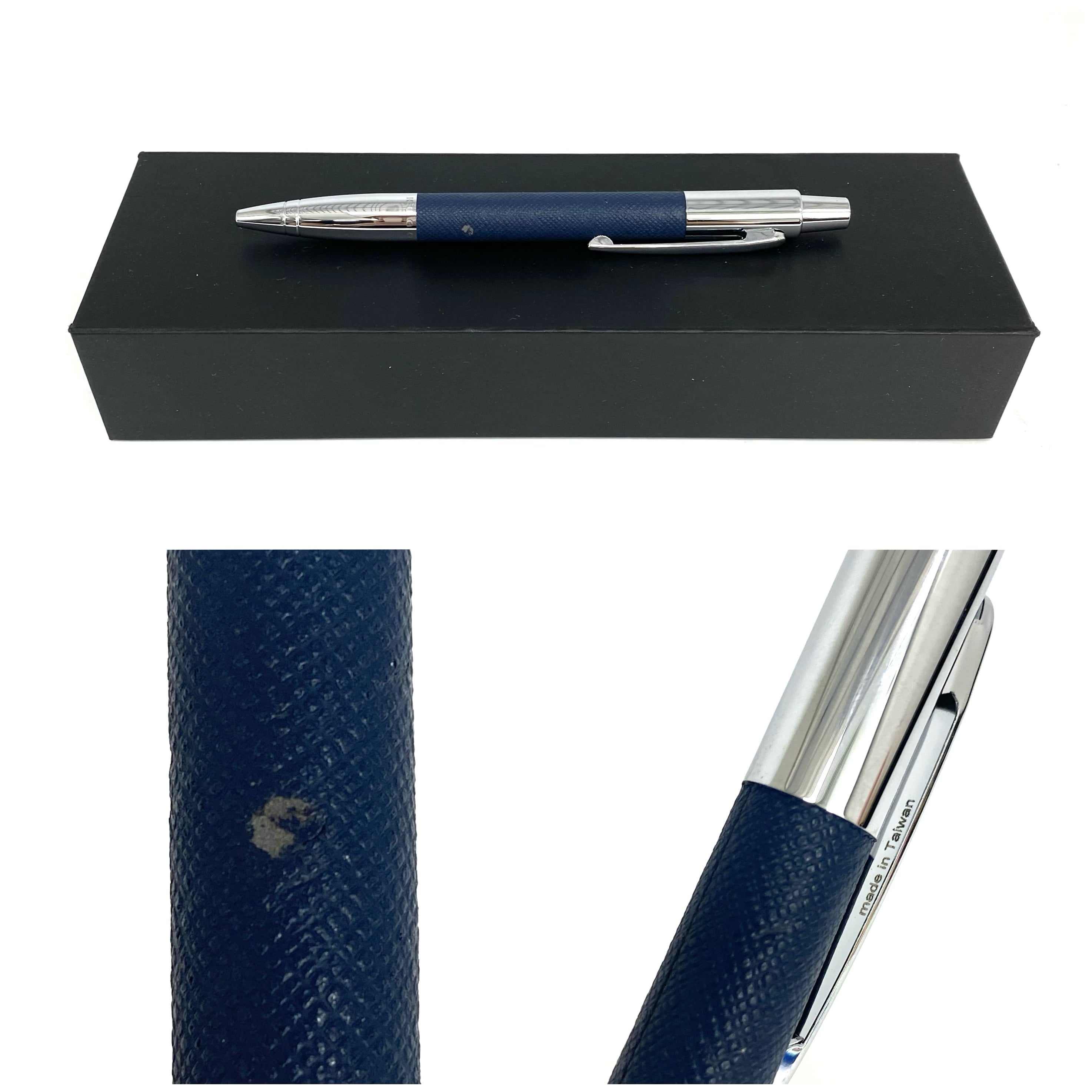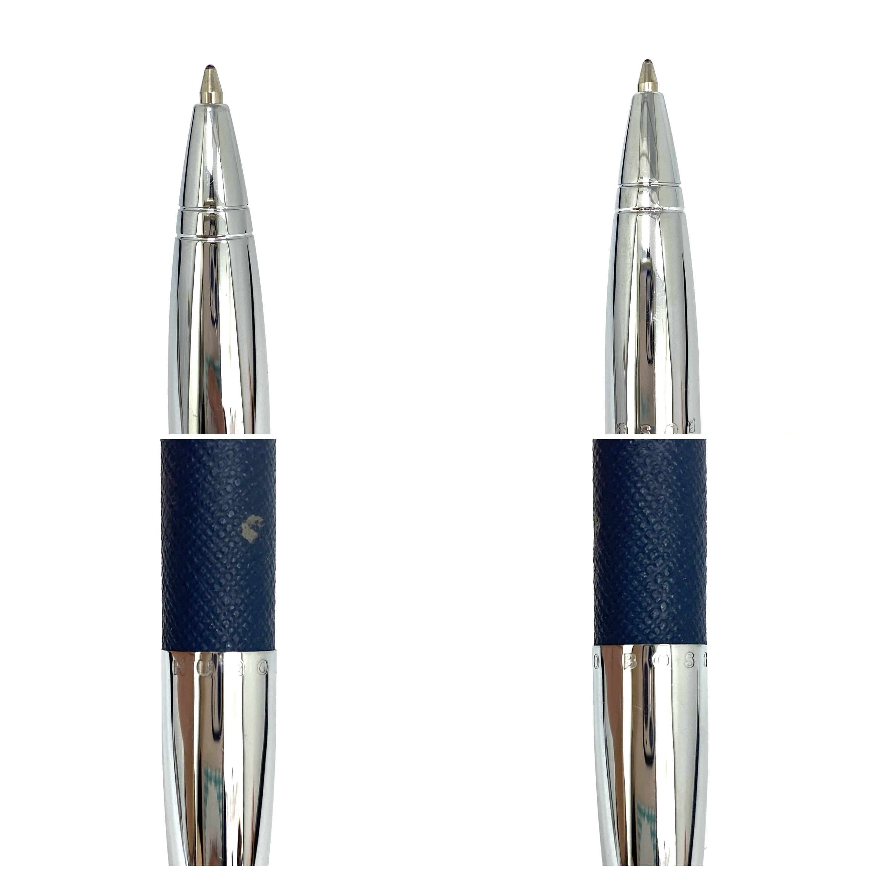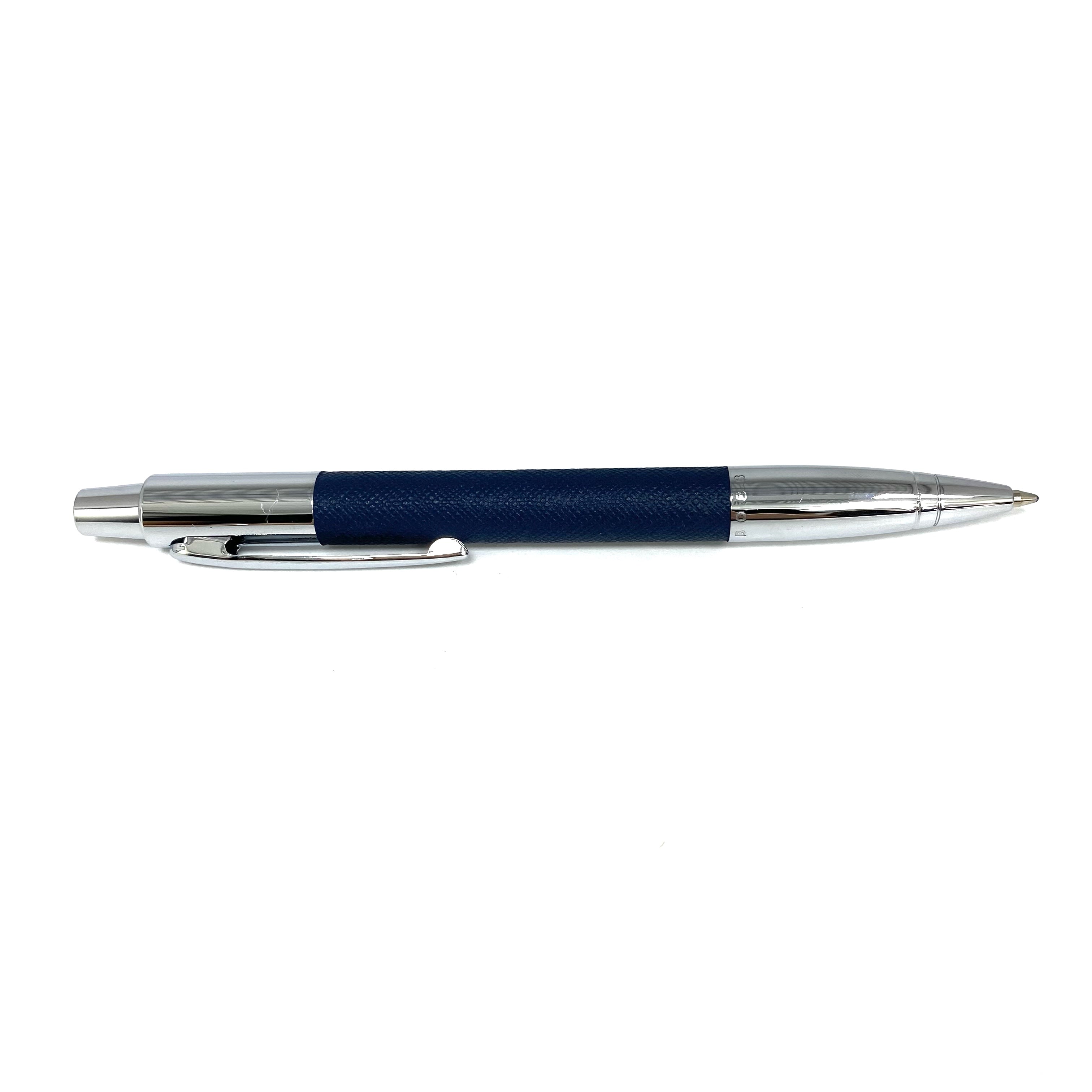 ☆ Hugo Boss Navy Calfskin & Silver-tone Metal Ball Pen 深藍色小牛皮和銀色金屬原子筆 - 247012558