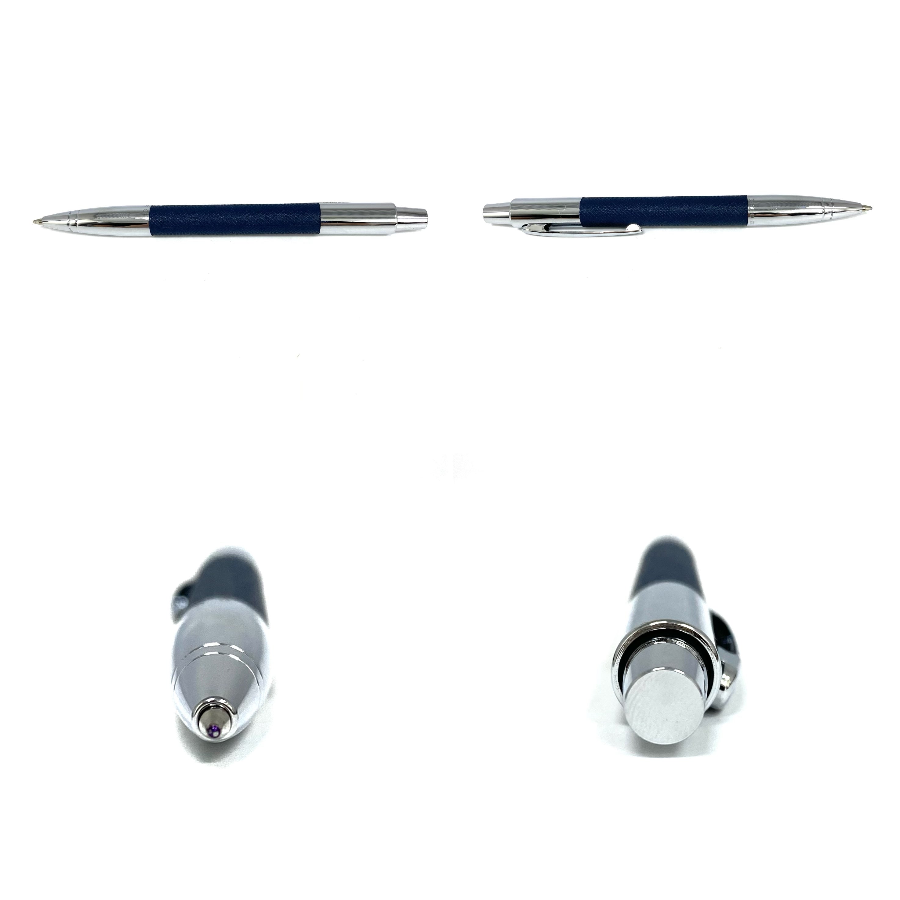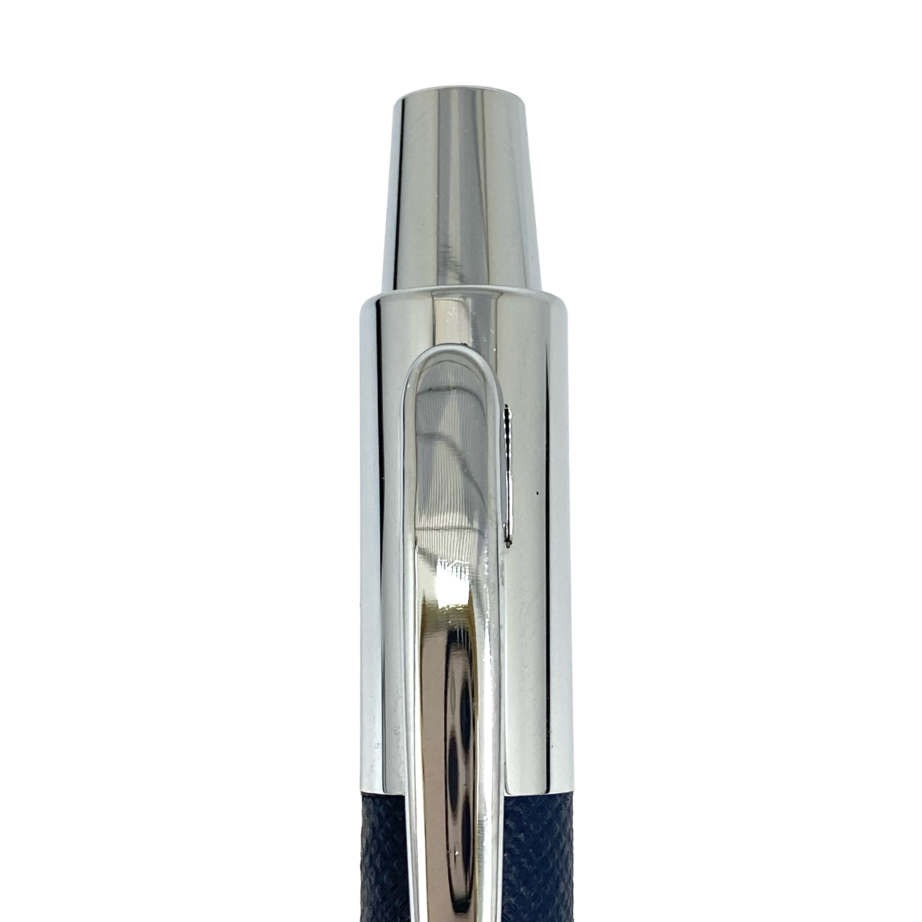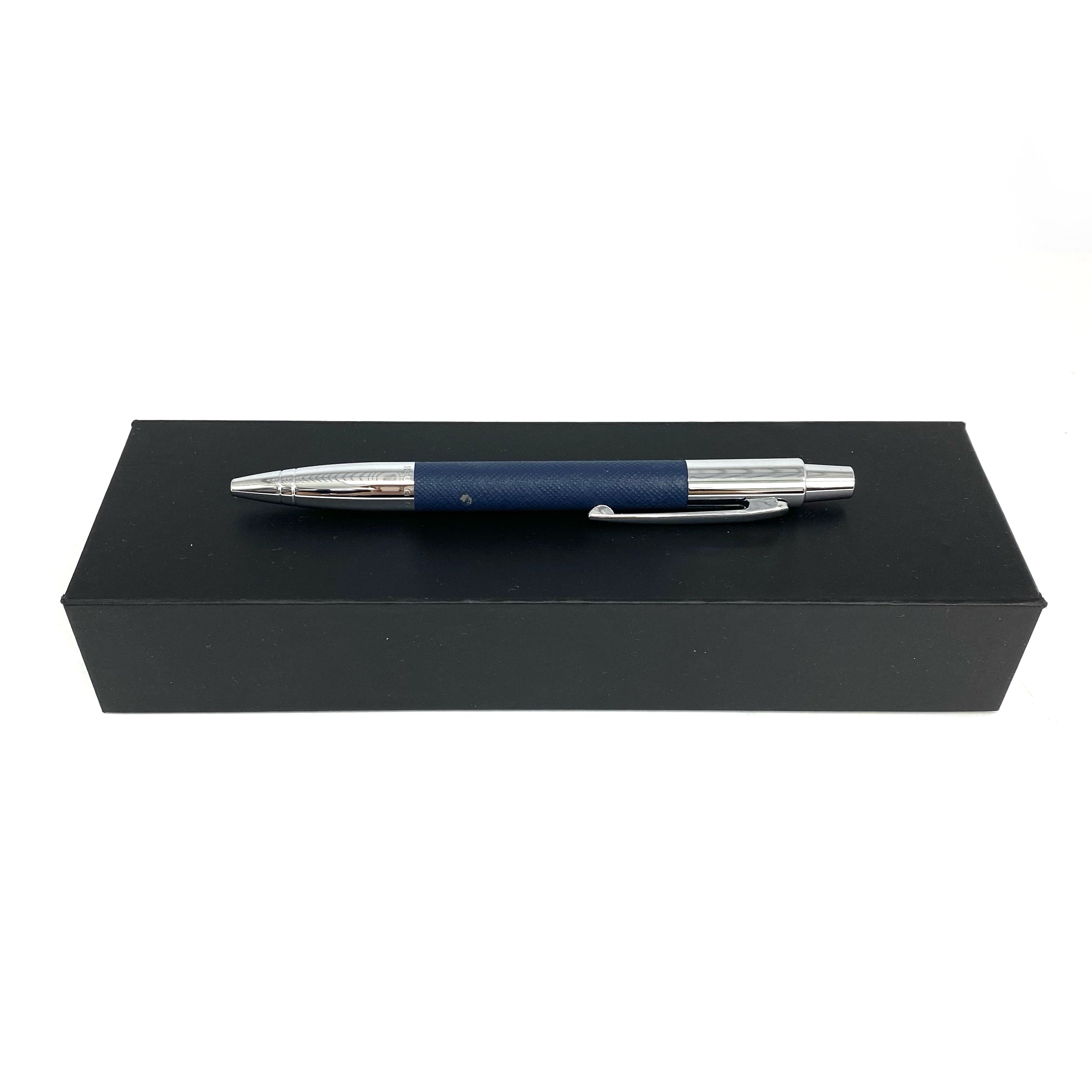 ☆ Hugo Boss Navy Calfskin & Silver-tone Metal Ball Pen 深藍色小牛皮和銀色金屬原子筆 - 247012558