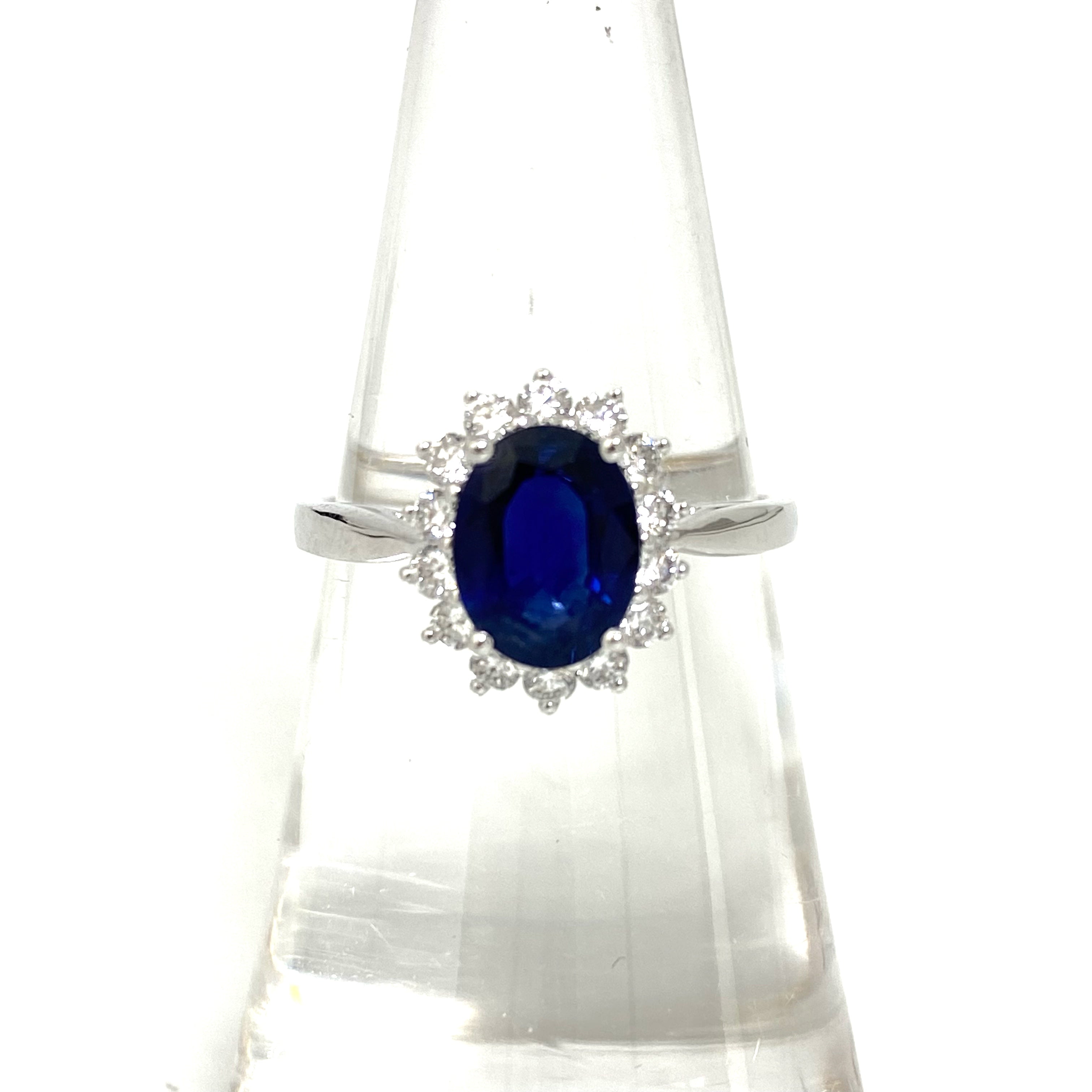 ☆ 18K White Gold Sapphire Diamond Ring 3.12g 18K白金藍寶石鑽石戒指3.12g - 257020597
