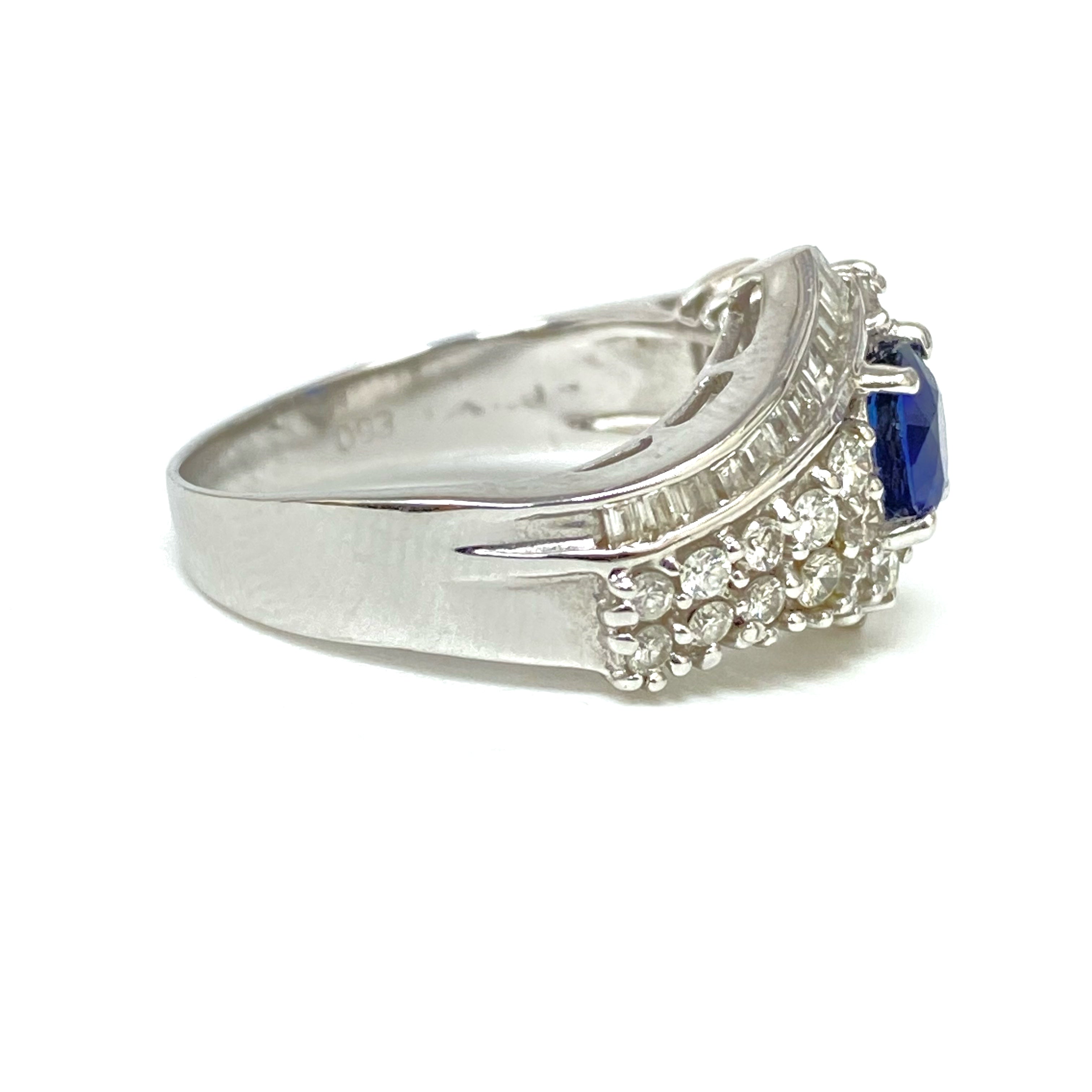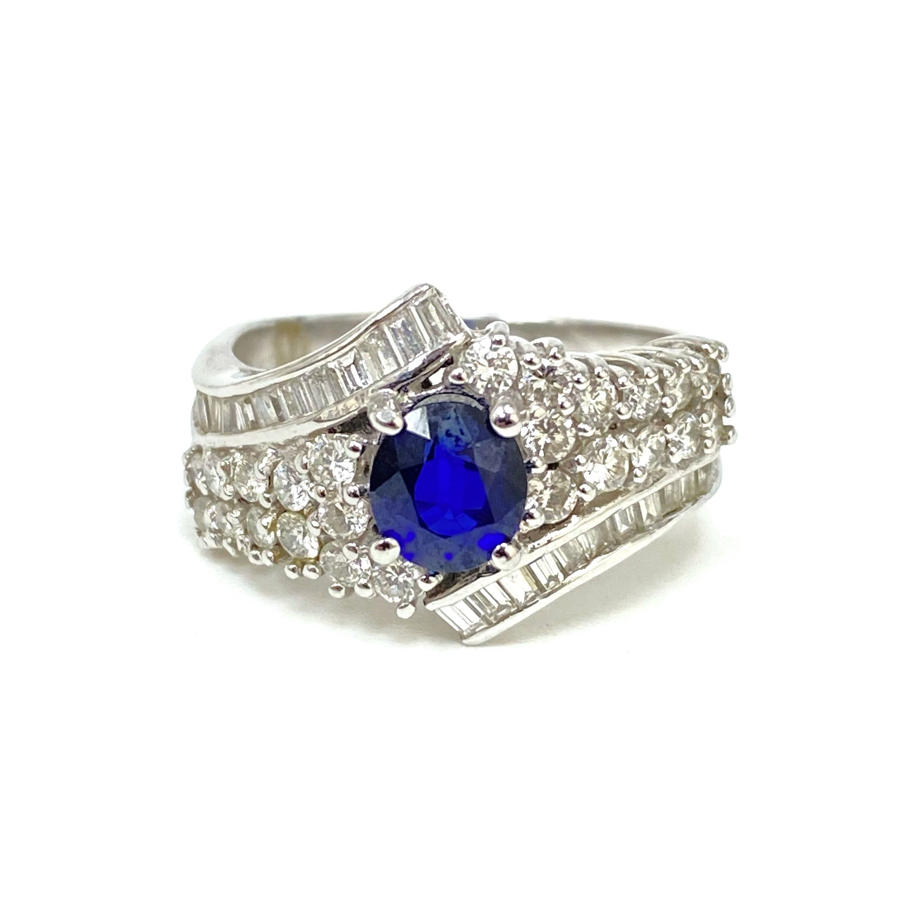 △ 18K White Gold Diamond Sapphire Ring 6.14g 18K白金鑽石藍寶石戒指 6.14g - 257020815