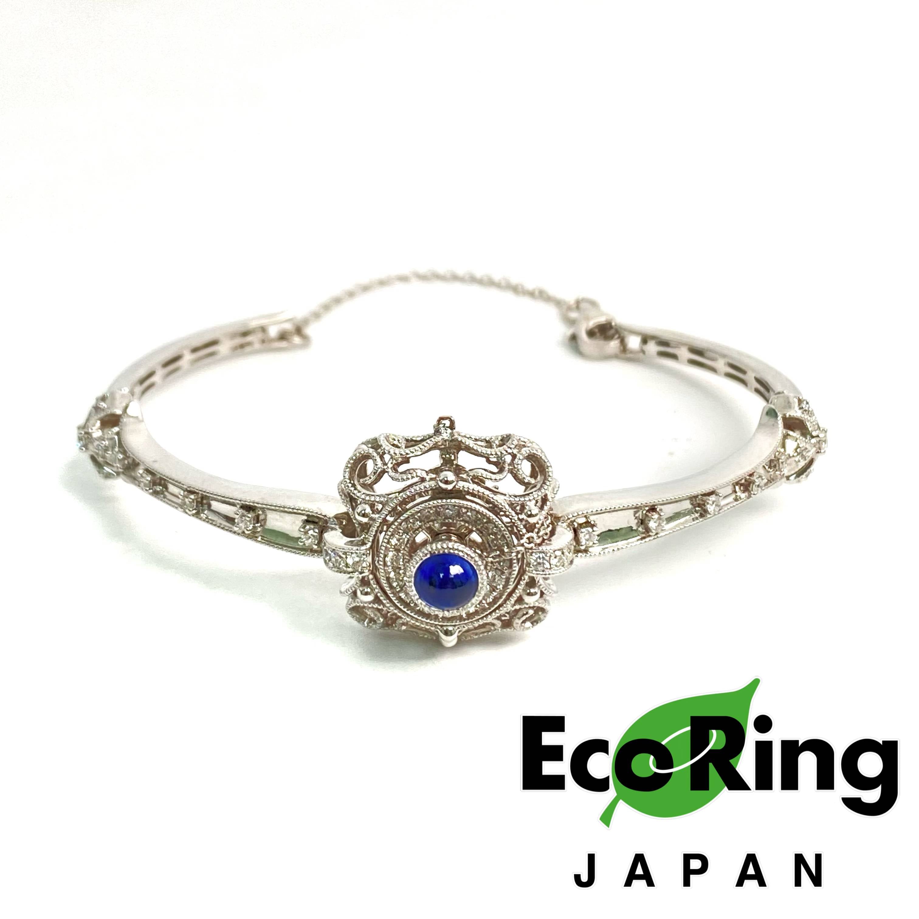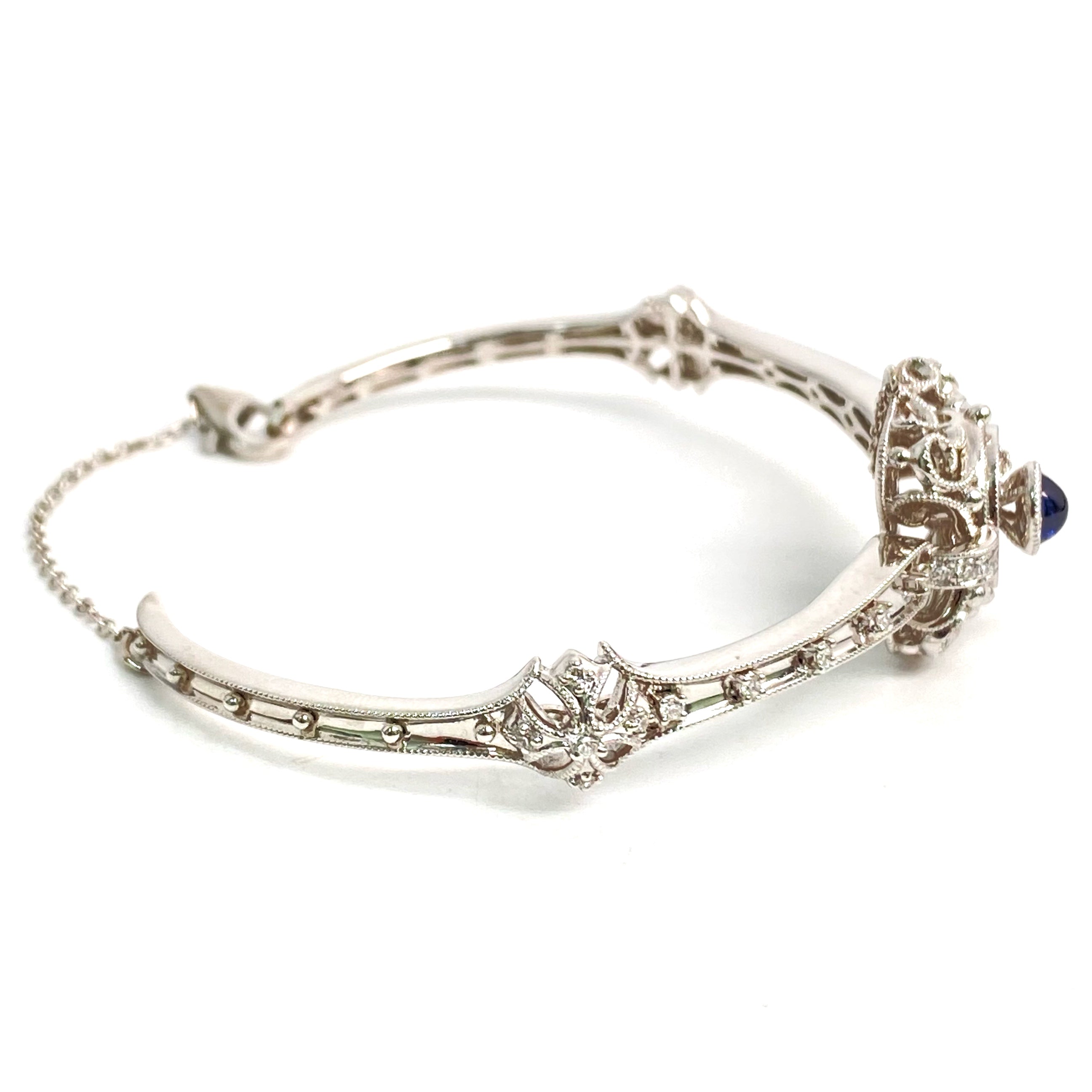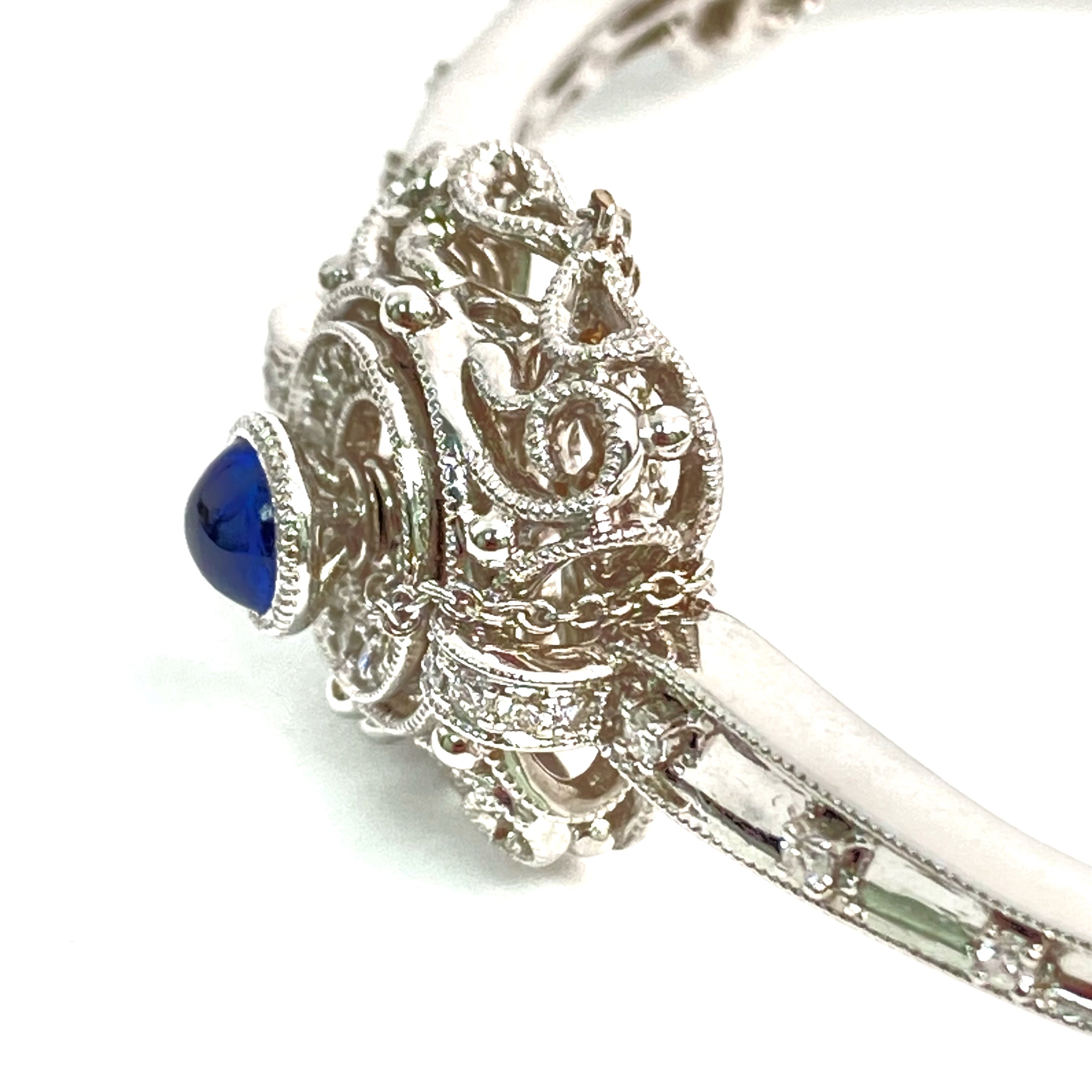 △ 18K White Gold Diamond Sapphire Bangle 16.19g 18K白金鑽石藍寶石手鐲 16.19g - 257020872