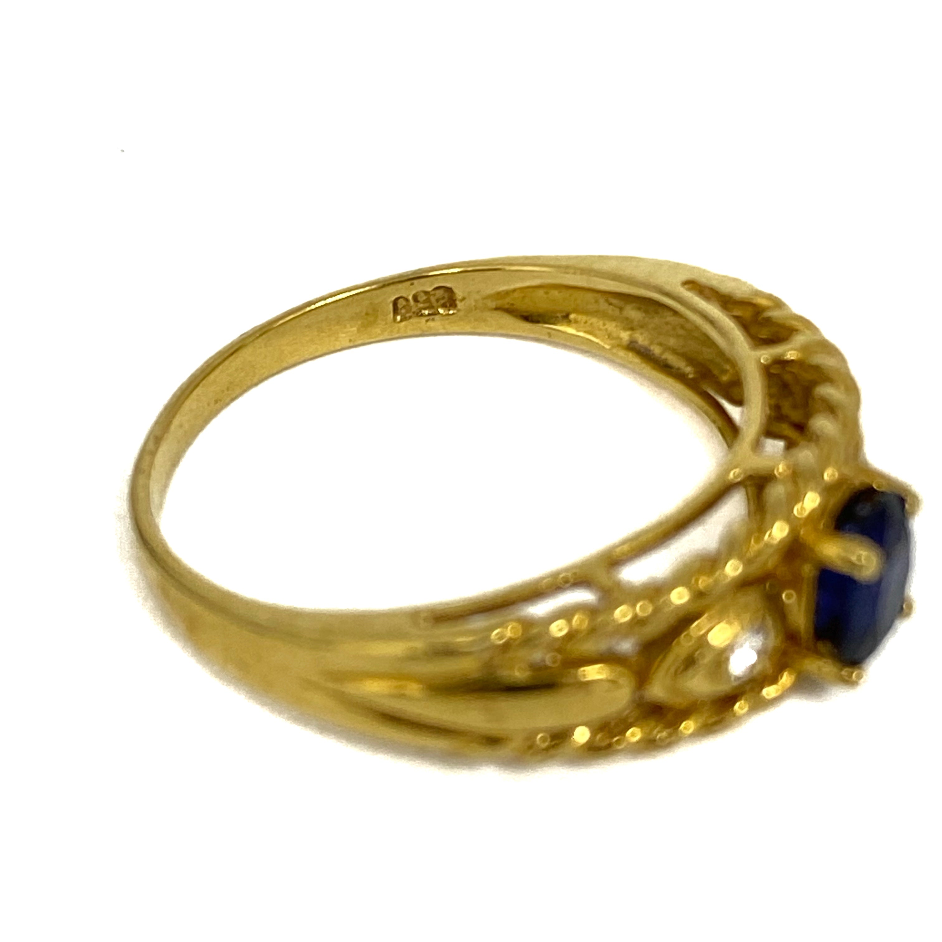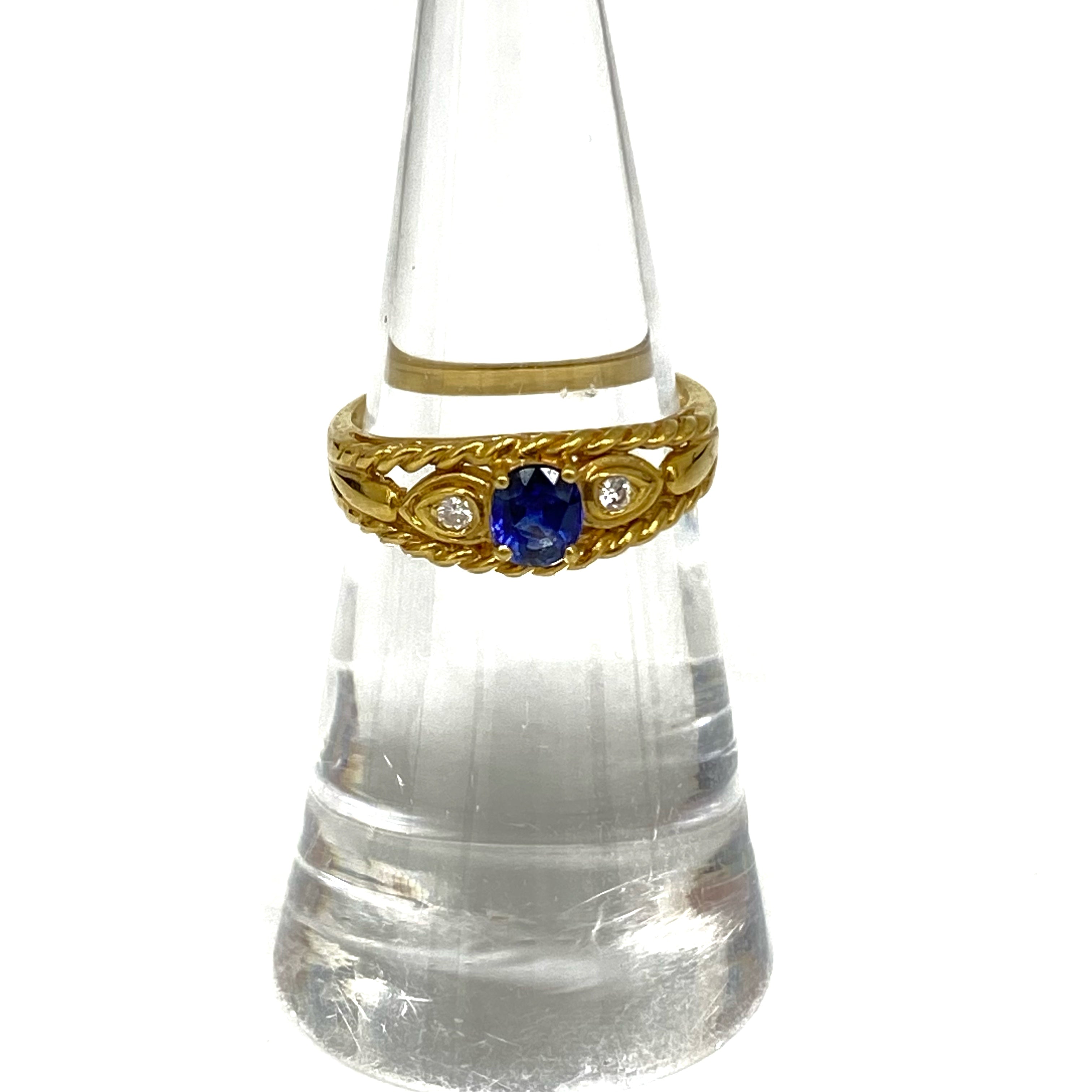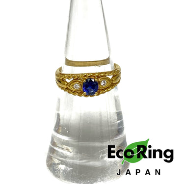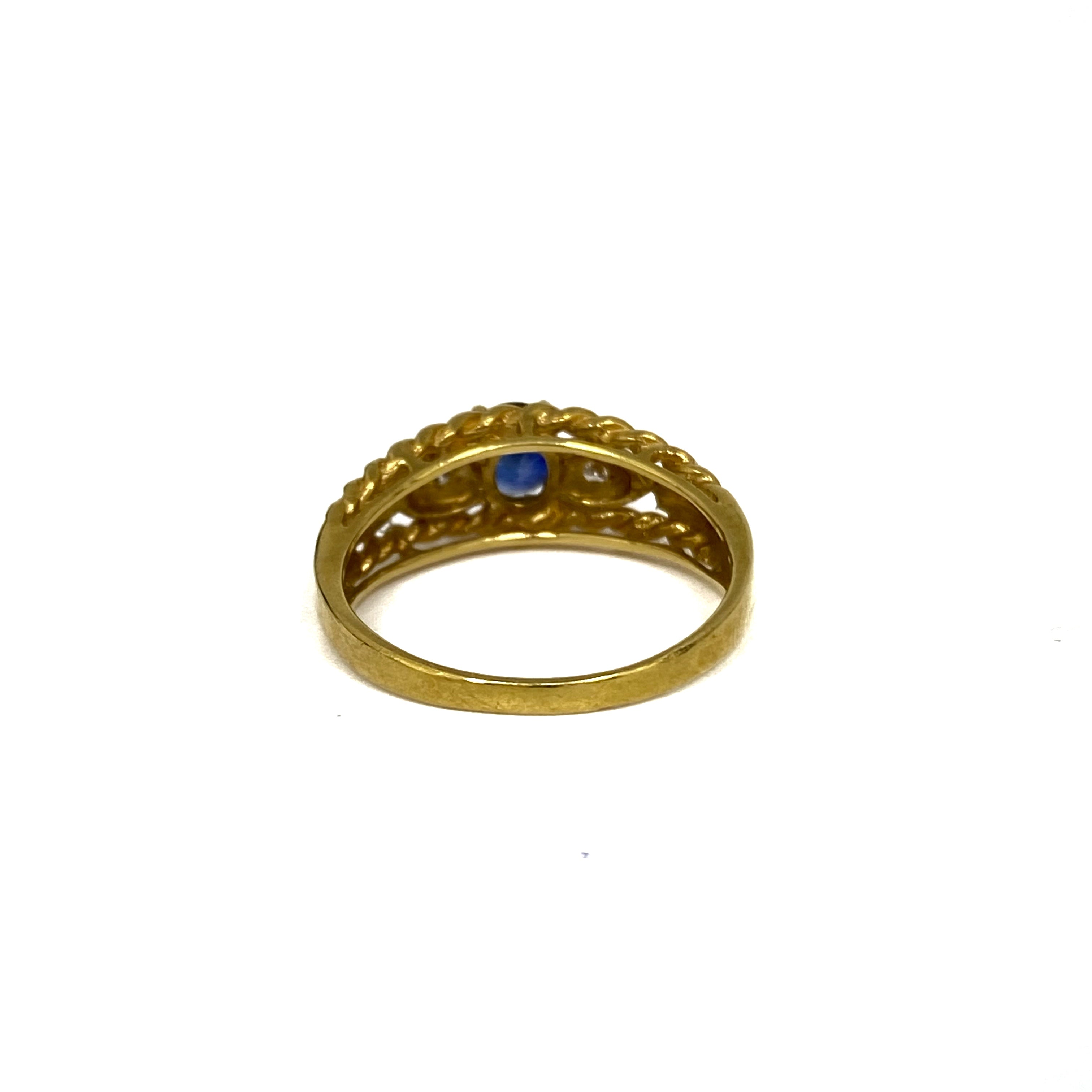 ☆ 18K Yellow Gold Blue Color Stone Diamonds Ring 3.14g 18K黃金藍色石鑽石戒指3.14g - 257021549