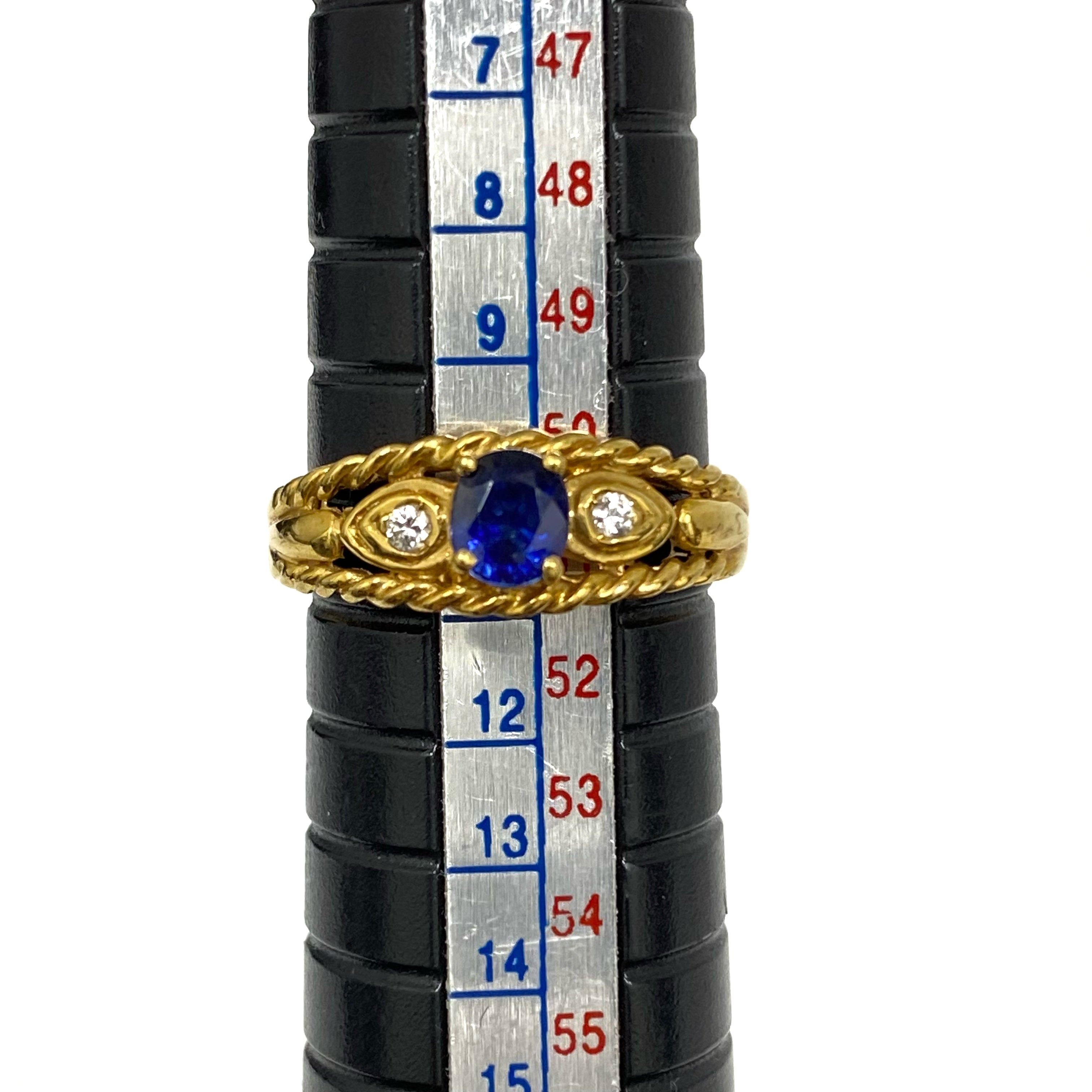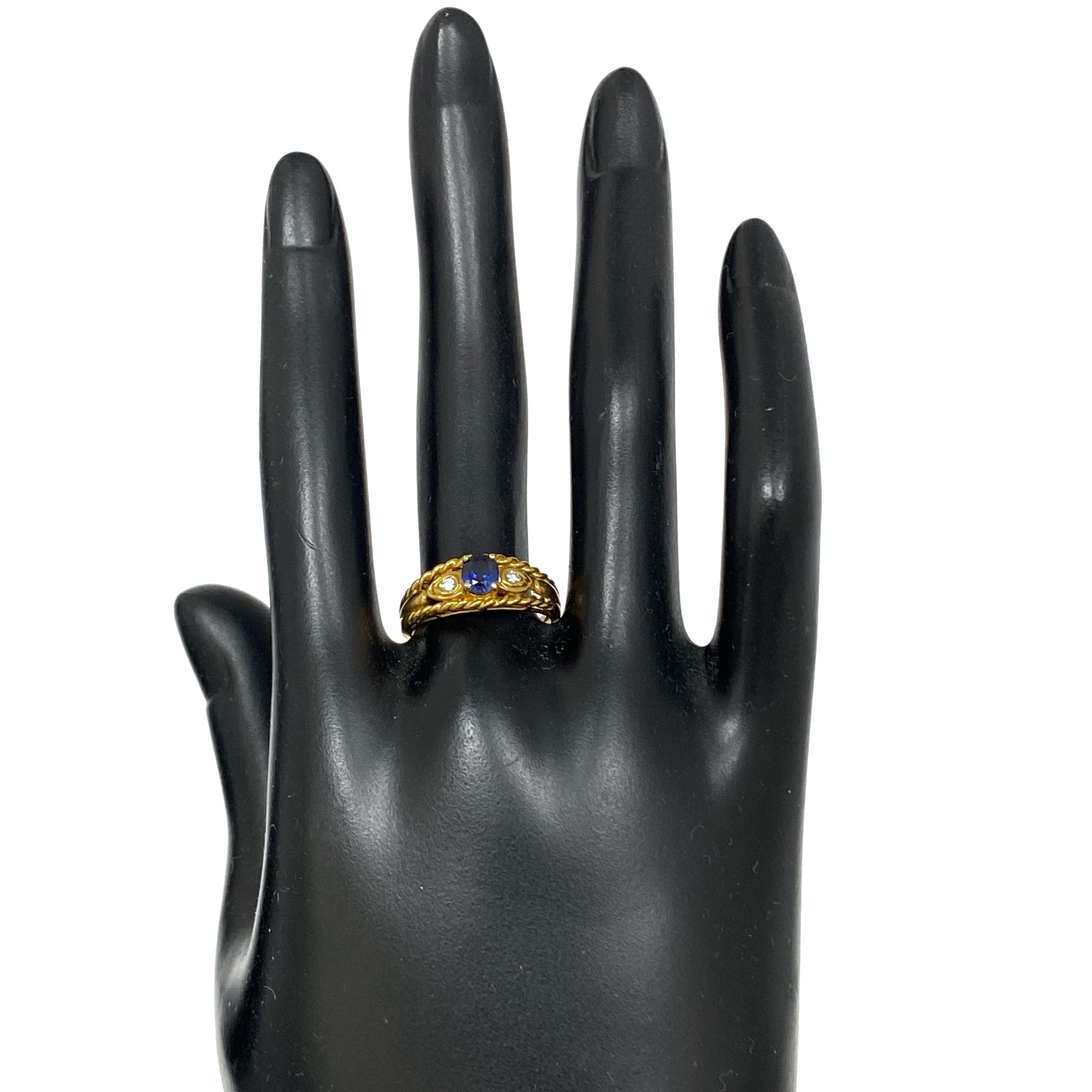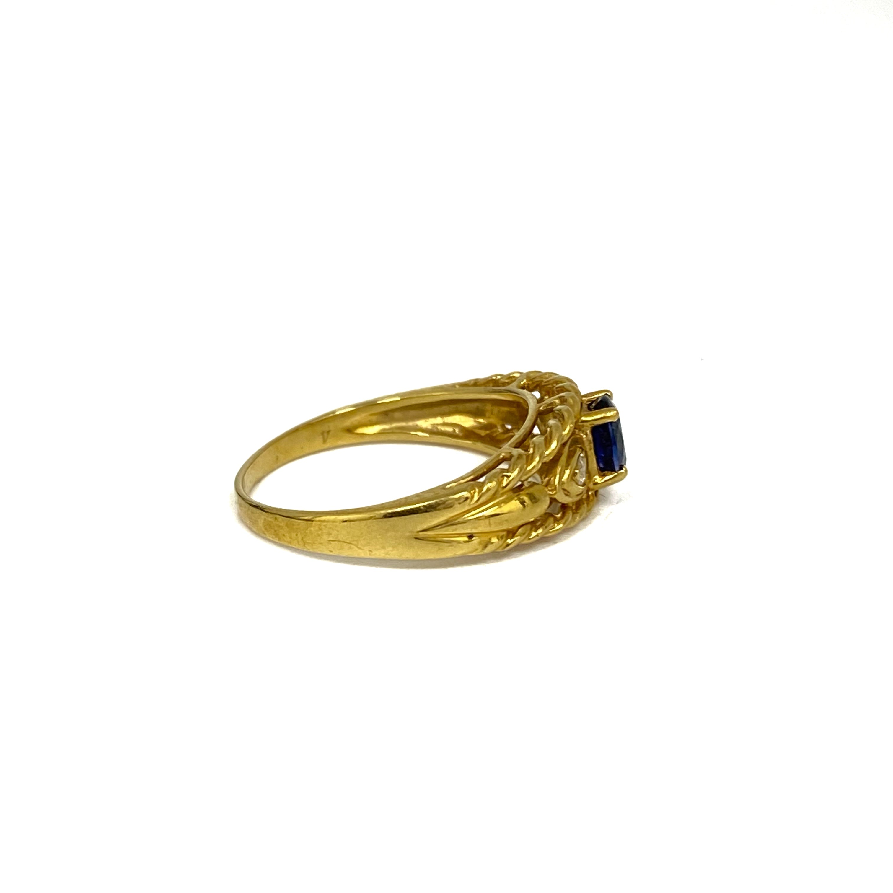 ☆ 18K Yellow Gold Blue Color Stone Diamonds Ring 3.14g 18K黃金藍色石鑽石戒指3.14g - 257021549