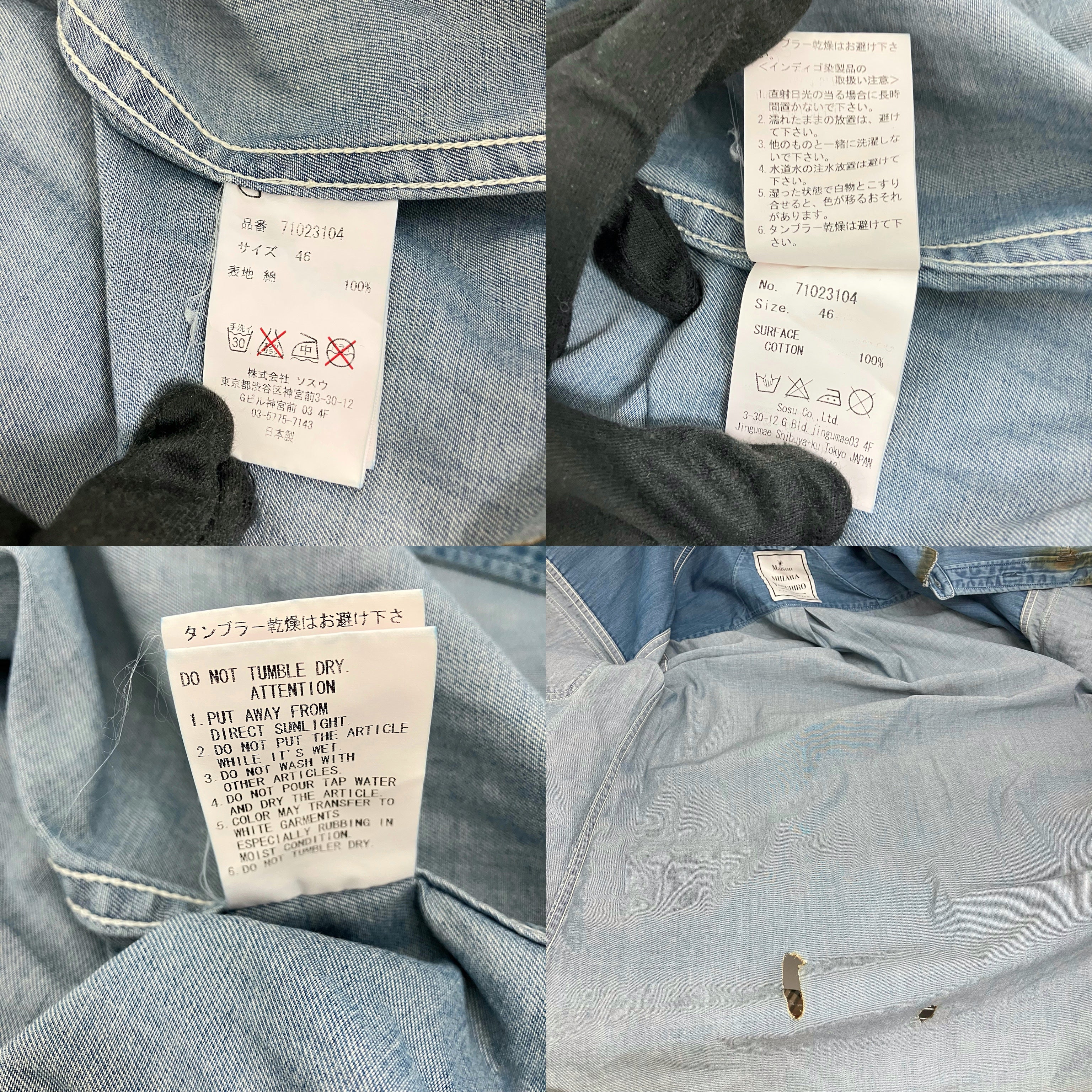 ☆ Maison Mihara Yasuhiro Blue 100% Cotton Shirt #46 藍色100%棉質恤衫46碼 - 257021666
