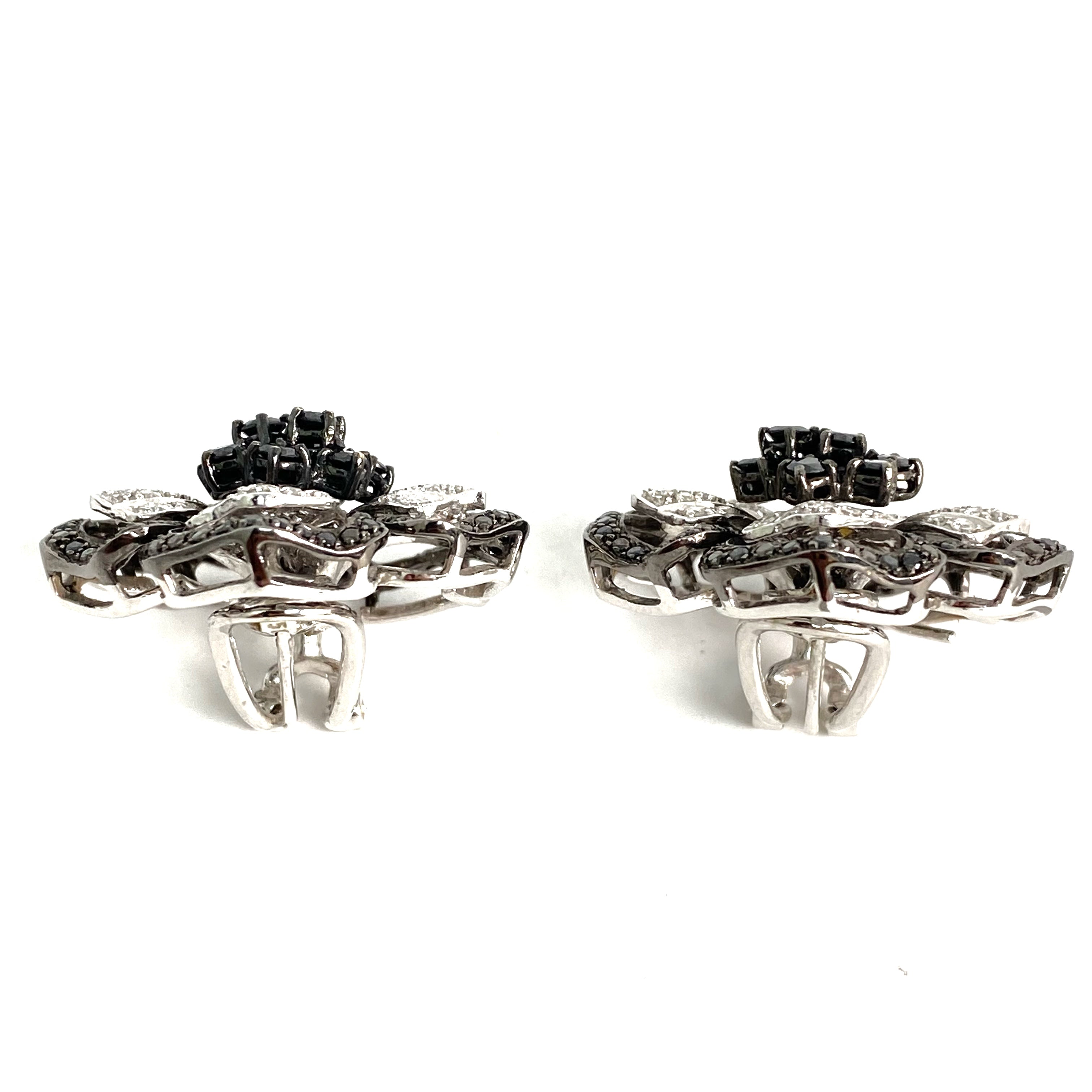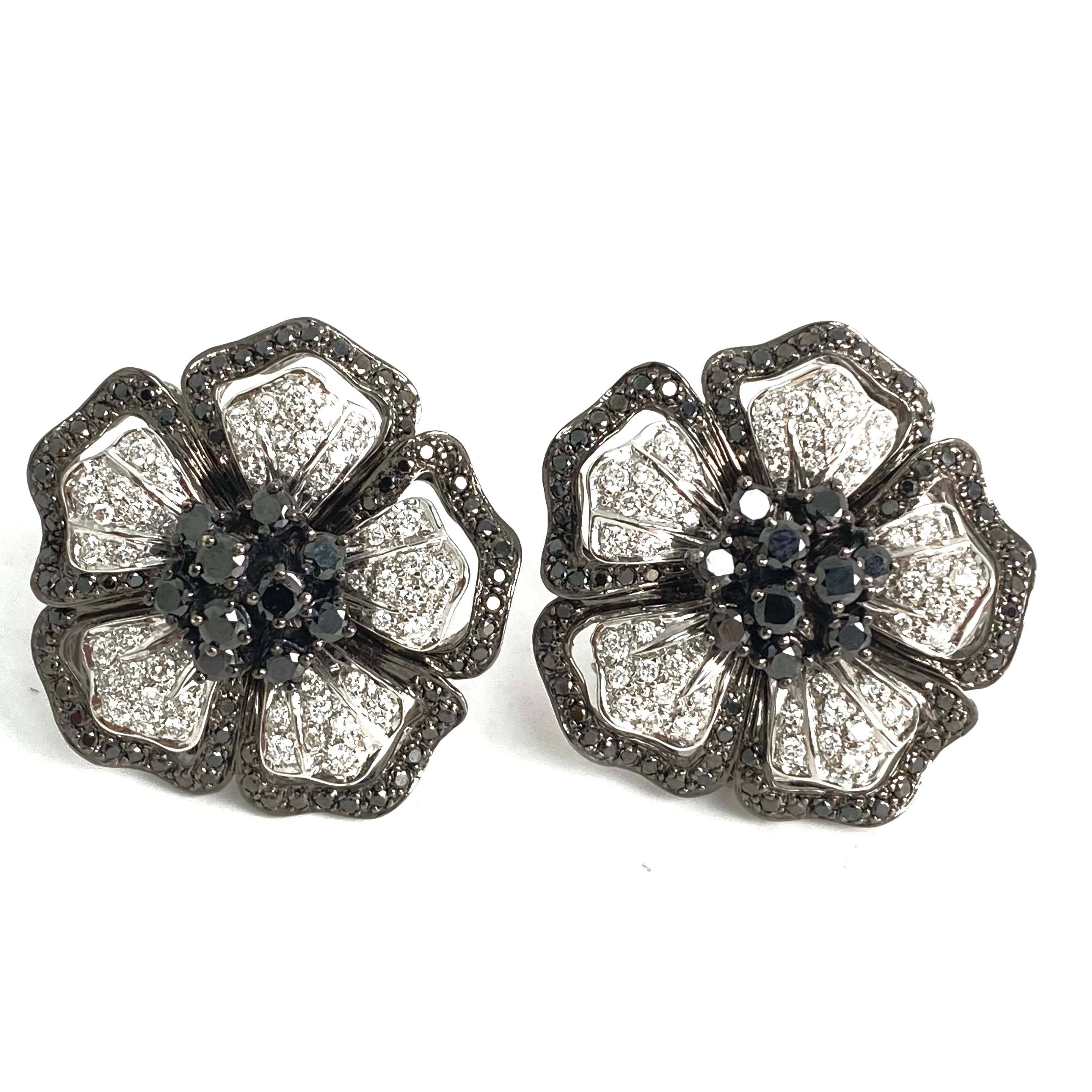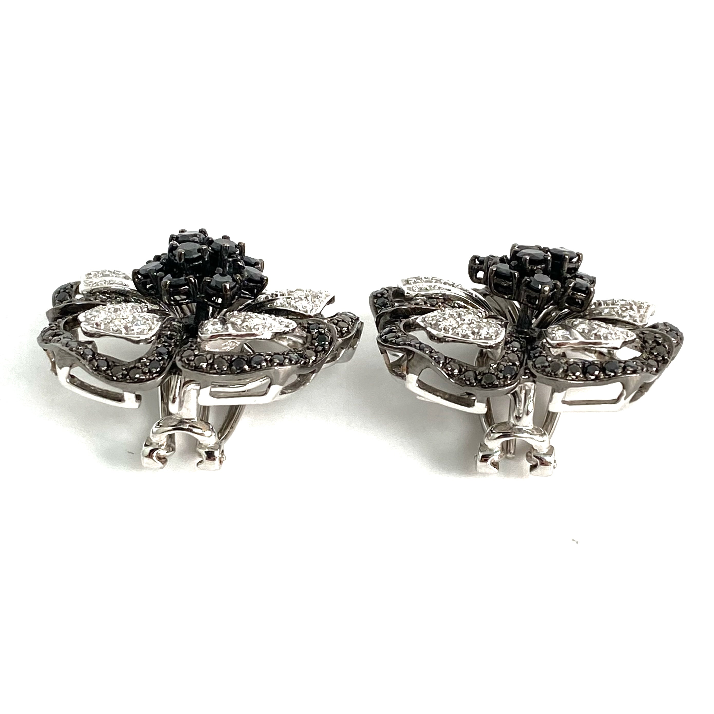△ 18K White Gold Black Diamond Flower Earrings 28.86g 18K白金黑色鑽石花卉耳環 28.86g - 257021699