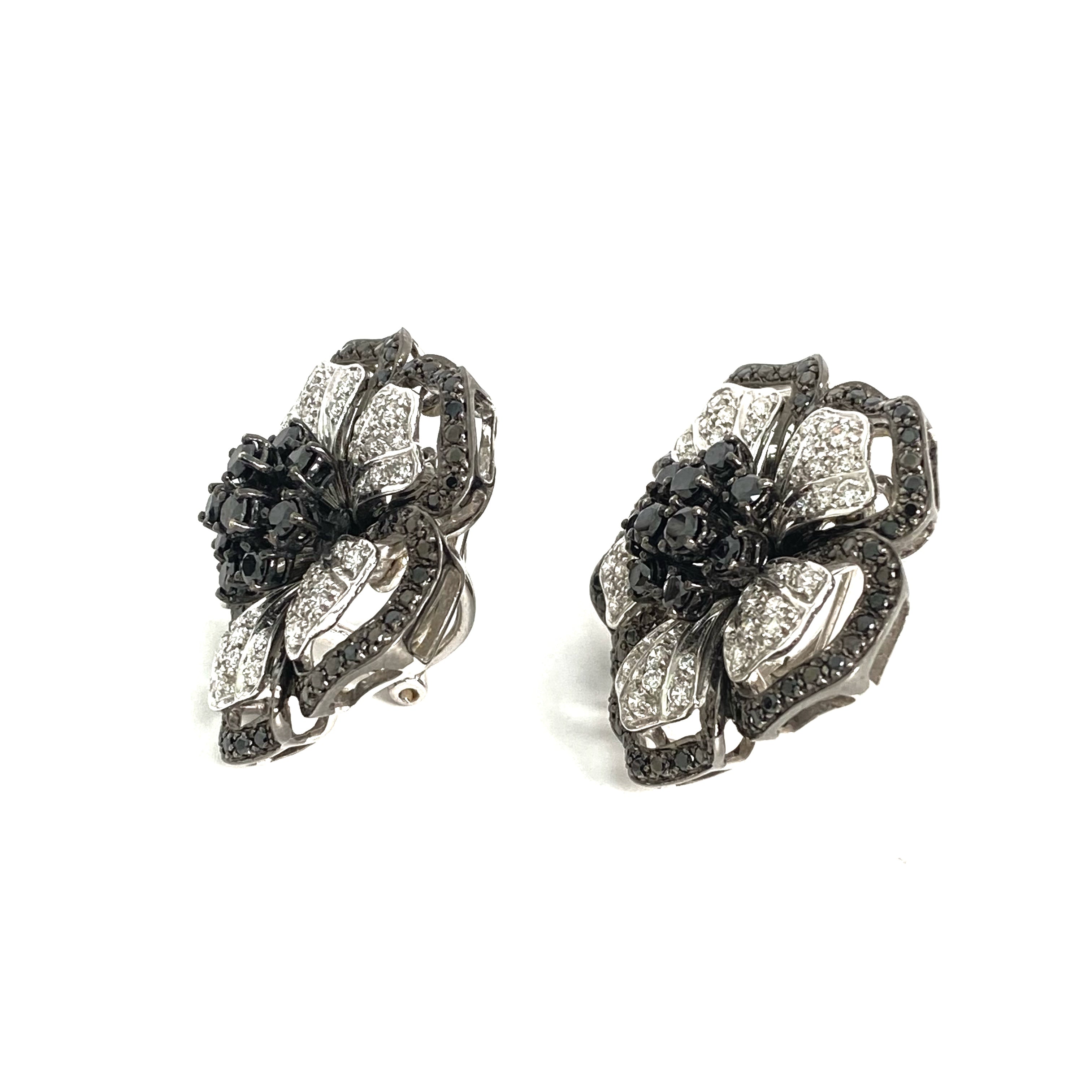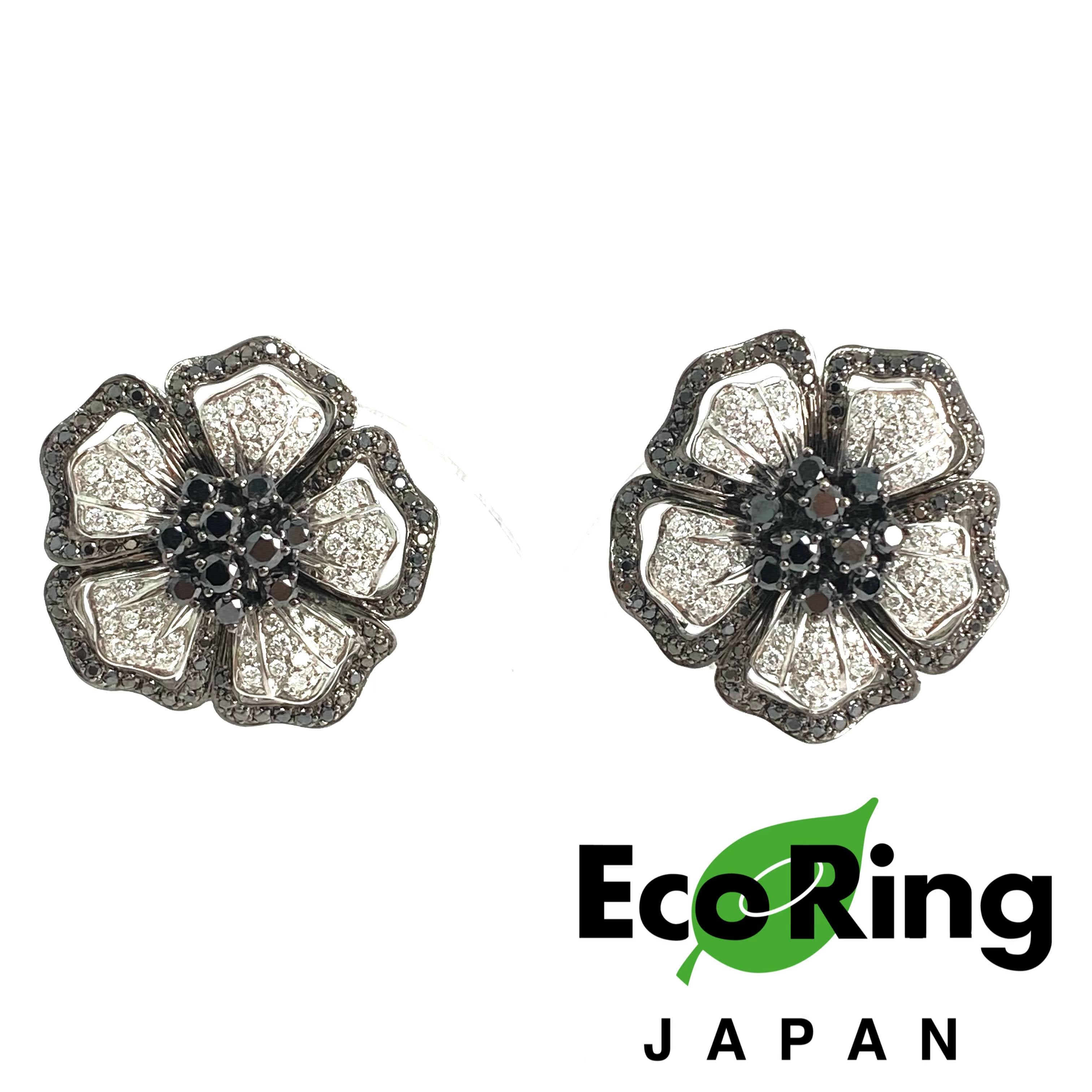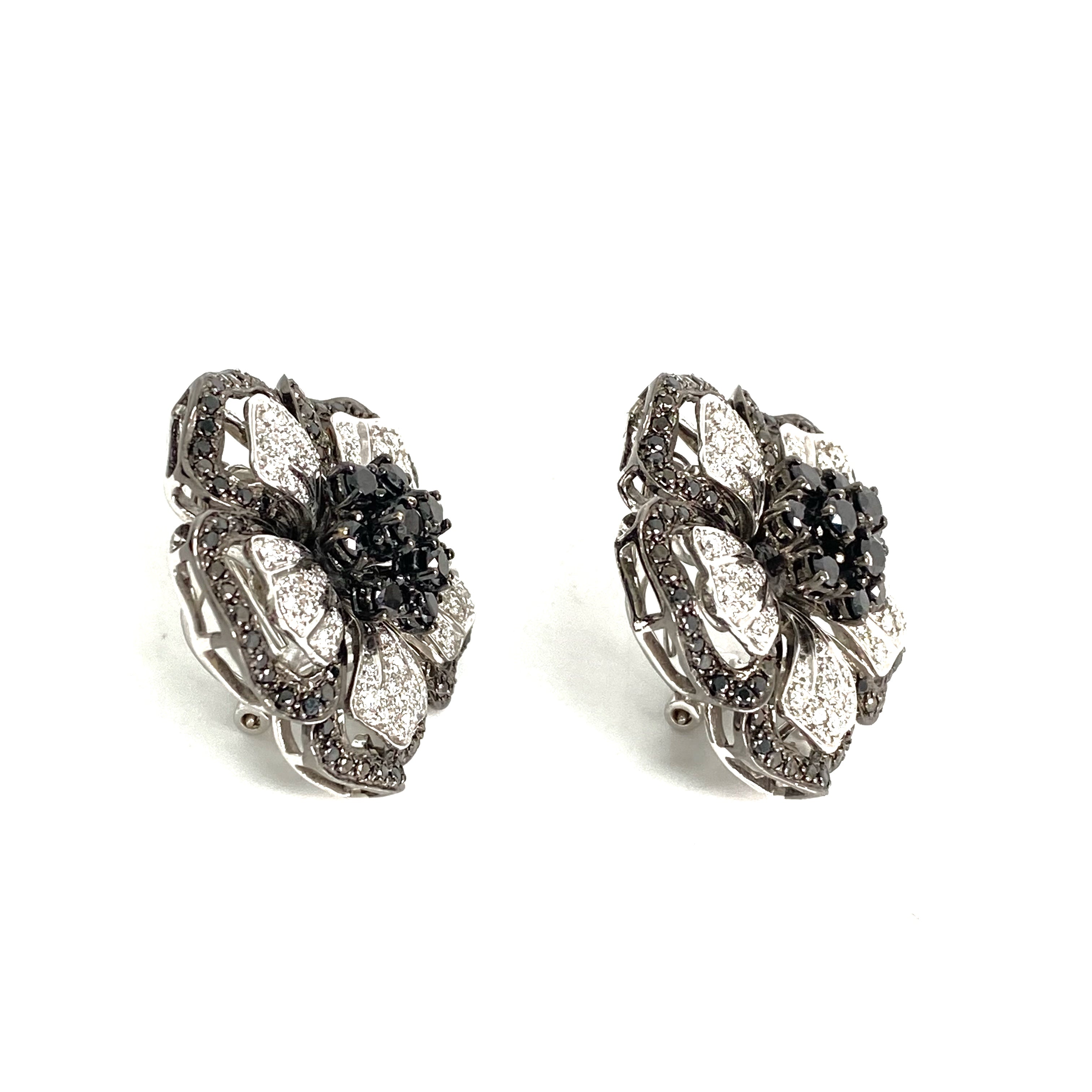 △ 18K White Gold Black Diamond Flower Earrings 28.86g 18K白金黑色鑽石花卉耳環 28.86g - 257021699