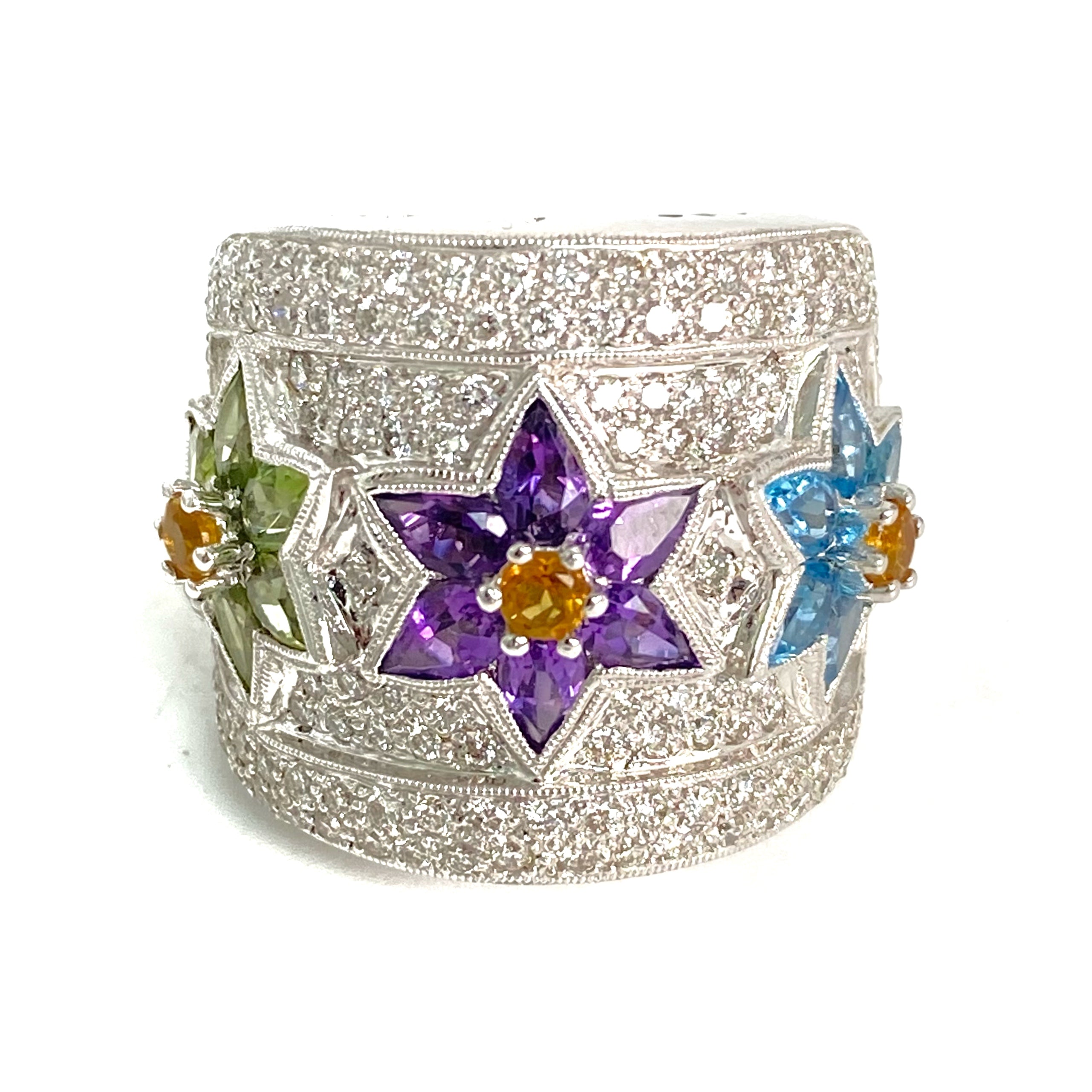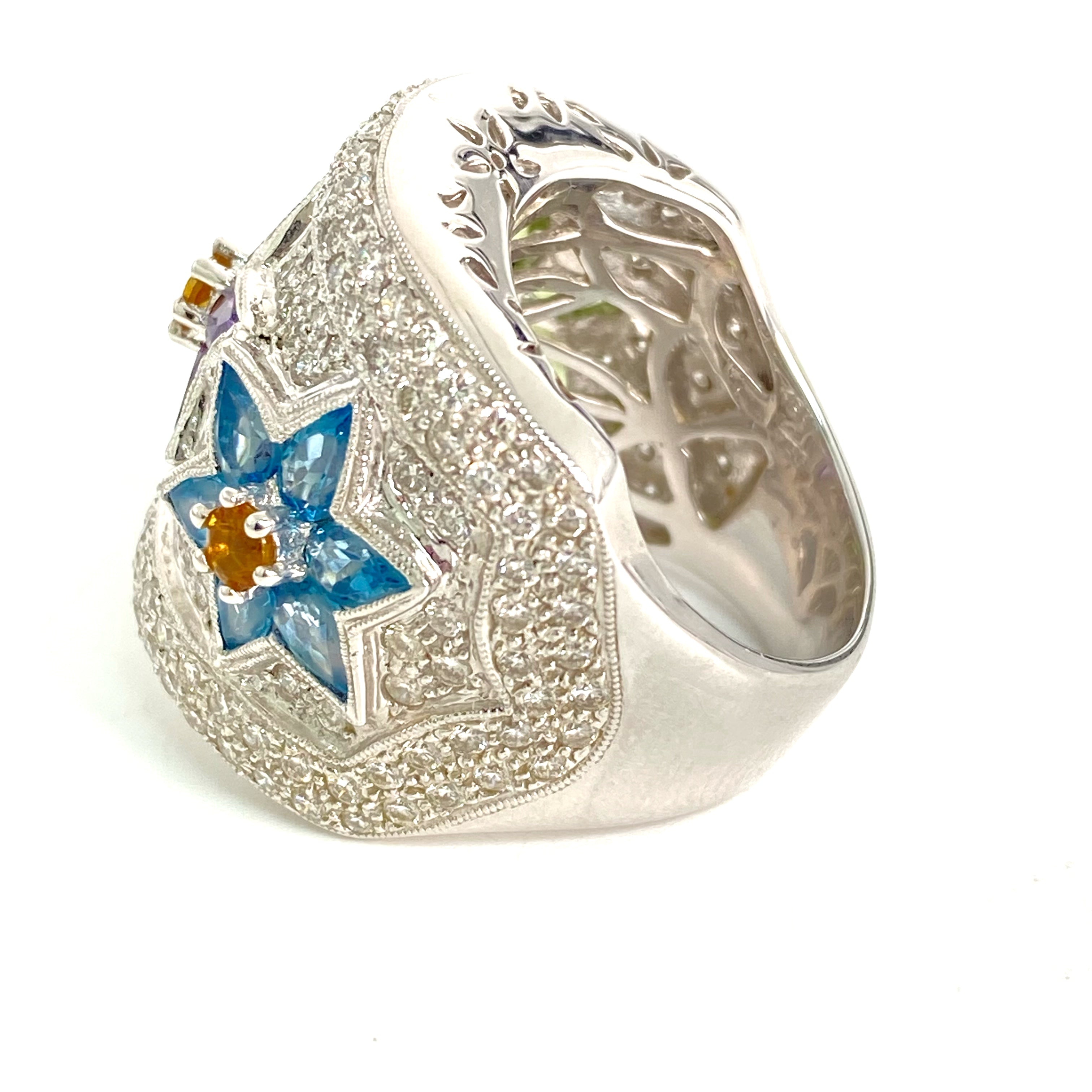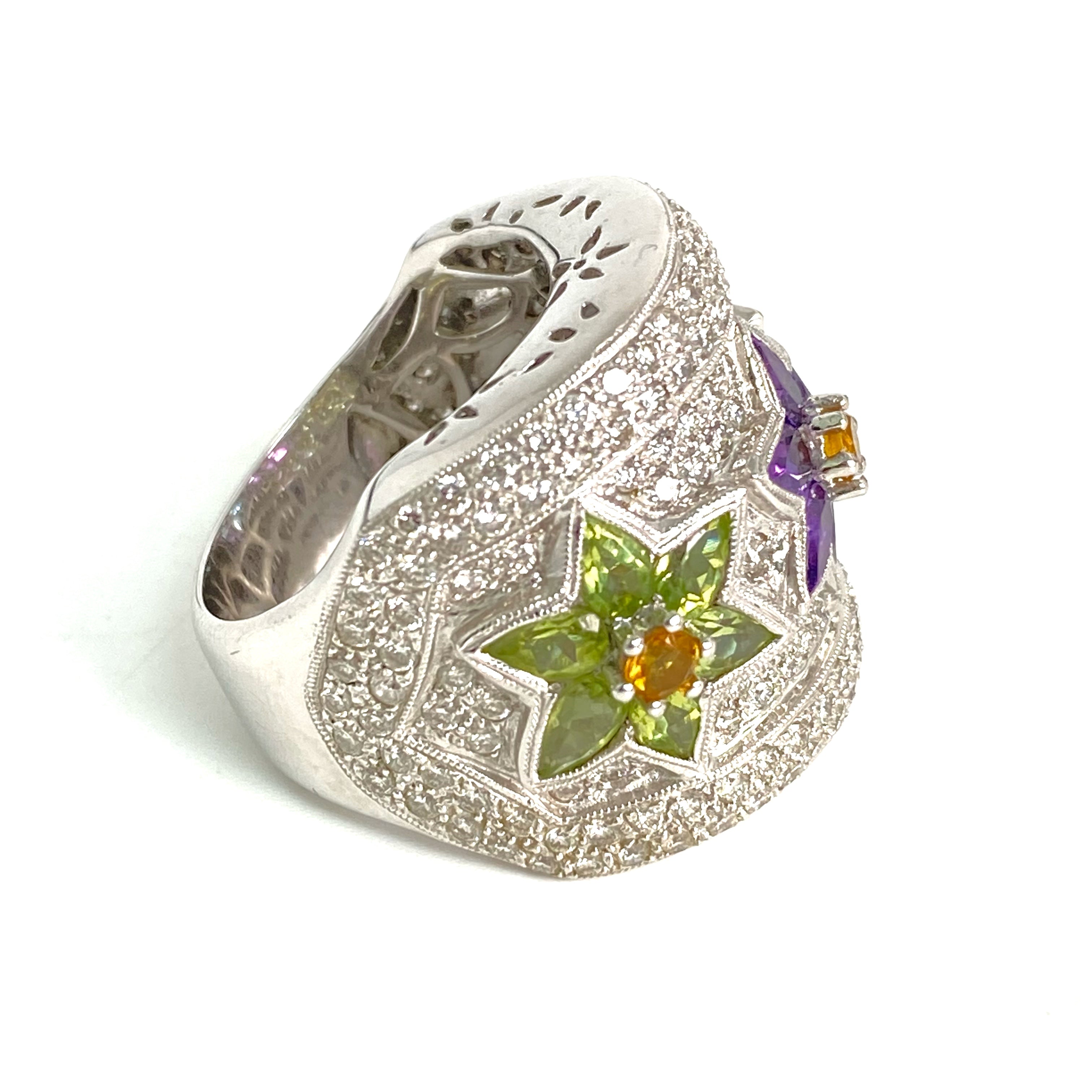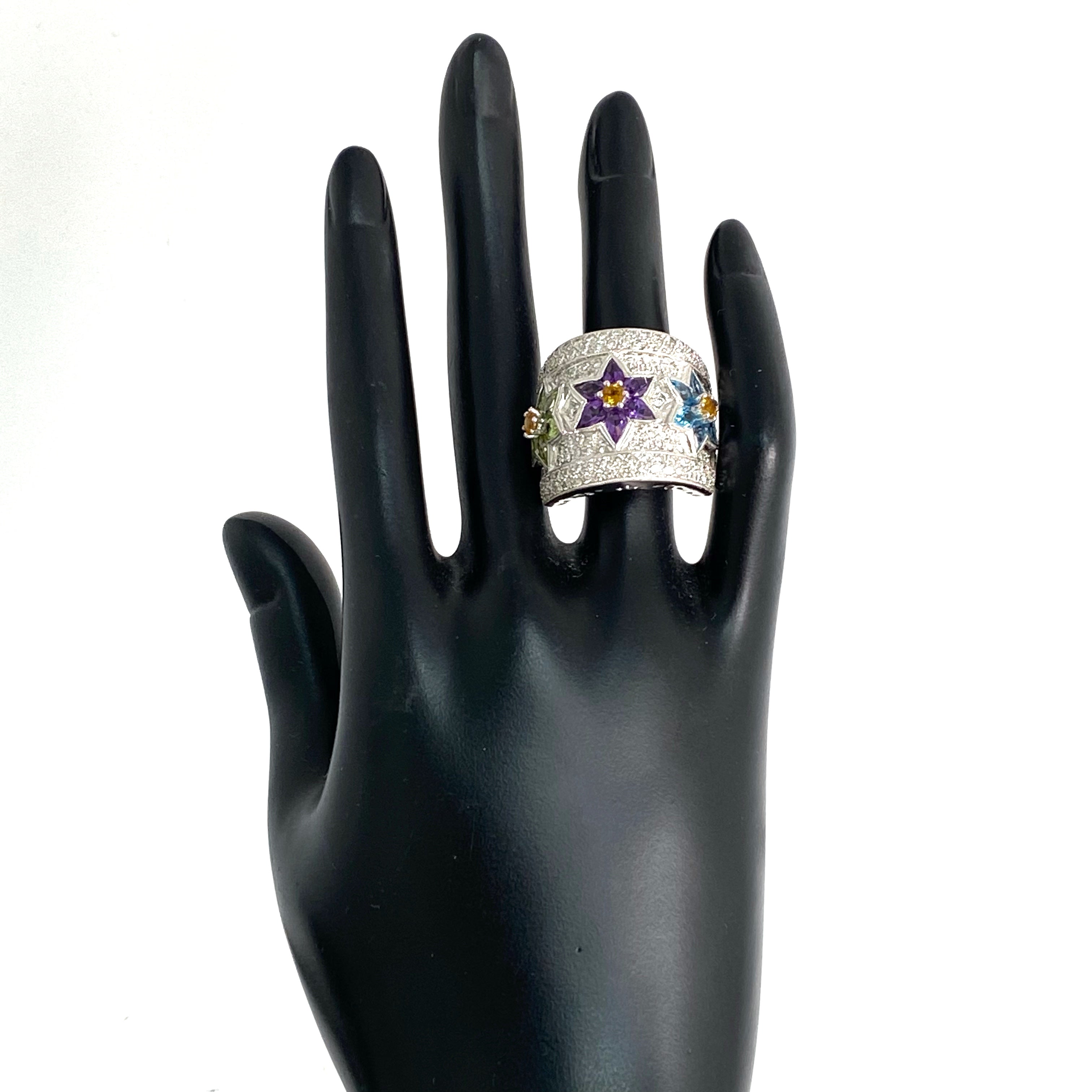 △ 18K White Gold Diamond Multicolor Stone Ring 24.87g 18K白金鑽石彩色色石戒指 24.87g - 257021703