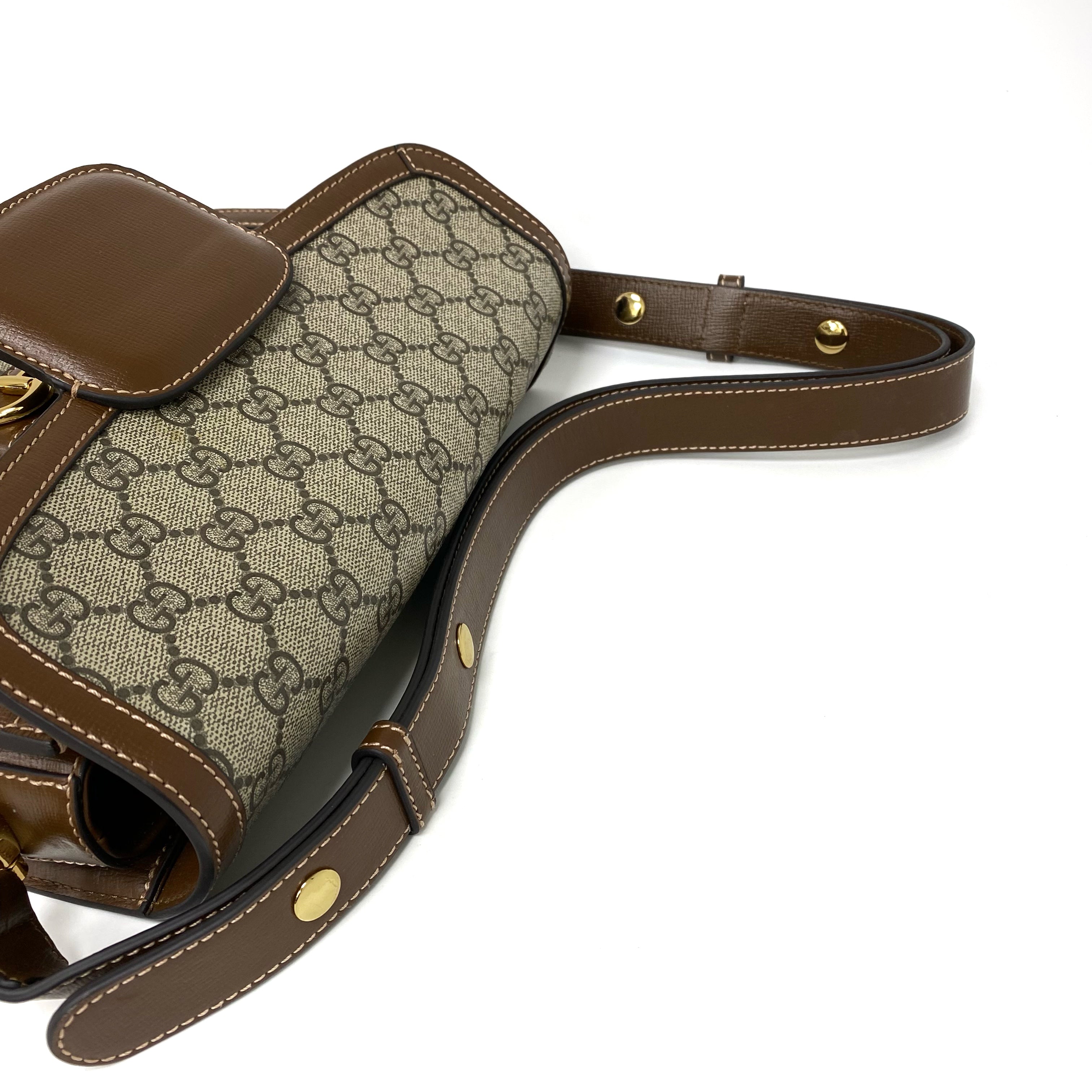 △ Gucci 古馳 Brown Coated Canvas Horsebit 1955 Shoulder Bag 淺啡色塗層帆布肩背袋 602204 - 257021734