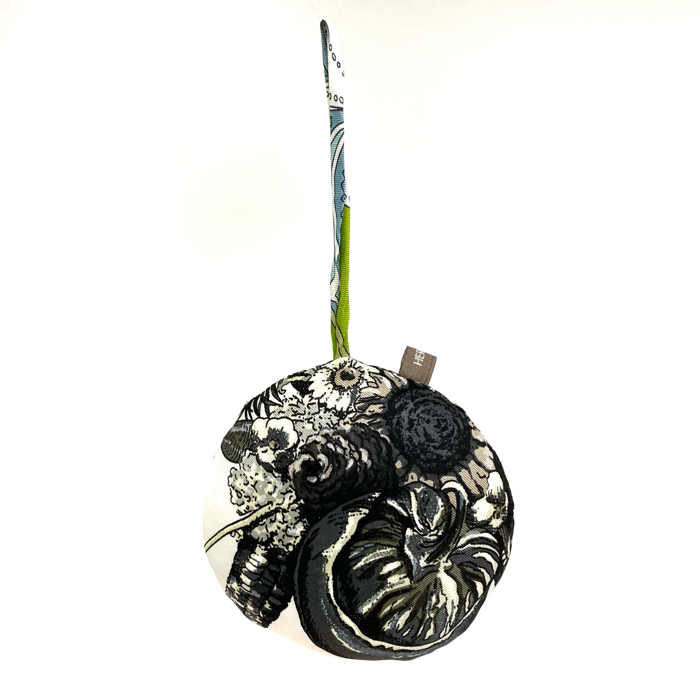 ☆ Hermes 愛馬仕 Black White Silk Petit H Charm 黑色白色絲質吊飾 - 257021794