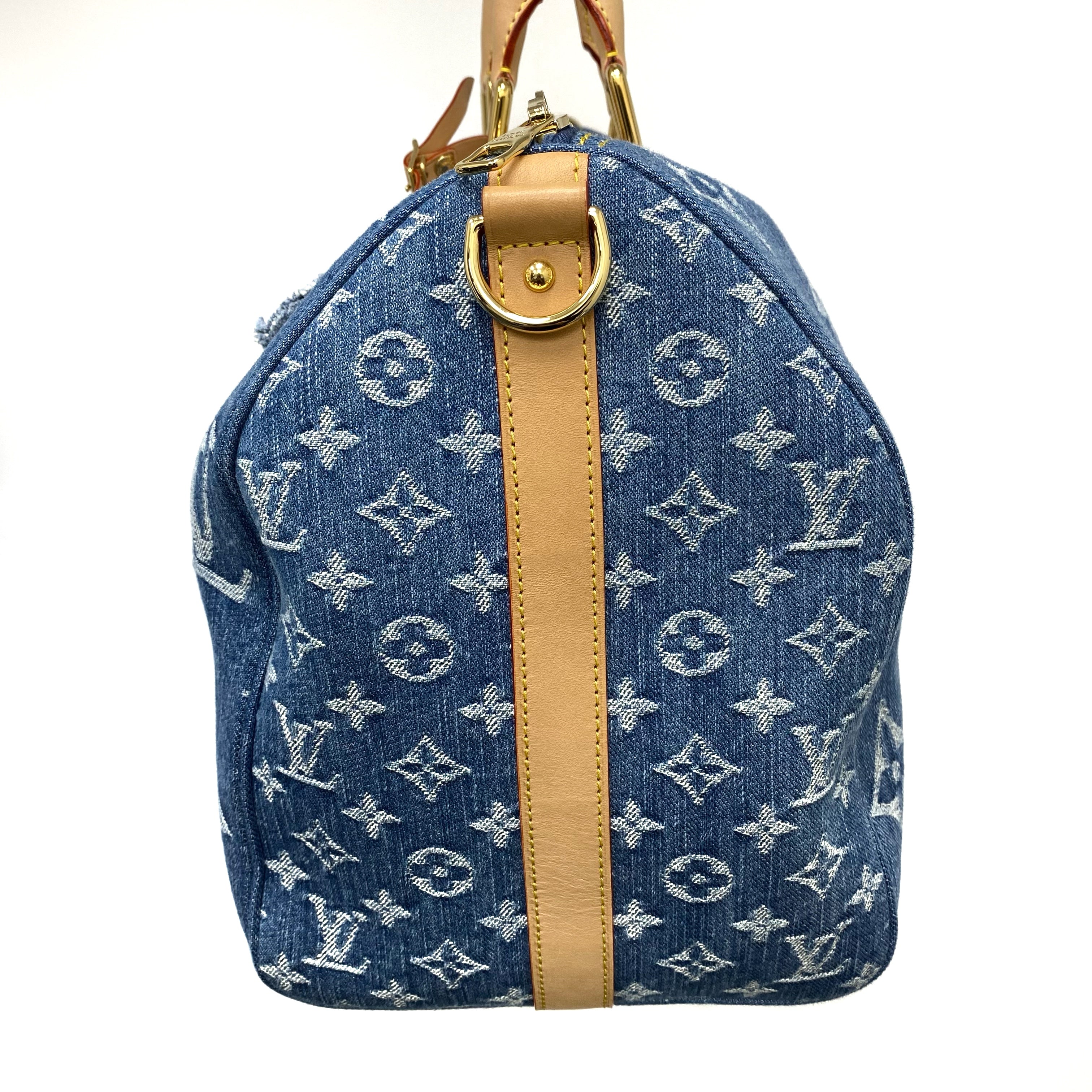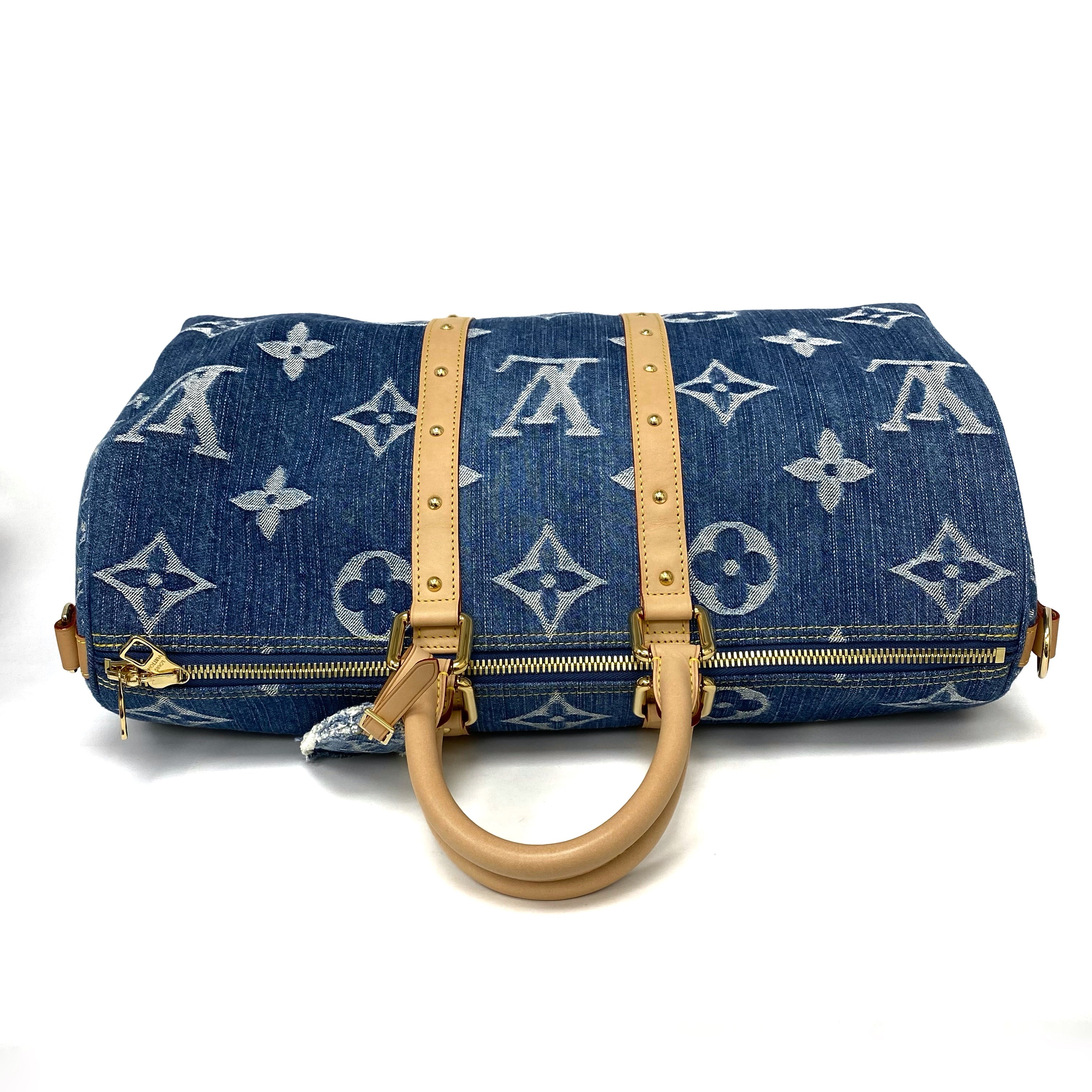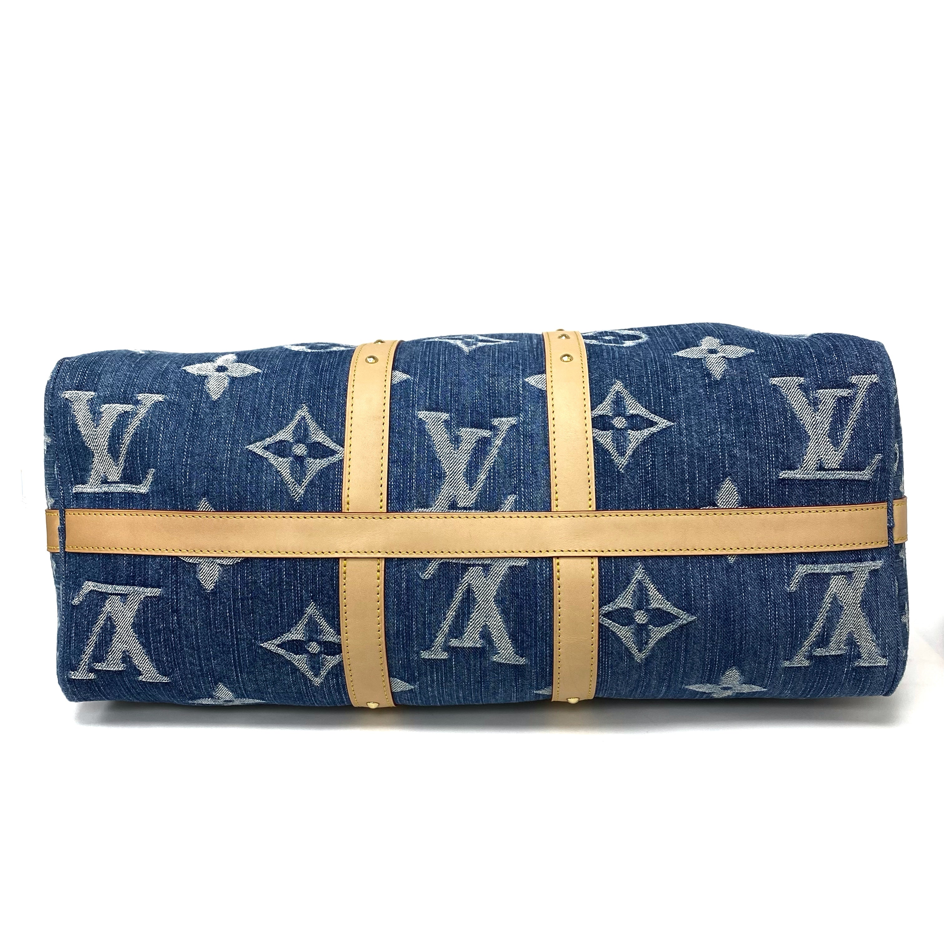 △ Louis Vuitton 路易威登 Keepall Bandouliere 45 Blue Denim Monogram 2Way Bag M24315 藍色牛仔布經典花紋兩用袋 M24315 -257021844