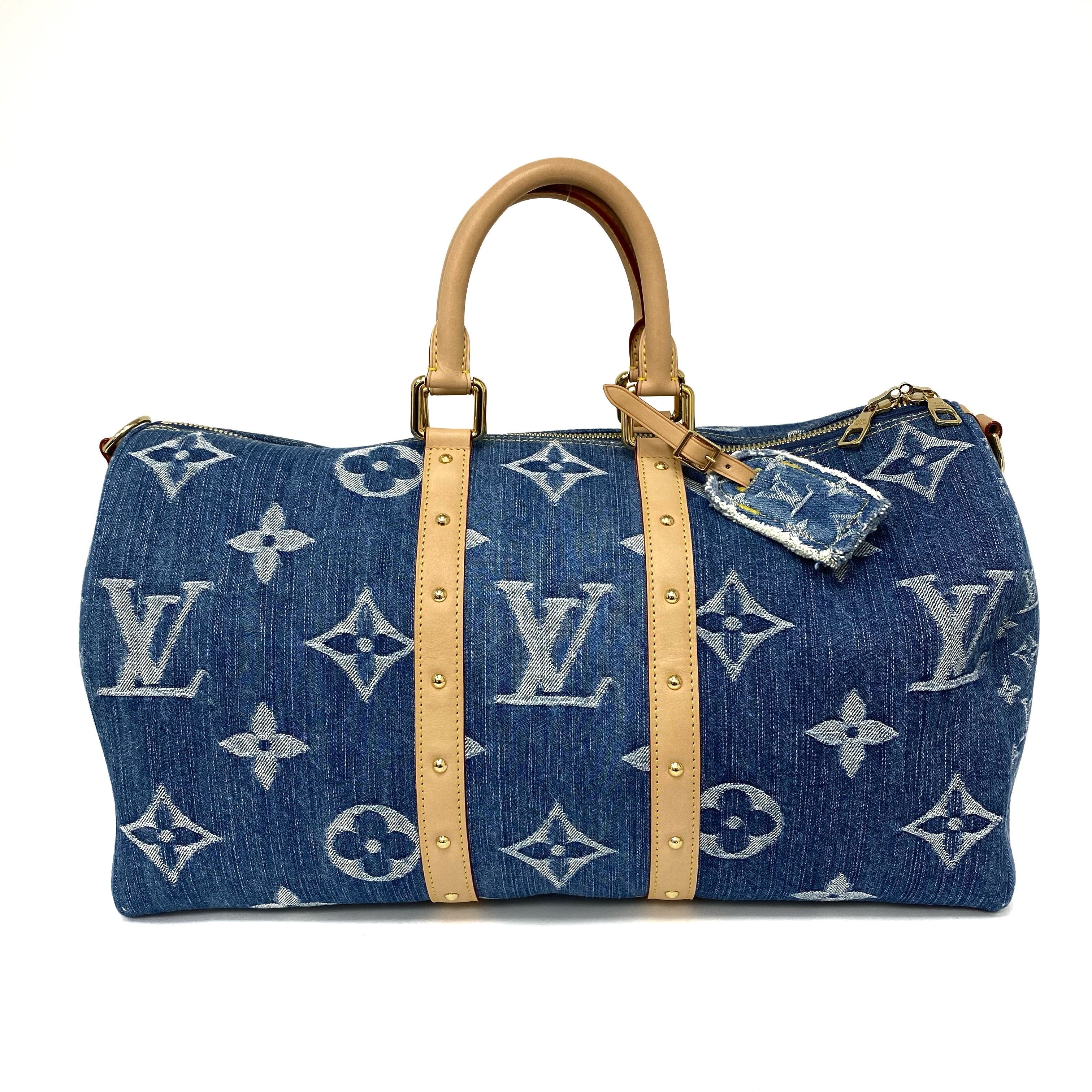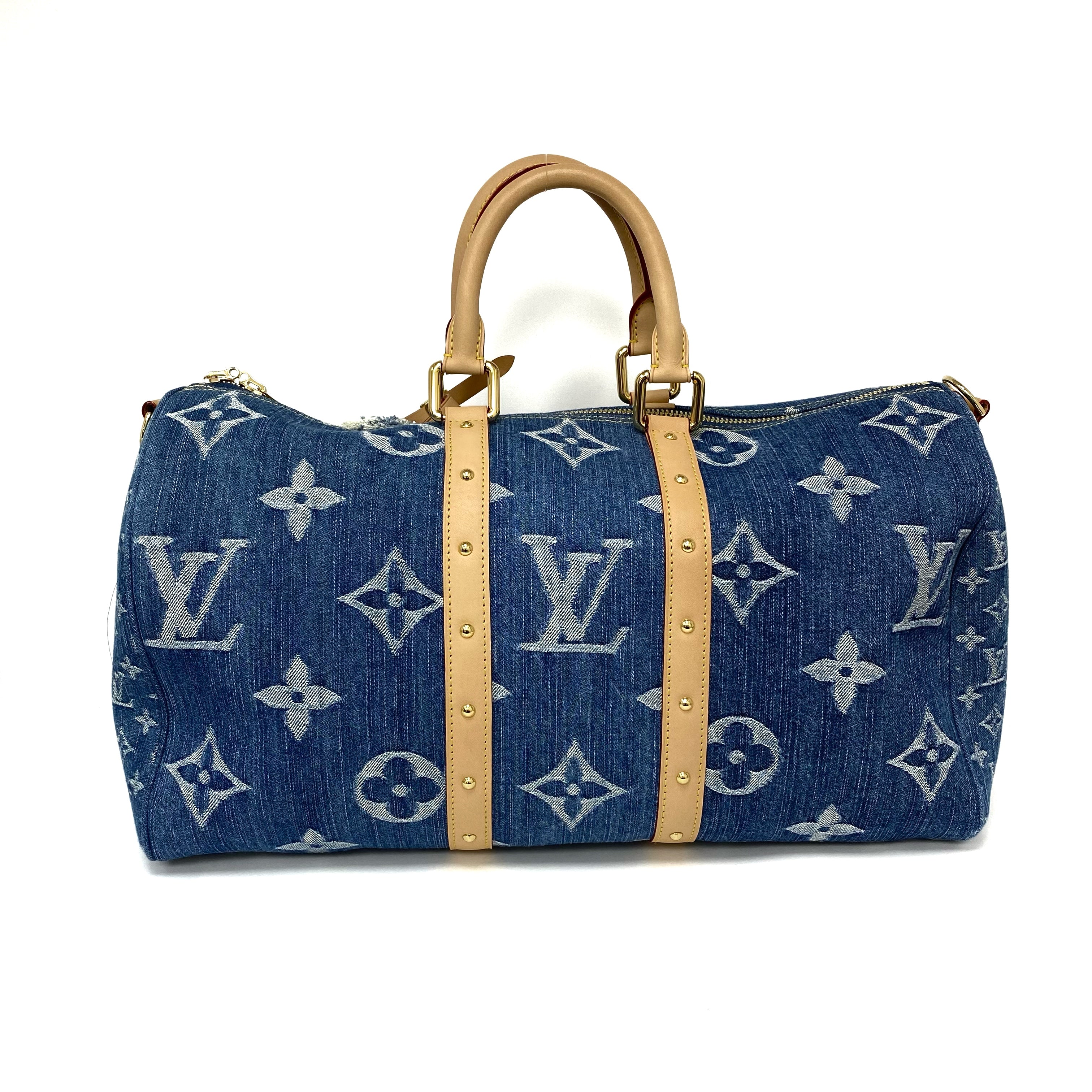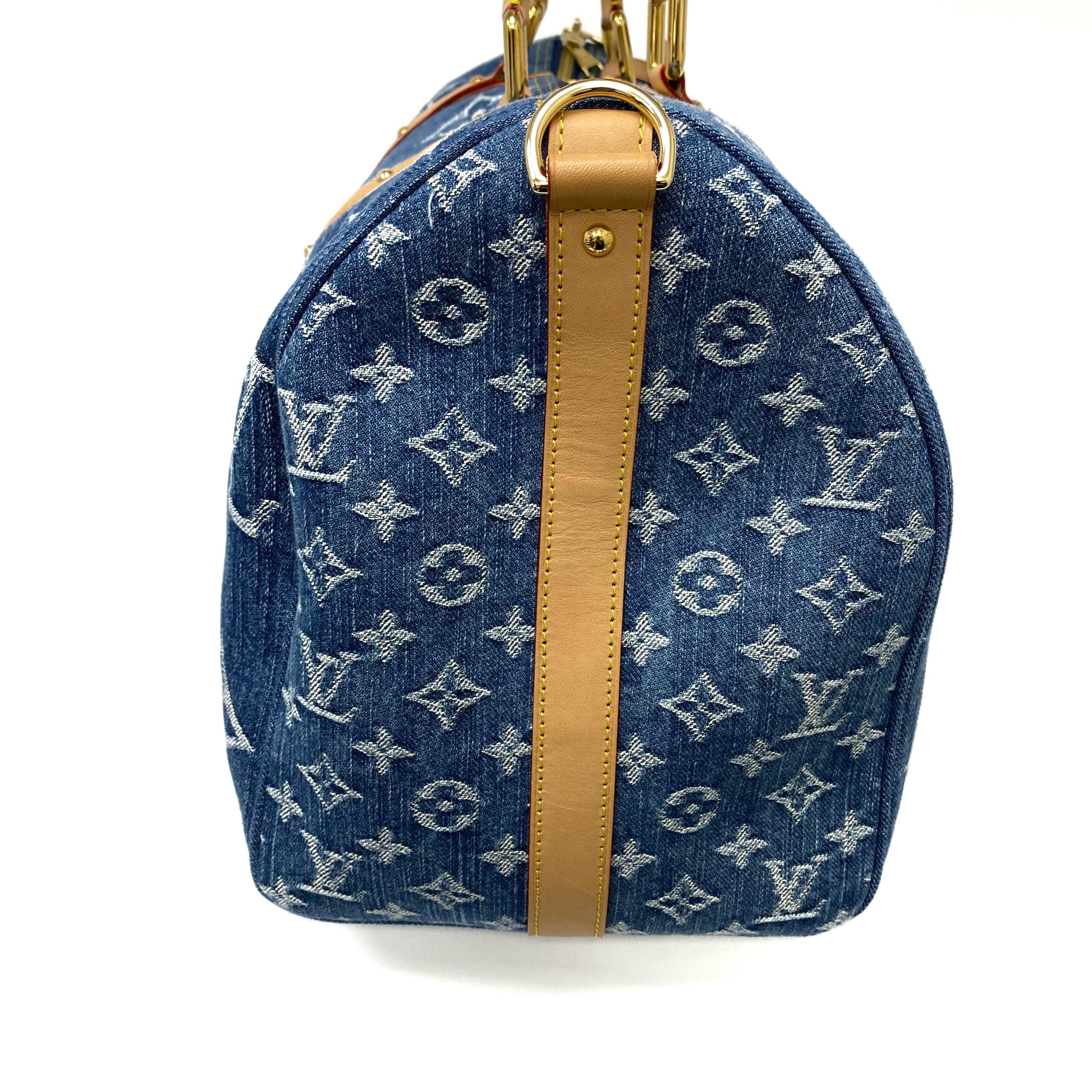 △ Louis Vuitton 路易威登 Keepall Bandouliere 45 Blue Denim Monogram 2Way Bag M24315 藍色牛仔布經典花紋兩用袋 M24315 -257021844