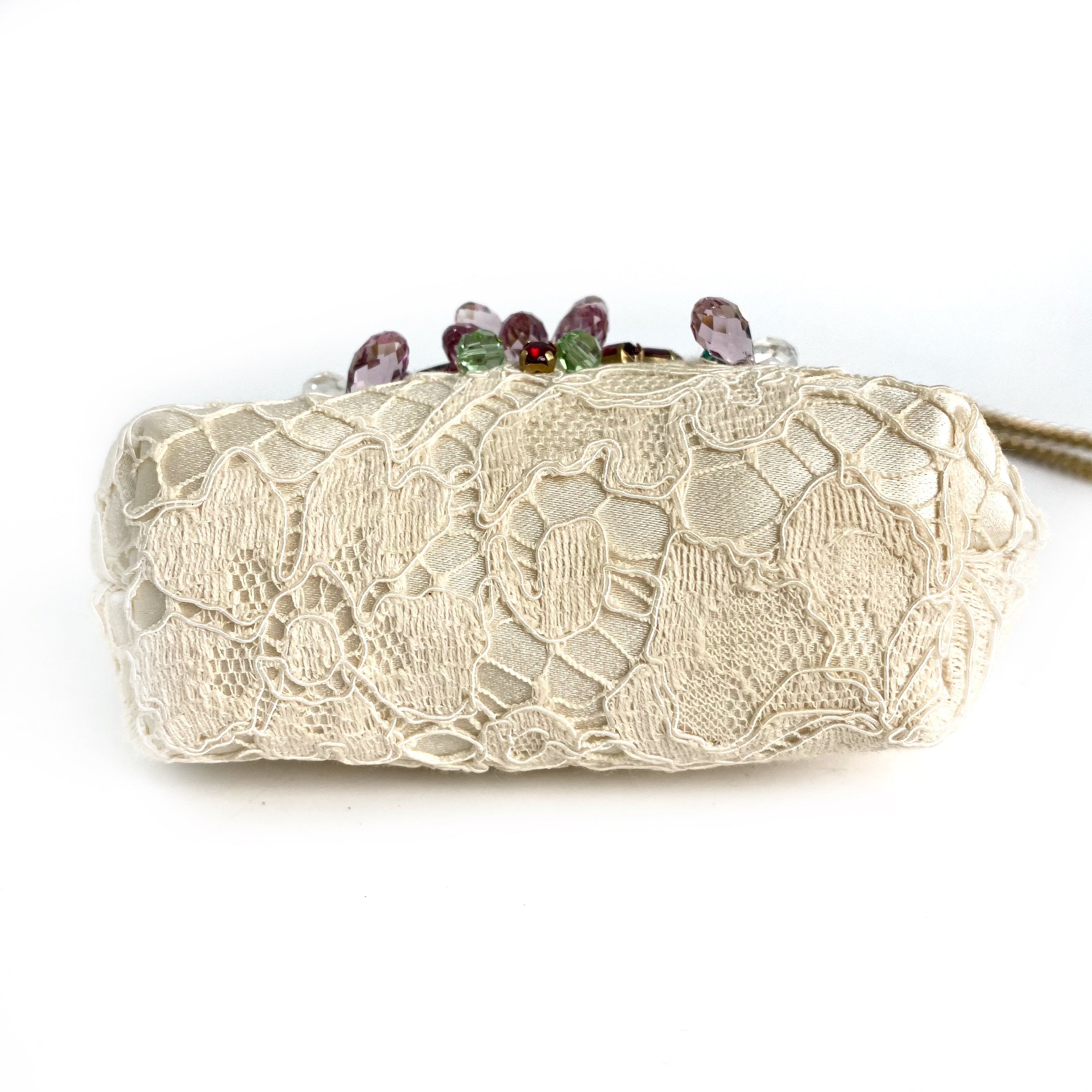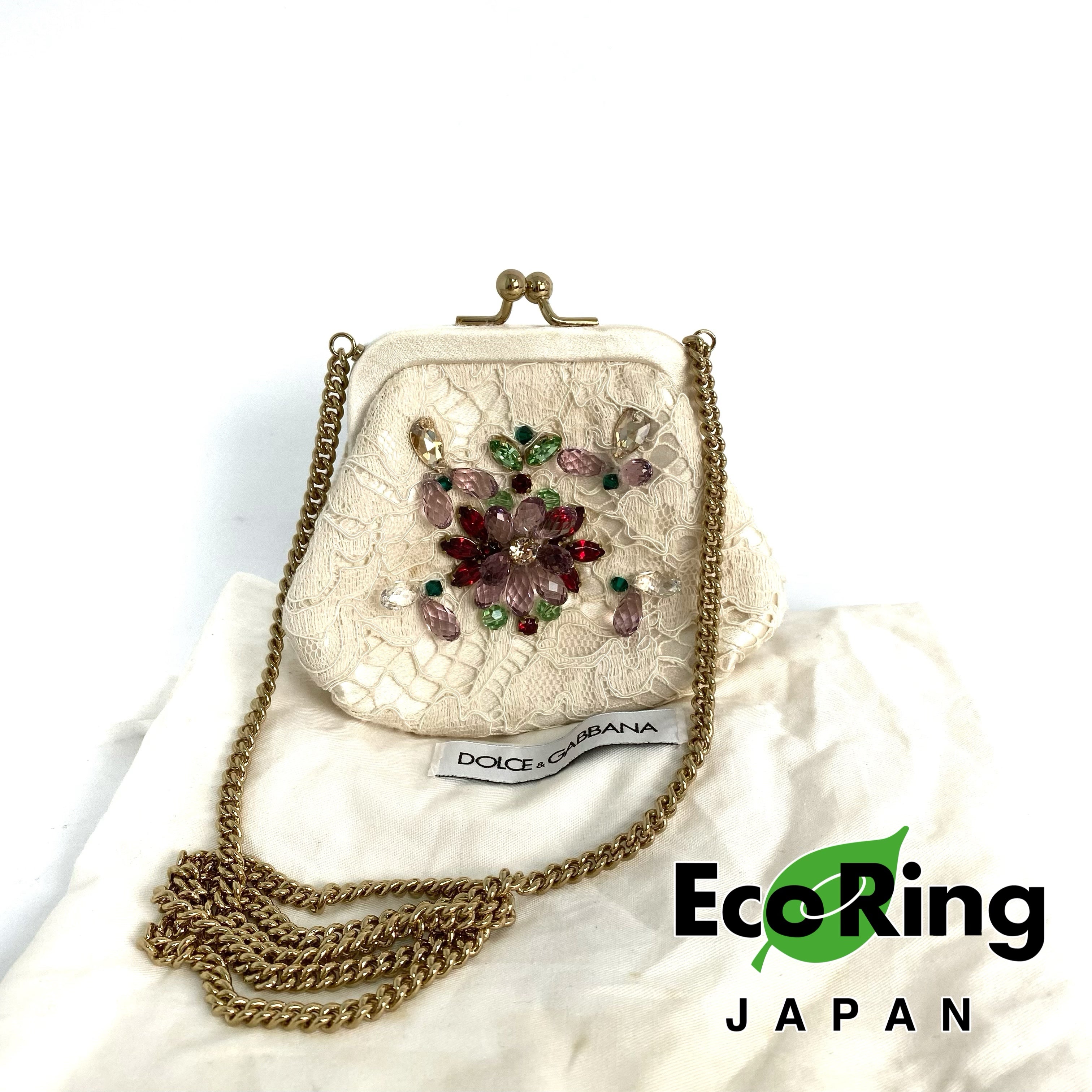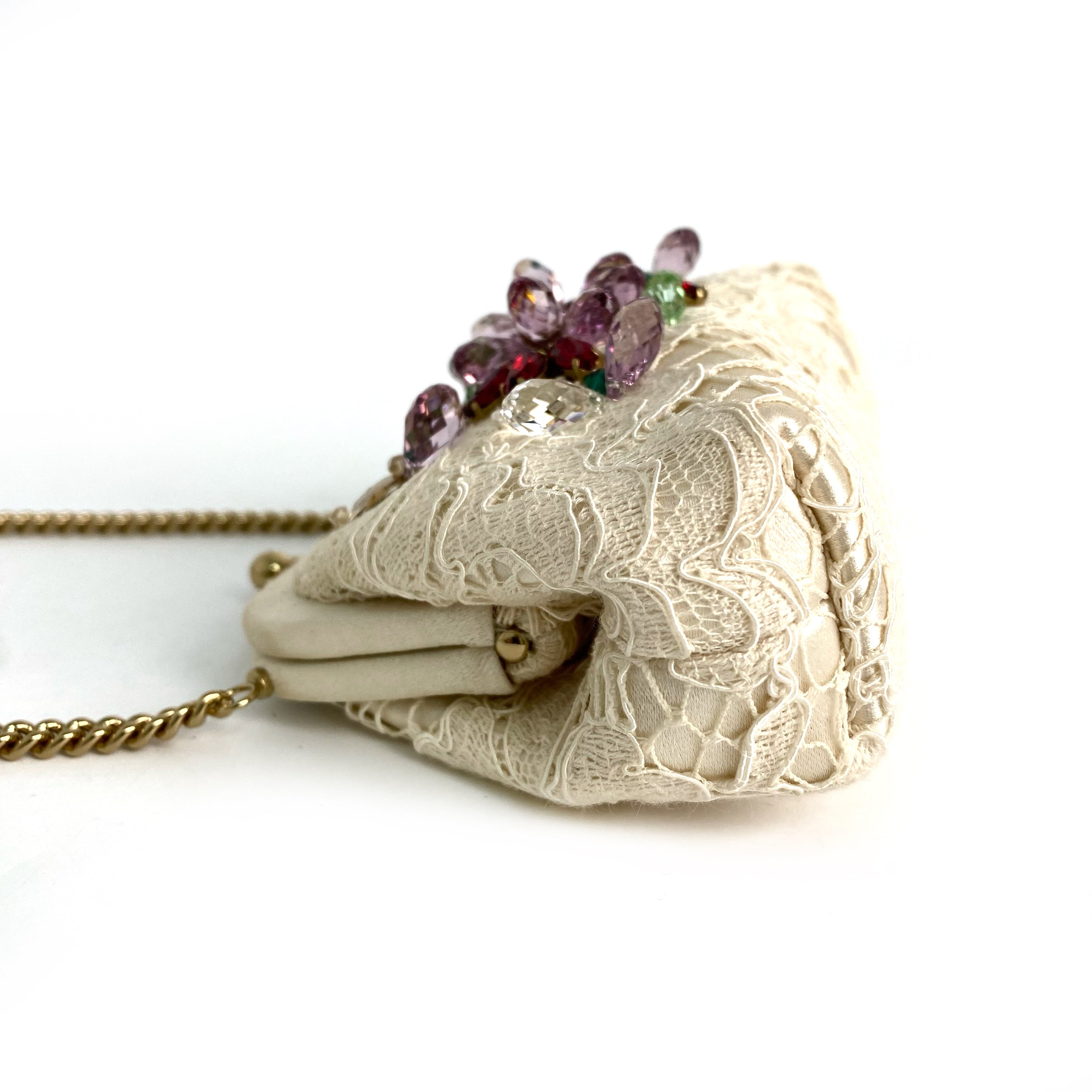 ☆Dolce & Gabbana 杜嘉班納 Beige Lace Chain Shoulder Bag 米色蕾絲鏈條肩背袋 -257022261