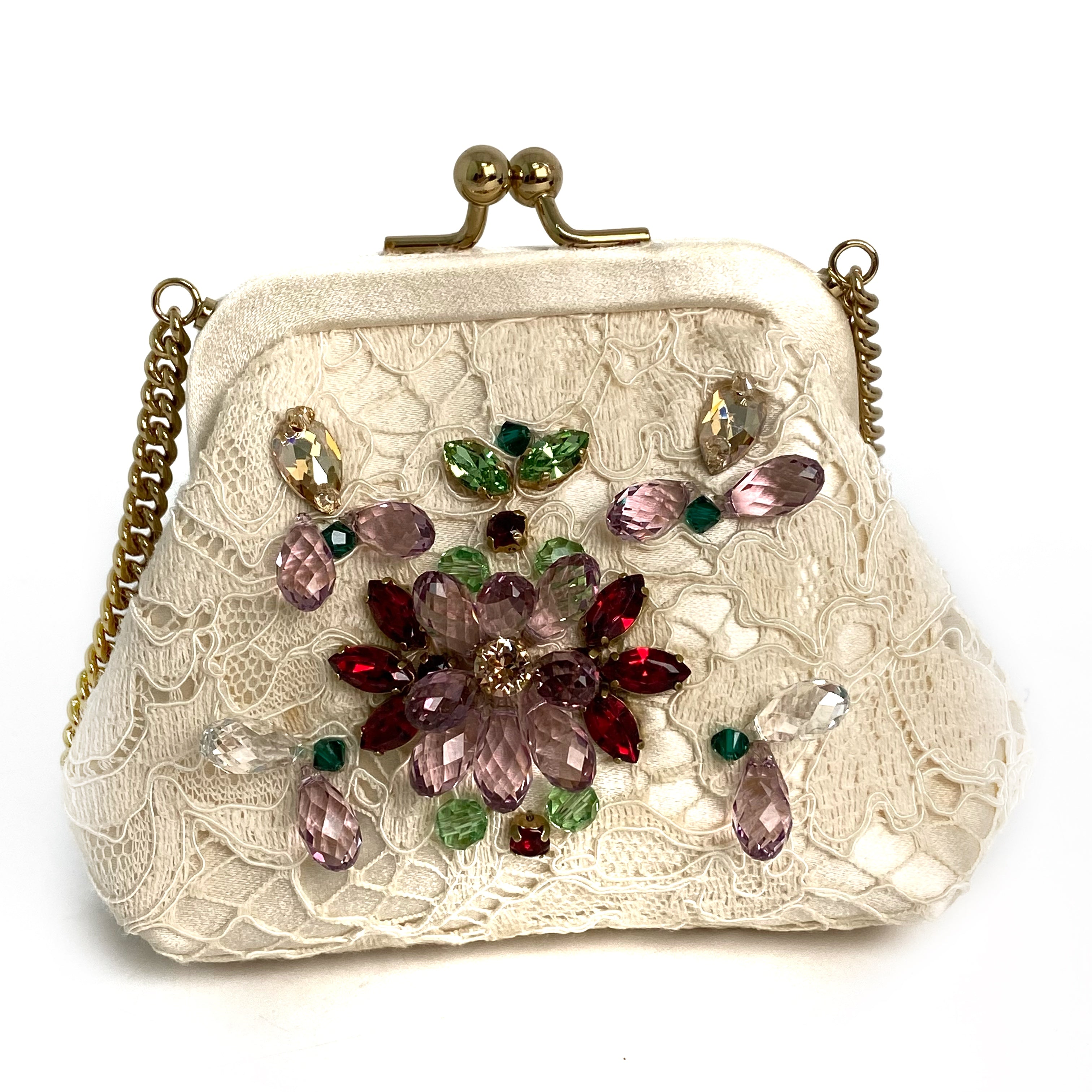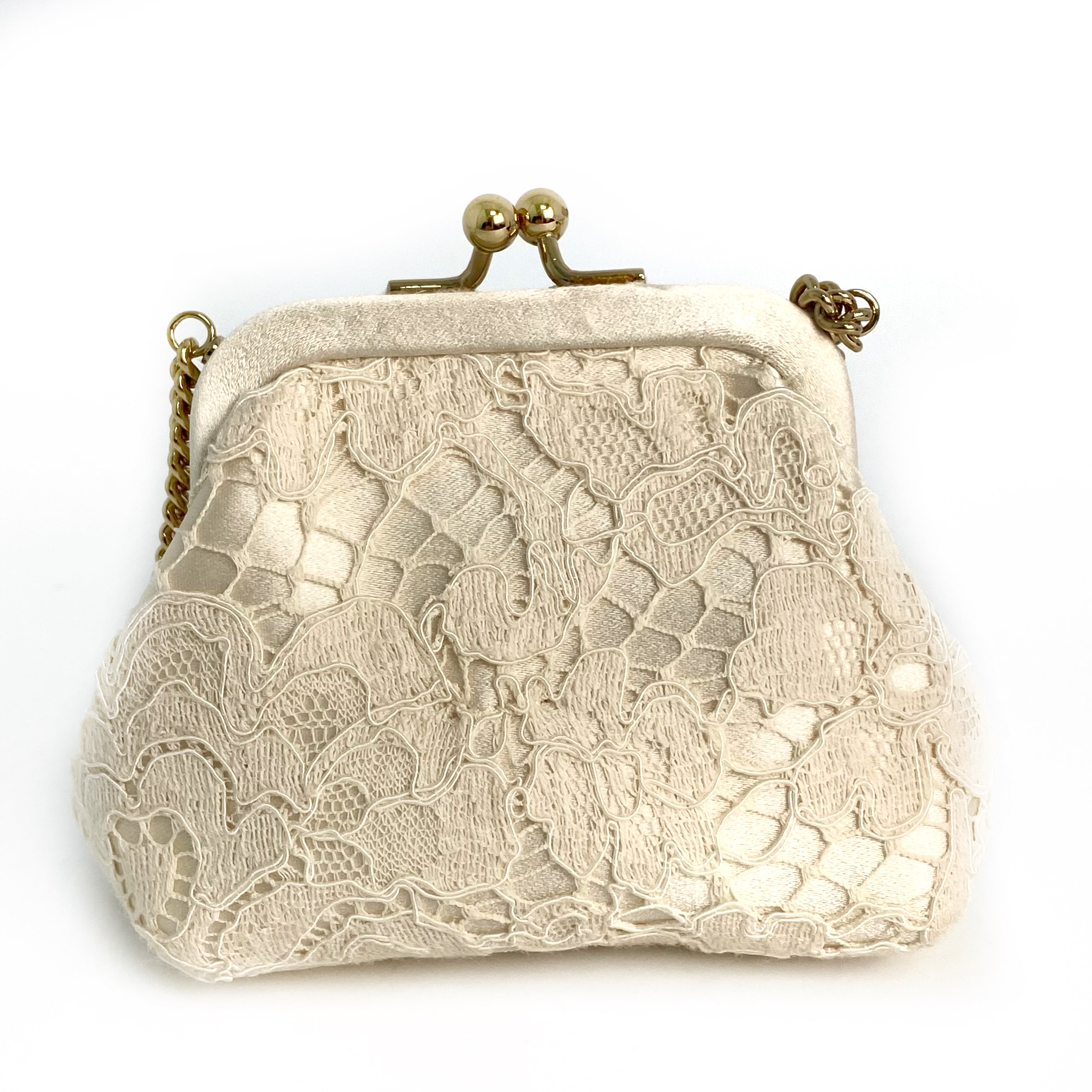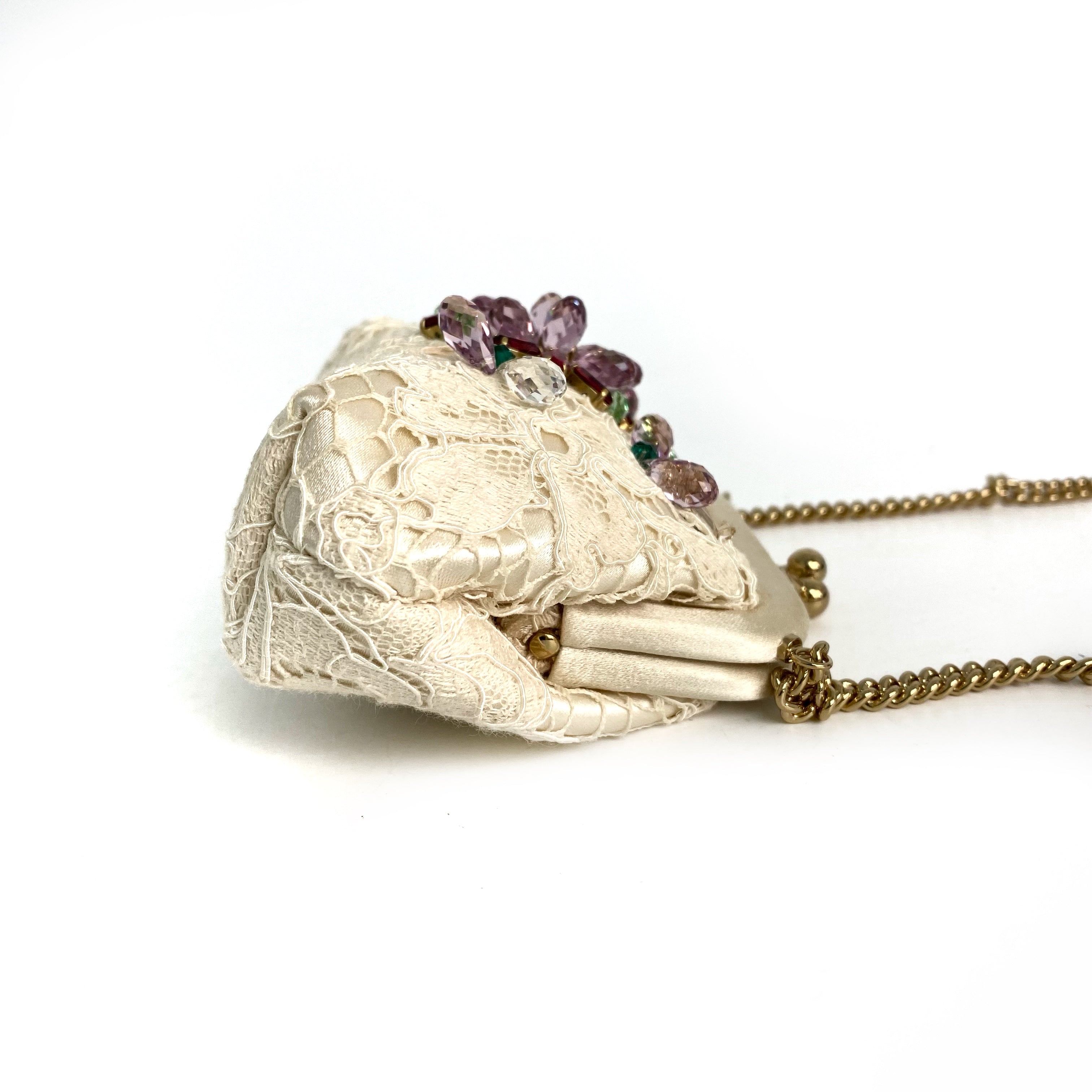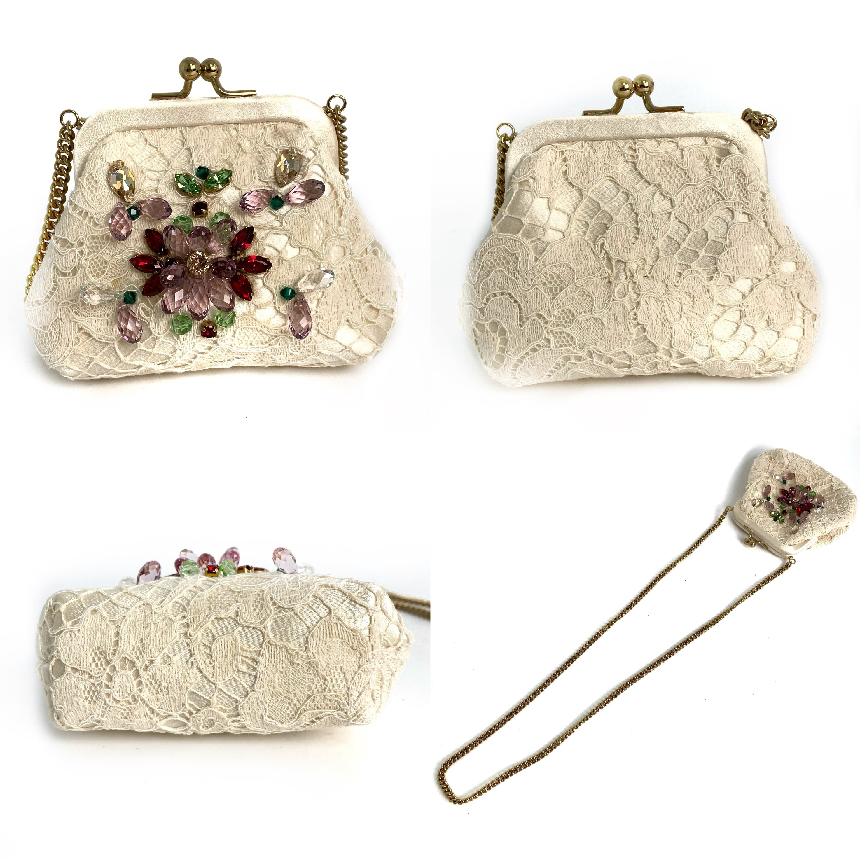 ☆Dolce & Gabbana 杜嘉班納 Beige Lace Chain Shoulder Bag 米色蕾絲鏈條肩背袋 -257022261